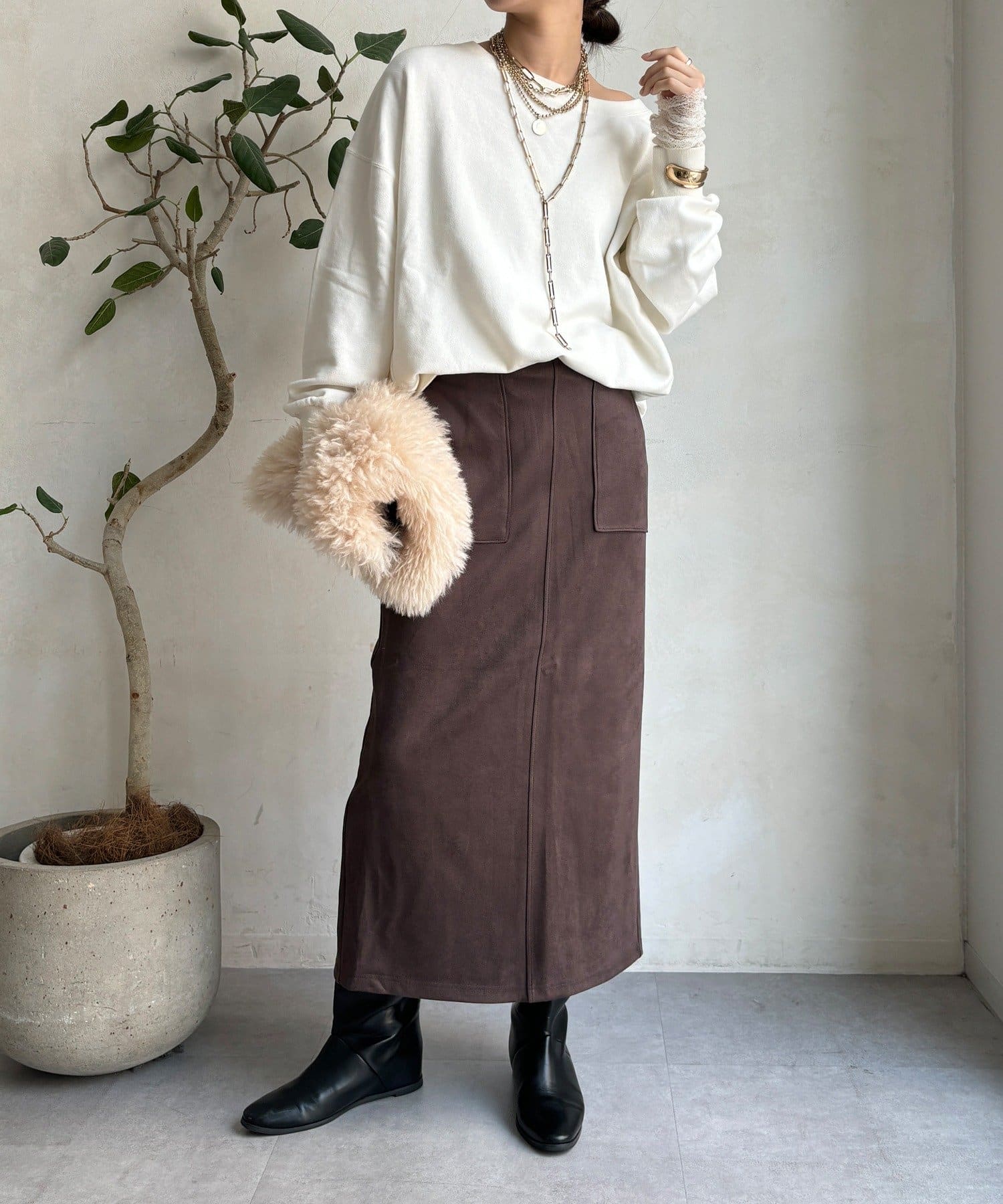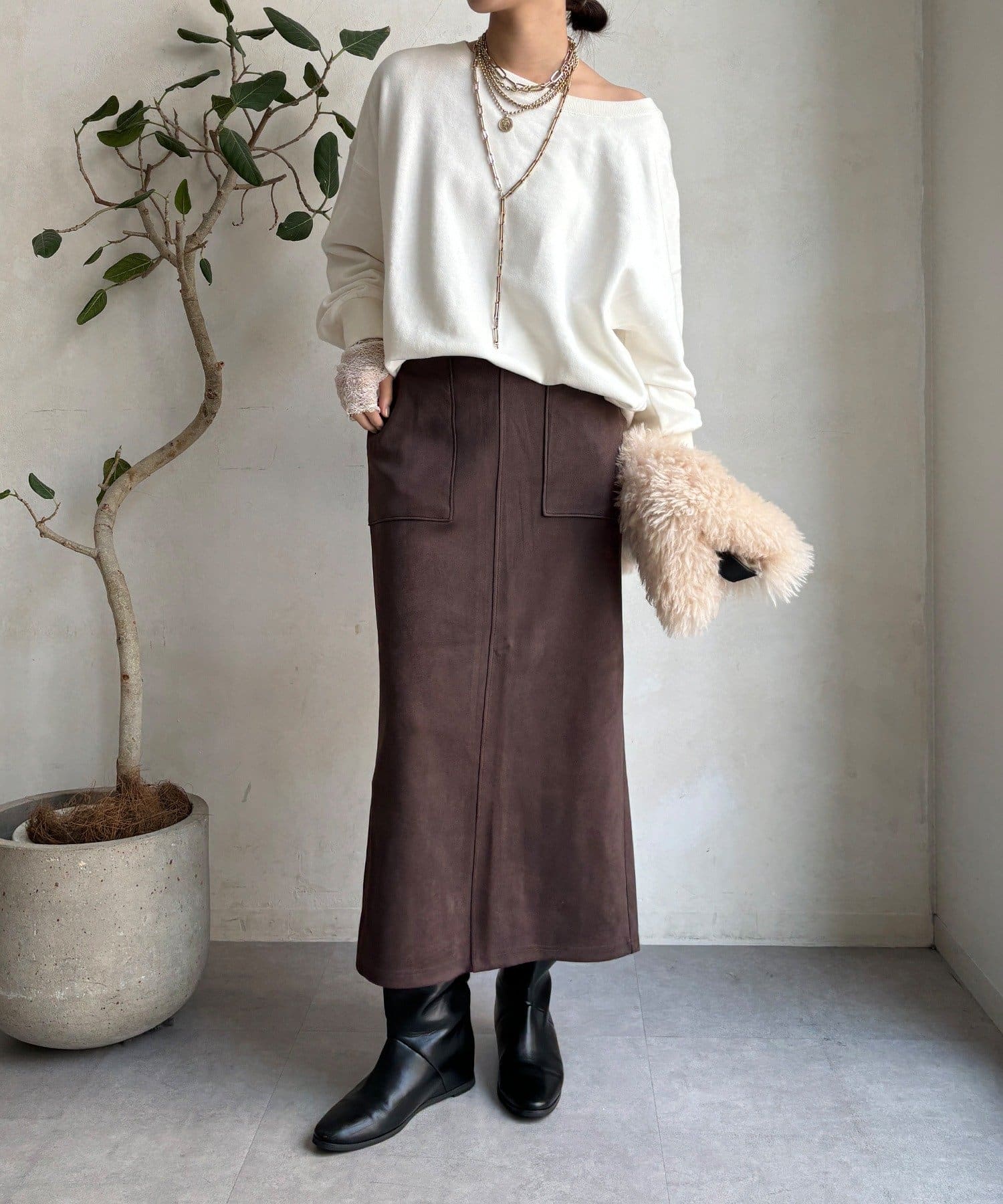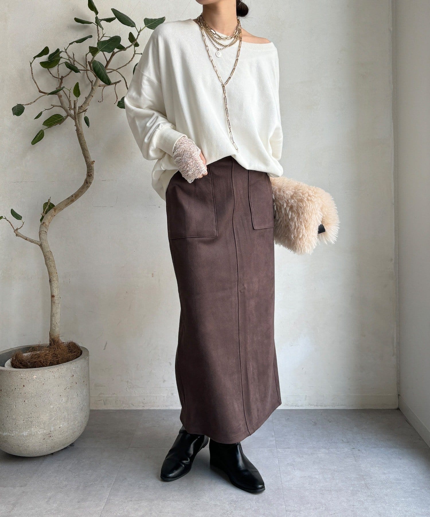 やわらかな手触りが魅力のマシュマロスエードタイトスカートが登場!