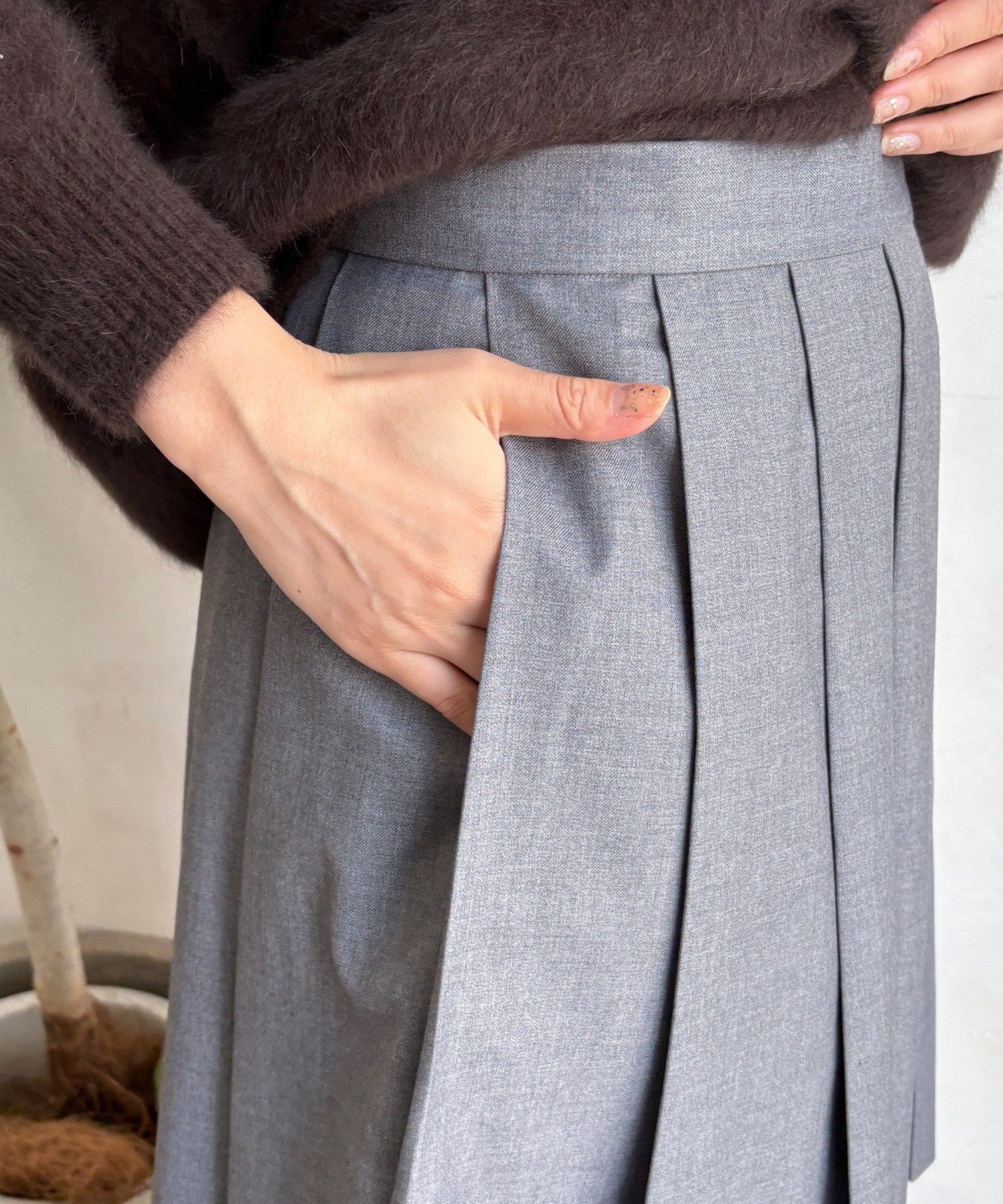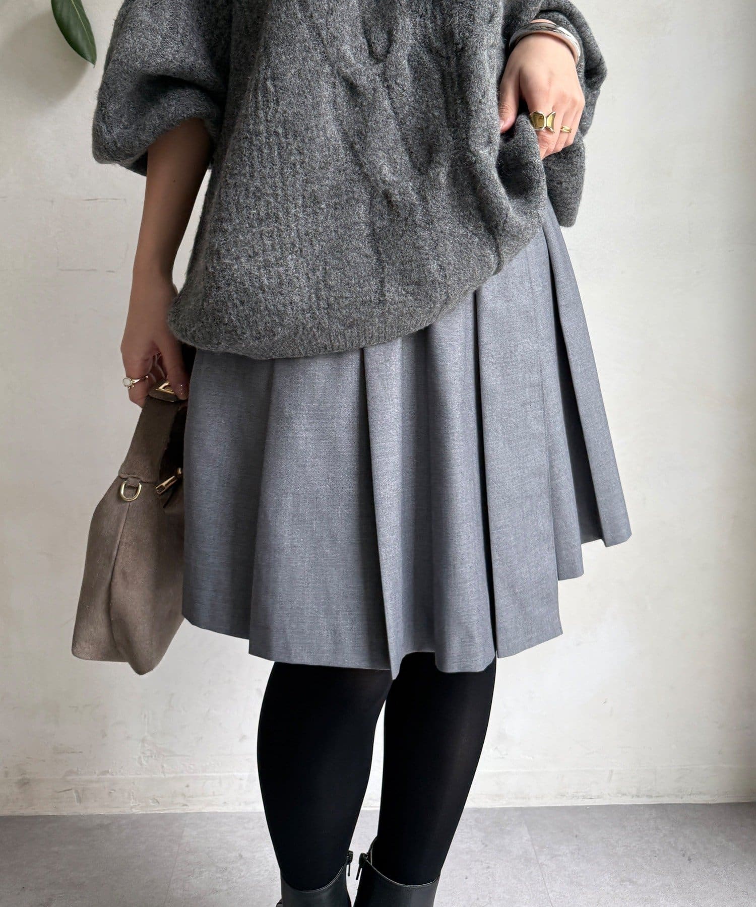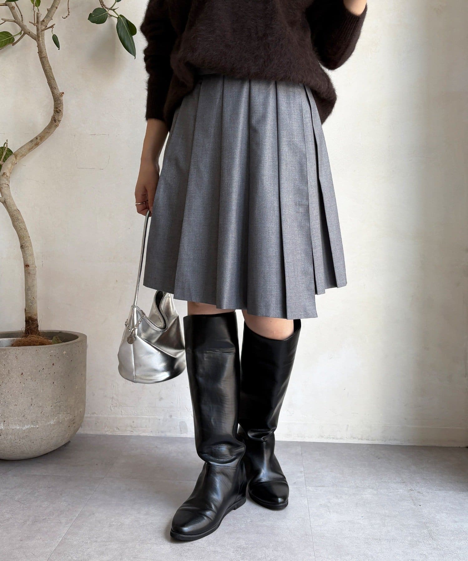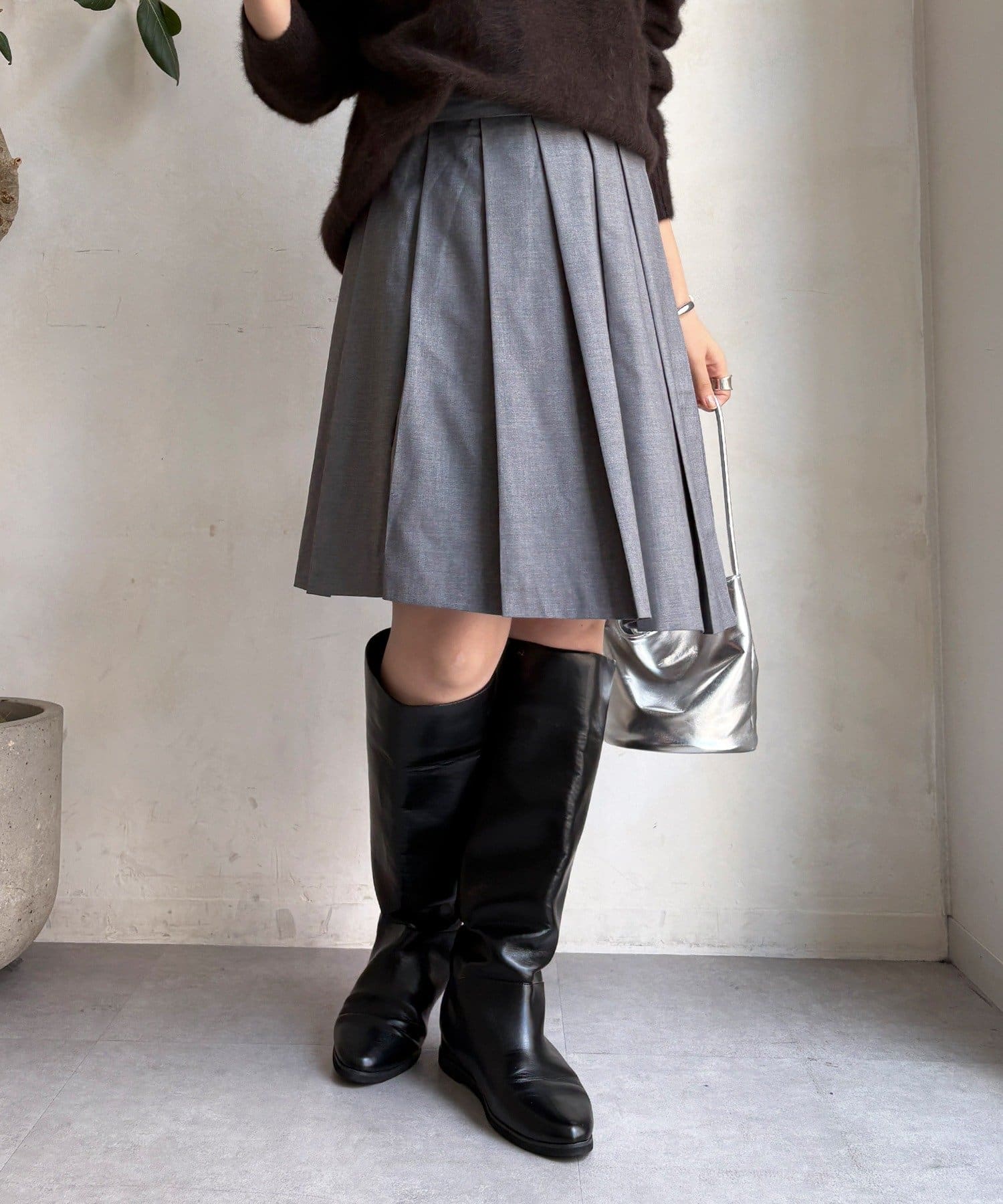 スタイリングを新鮮に仕上げてくれるミドル丈のプリーツスカート。