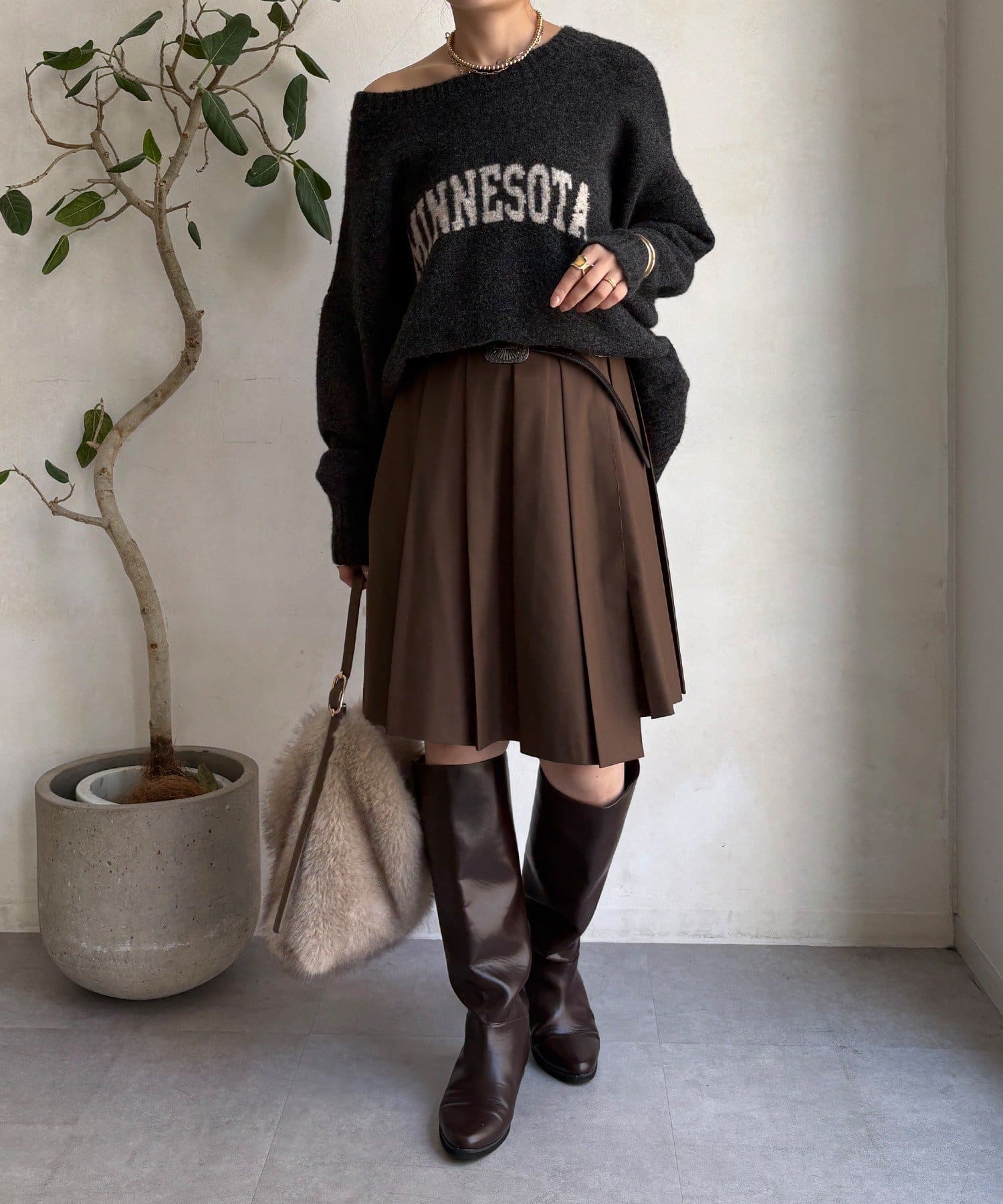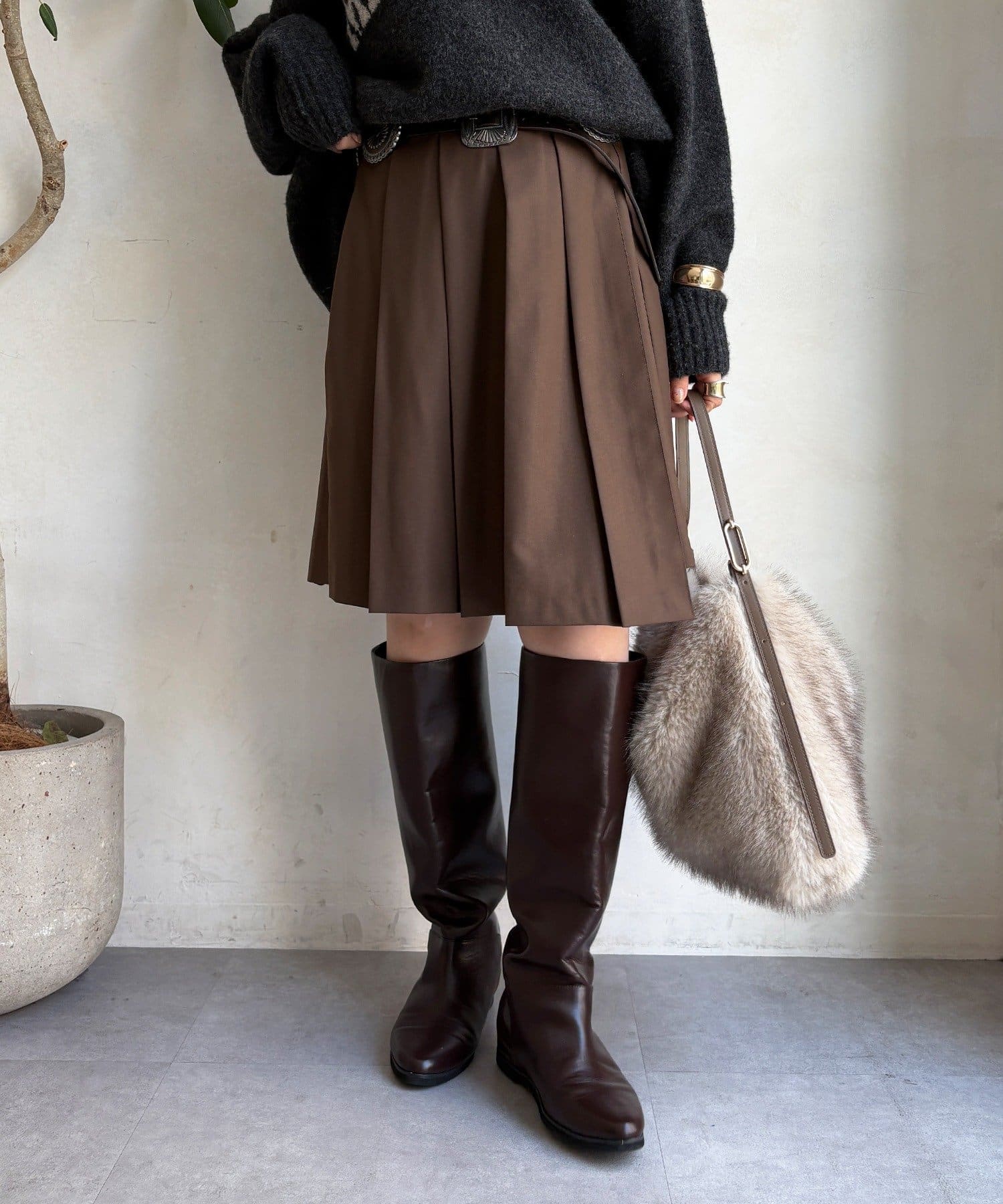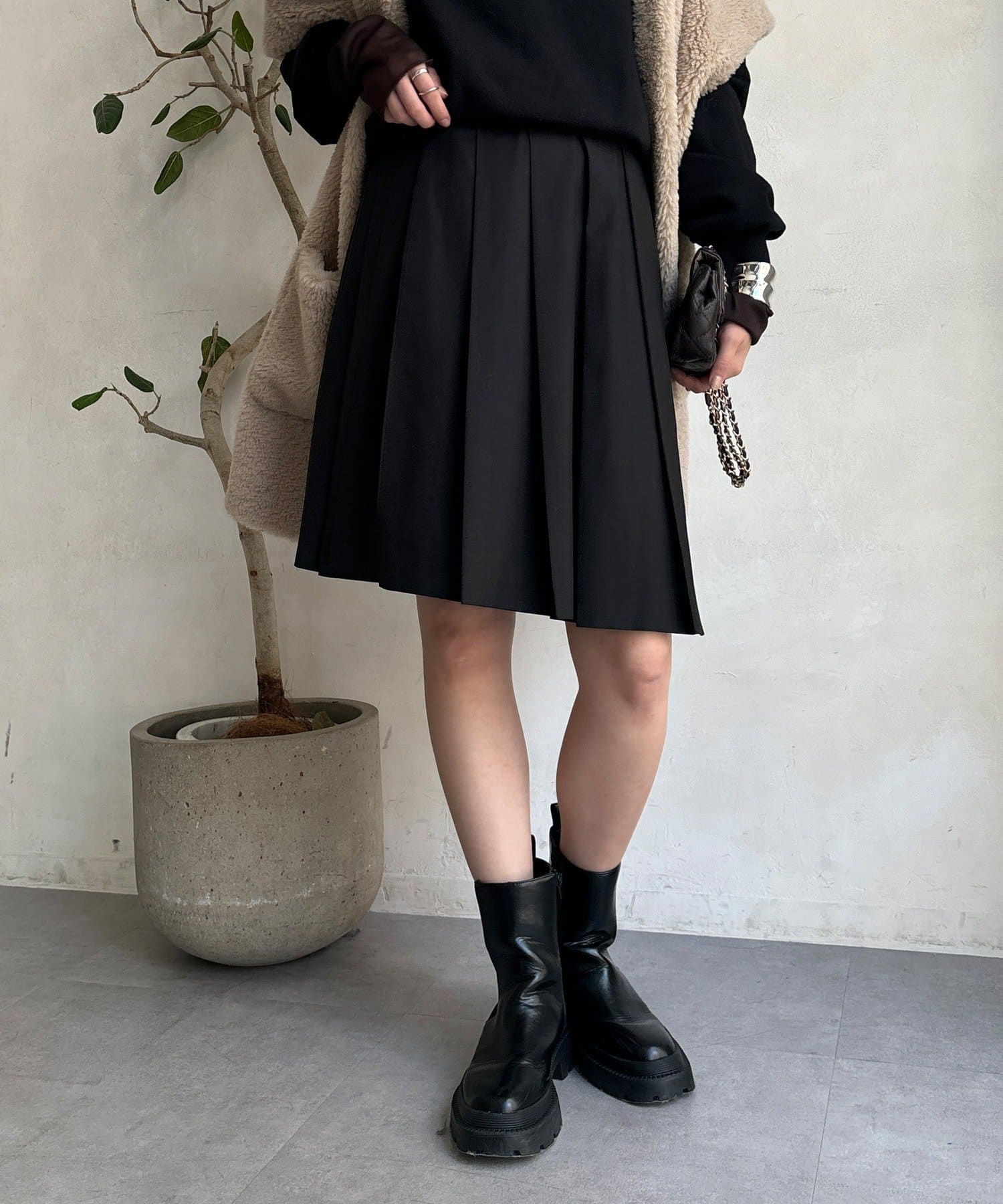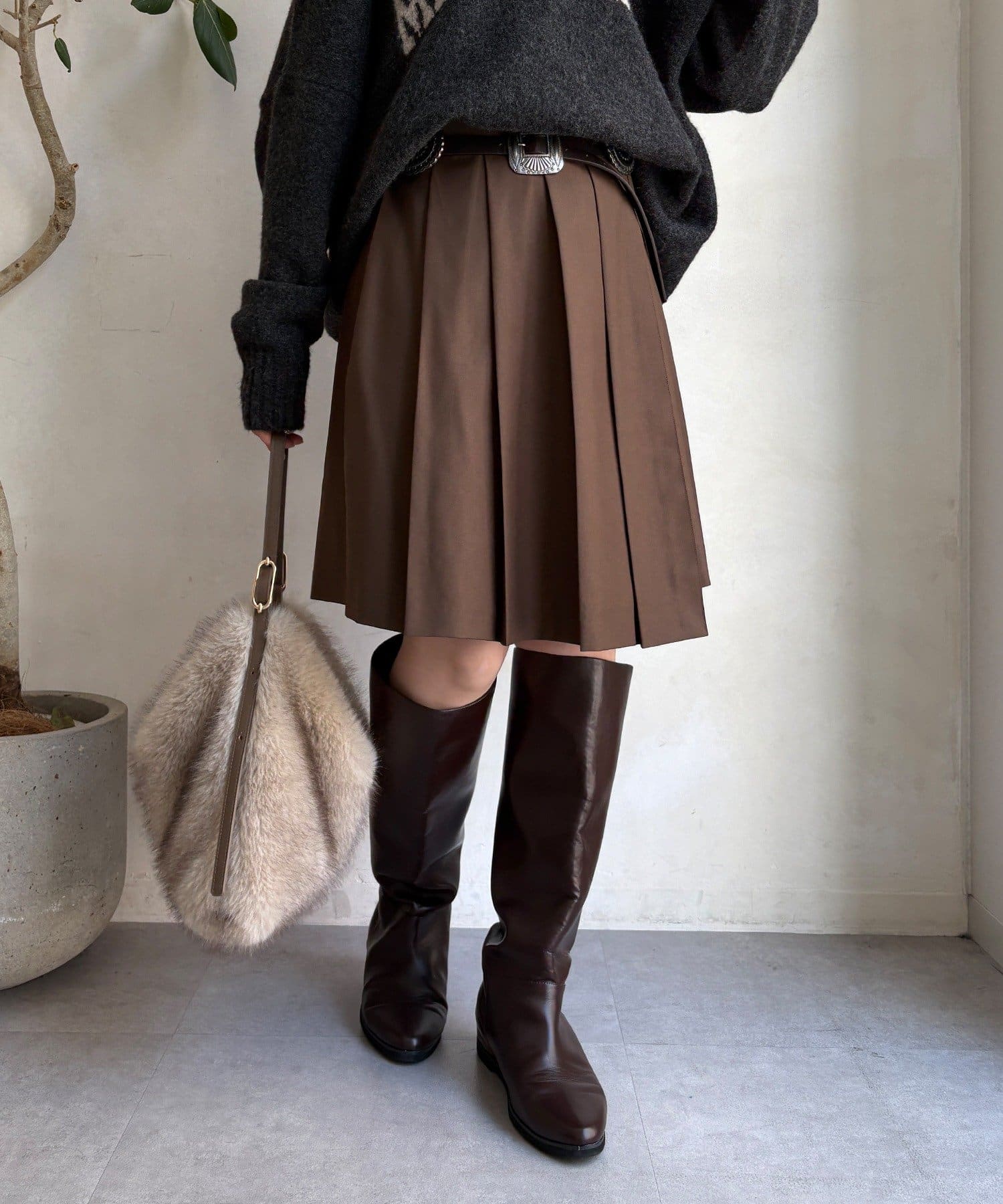 スタイリングを新鮮に仕上げてくれるミドル丈のプリーツスカート。