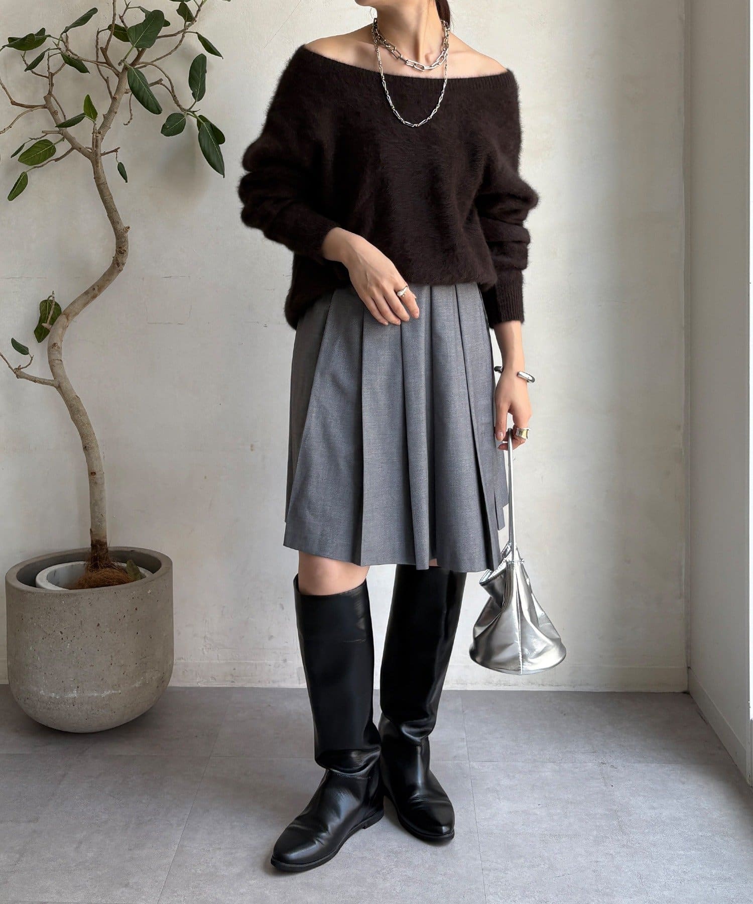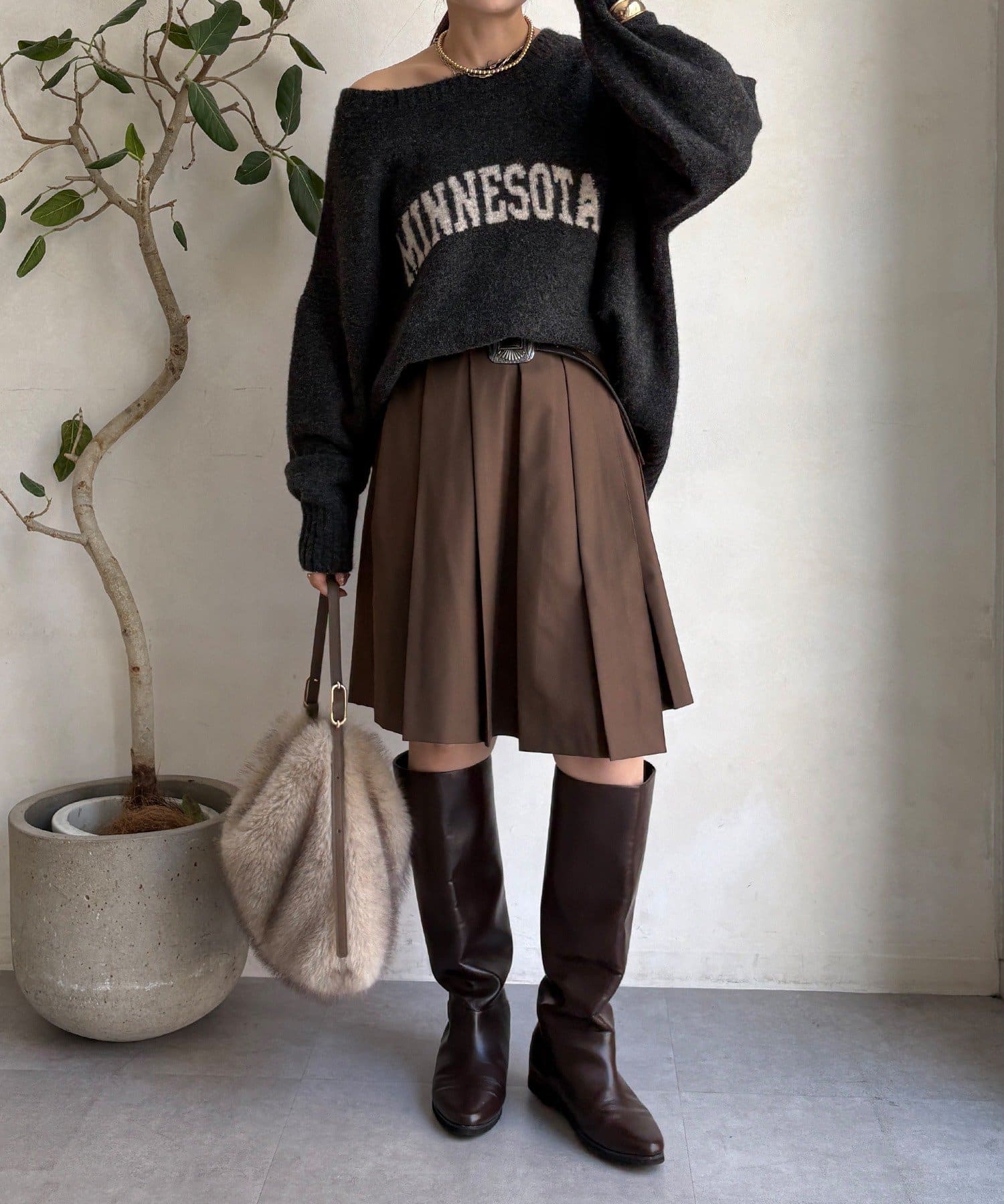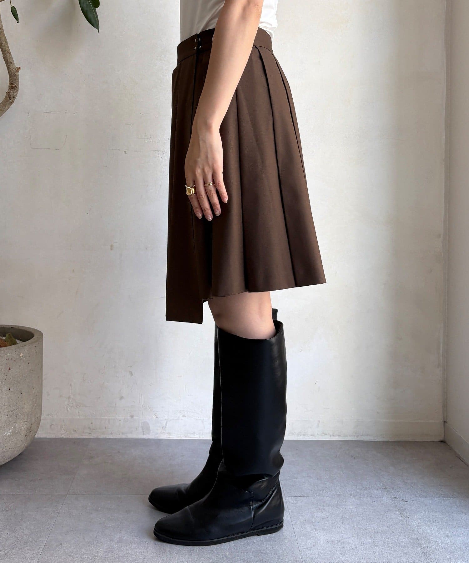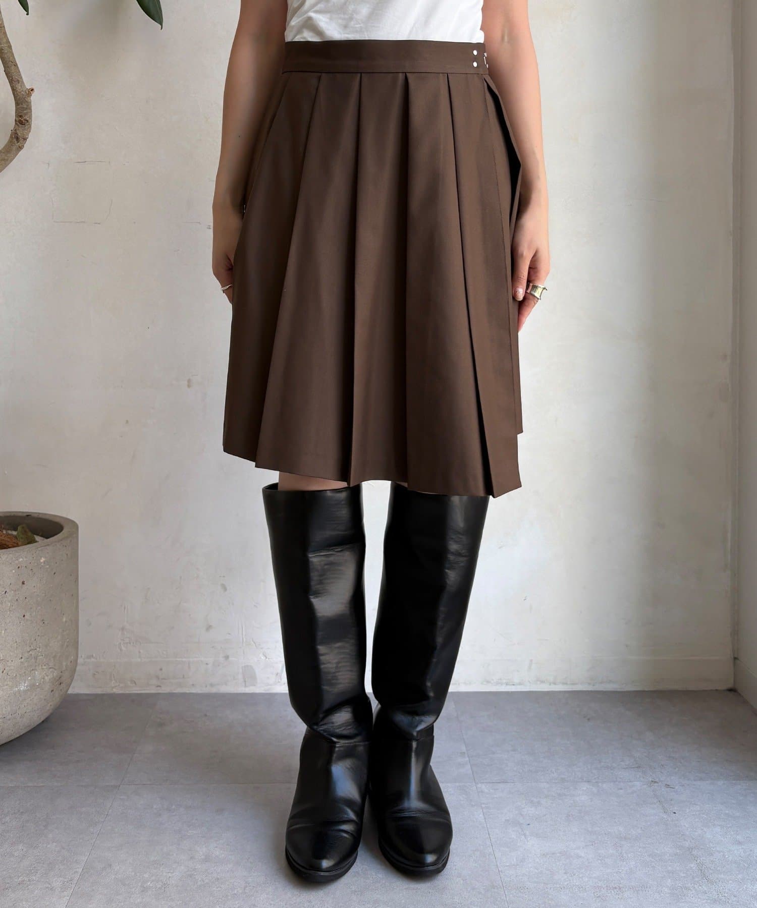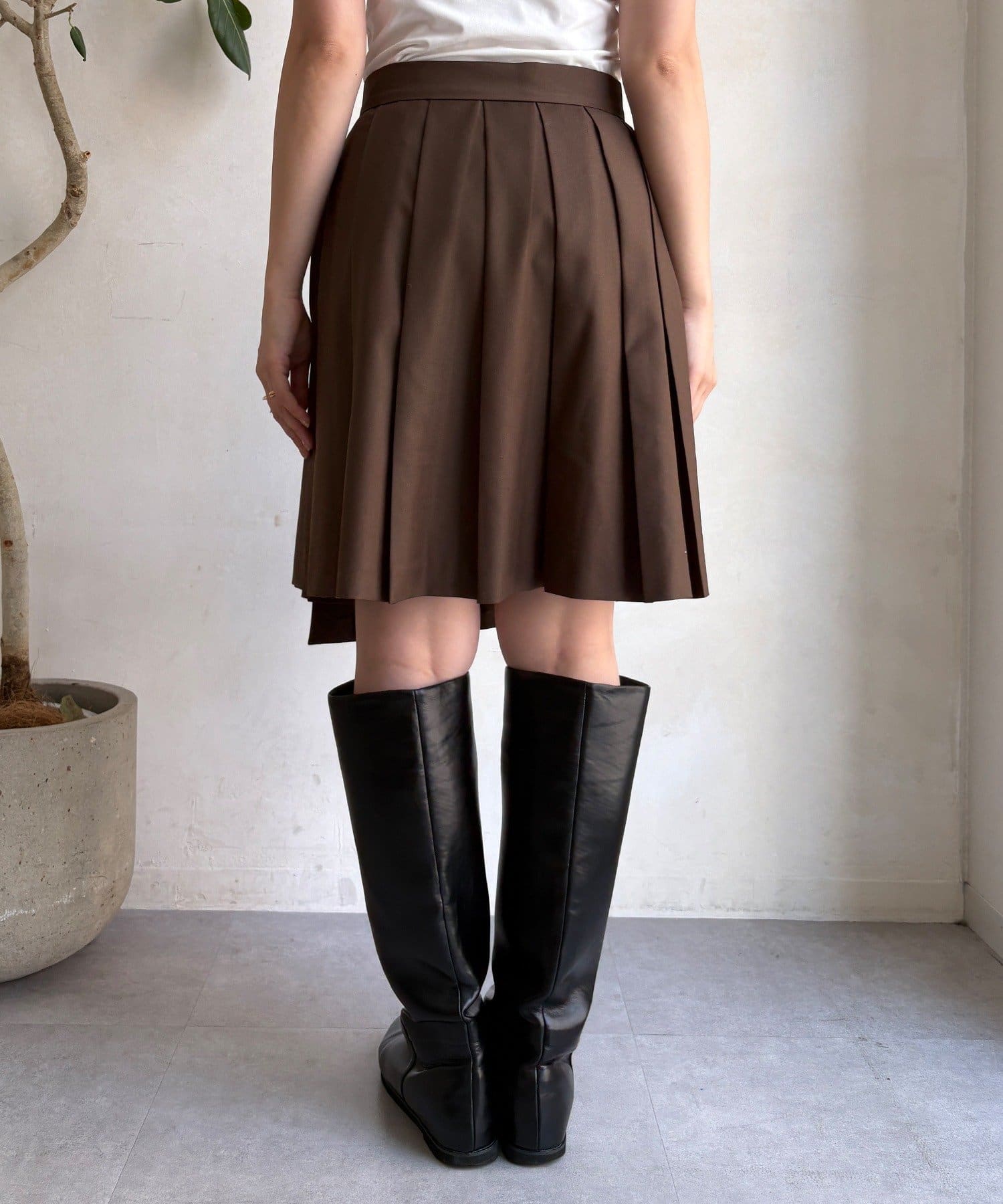 スタイリングを新鮮に仕上げてくれるミドル丈のプリーツスカート。