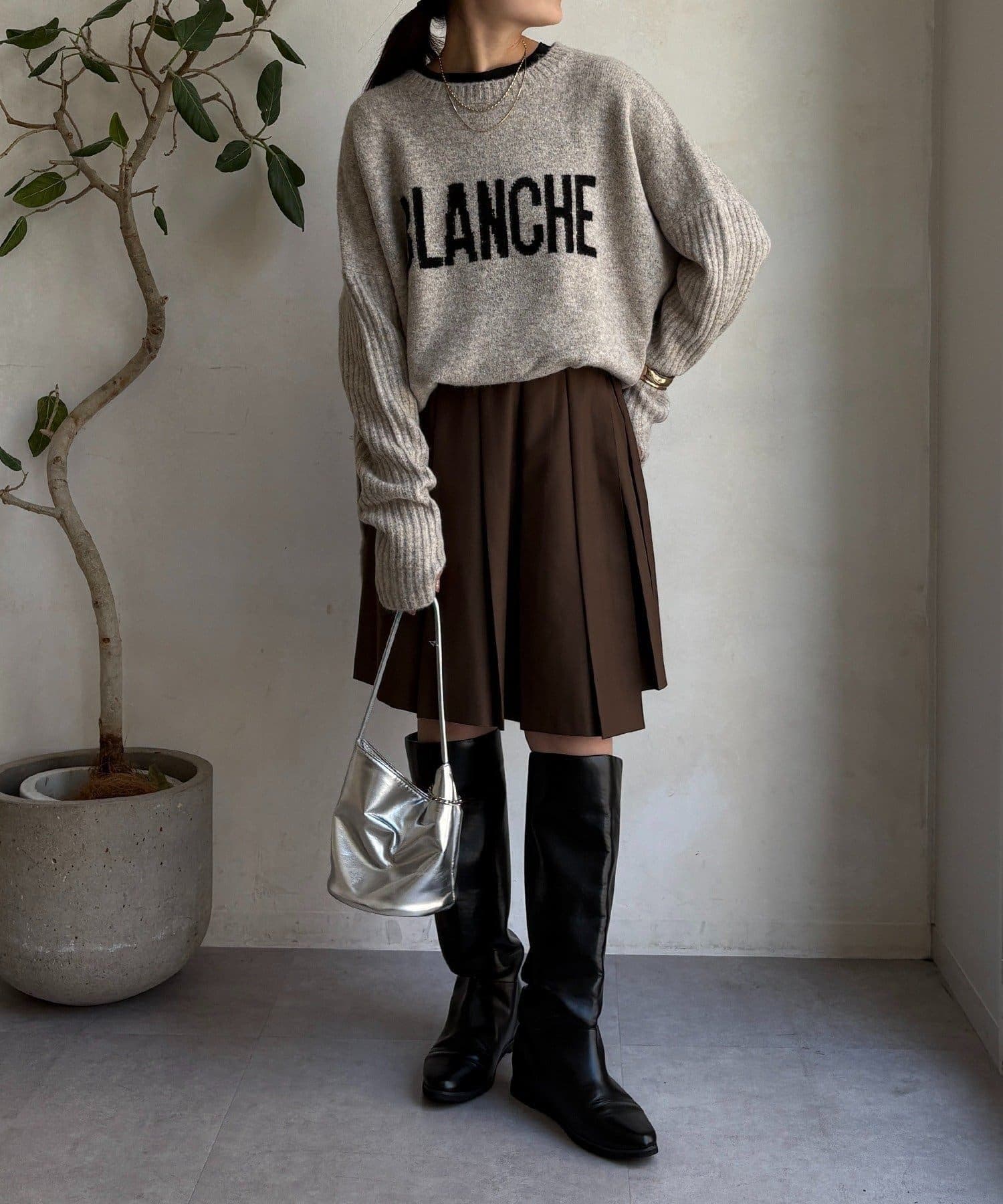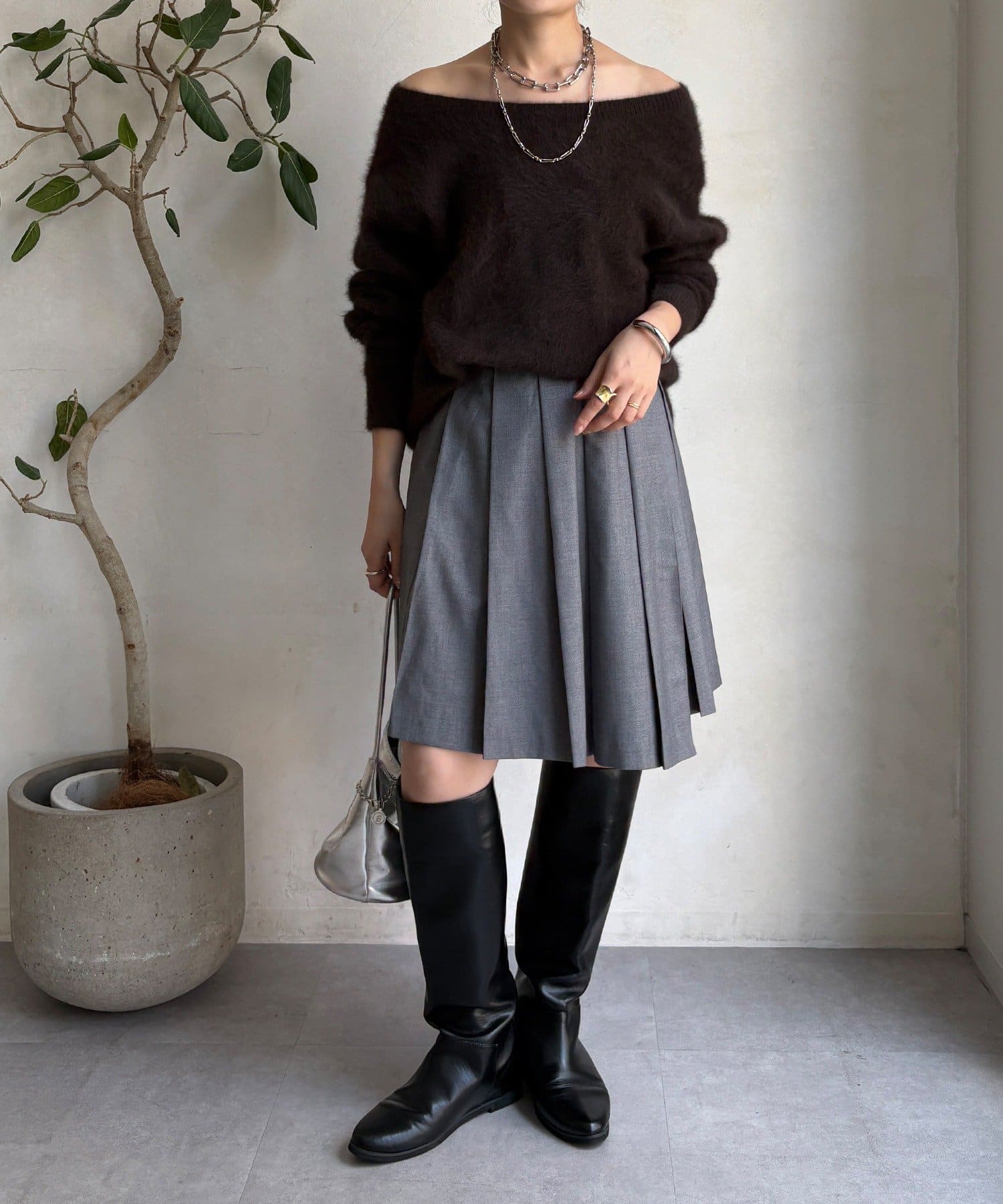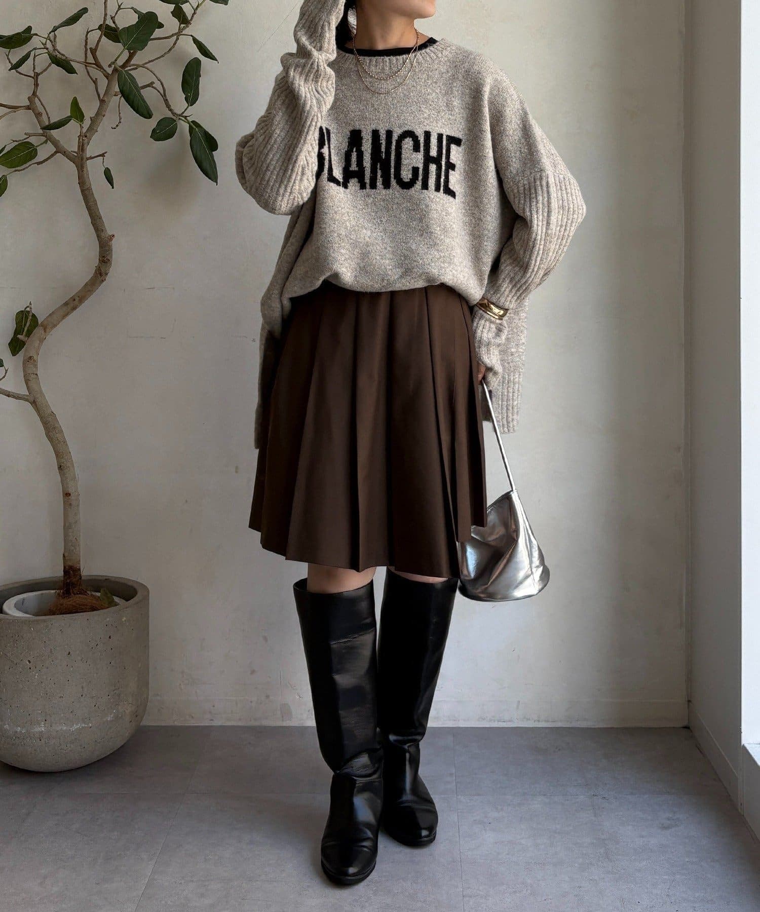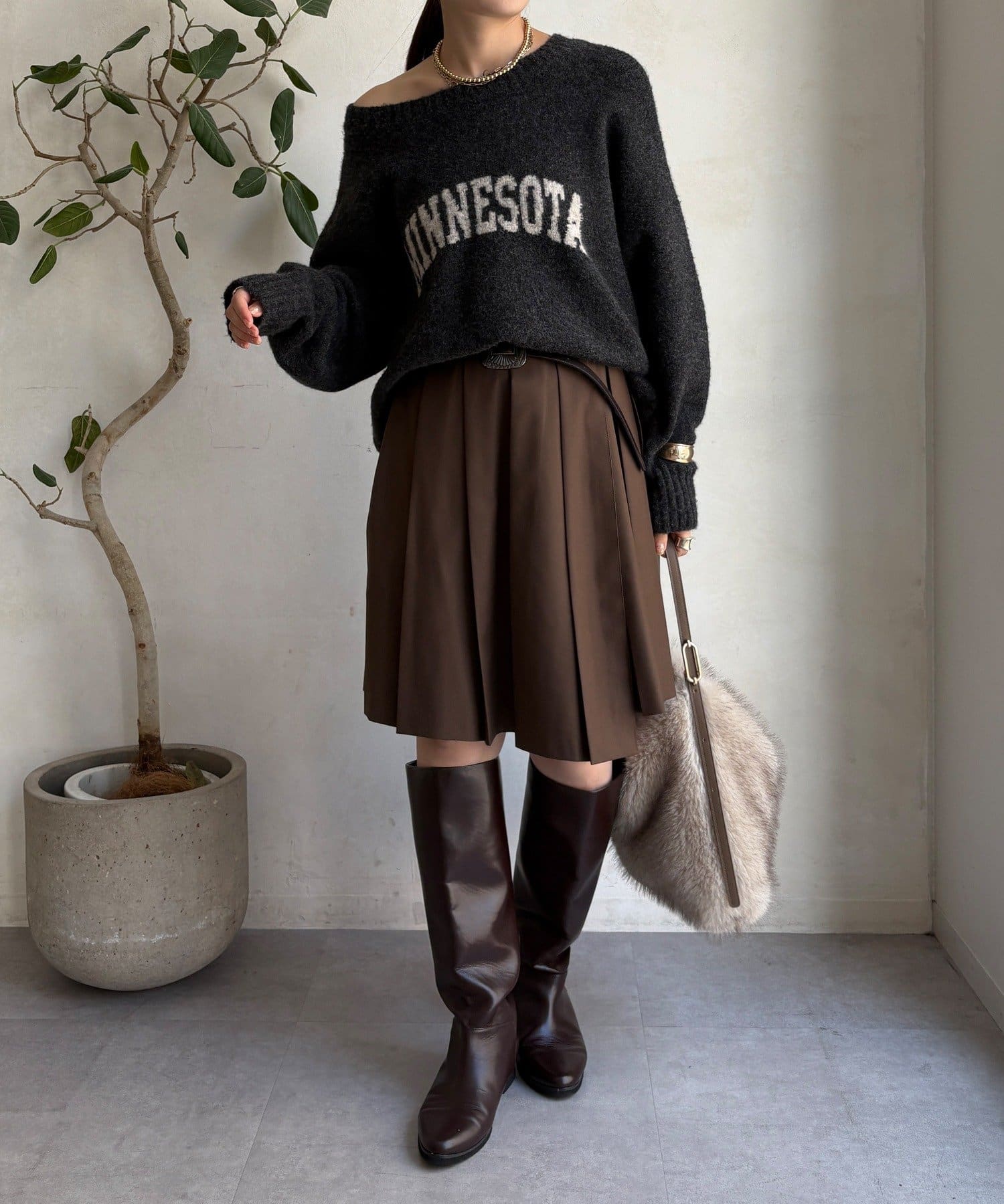 スタイリングを新鮮に仕上げてくれるミドル丈のプリーツスカート。