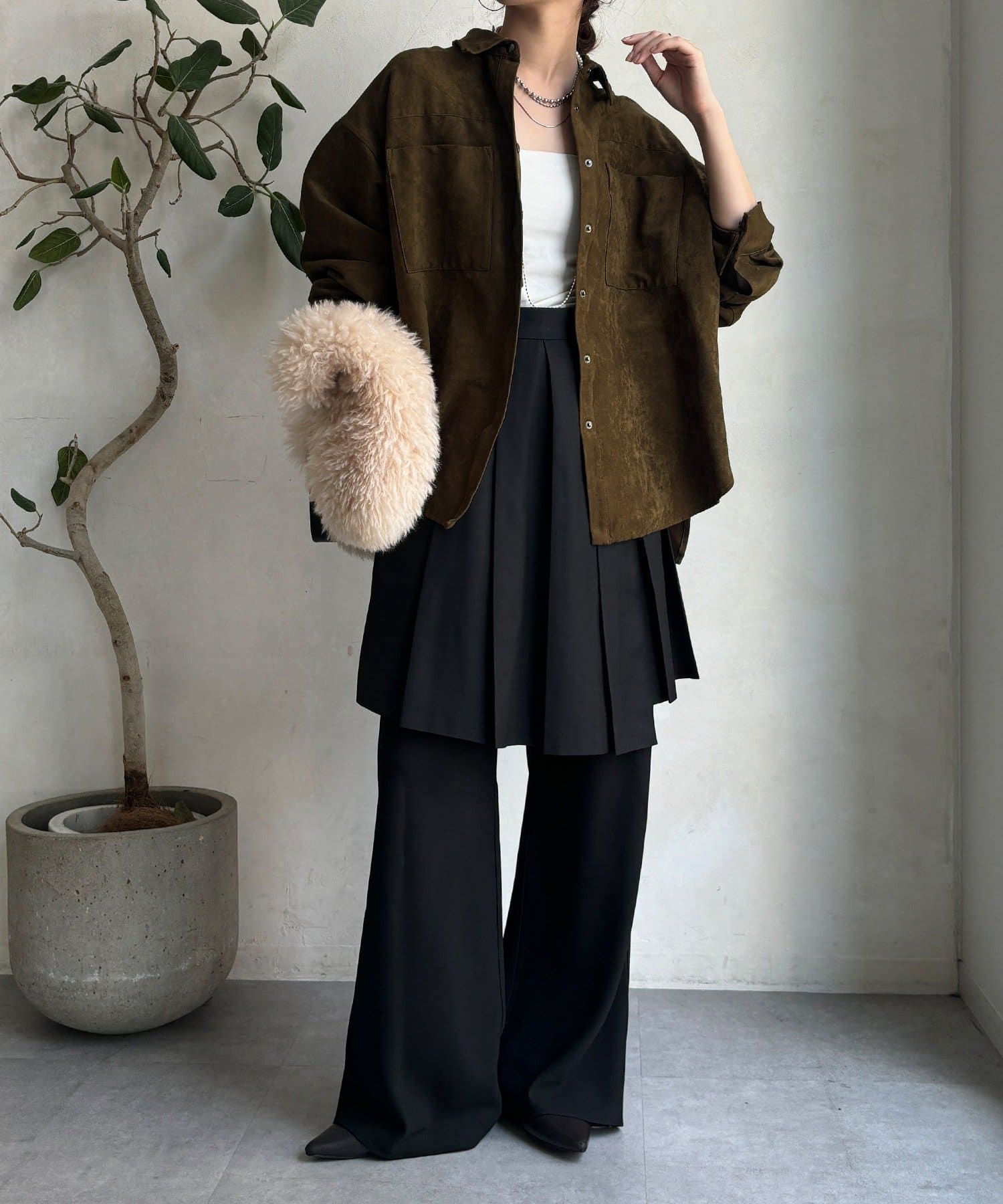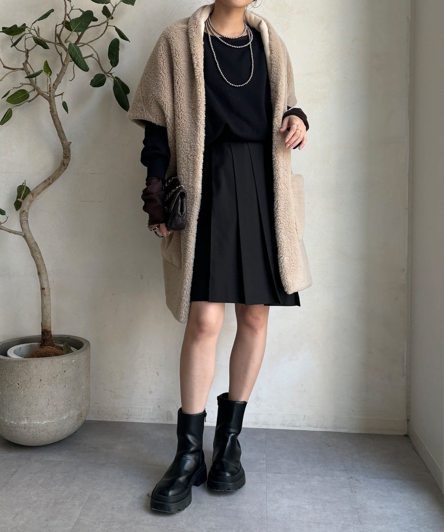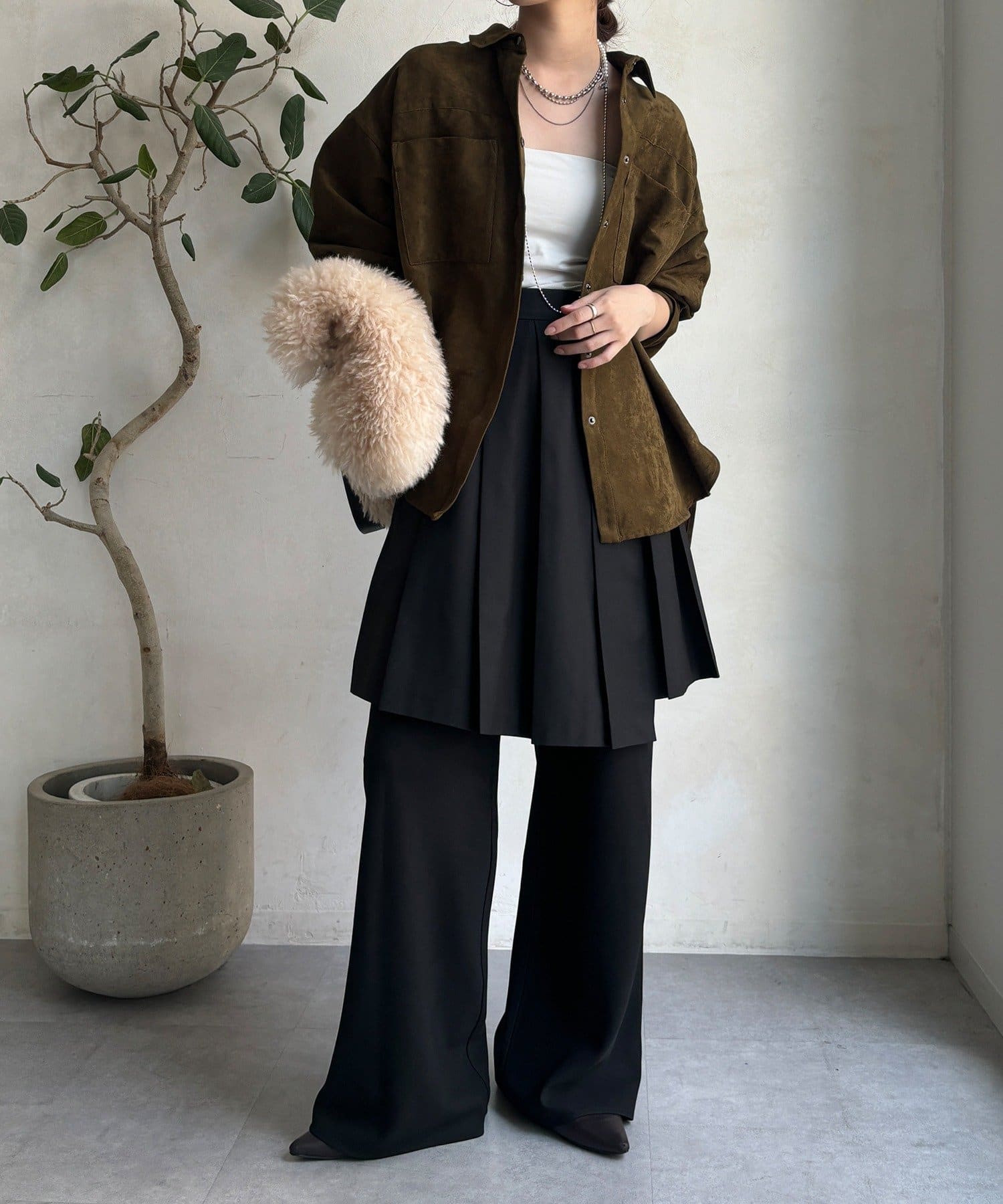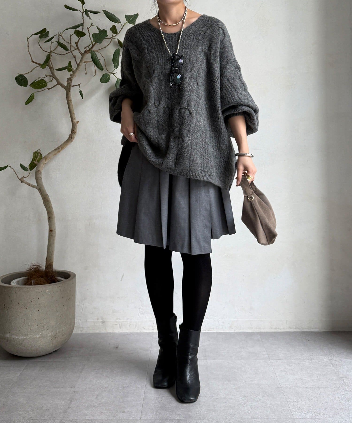 スタイリングを新鮮に仕上げてくれるミドル丈のプリーツスカート。