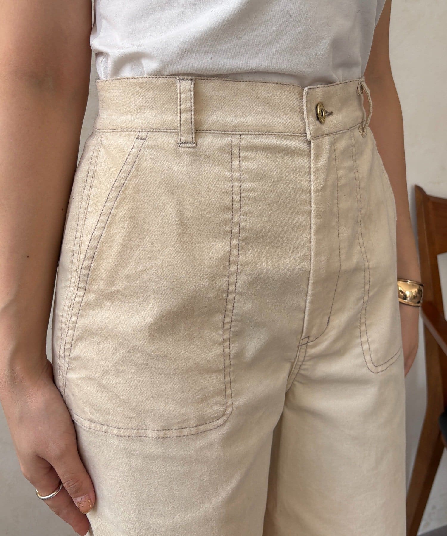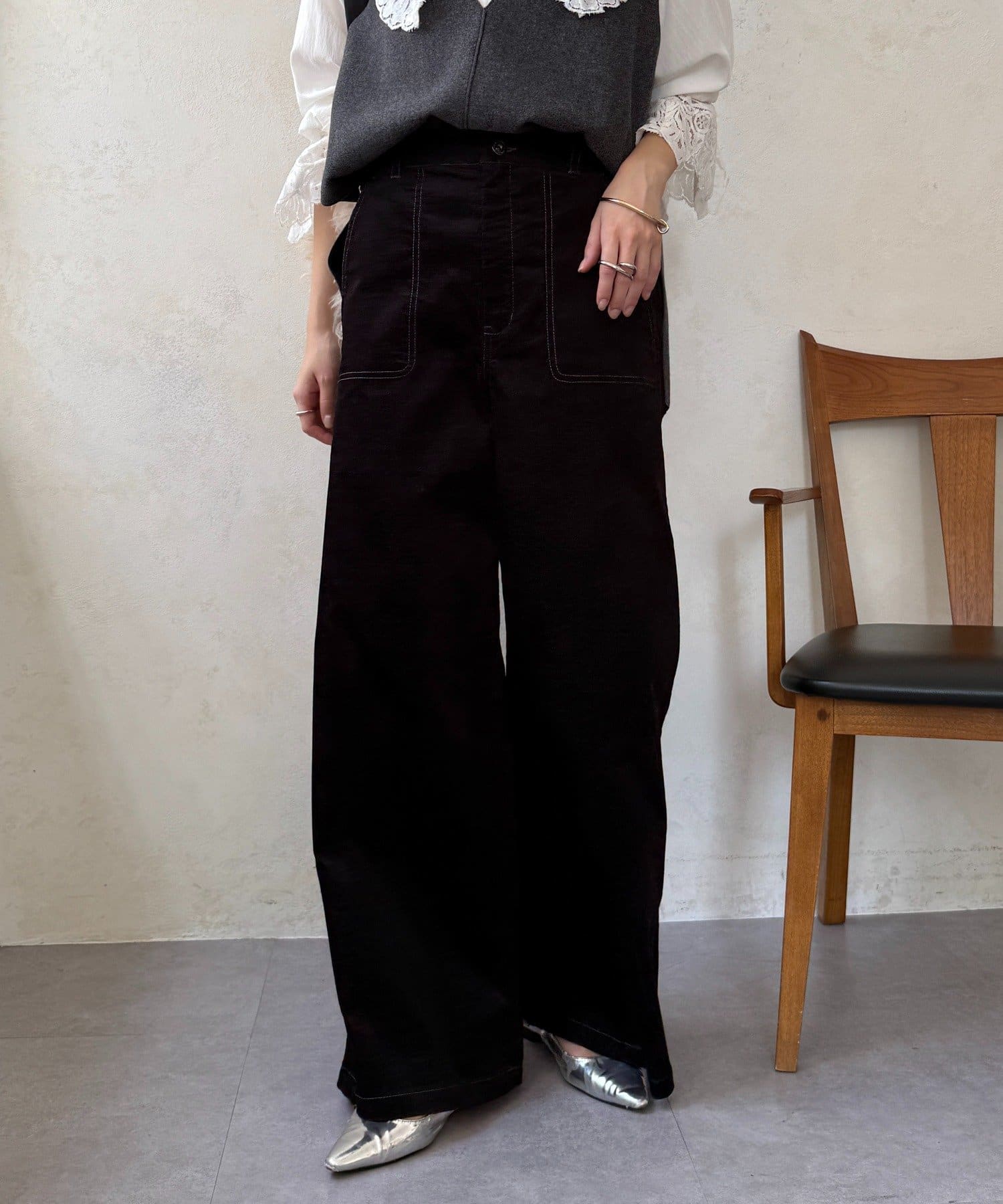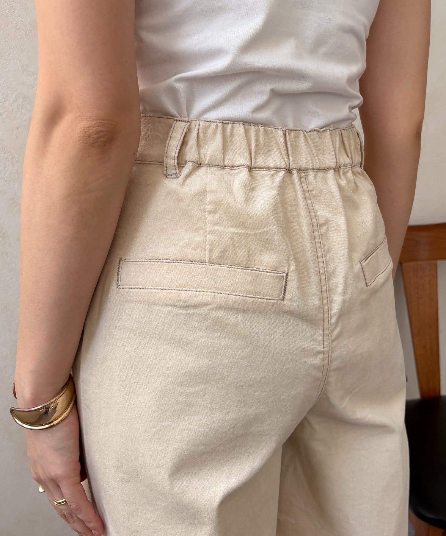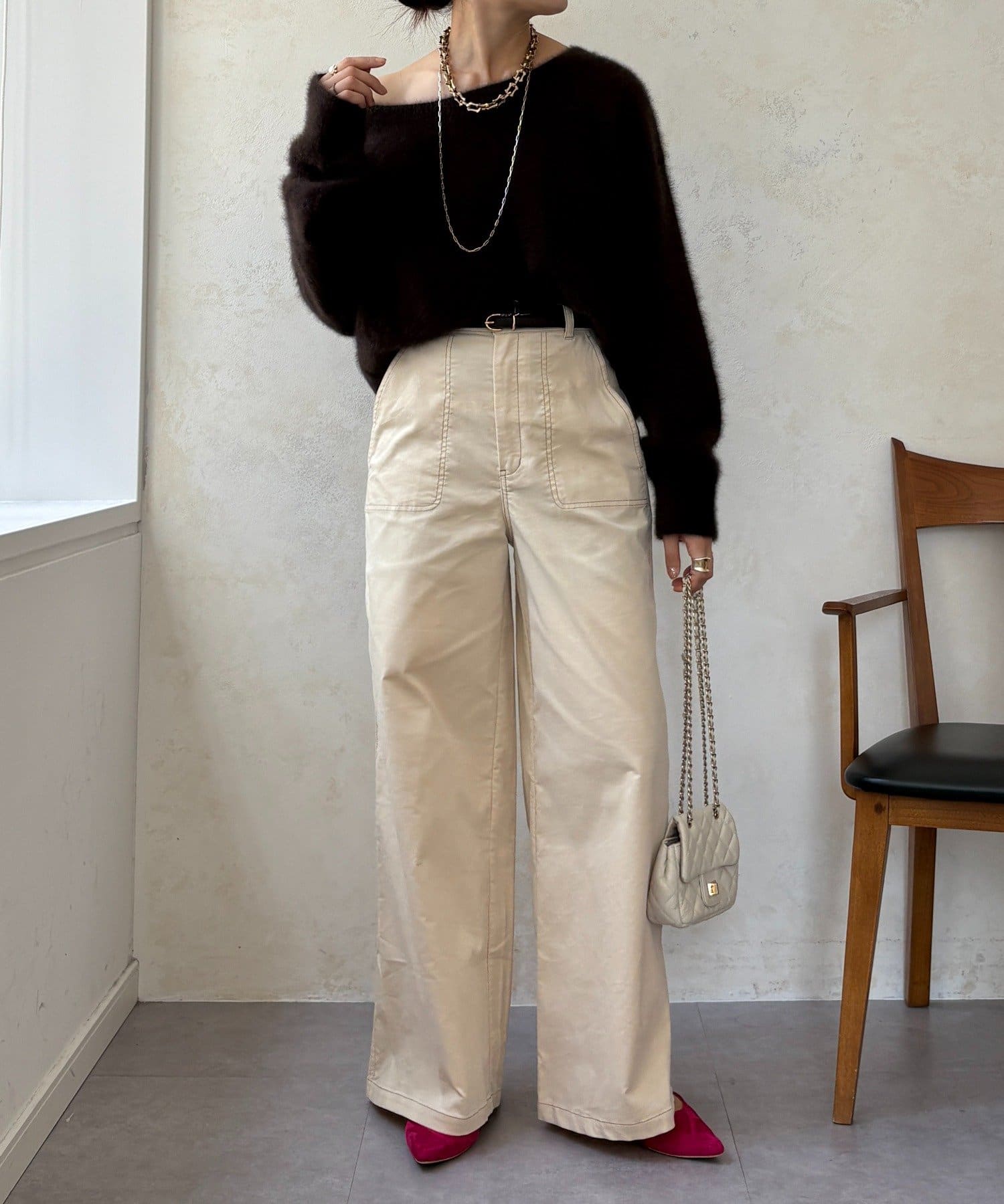 ワイドシルエットが脚のラインを拾わず、ハリ感があるので綺麗なシルエットが保てます。