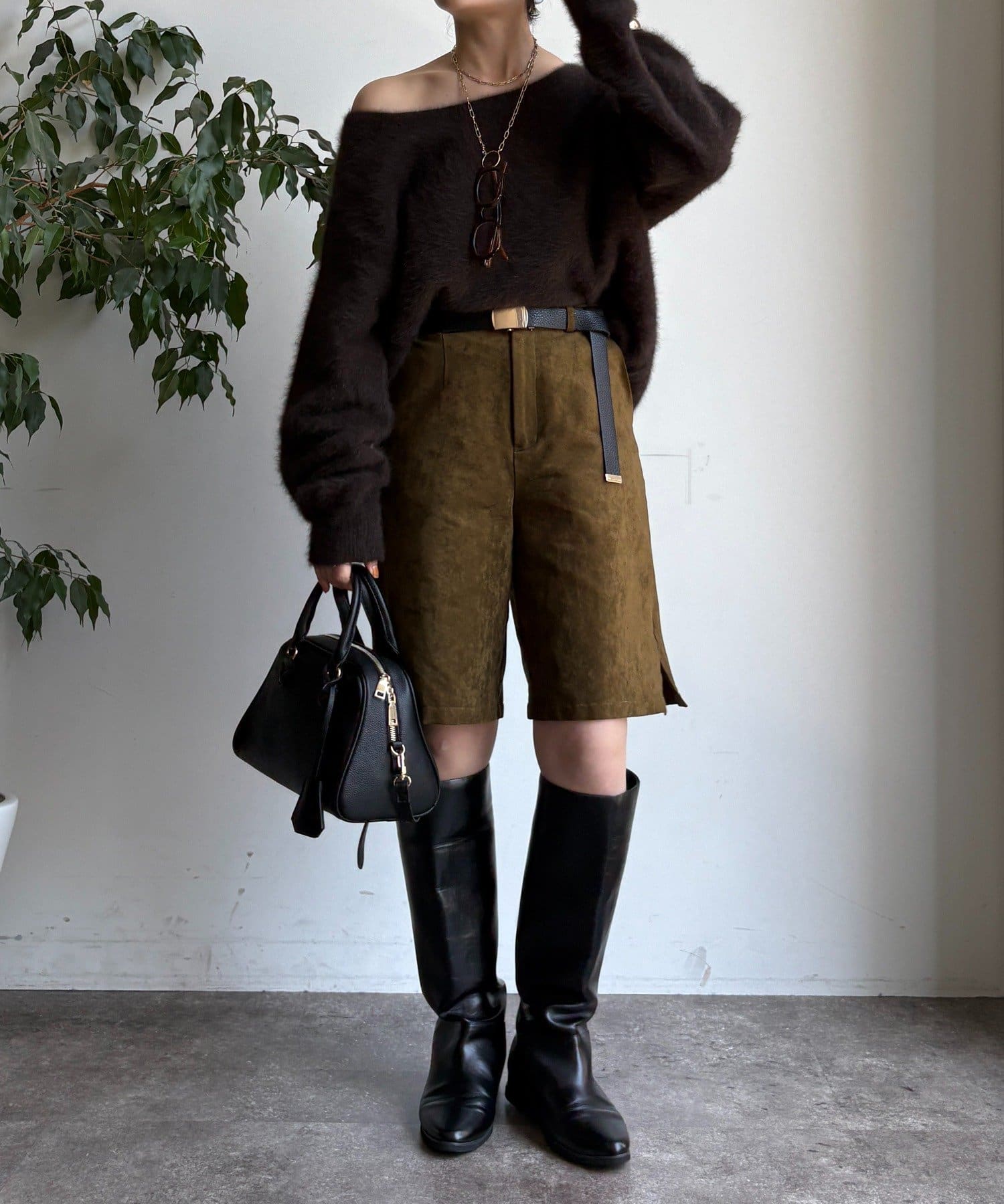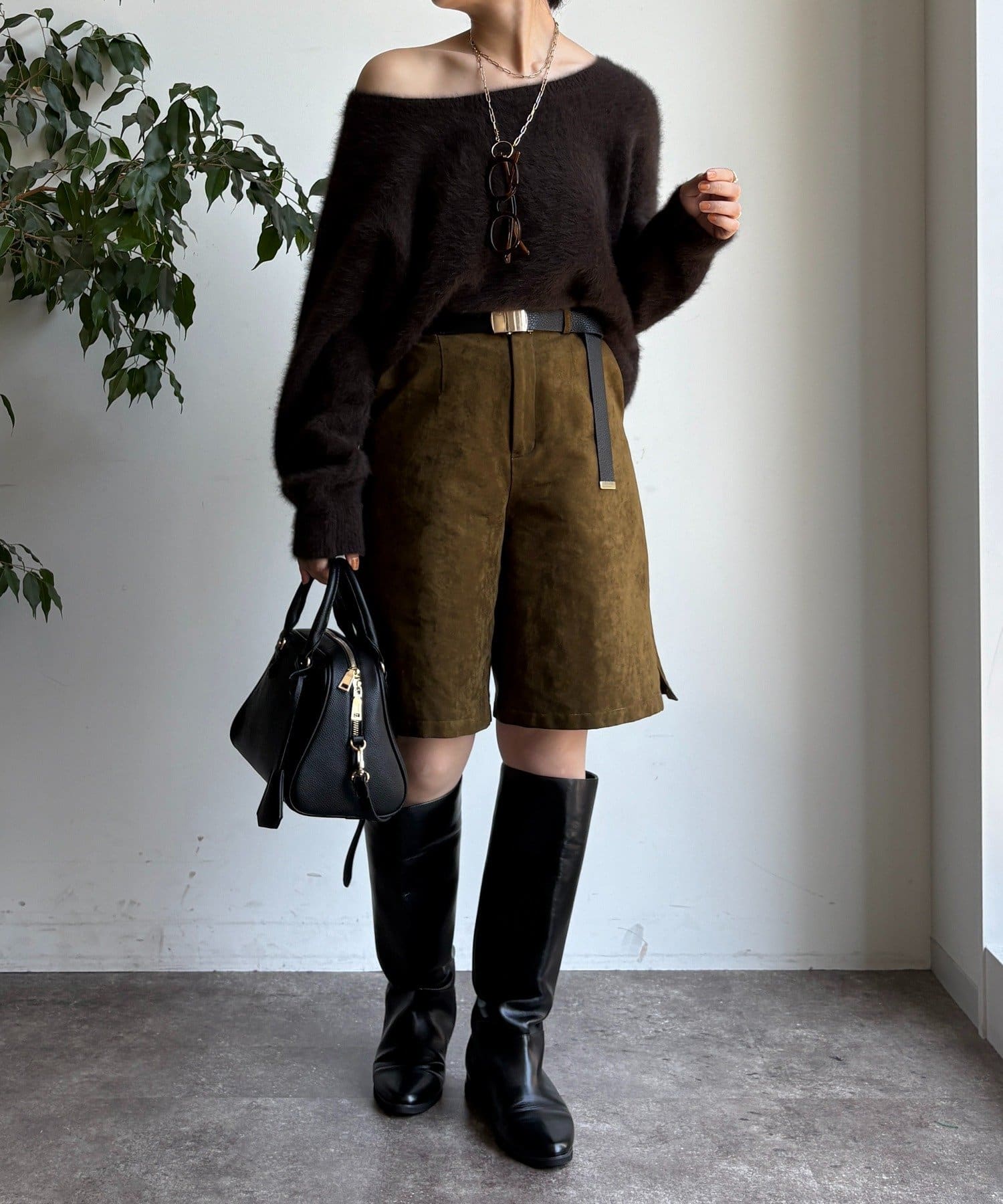 今季トレンドのスウェード素材を使用したショートパンツ。