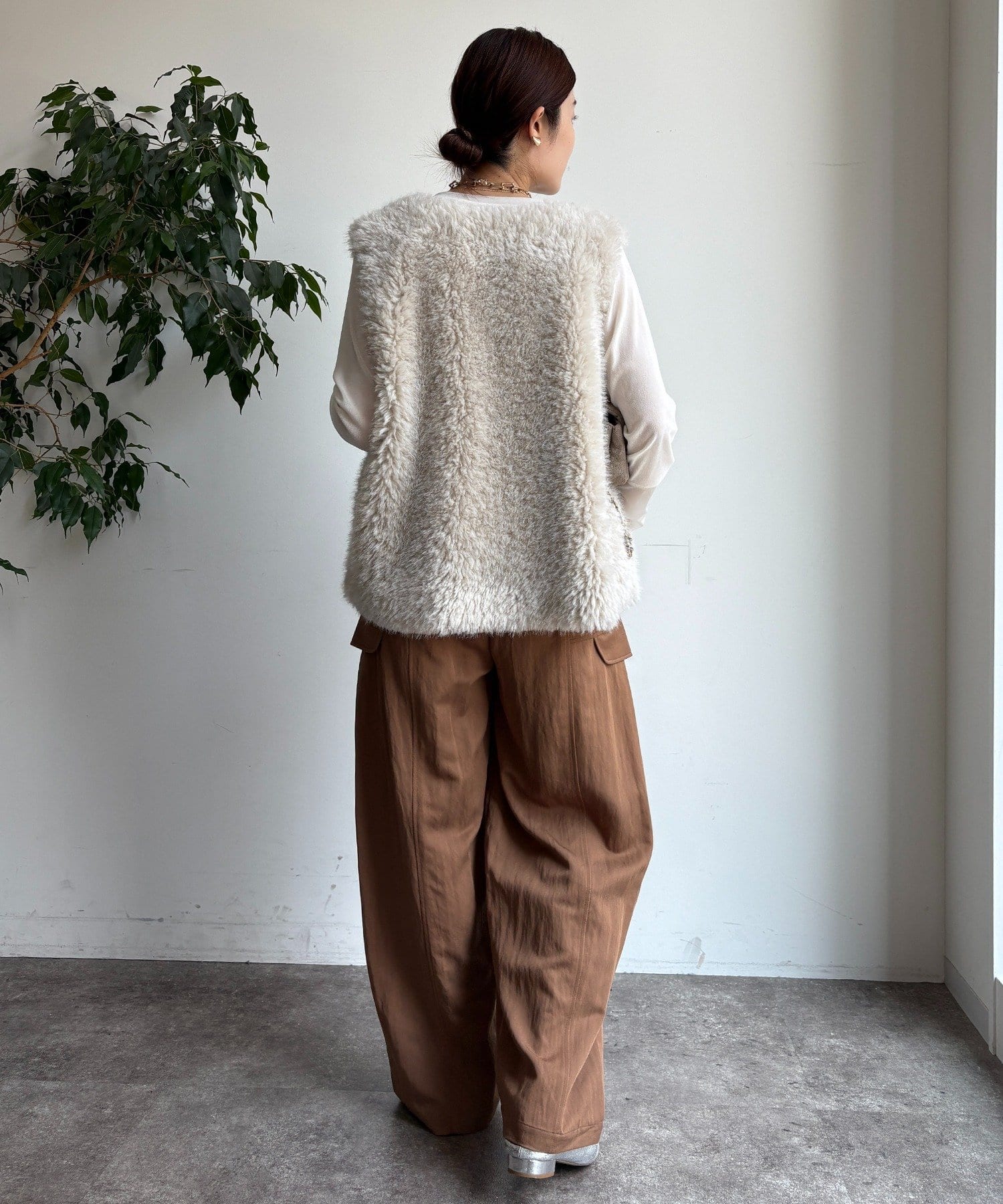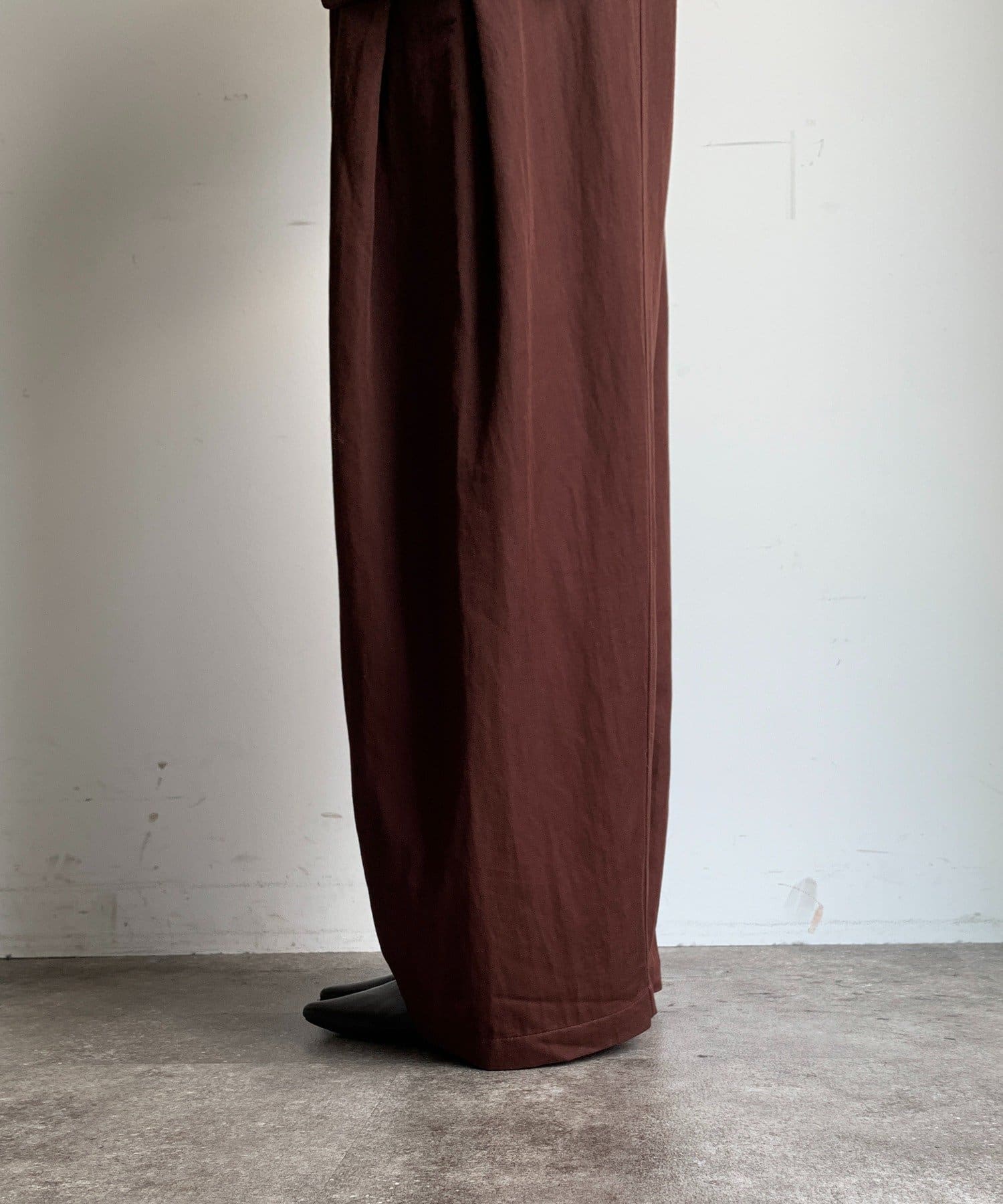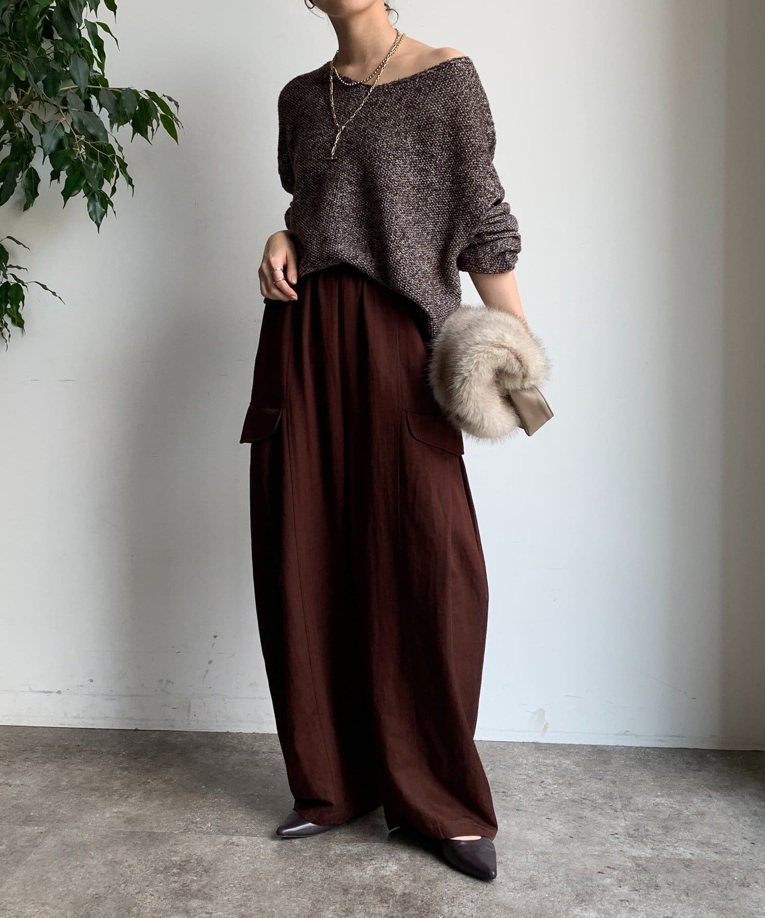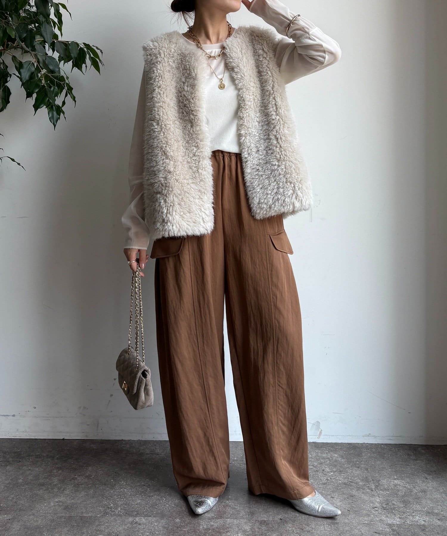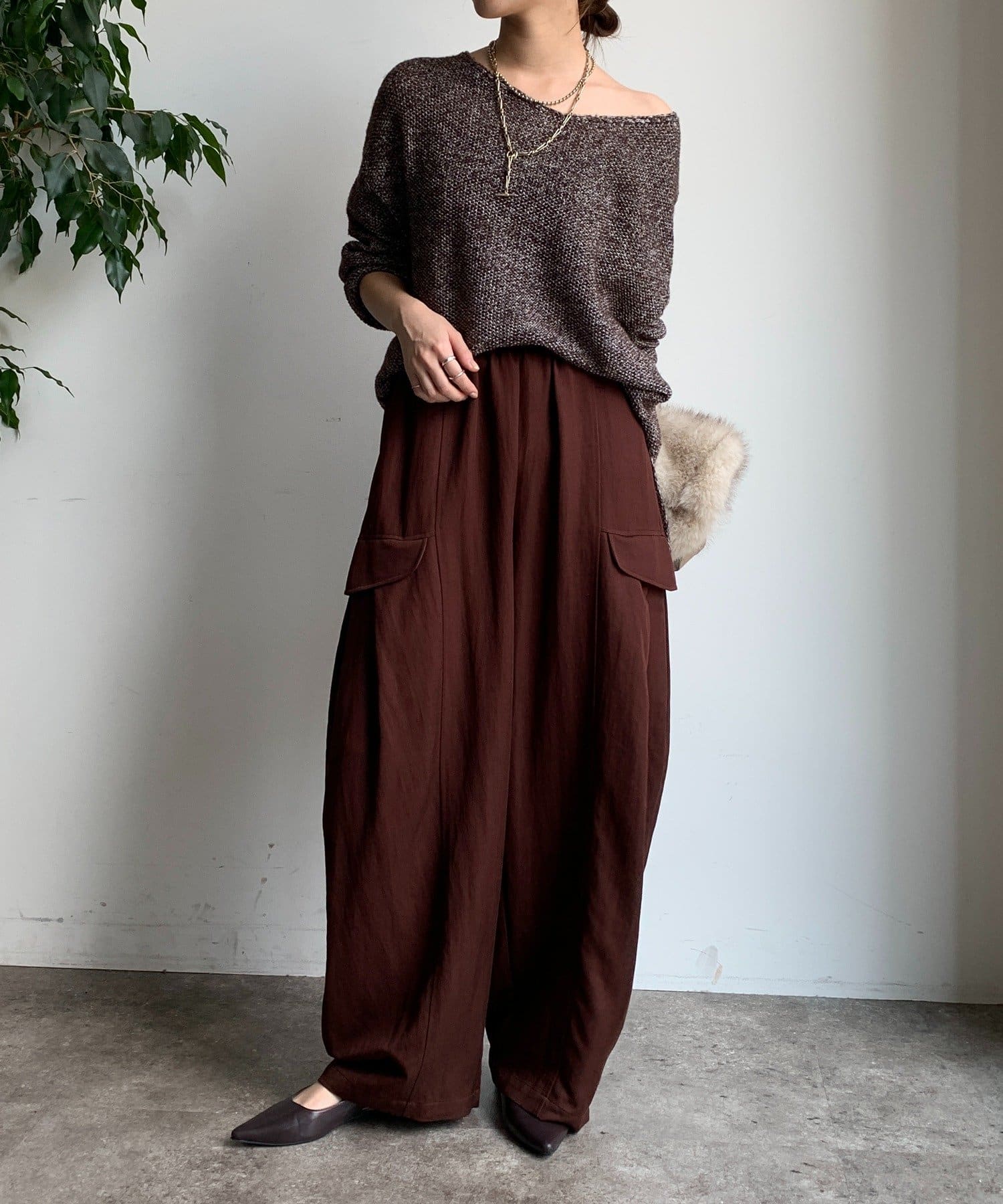 ポケット下に施したタックが、立体感のあるカーブシルエットを生み出し、抜け感のある美しいラインを演出。