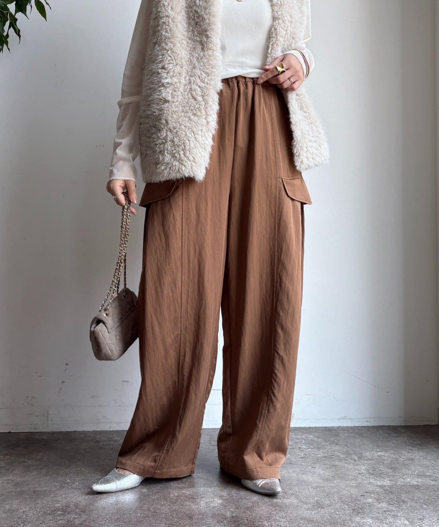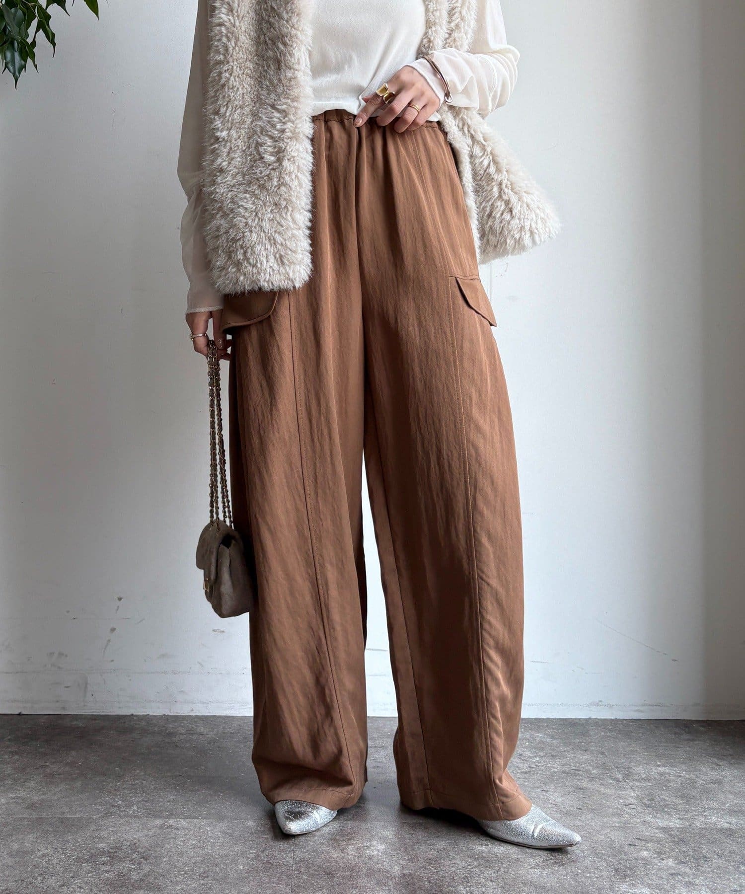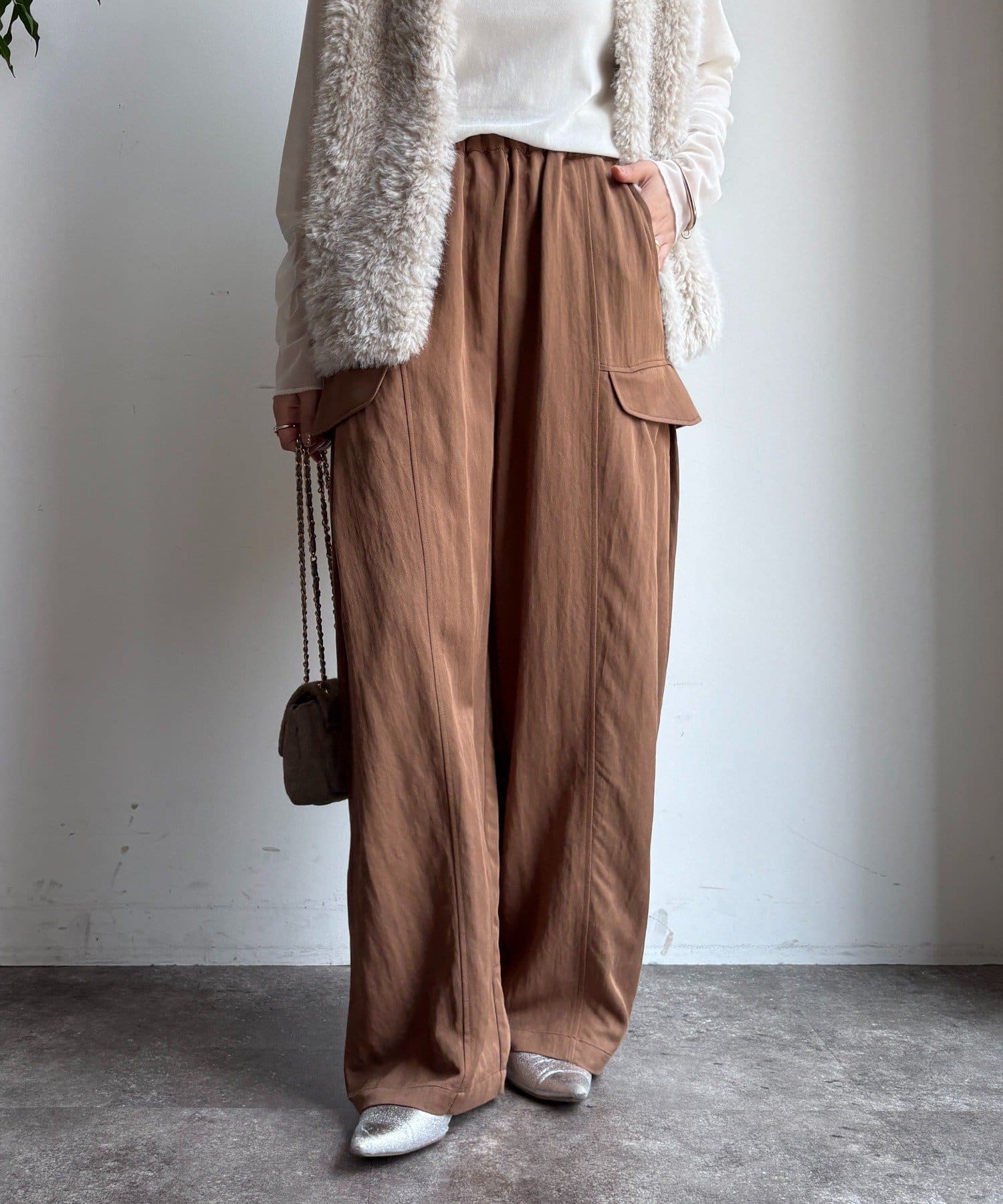 マニッシュに着用できるカーゴパンツに女性らしいシルエットや素材でこだわったパンツ!