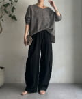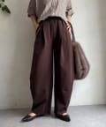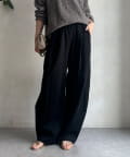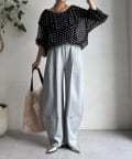 ウエストは総ゴム仕様でストレスフリーで、トップスインもアウトもバランスよく決まり、オン・オフ問わず使える万能アイテムですよ。