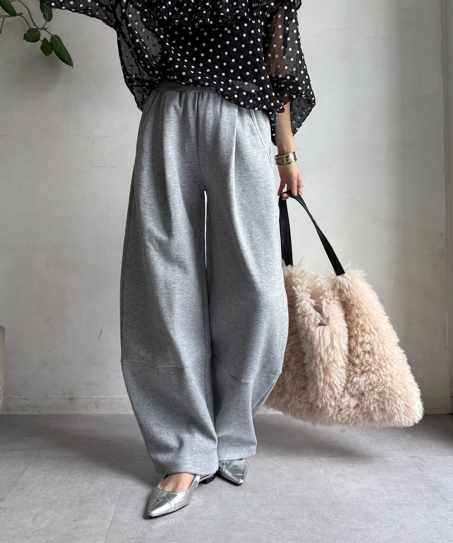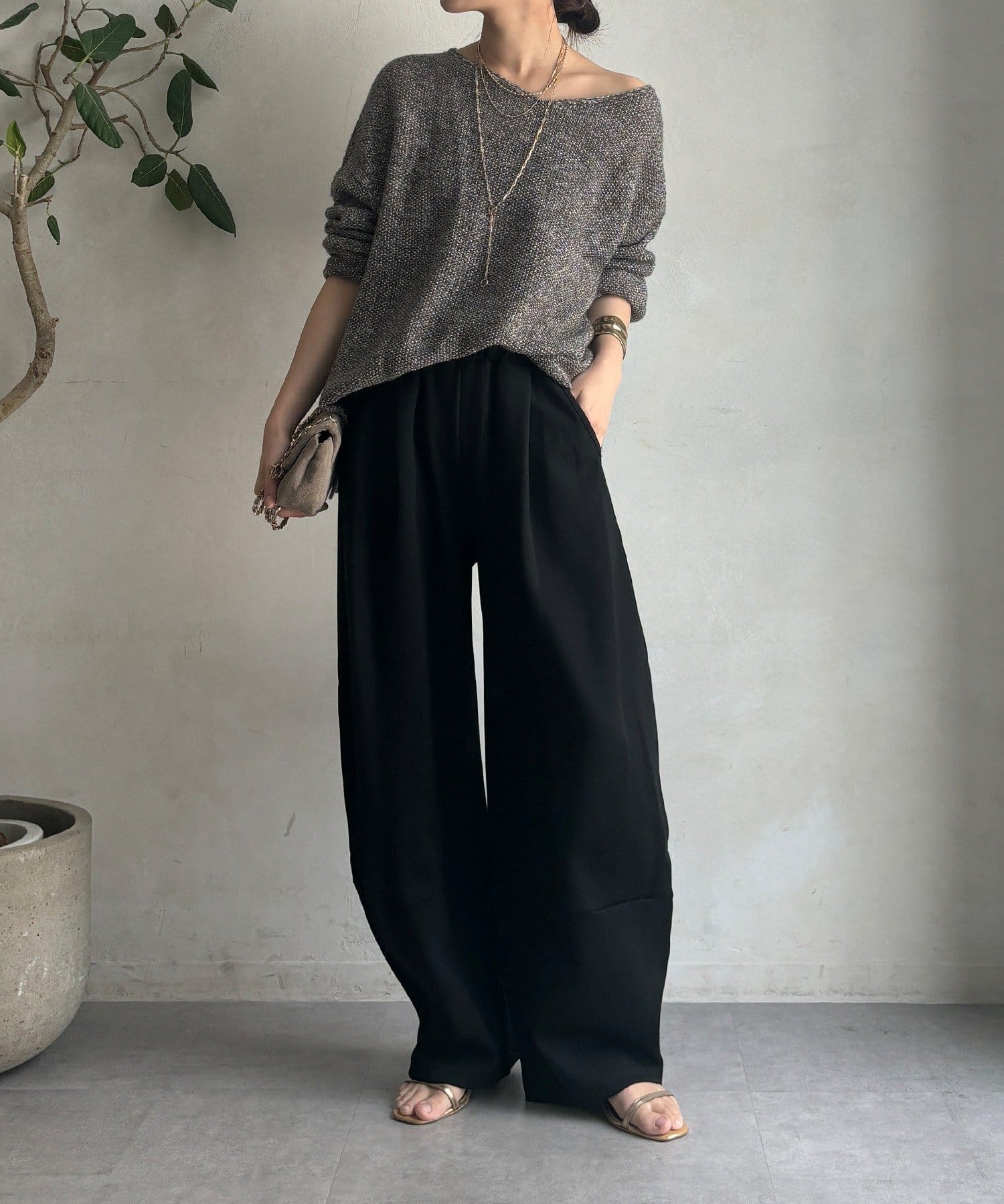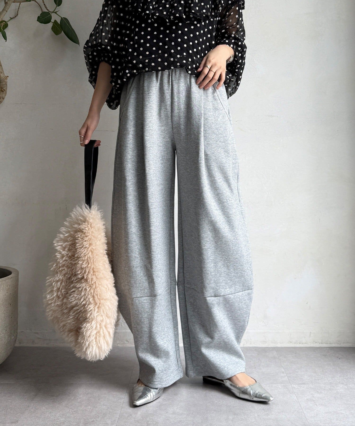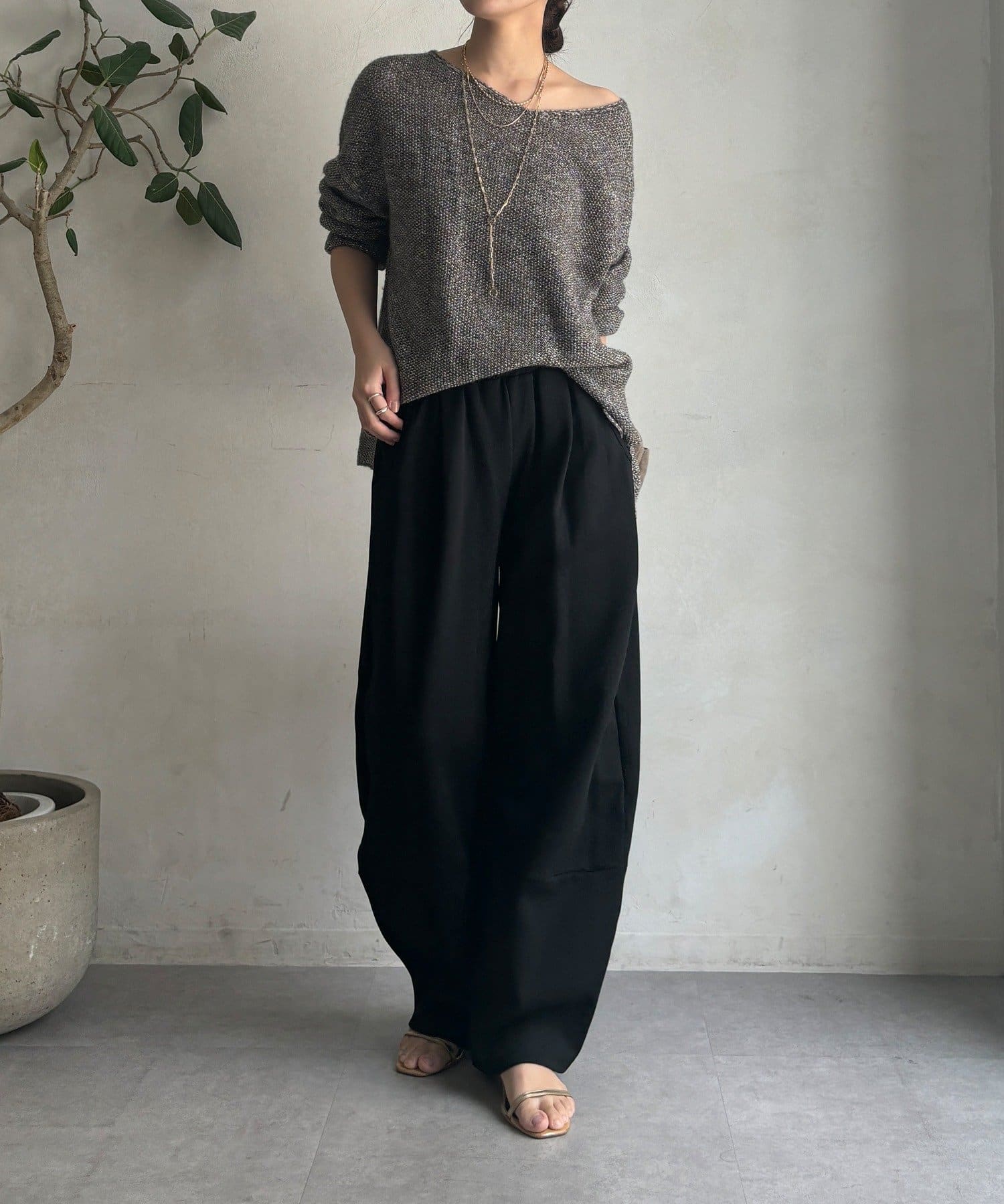 ウエストは総ゴム仕様でストレスフリーで、トップスインもアウトもバランスよく決まり、オン・オフ問わず使える万能アイテムですよ。