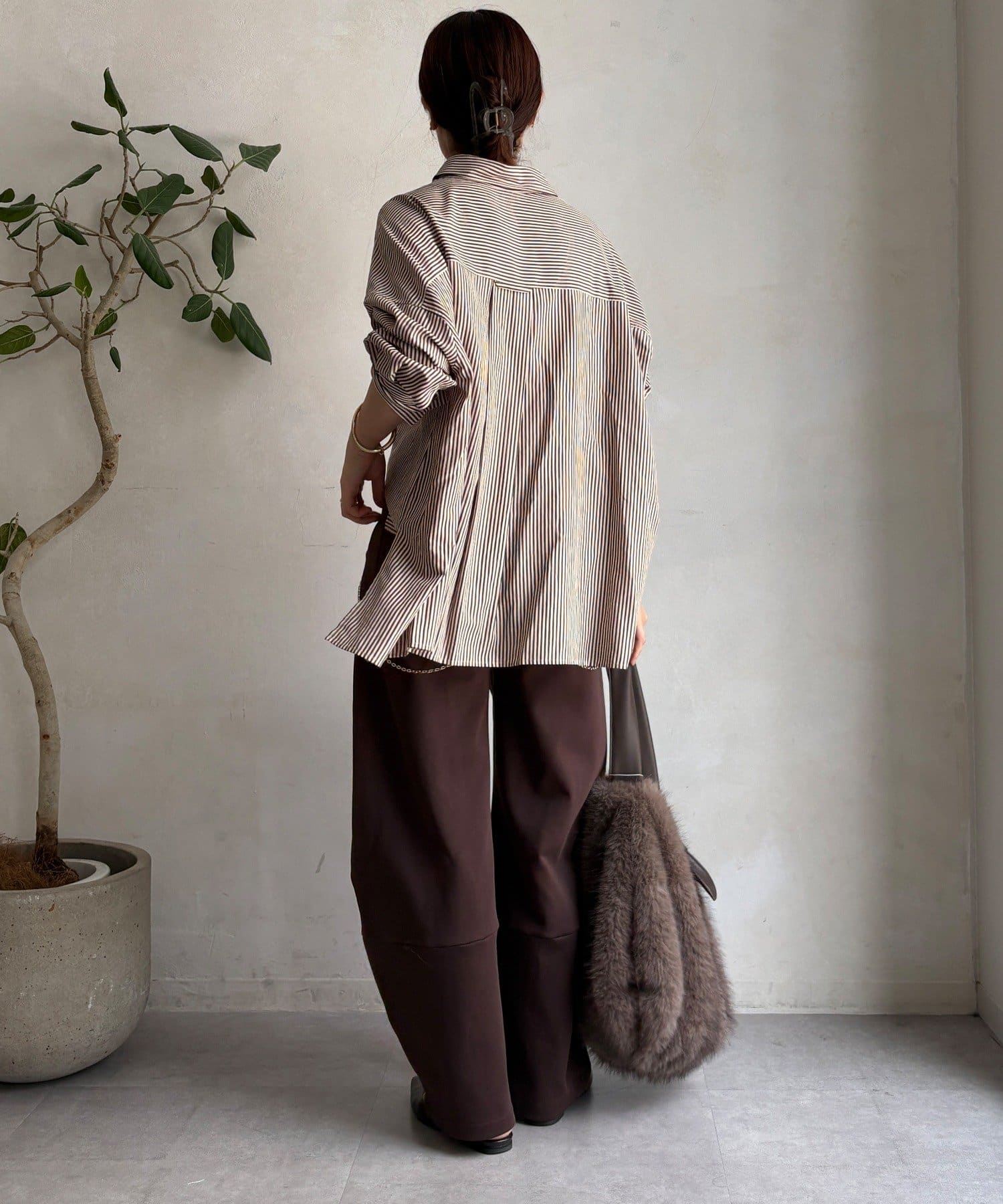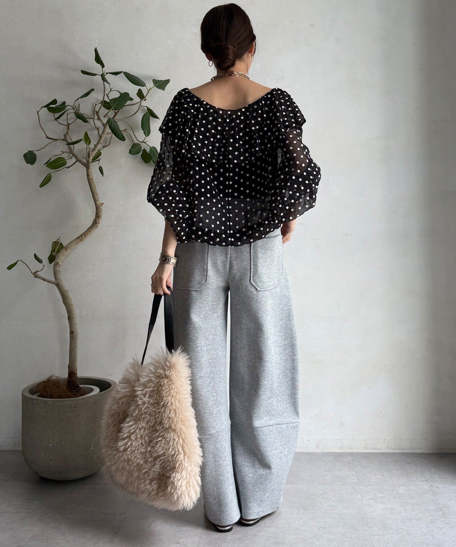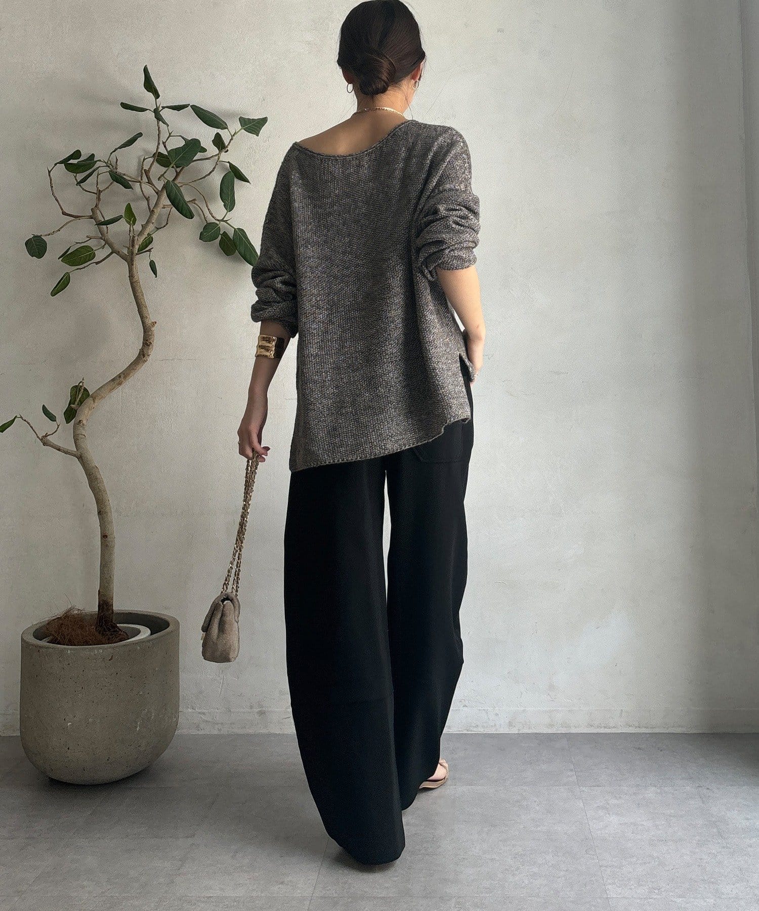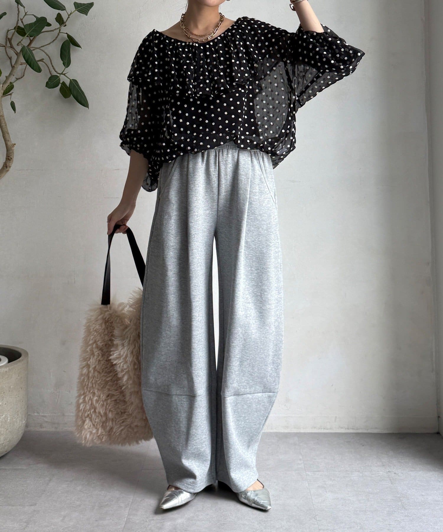 ウエストは総ゴム仕様でストレスフリーで、トップスインもアウトもバランスよく決まり、オン・オフ問わず使える万能アイテムですよ。
