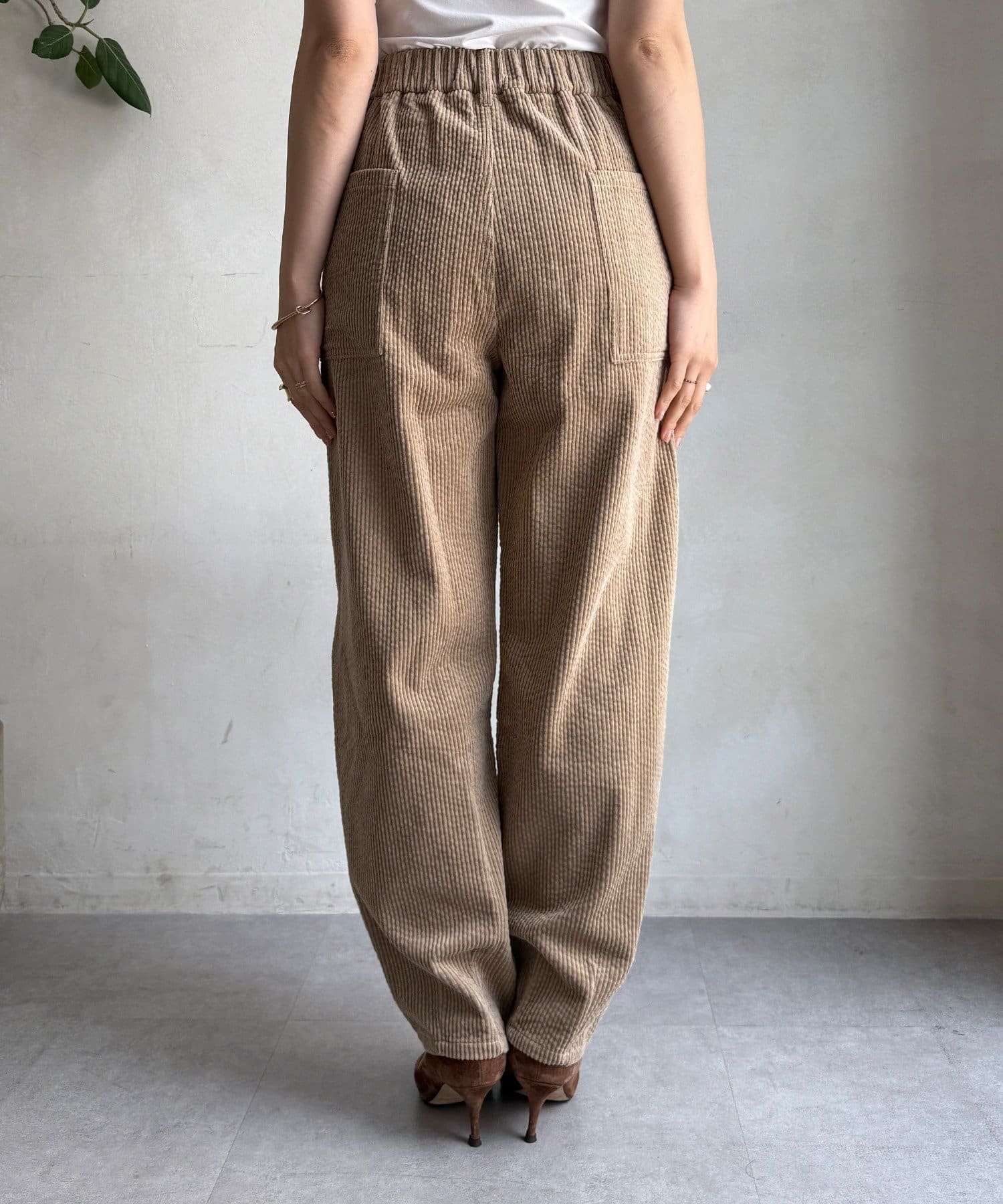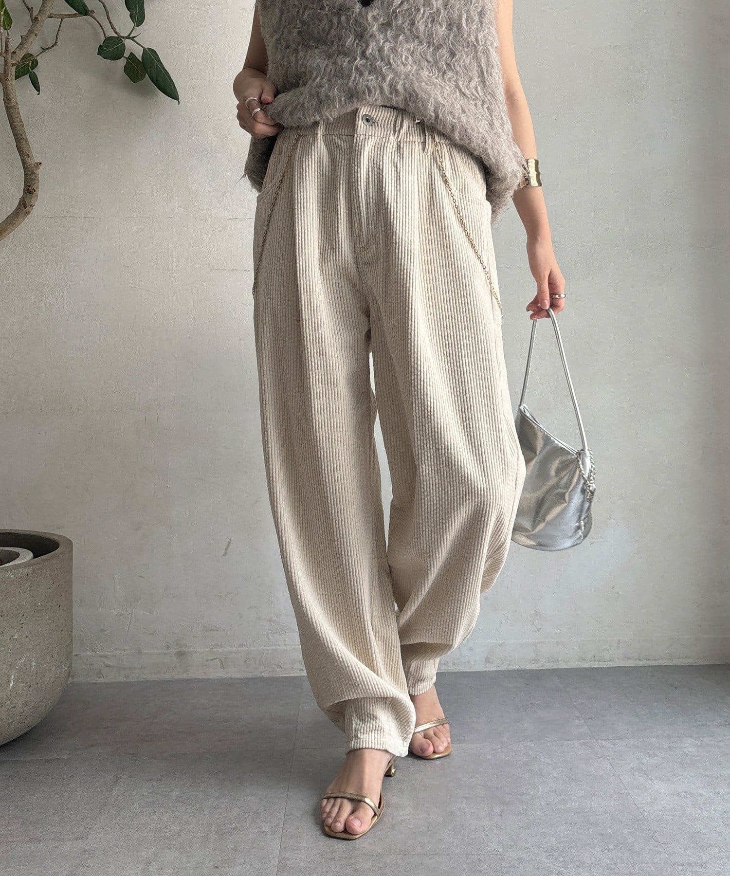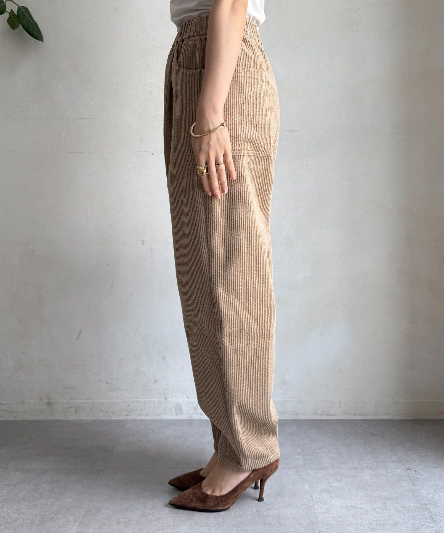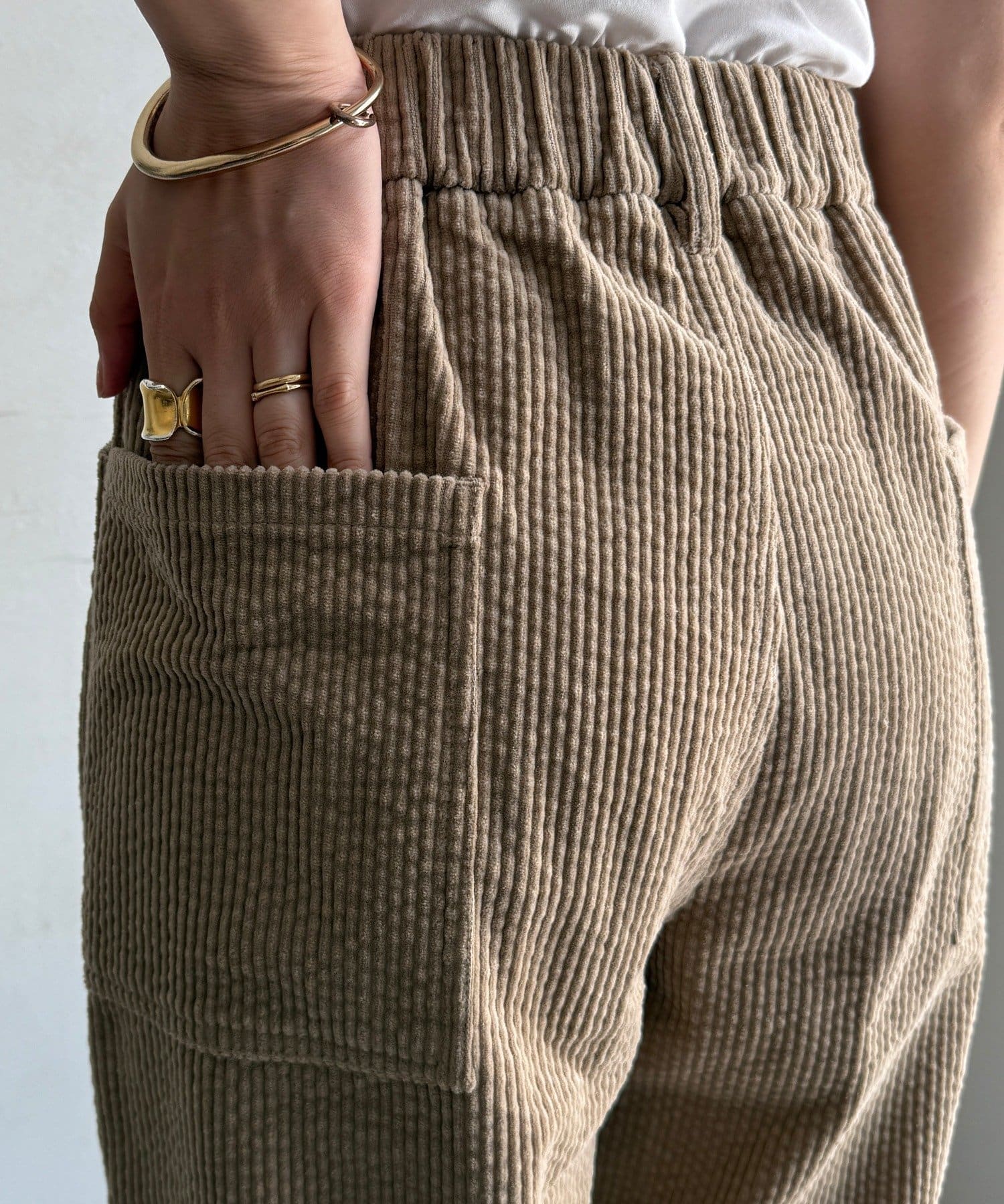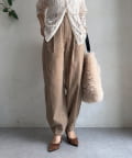ウエストはゴム仕様なので、ストレスフリーでトップスインもアウトもバランスよく決まり、オン・オフ問わず使える万能アイテムですよ。