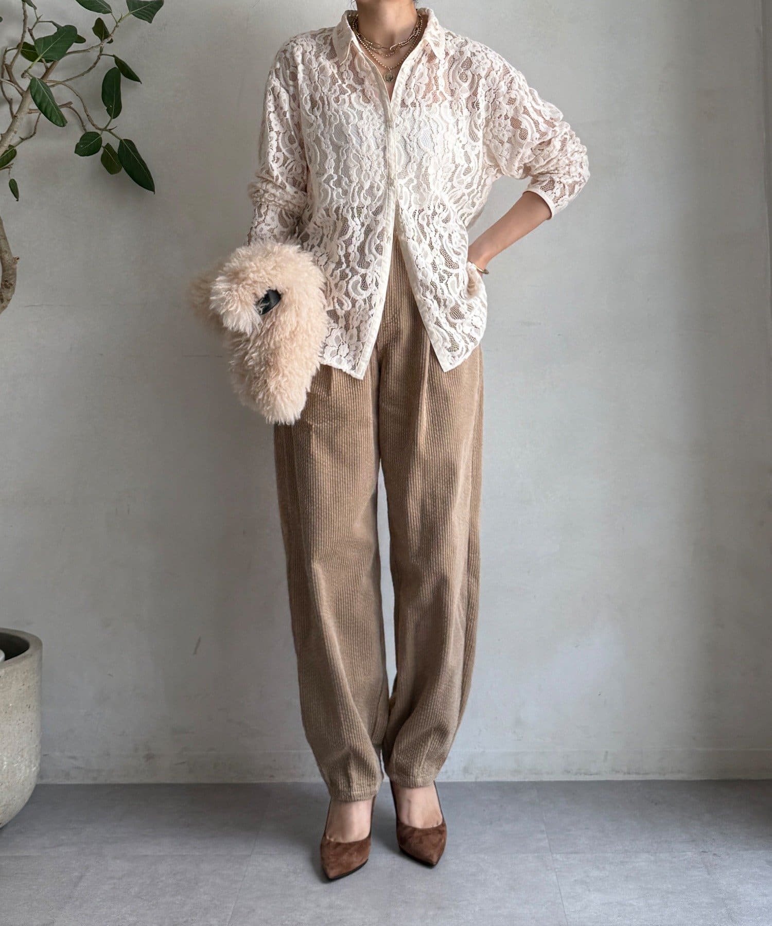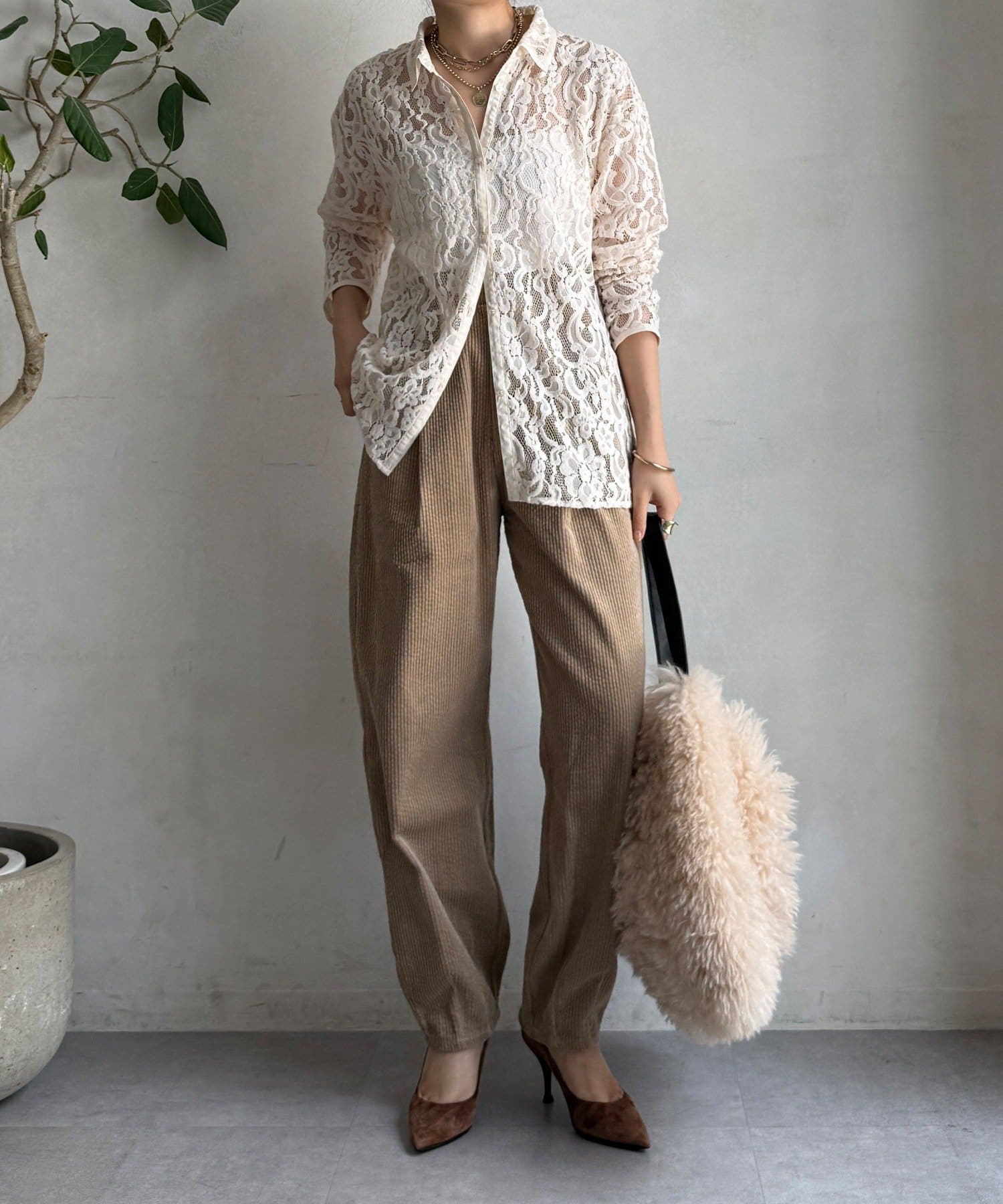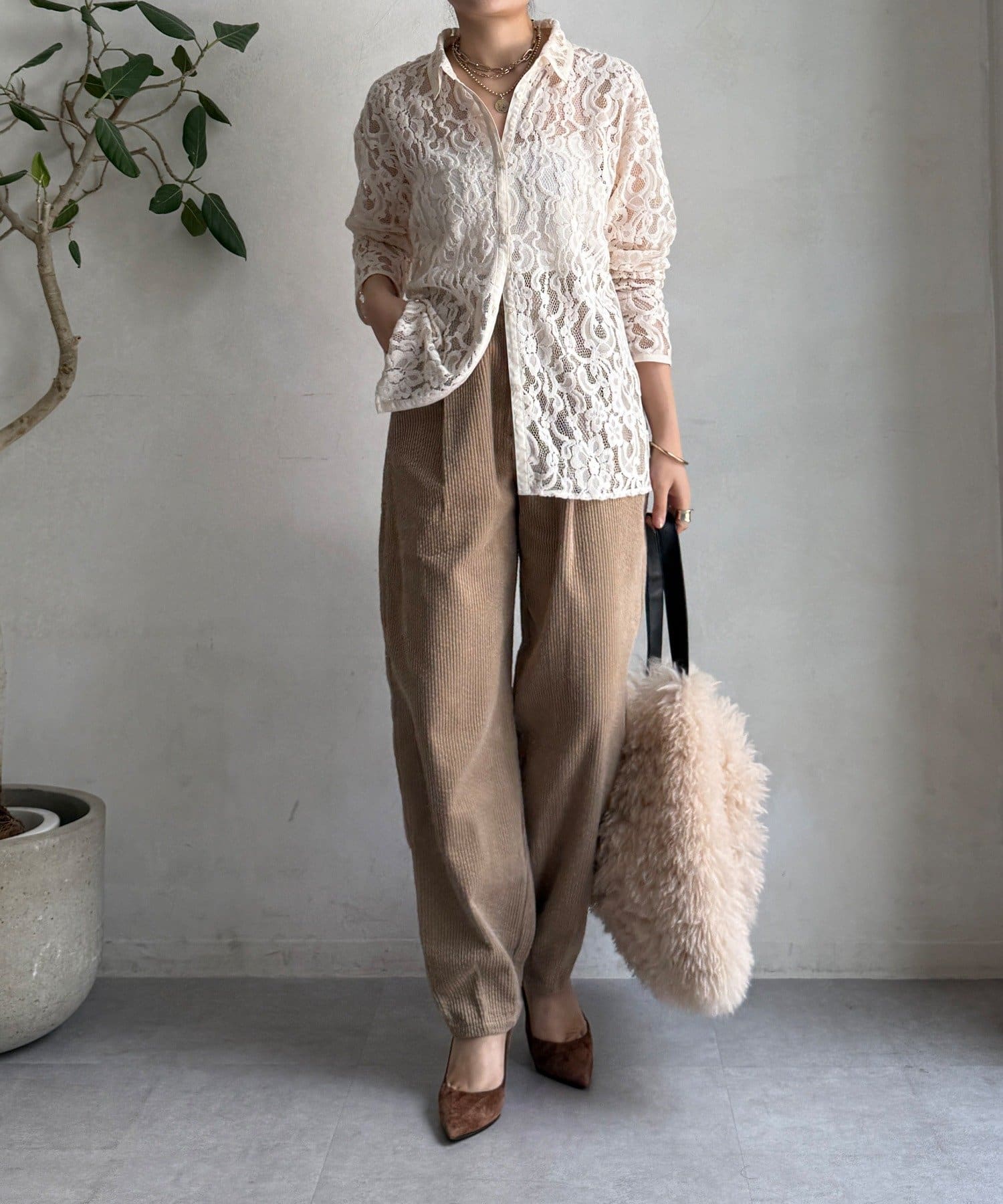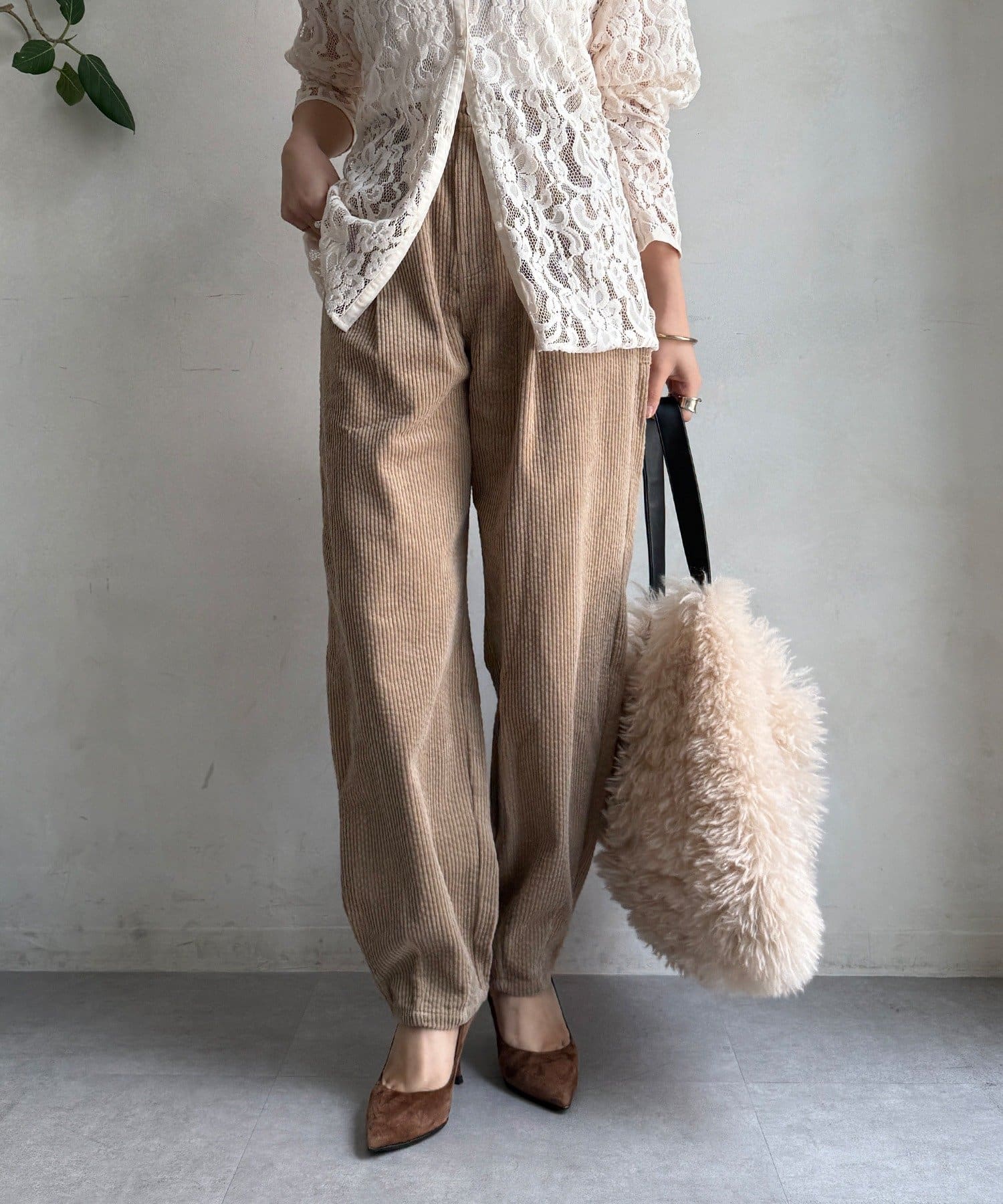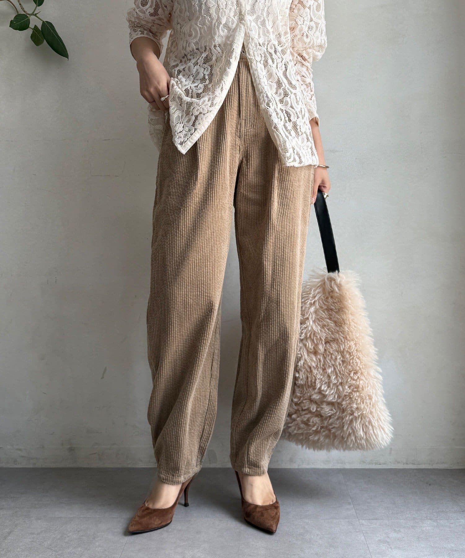 スウェットやニットなど、秋冬のどんなトップスにも合わせやすいパンツ。