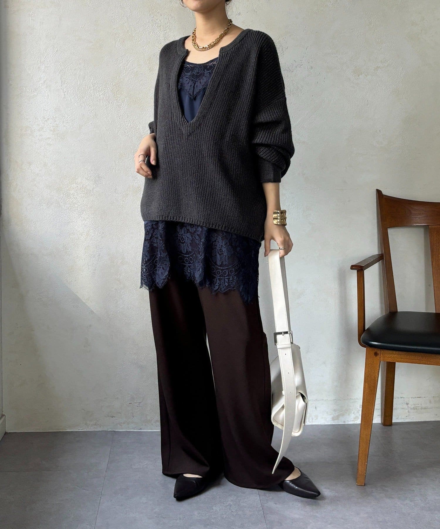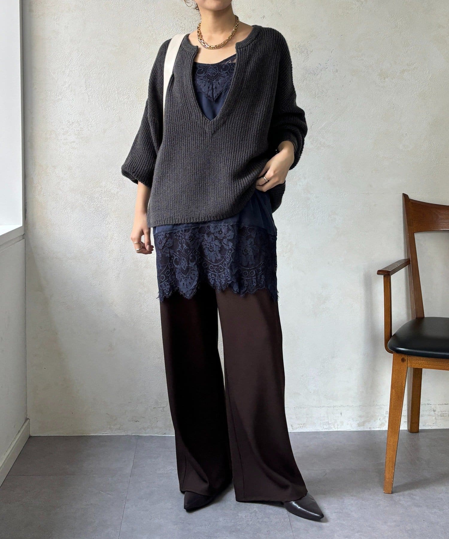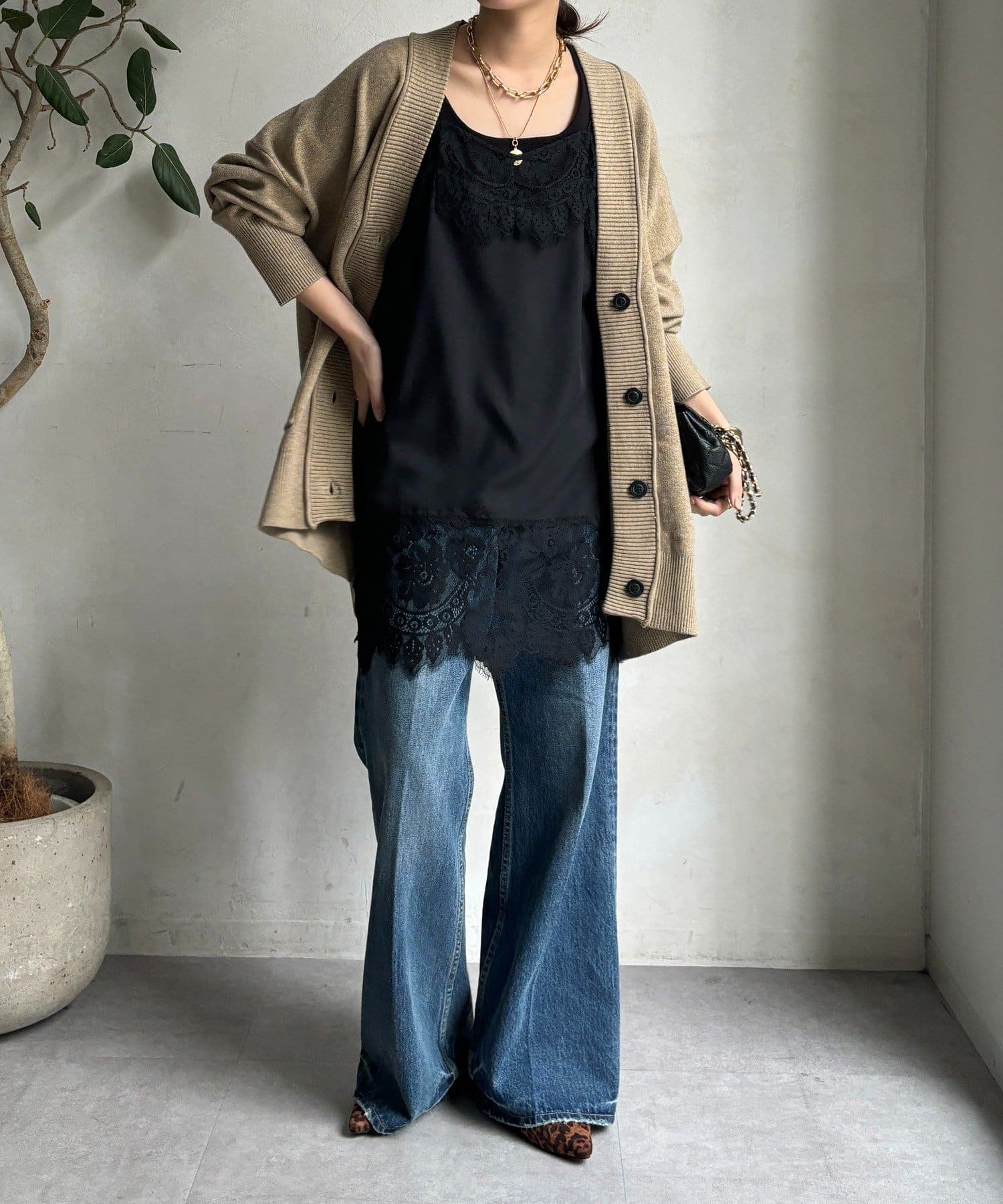 レイヤードスタイルが今年らしいレースキャミチュニック
