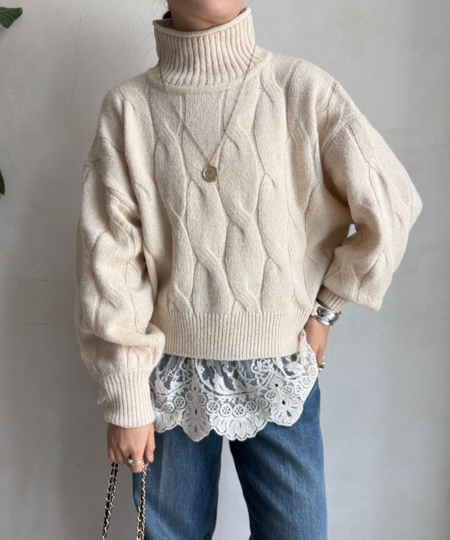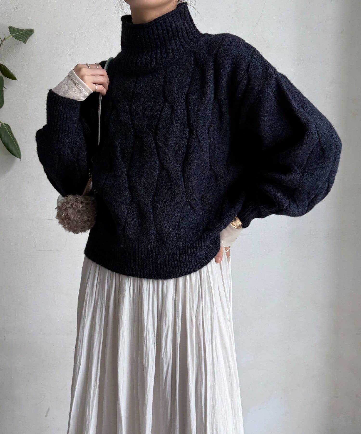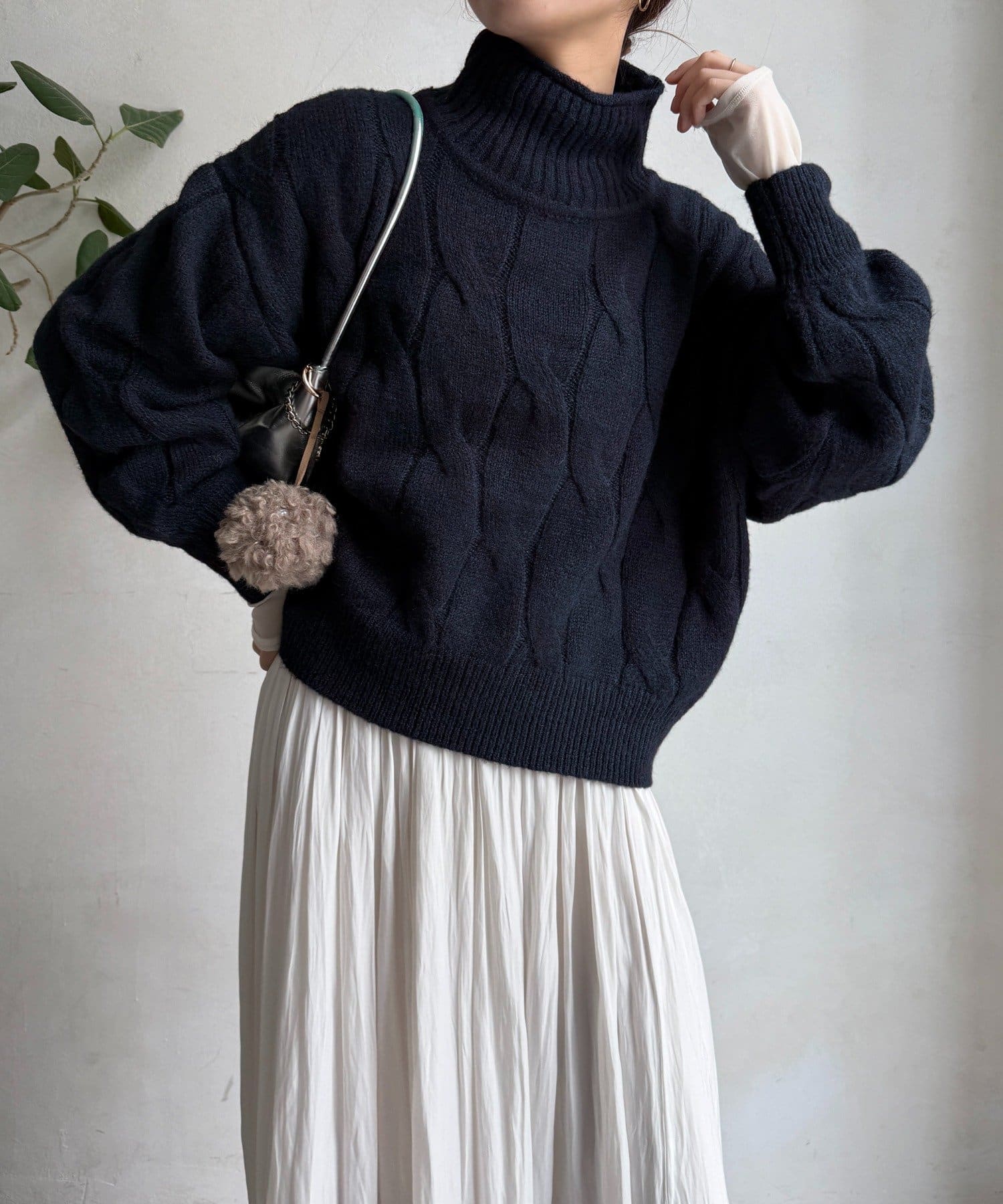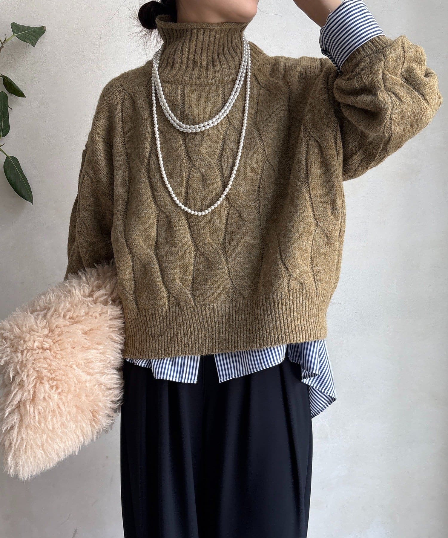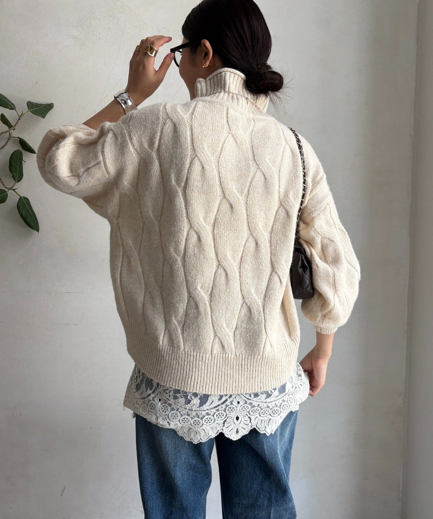【WEB限定】ケーブル柄ハイネックプルオーバー