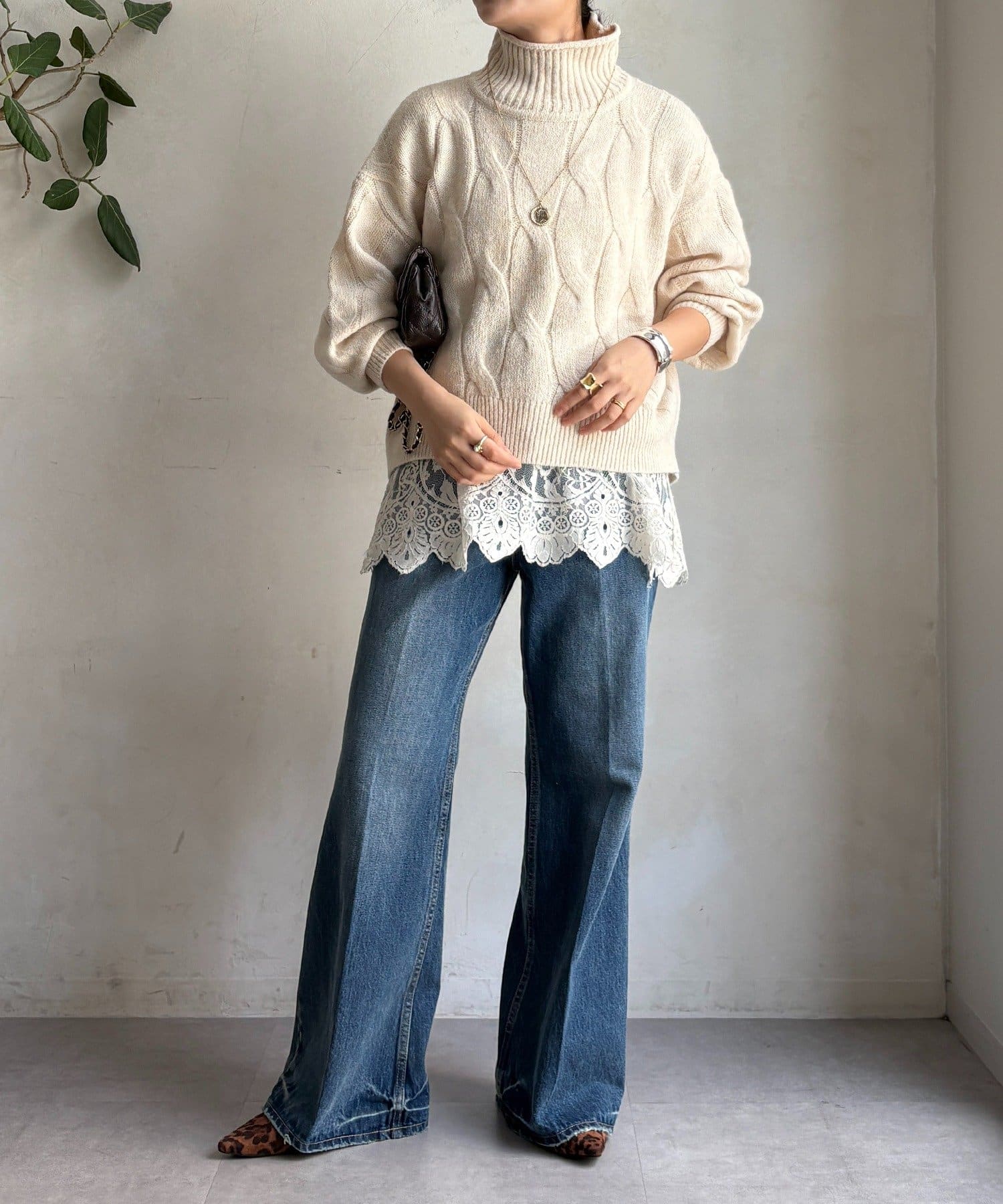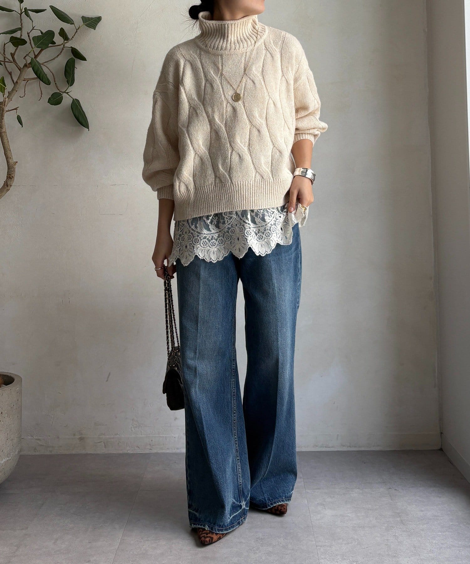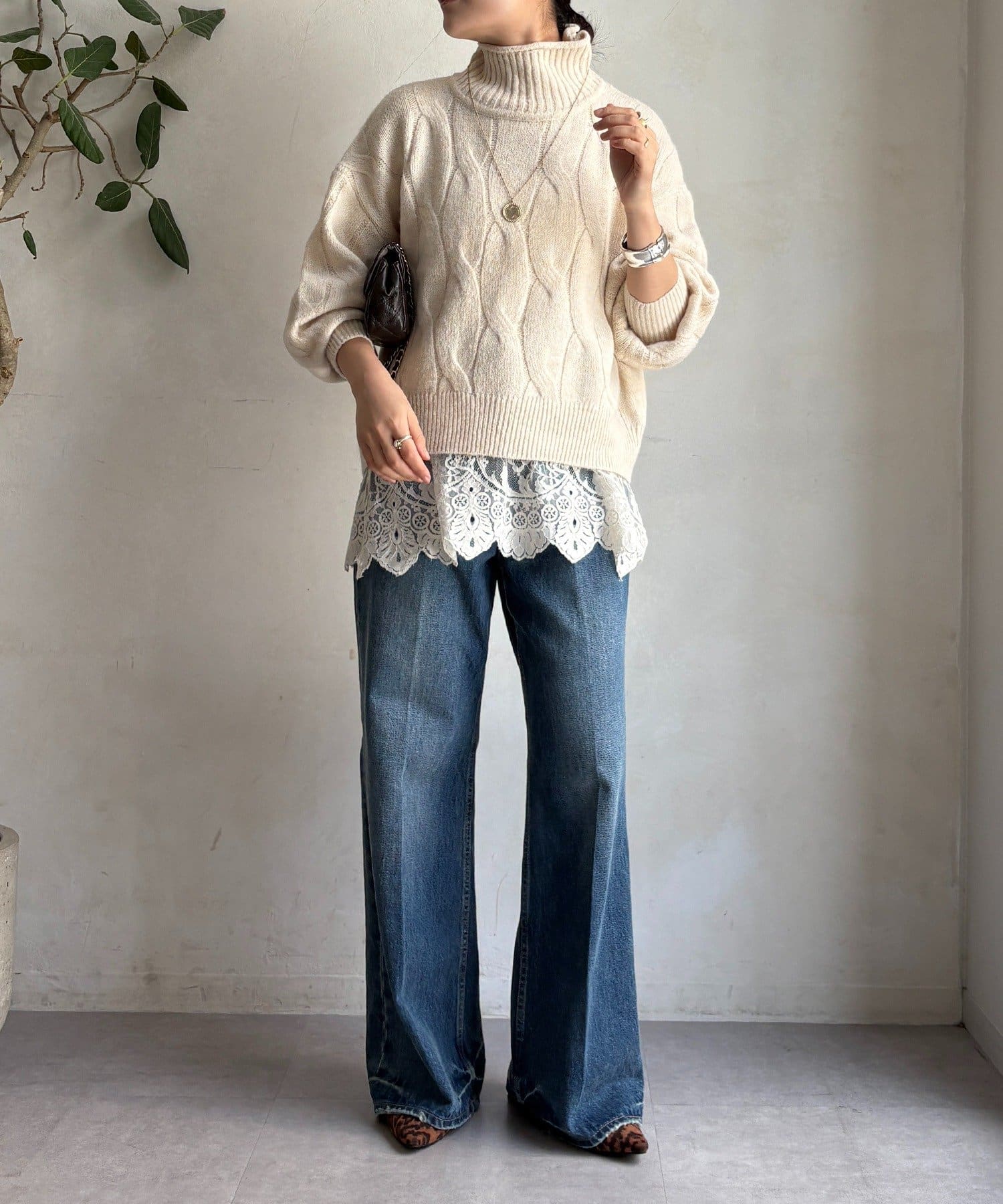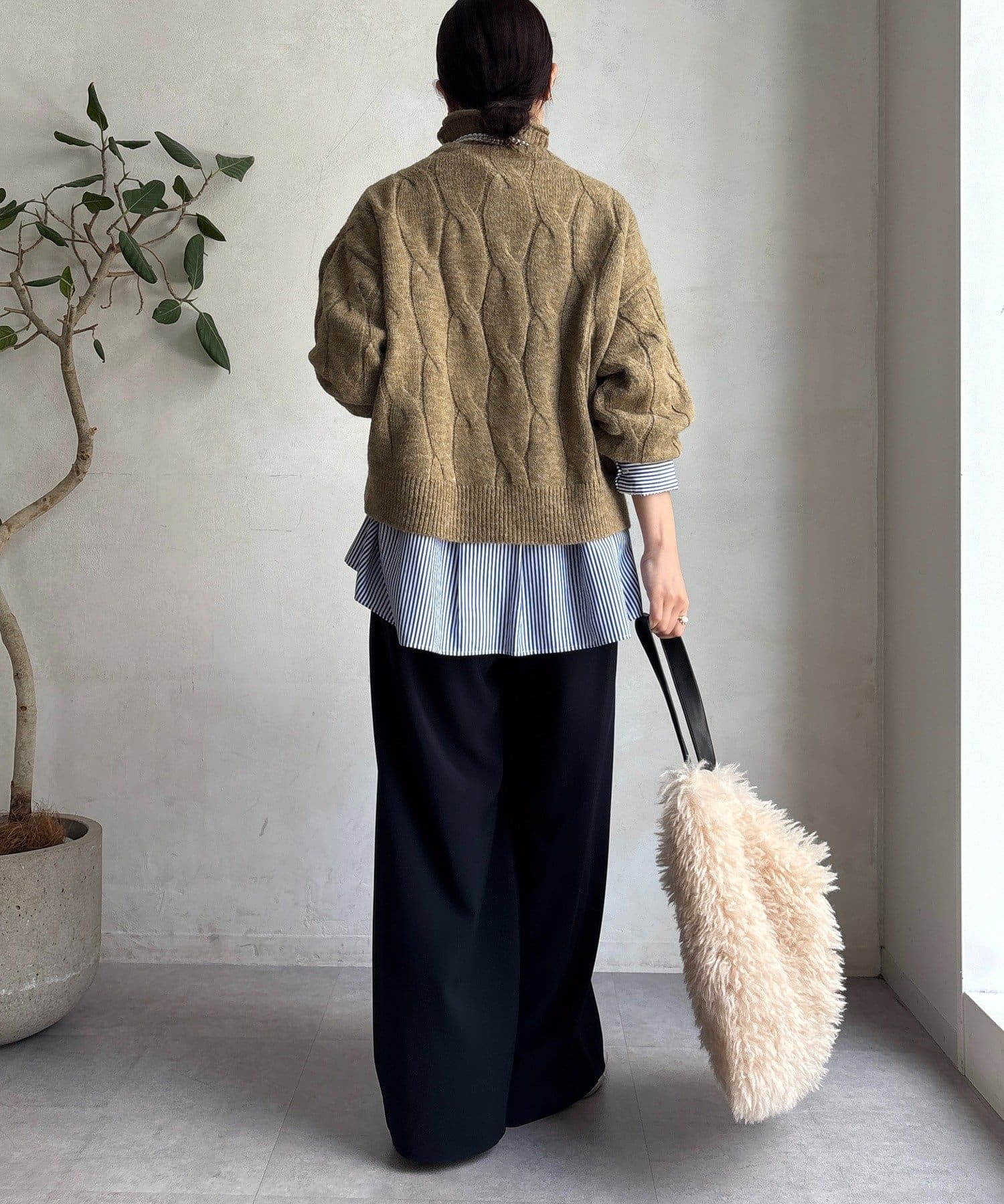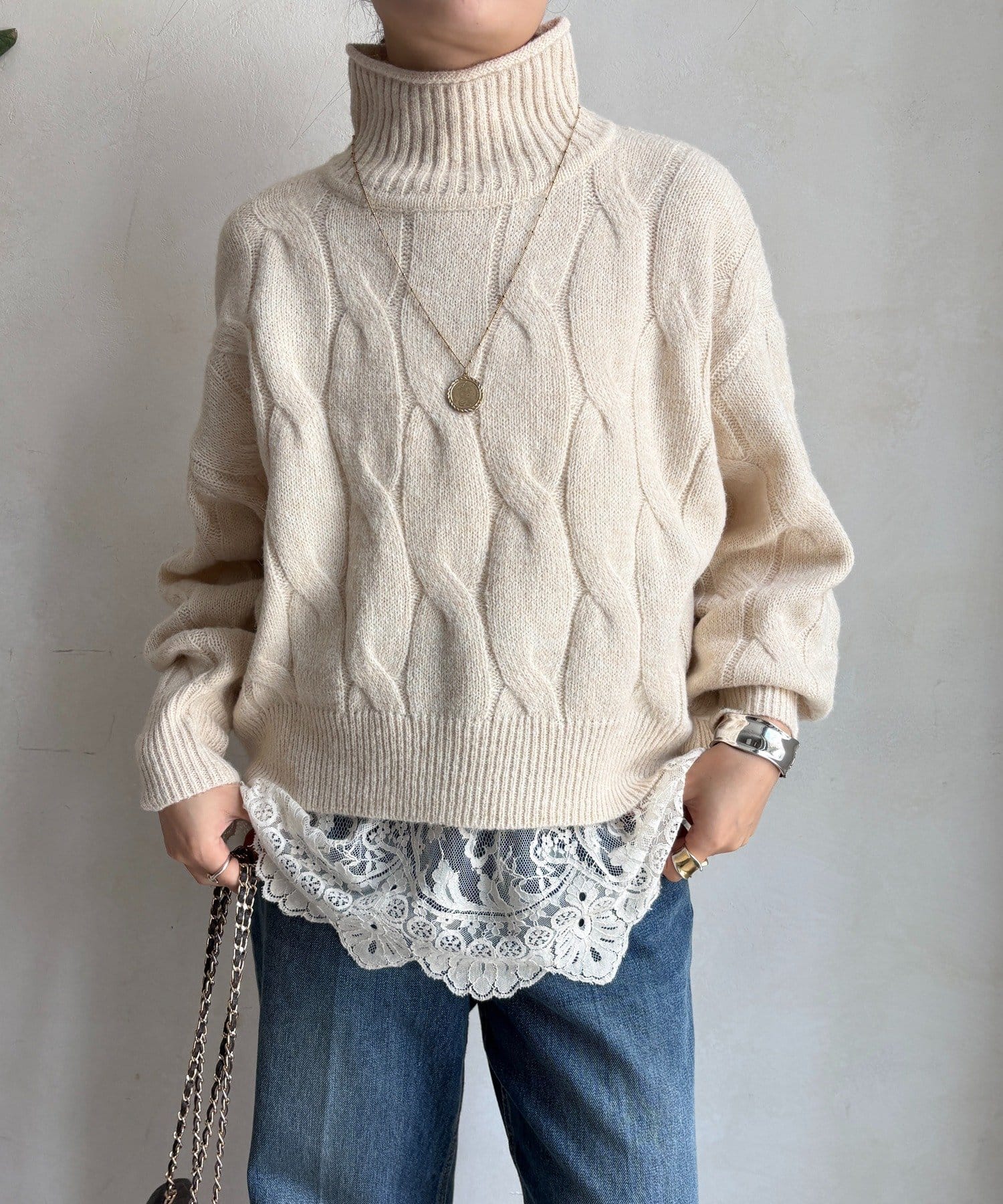 【WEB限定】ケーブル柄ハイネックプルオーバー