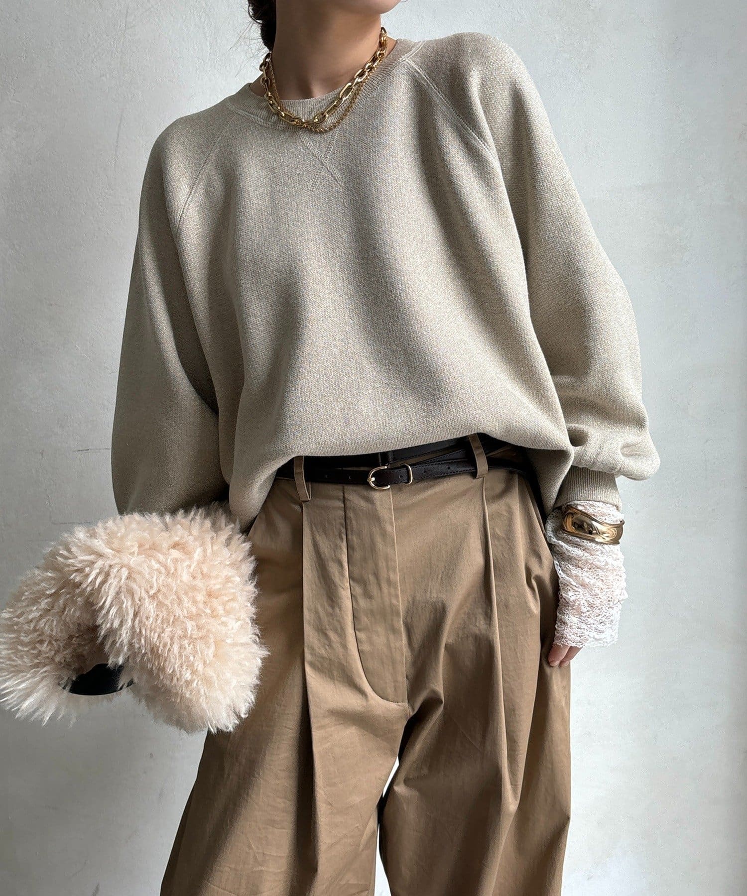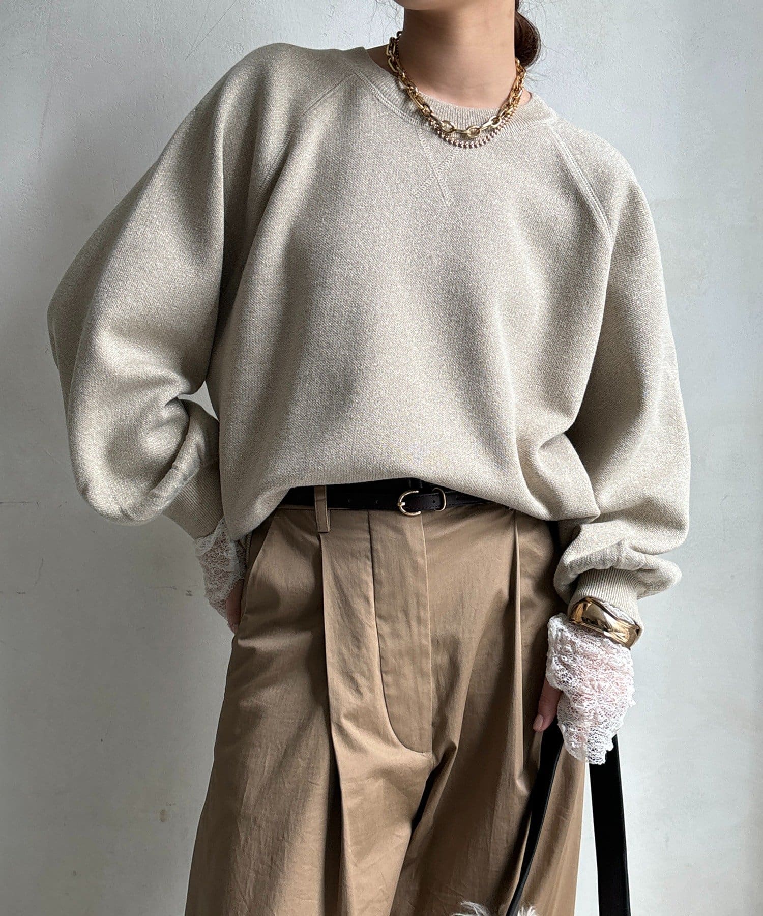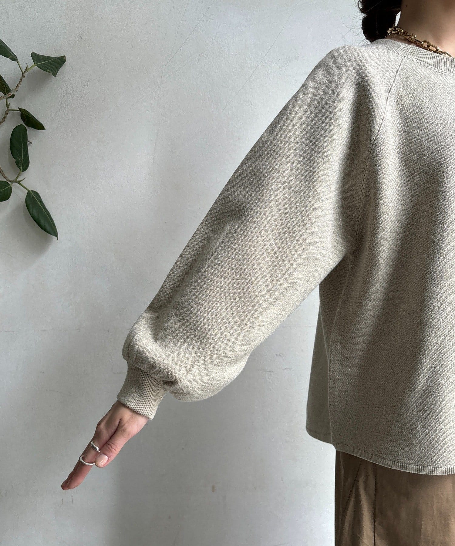 袖口のリブは、程よいフィット感で、全体のシルエットを引き締める役割も◎