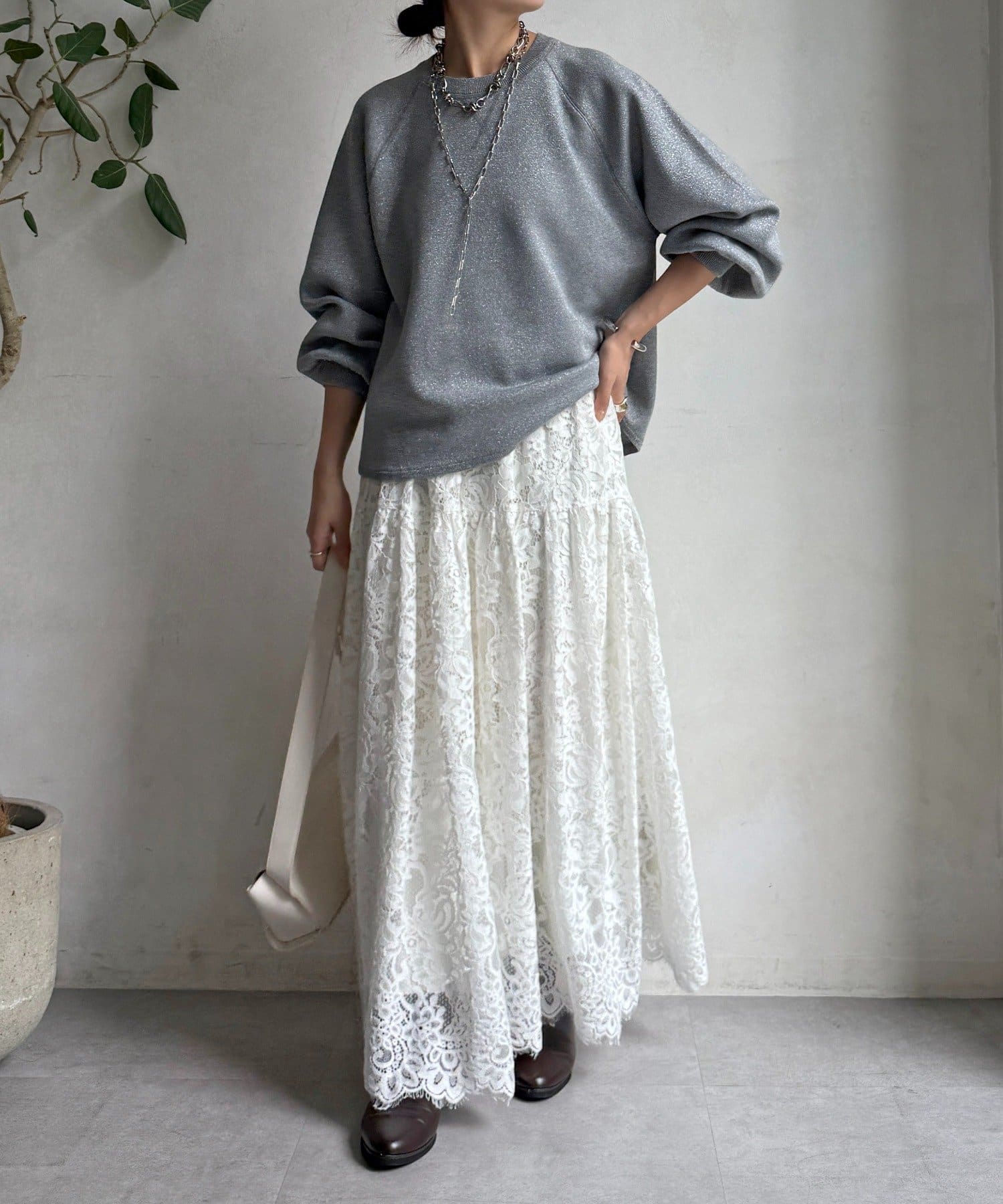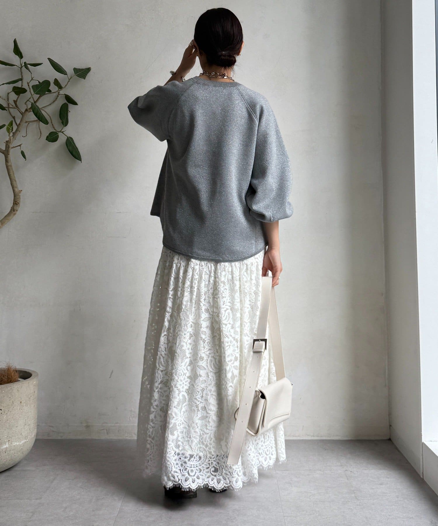 繊細なラメ糸を使用しているので大人っぽく着ていただけます。