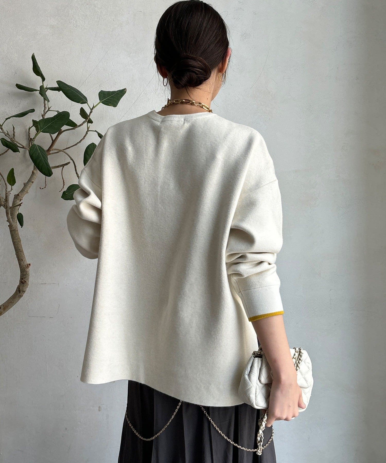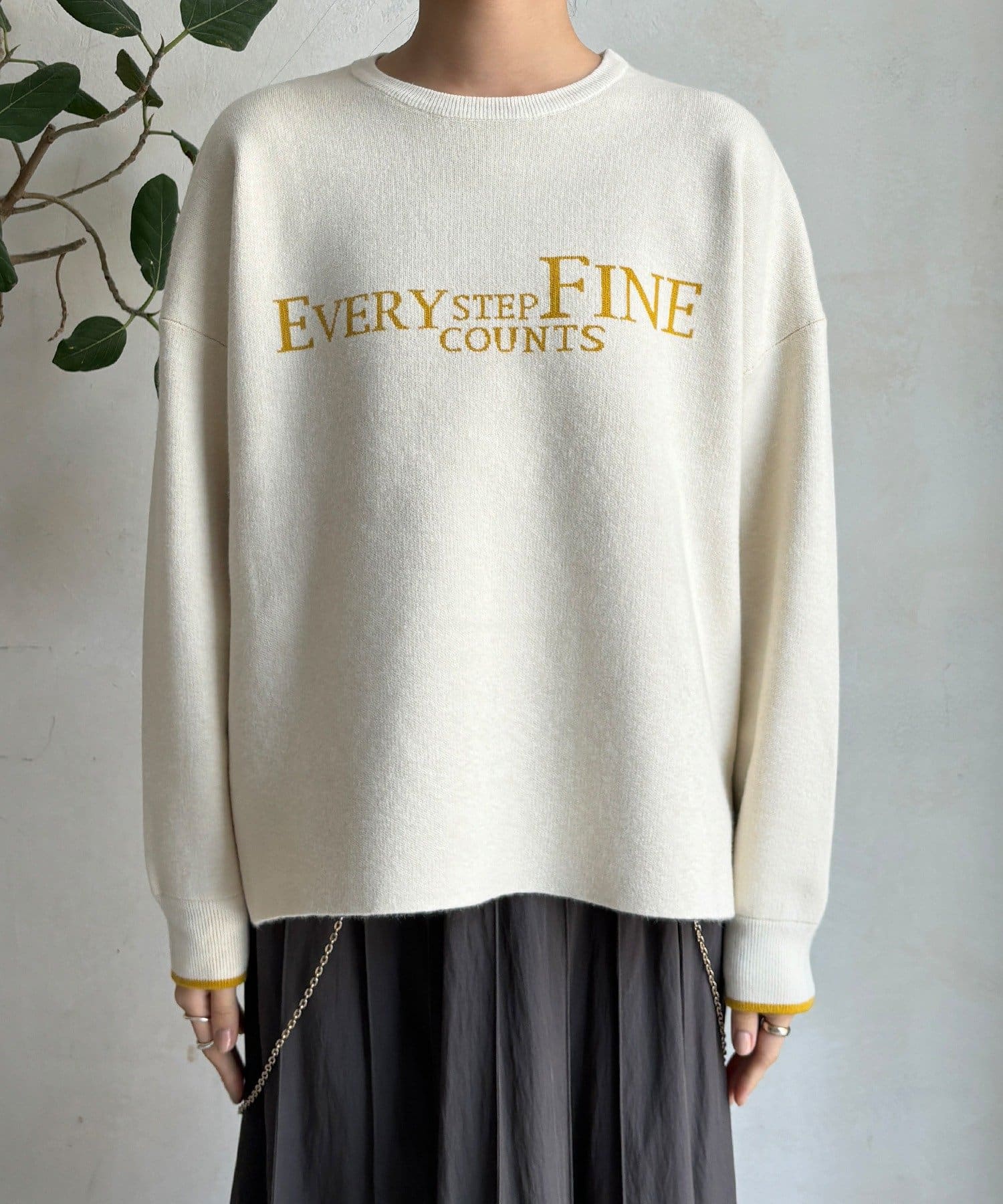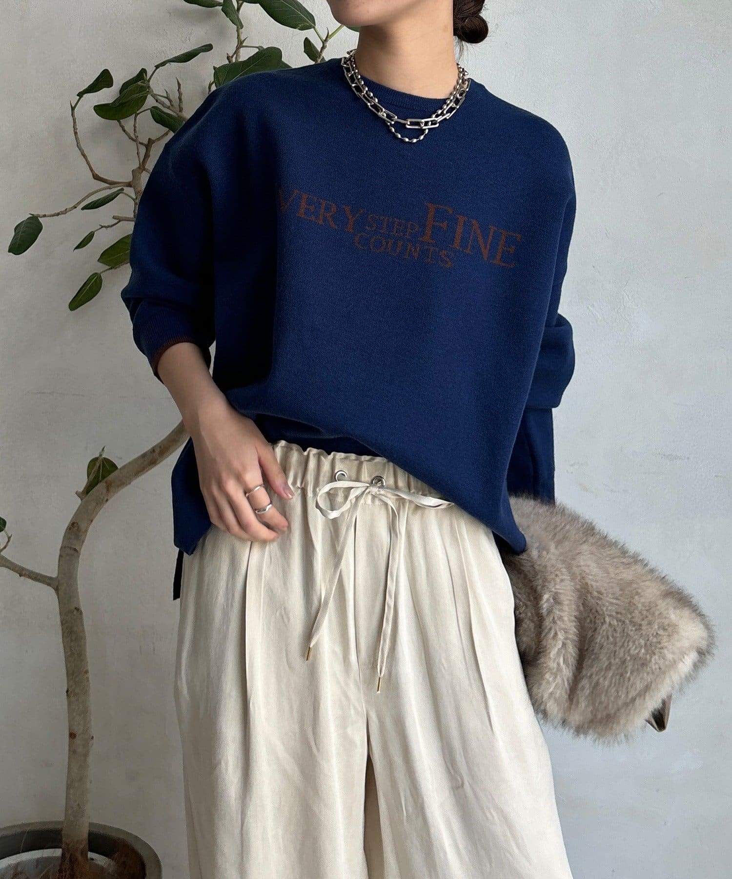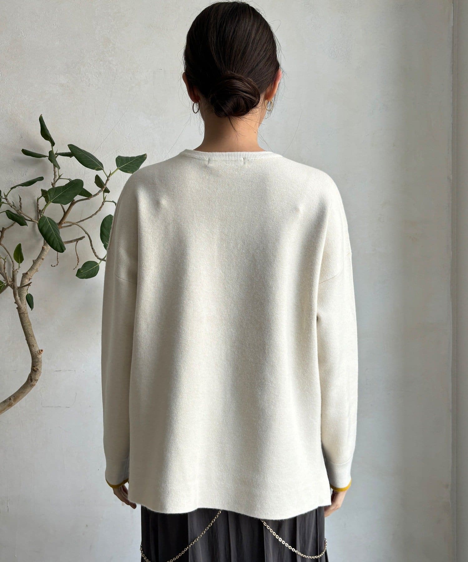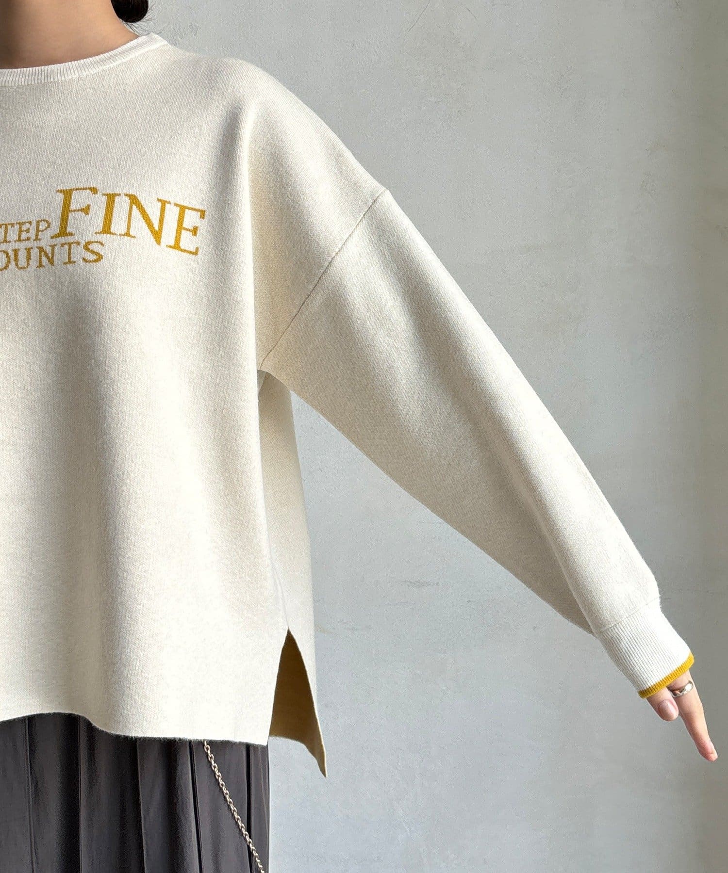 様々なコーディネートに馴染みやすいサイズ感とデザインのニットで