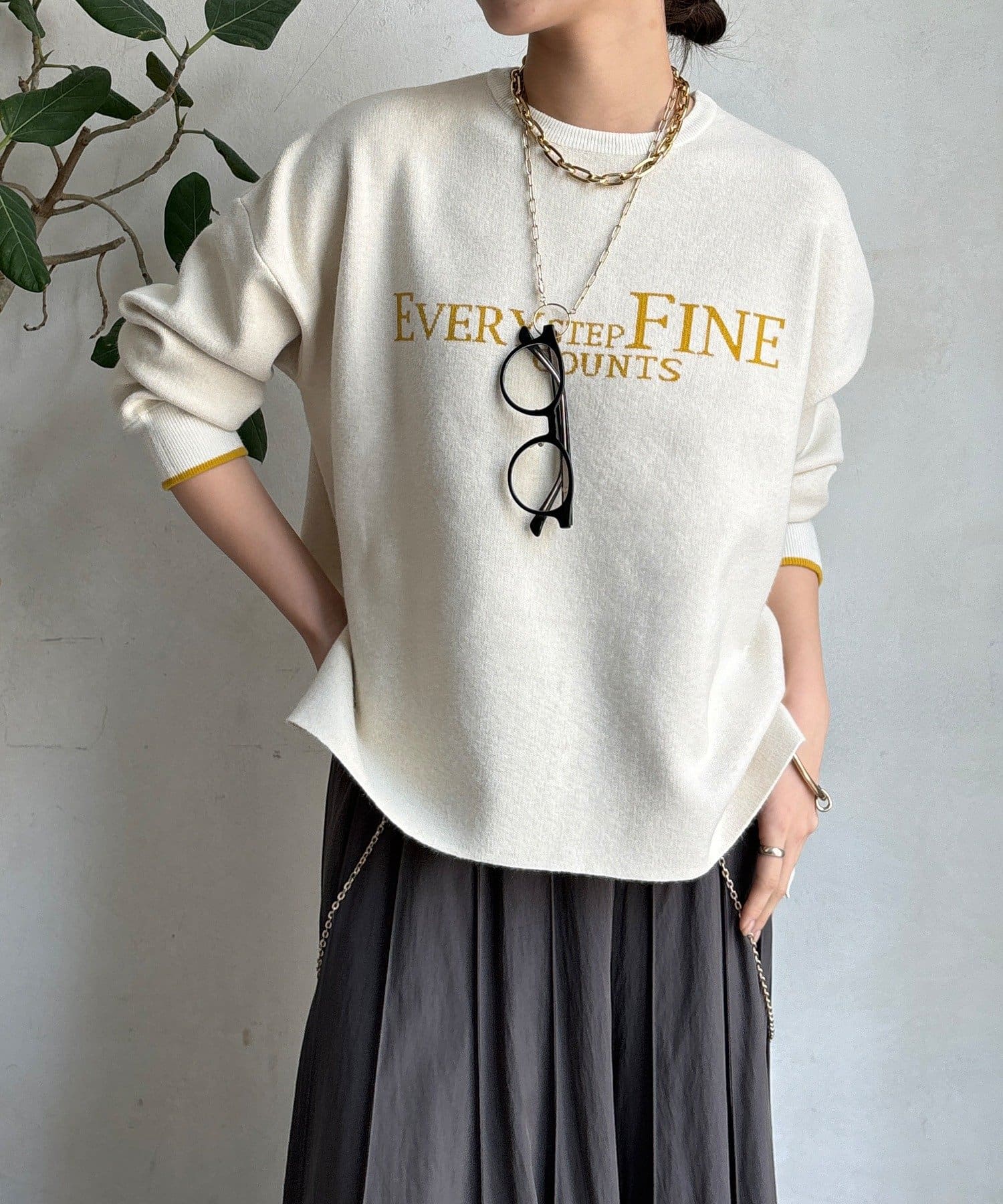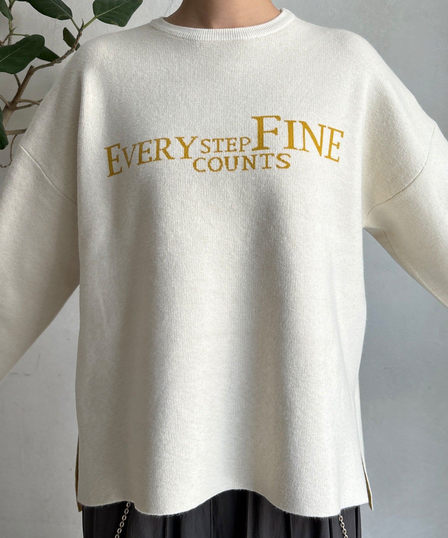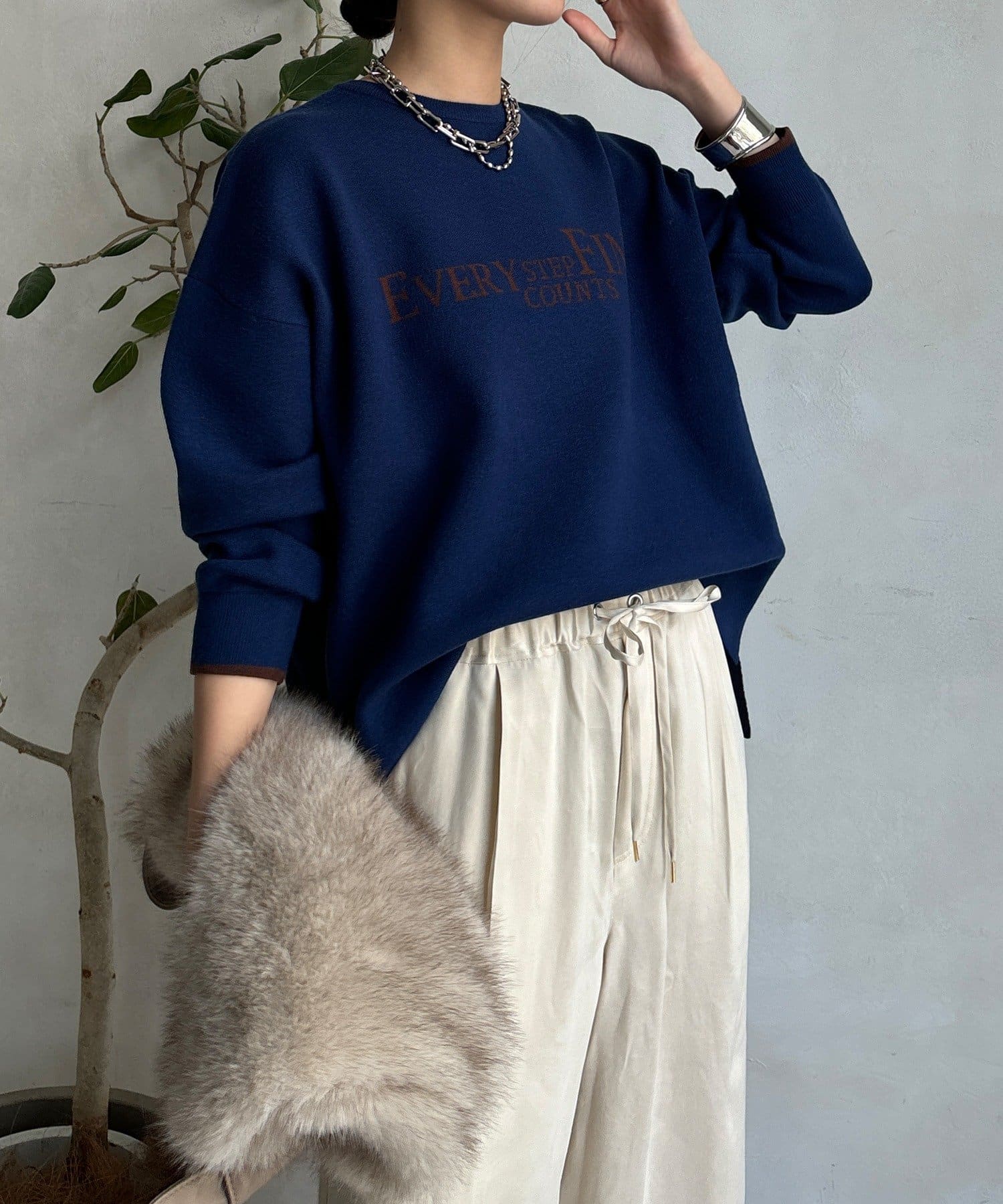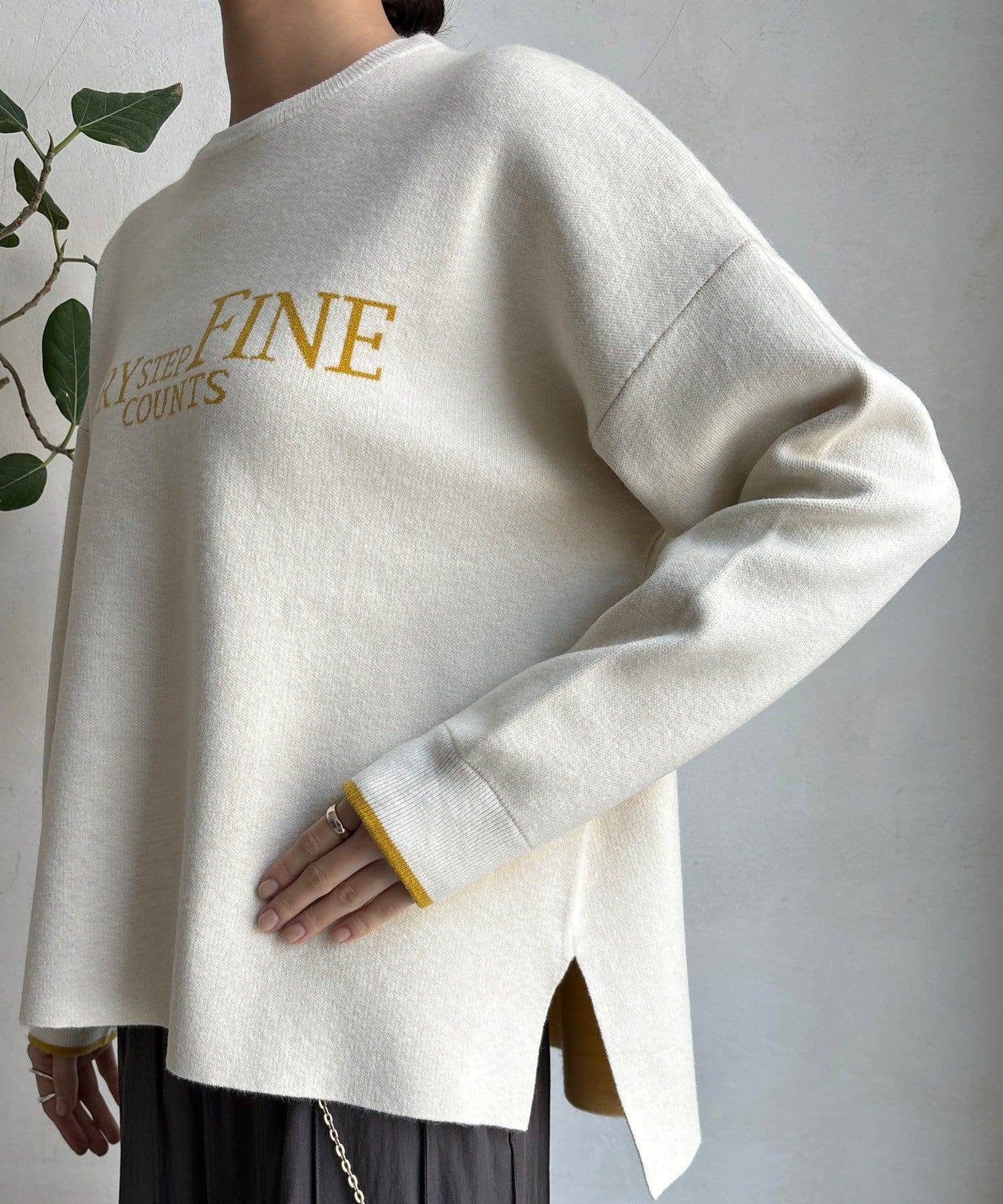 様々なコーディネートに馴染みやすいサイズ感とデザインのニットで