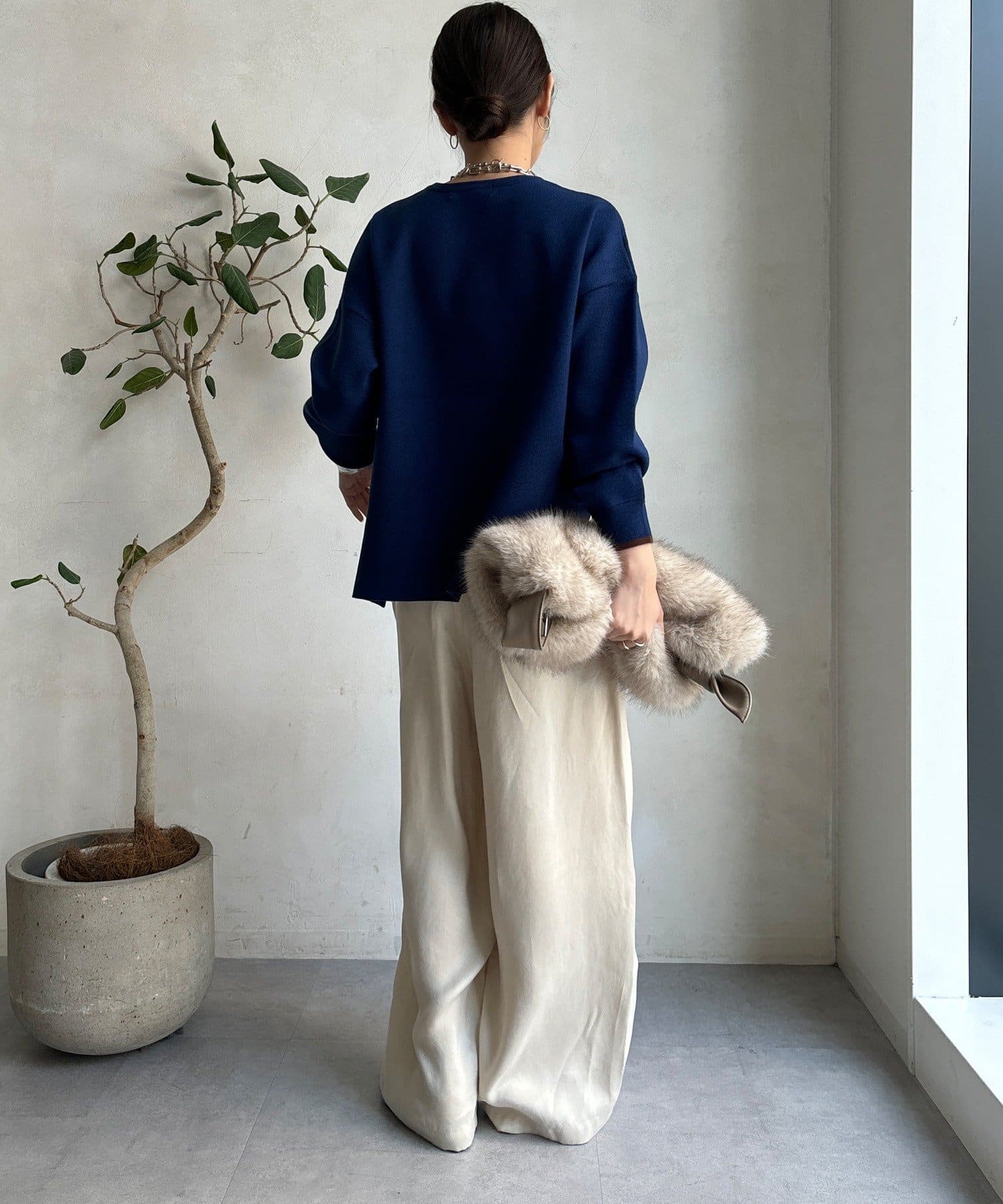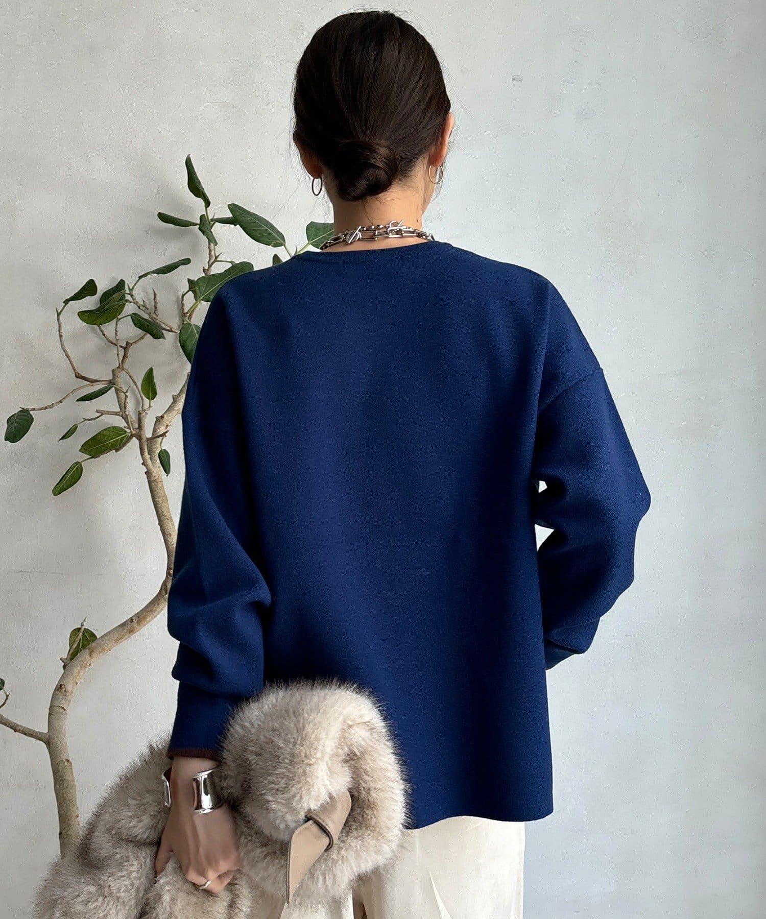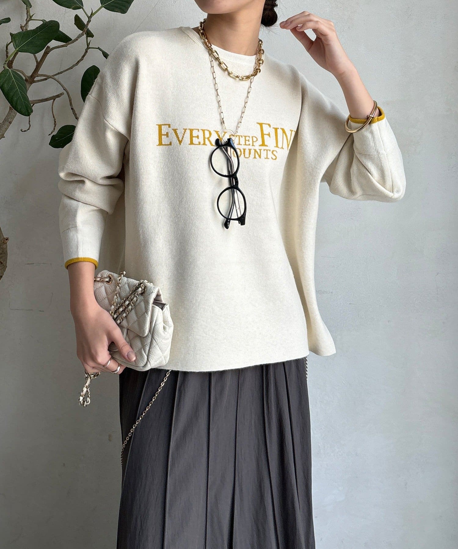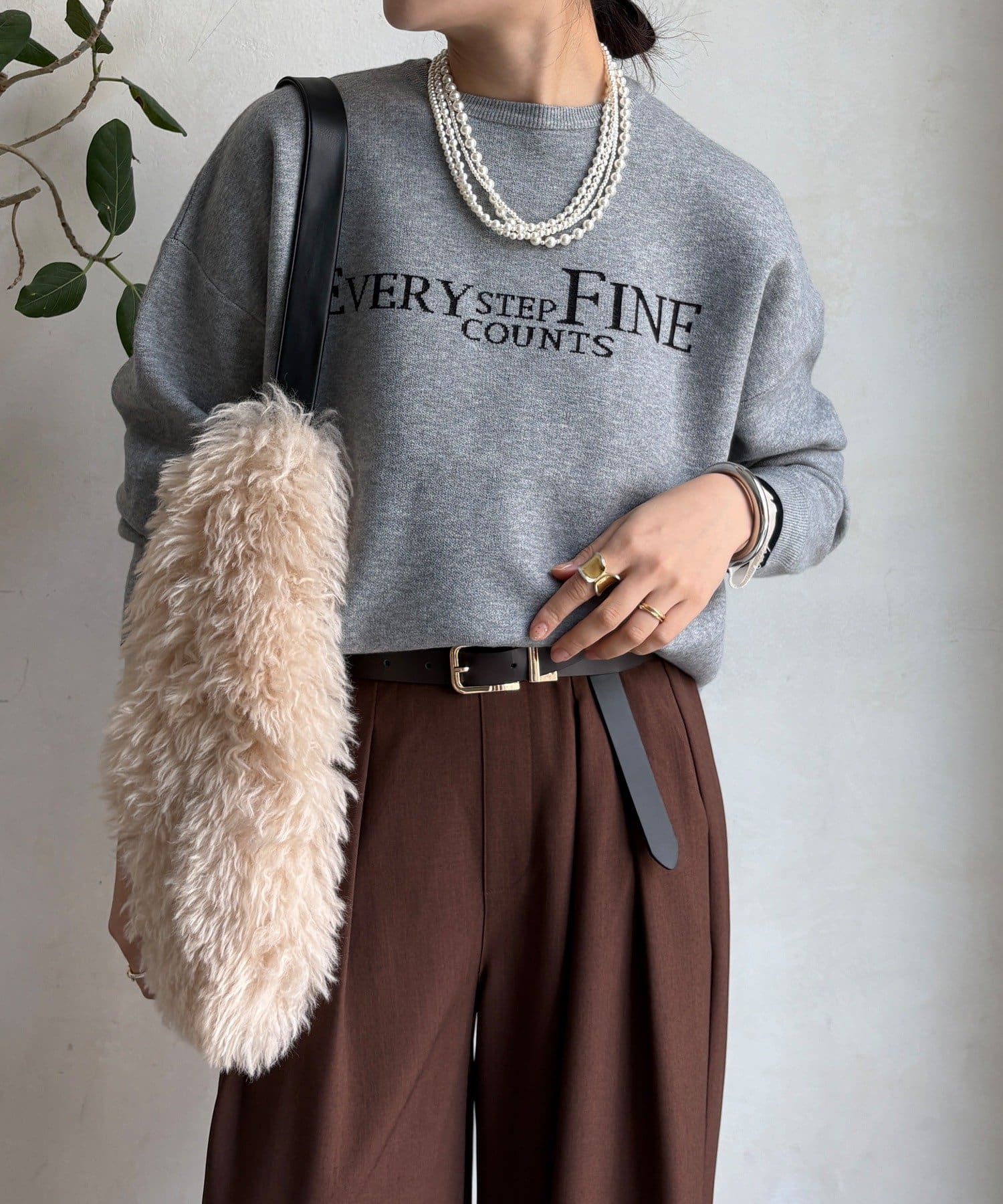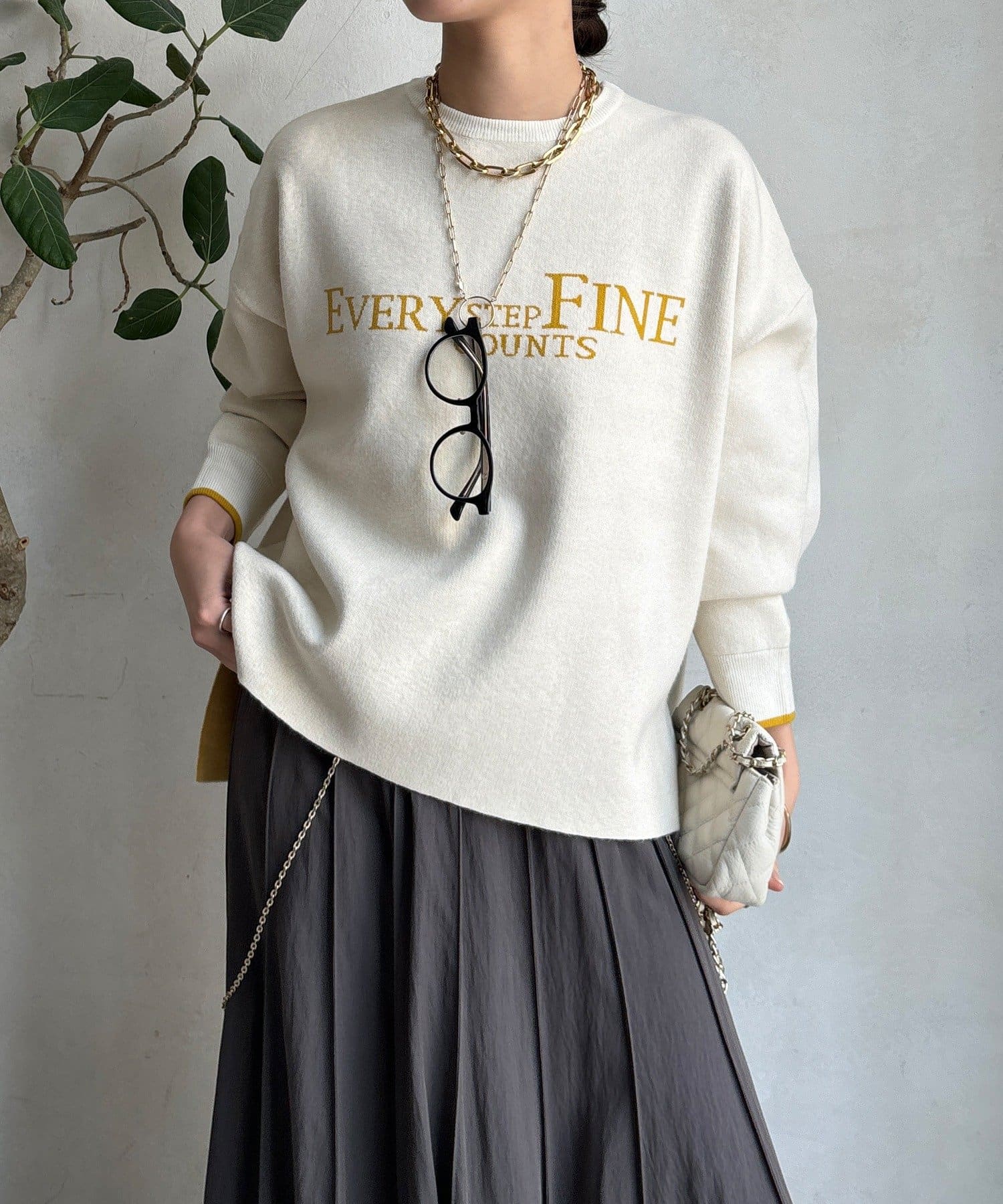 様々なコーディネートに馴染みやすいサイズ感とデザインのニットで