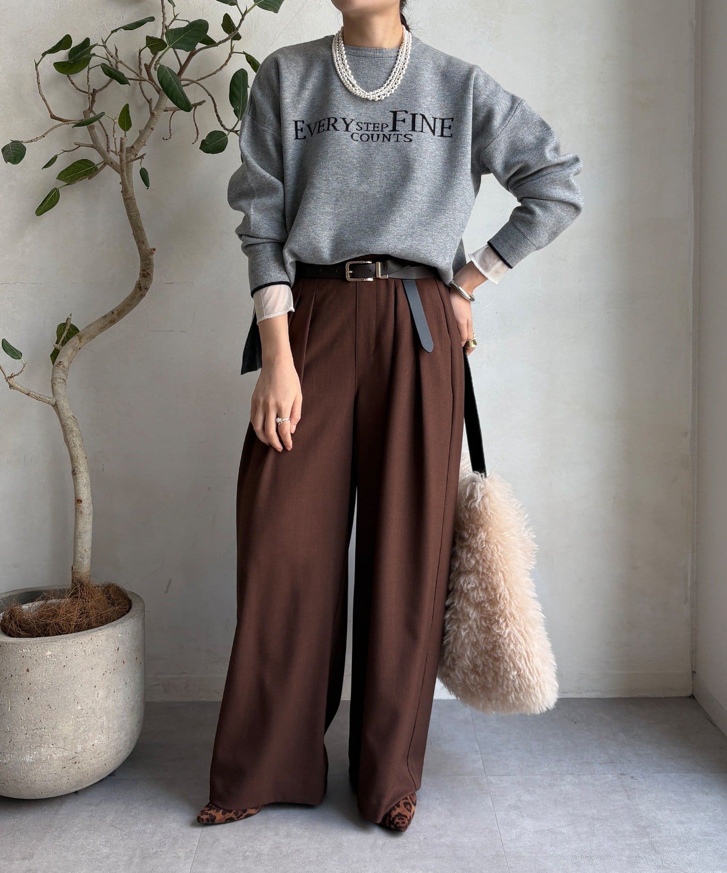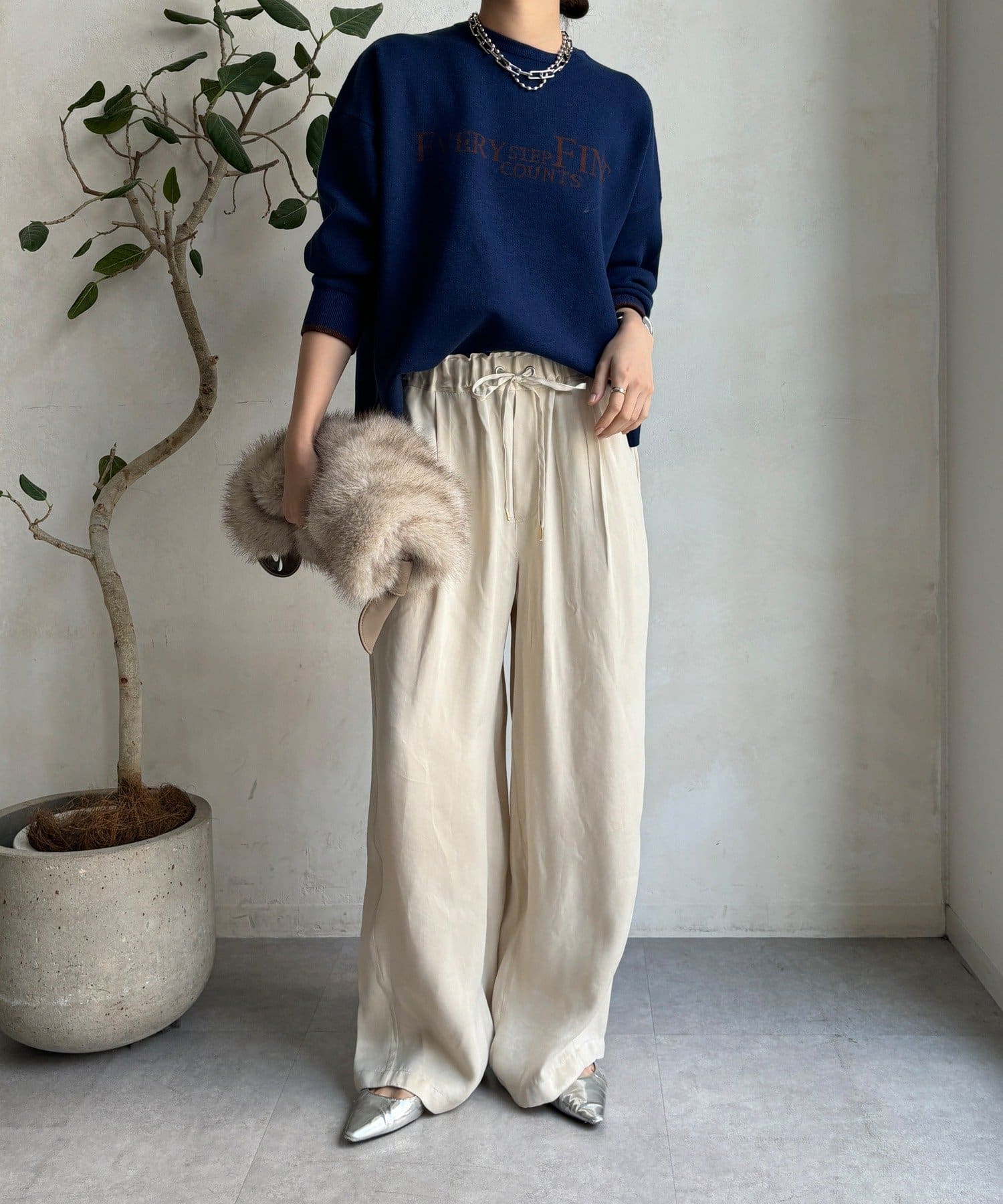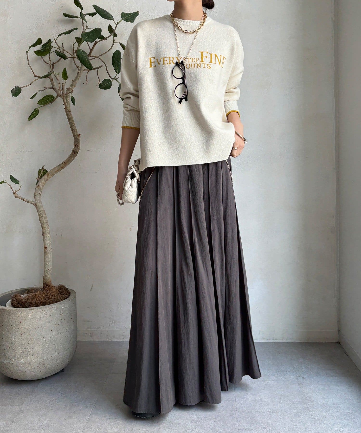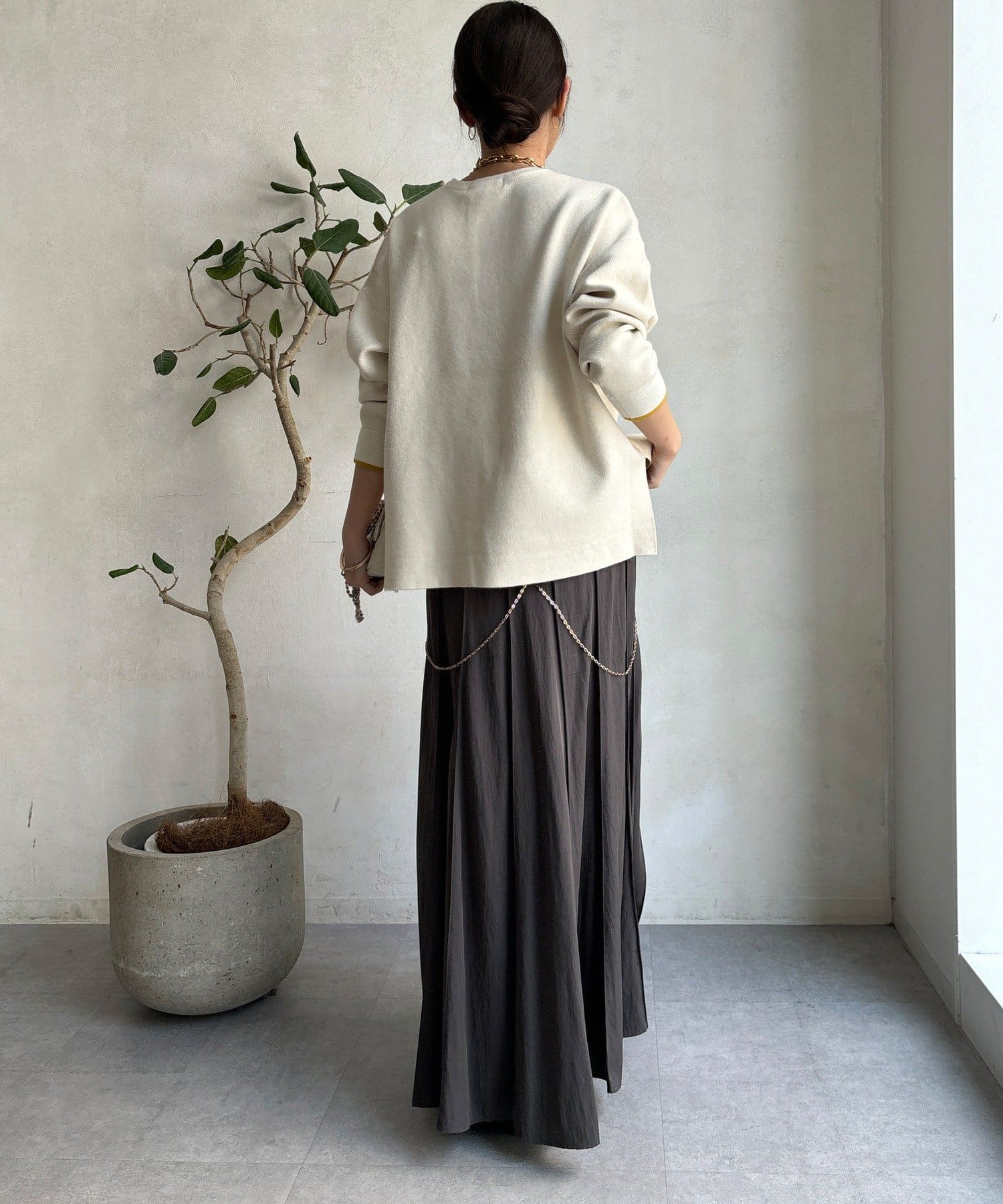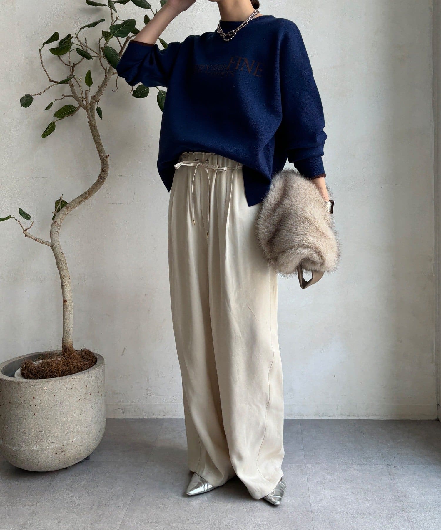 様々なコーディネートに馴染みやすいサイズ感とデザインのニットで