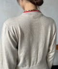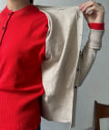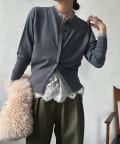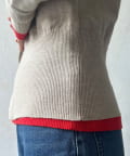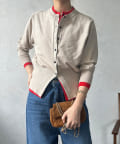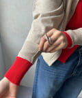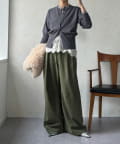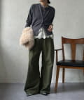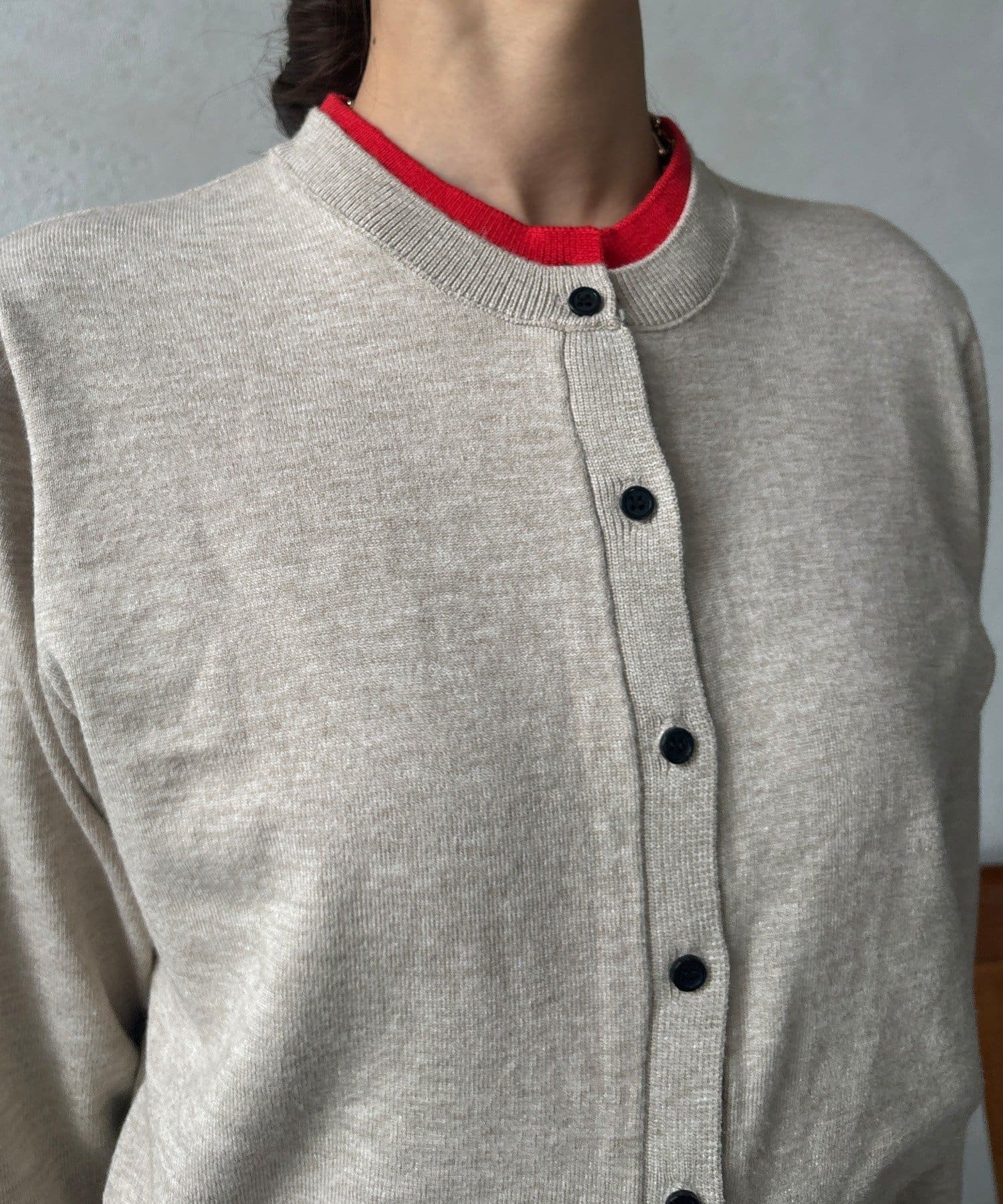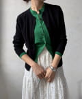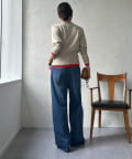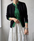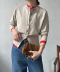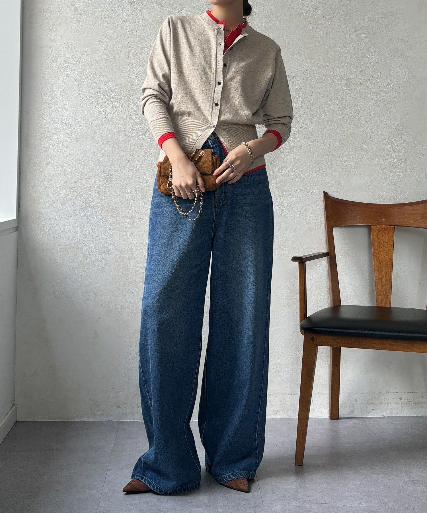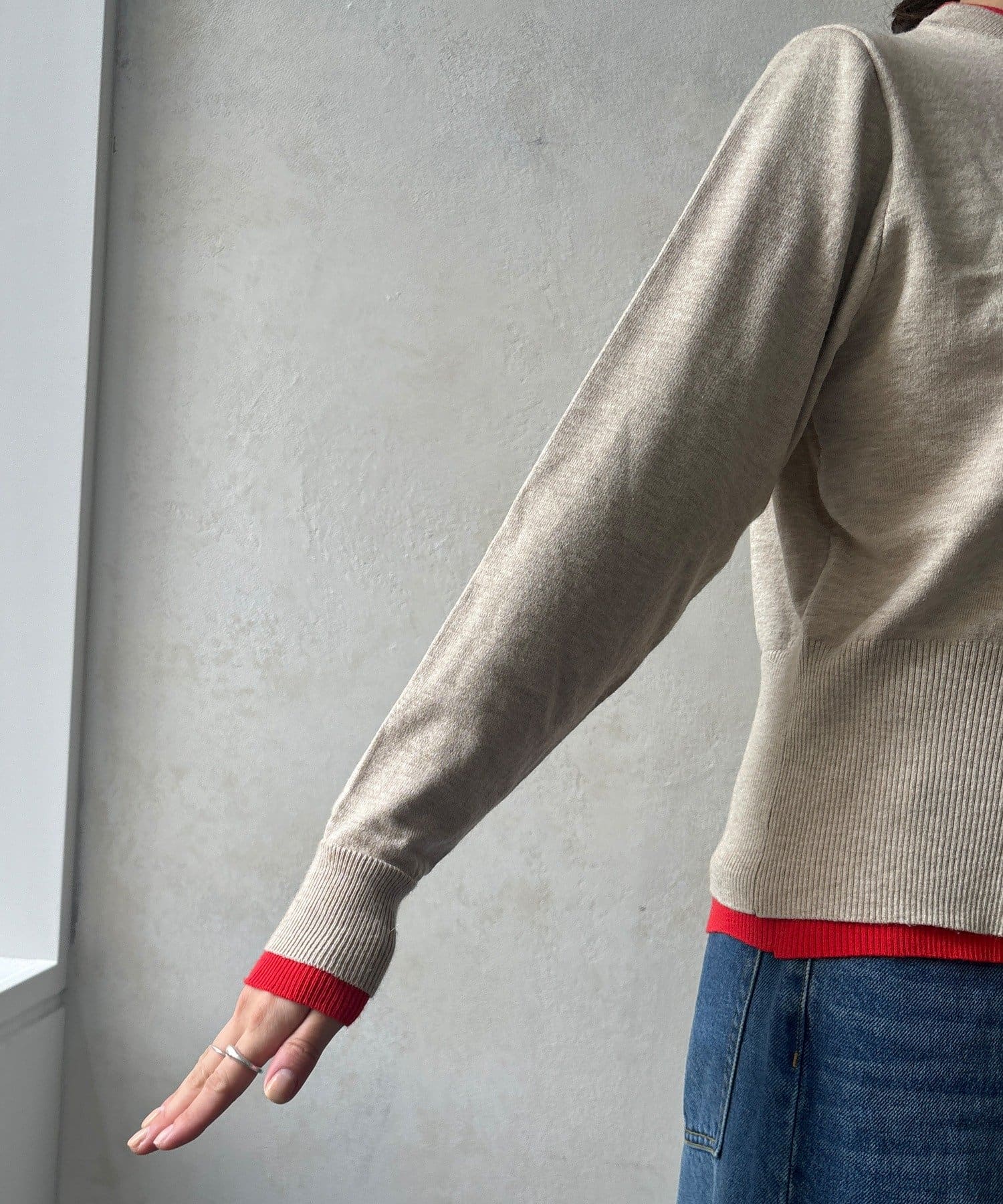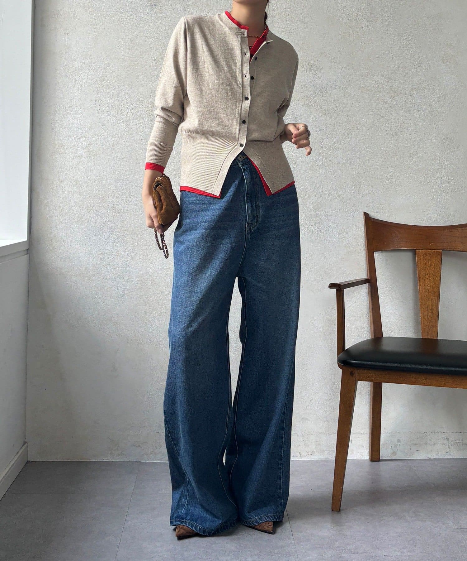 さりげないのに目を引く、襟元と袖口、裾から覗く鮮やかなカラーが、コーディネートに奥行きを与えてくれます。