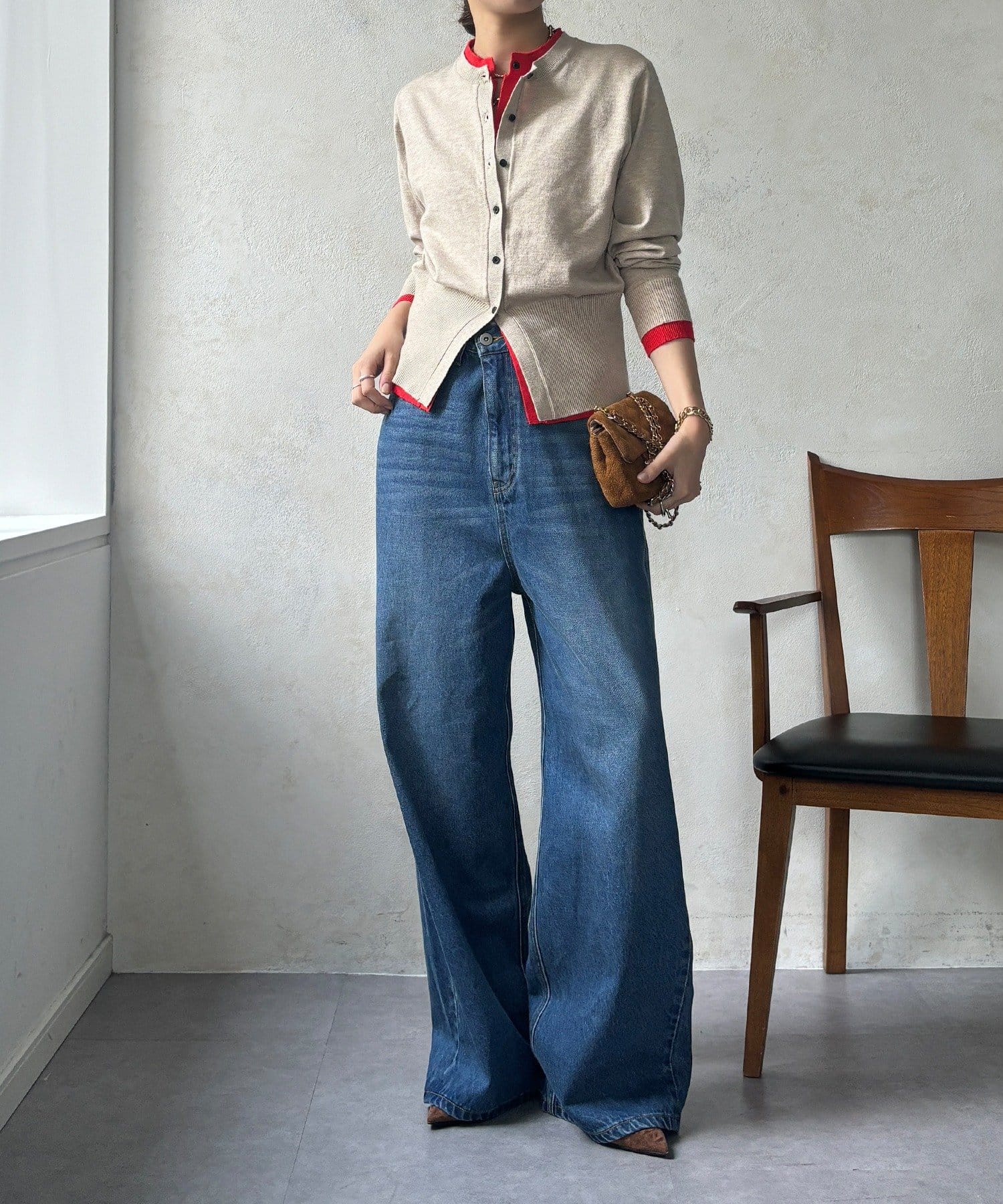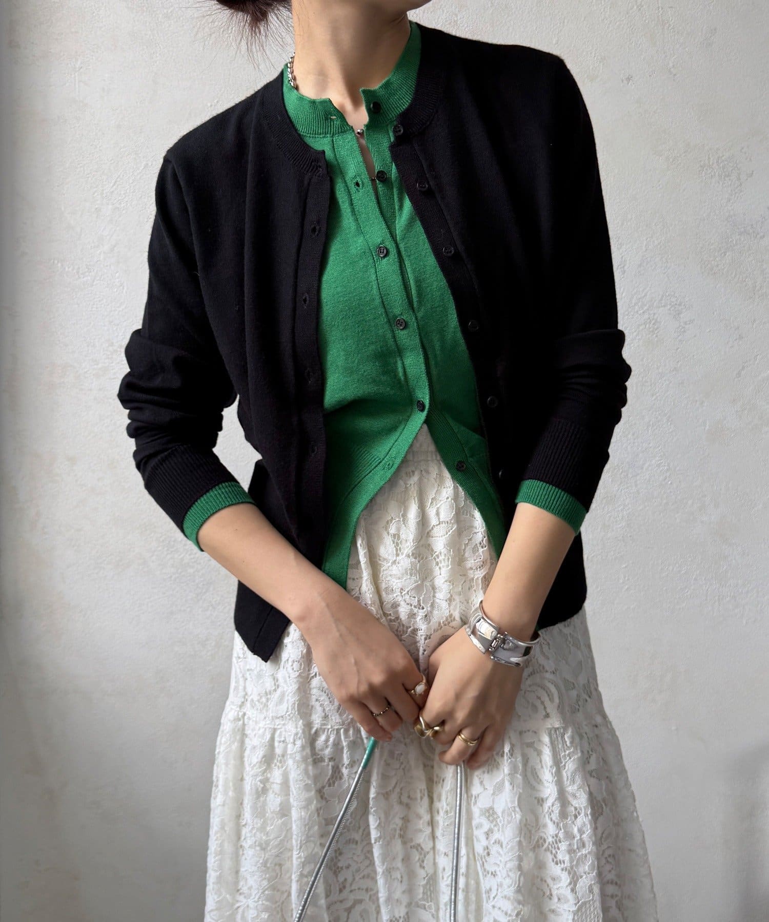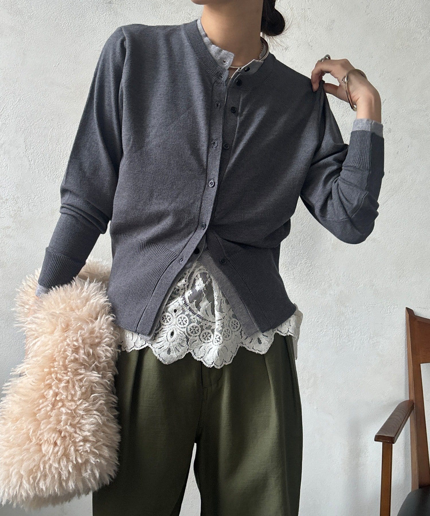 シンプルなスタイリングにこそ映える、レイヤードデザインが魅力のニットカーディガンが登場。