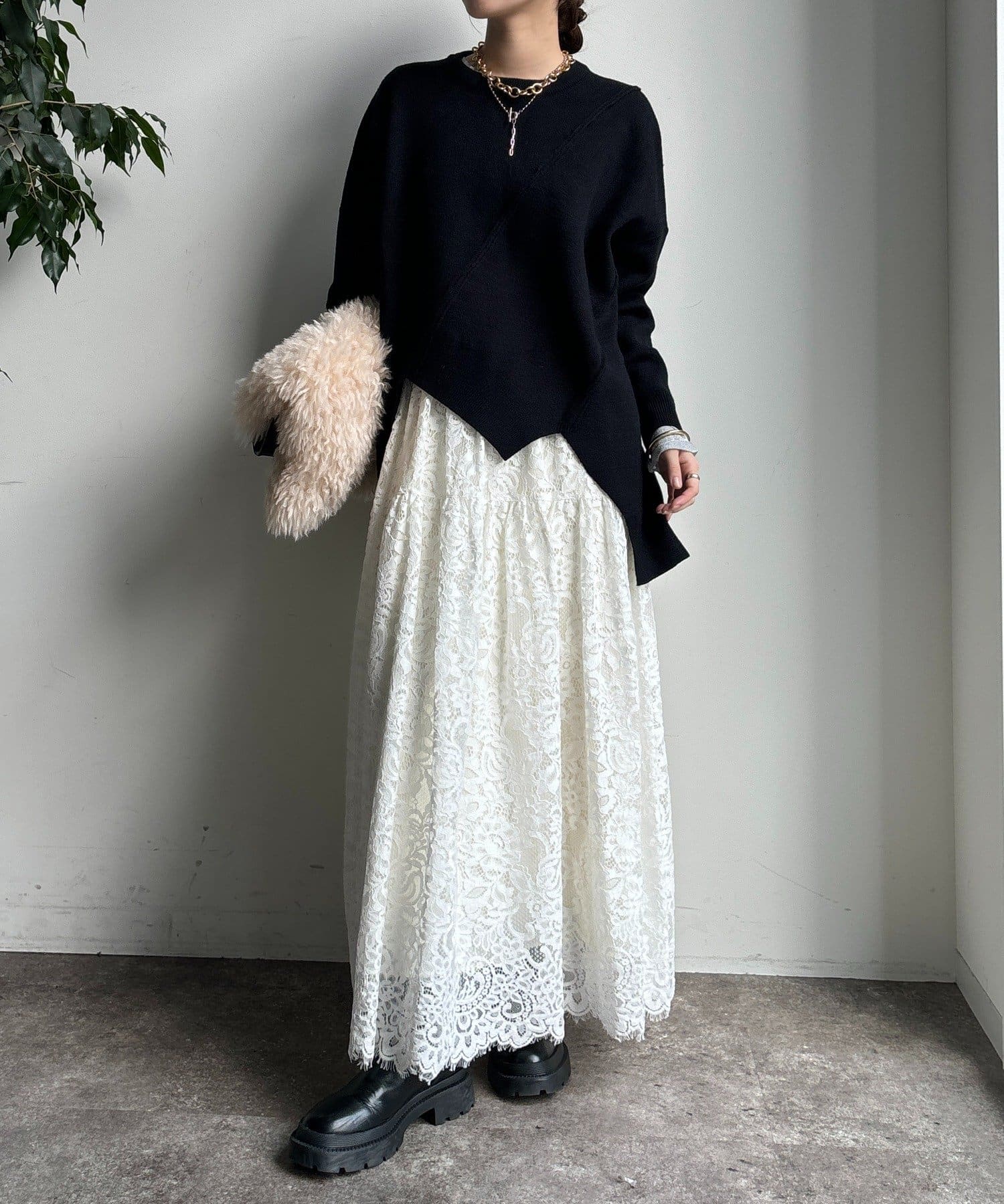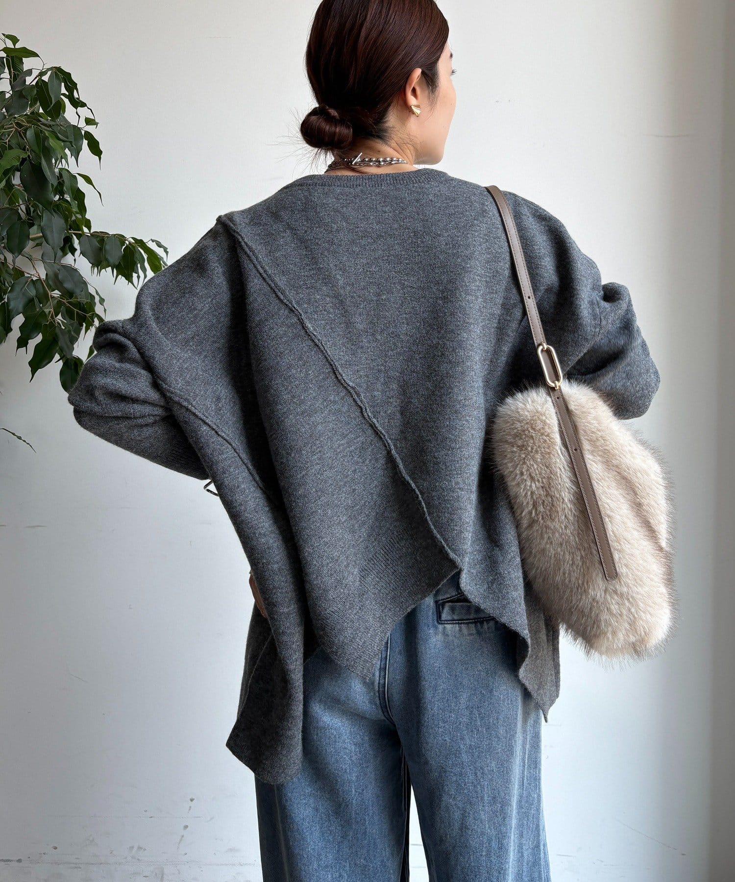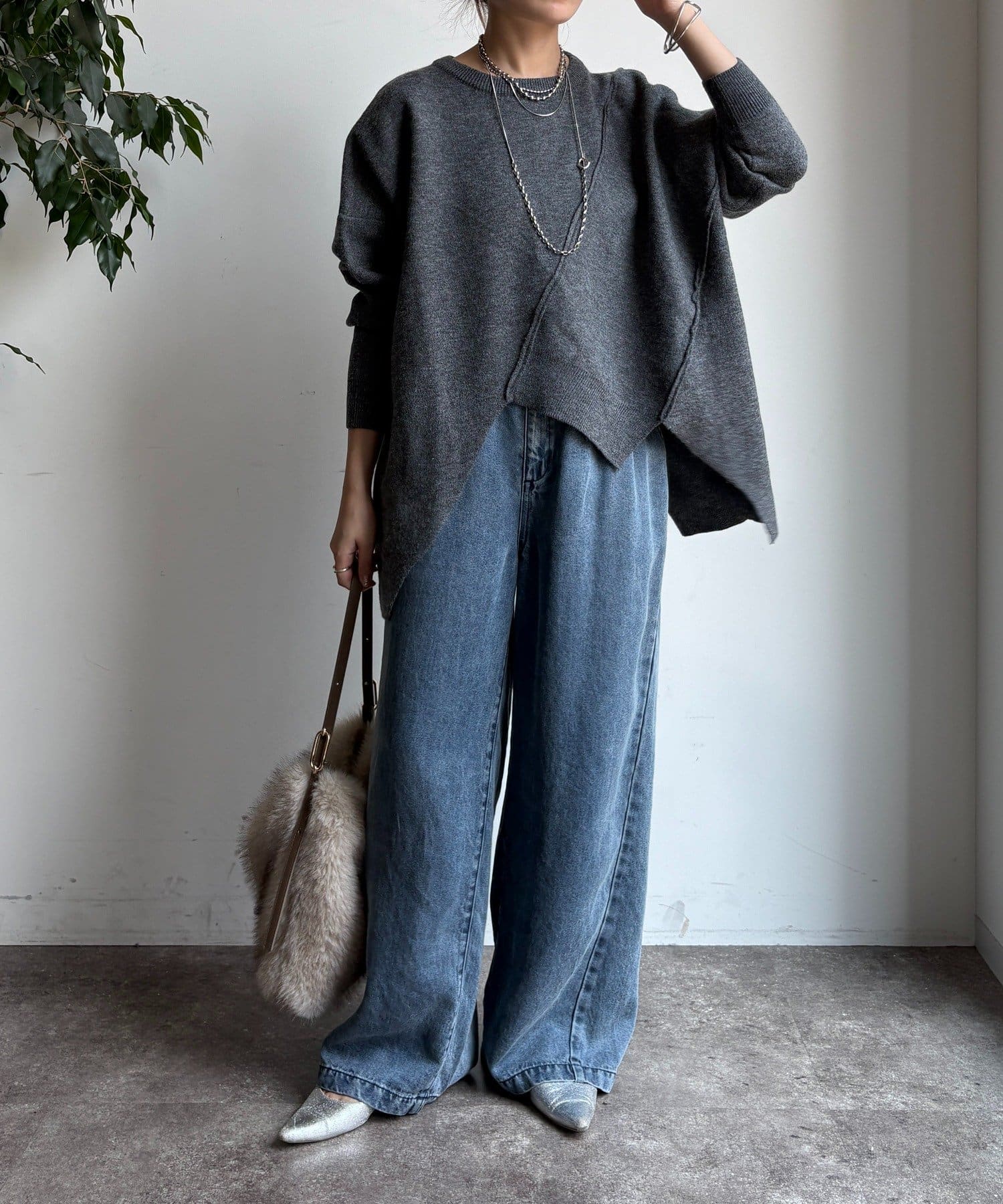 着用するだけで、映えるアシンメトリーなステッチニット!