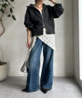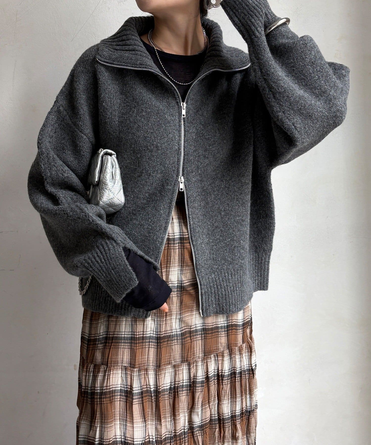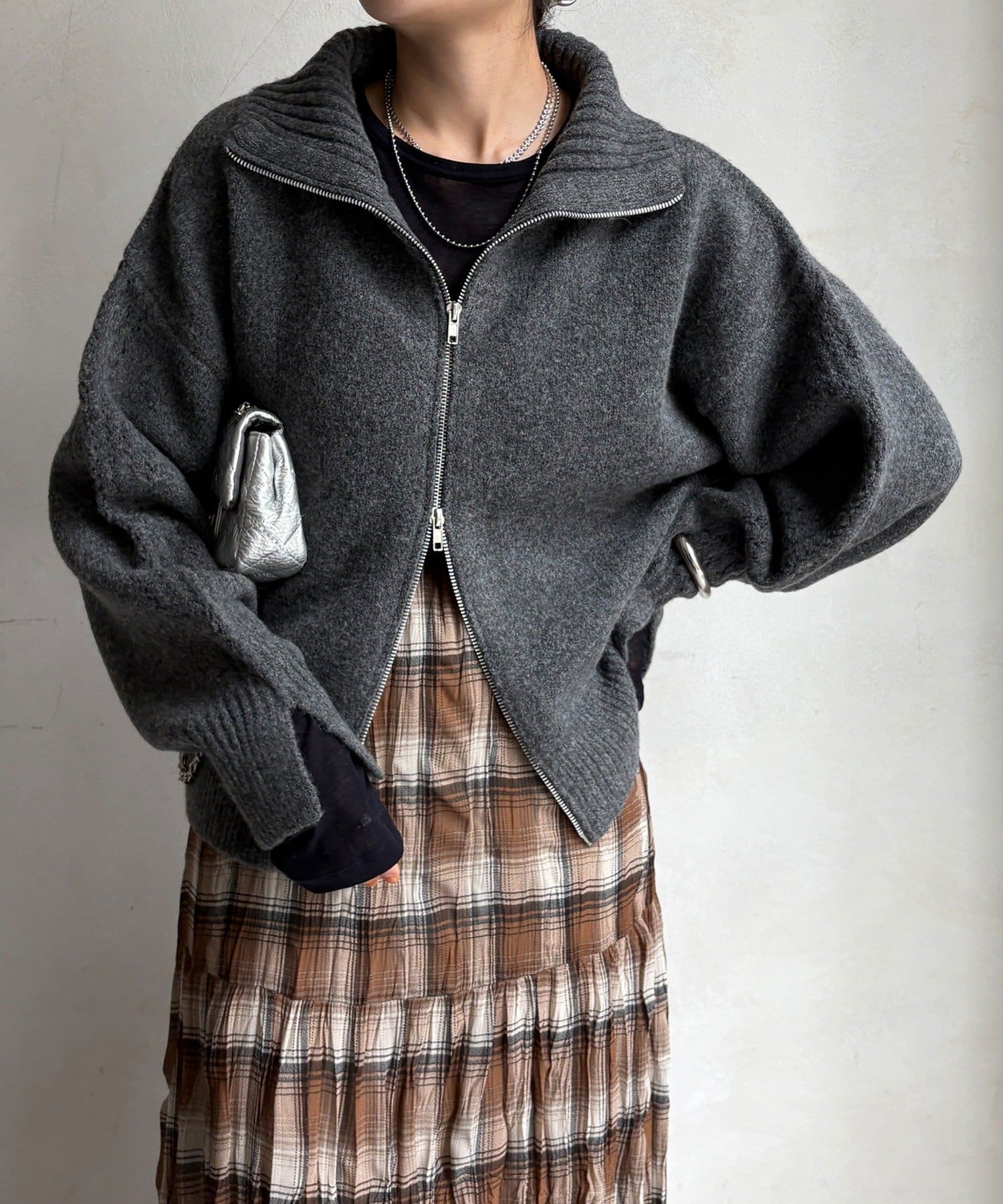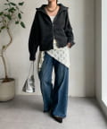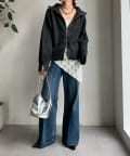 上下どちらからも開閉できるダブルジップ仕様で、着こなしのアレンジは自由自在。