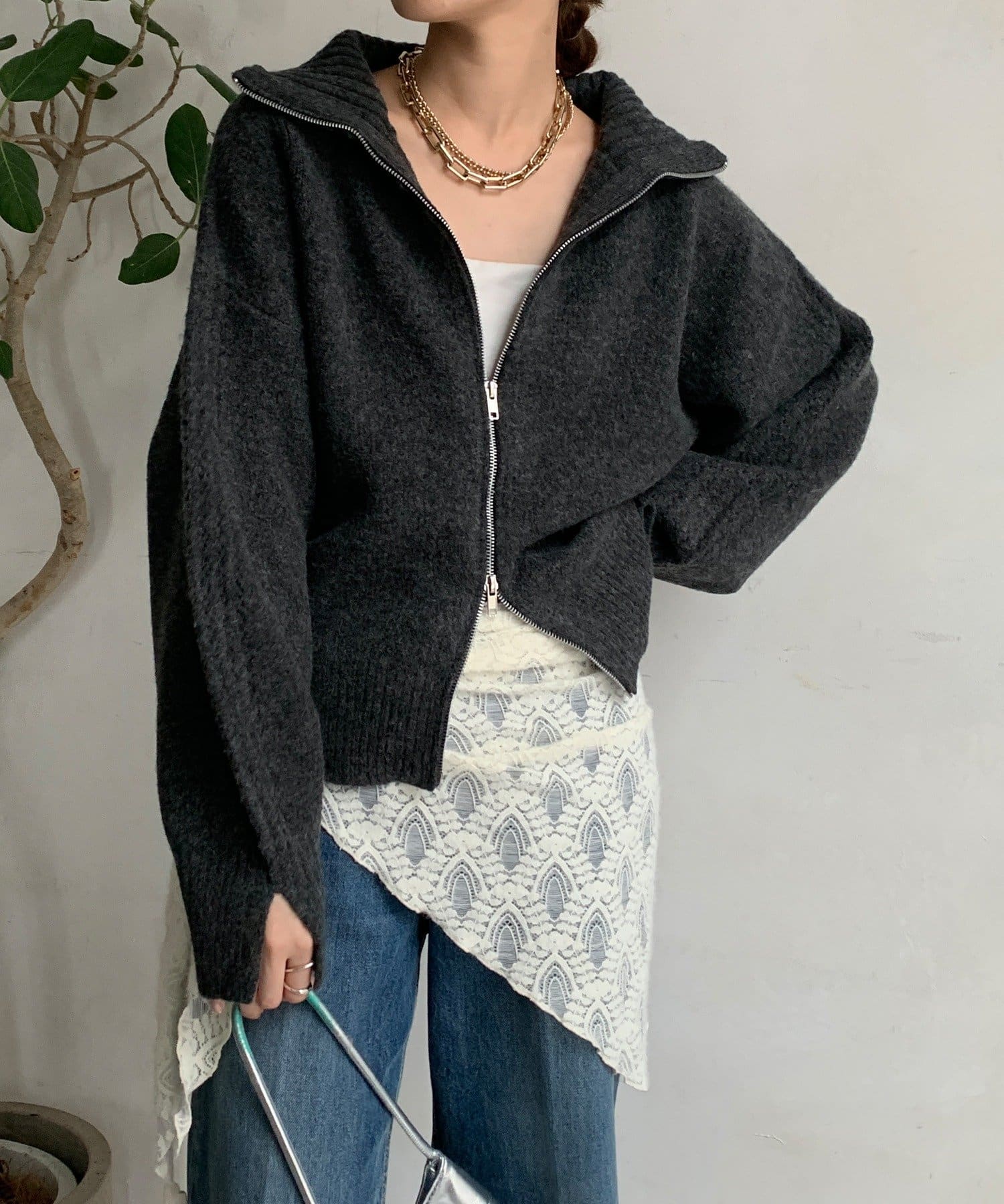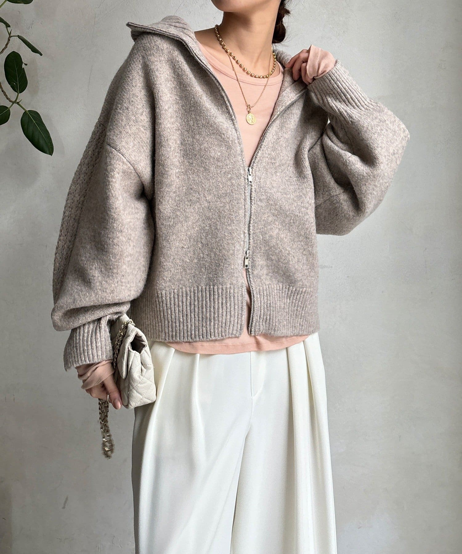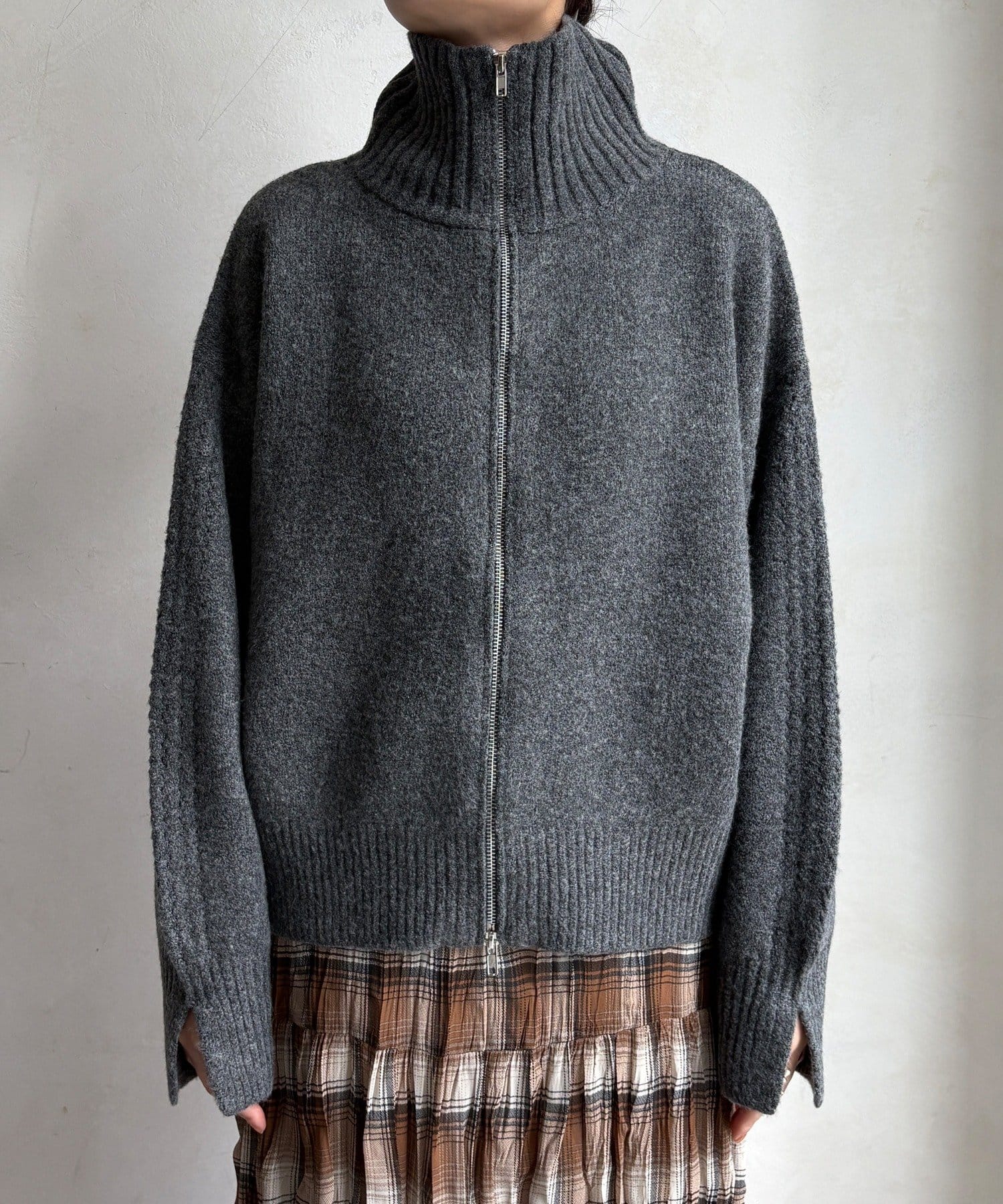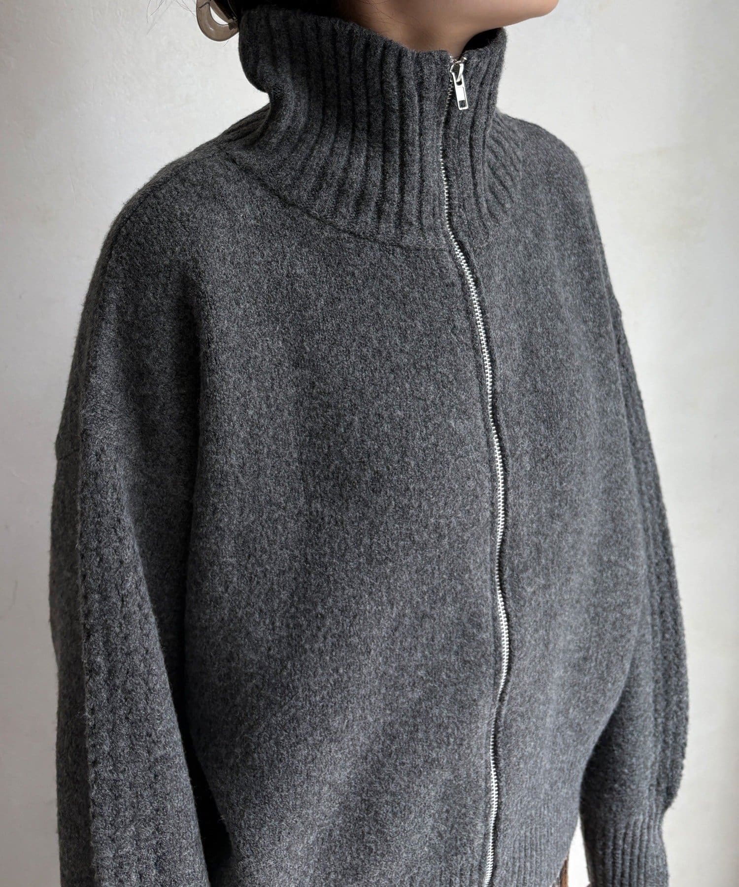 ジップの開き具合で女性らしいヘルシーな着こなしから、シアーなどのレイヤードで様々なスタイリングと相性抜群で、