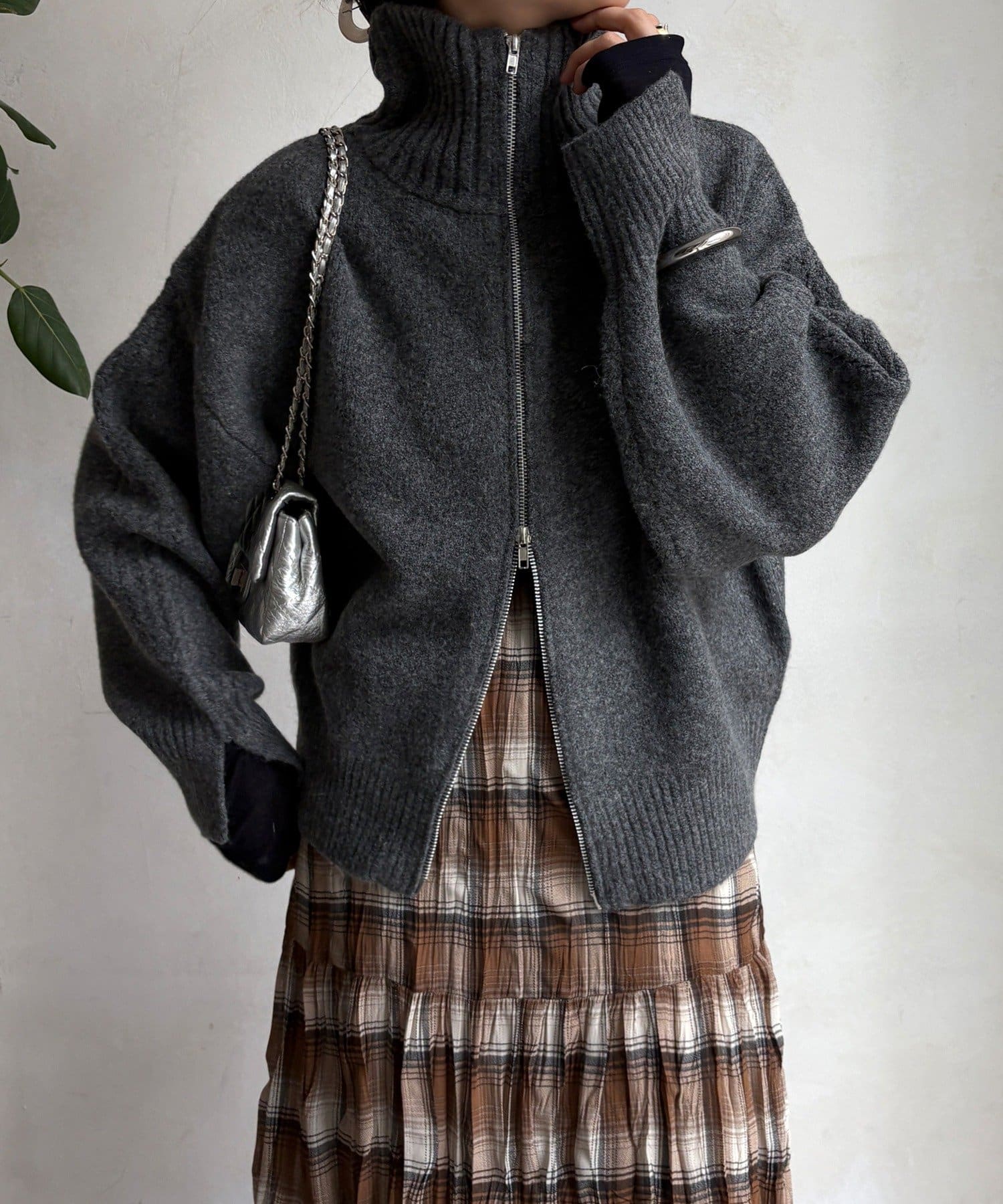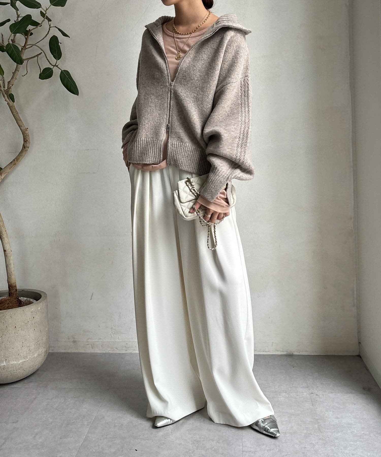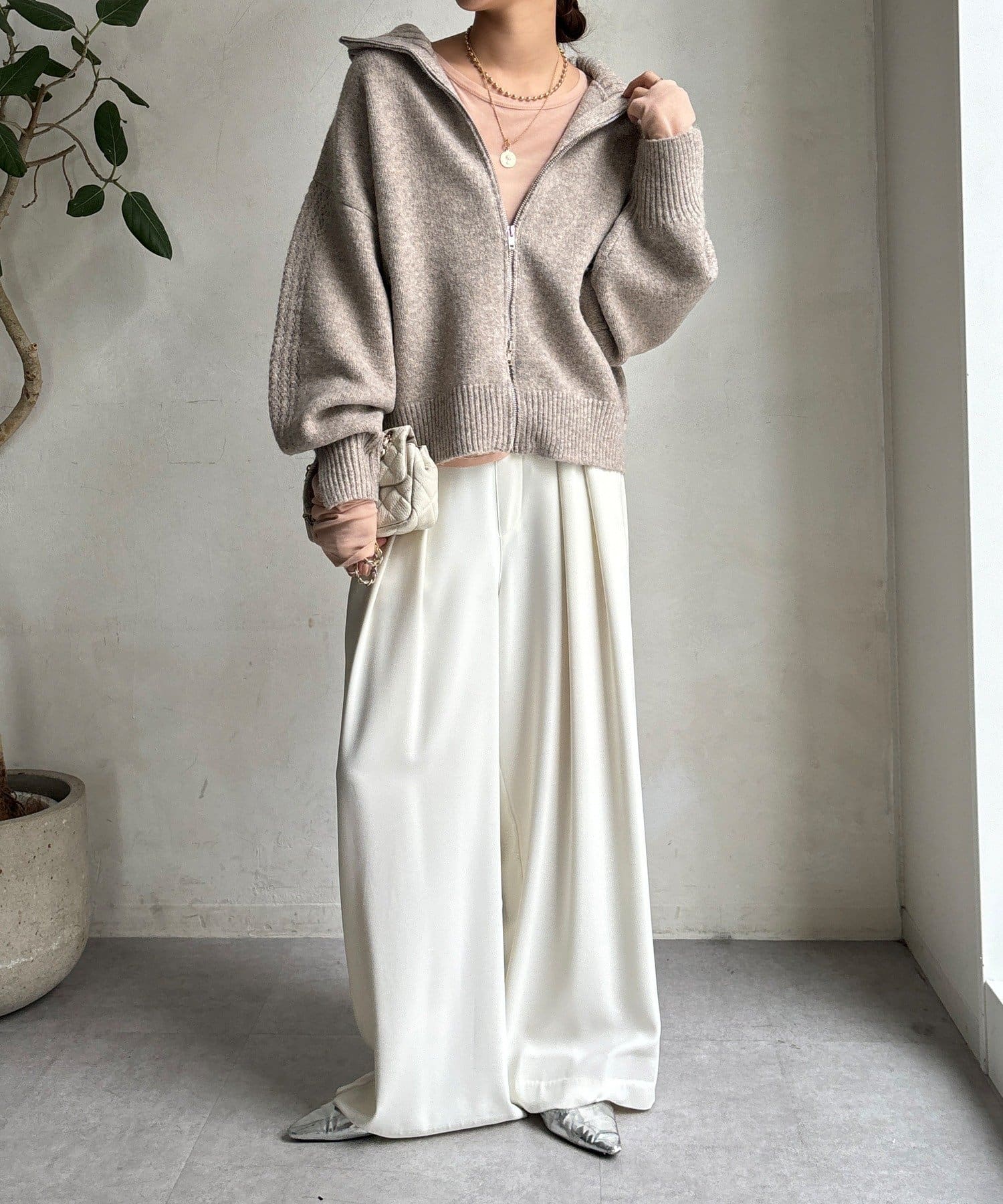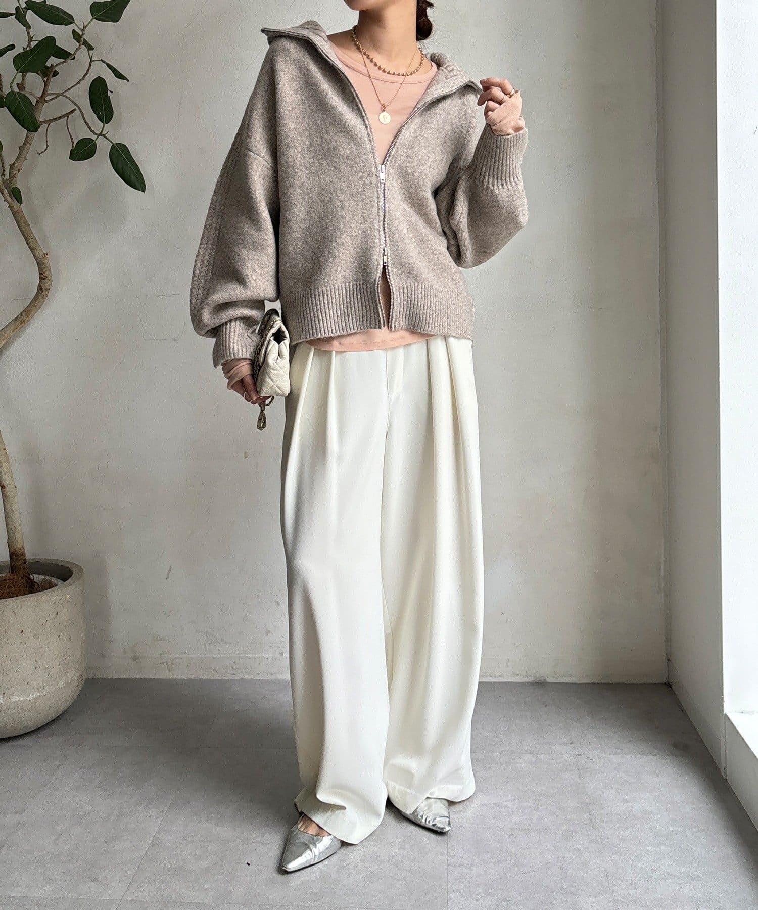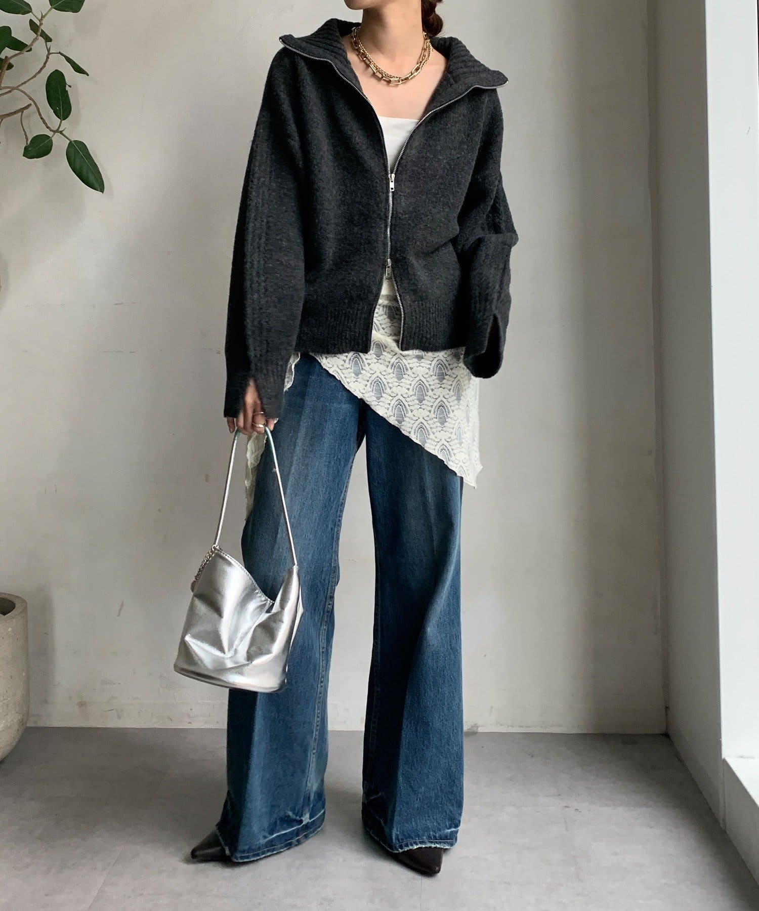 ジップの開き具合で女性らしいヘルシーな着こなしから、シアーなどのレイヤードで様々なスタイリングと相性抜群で、