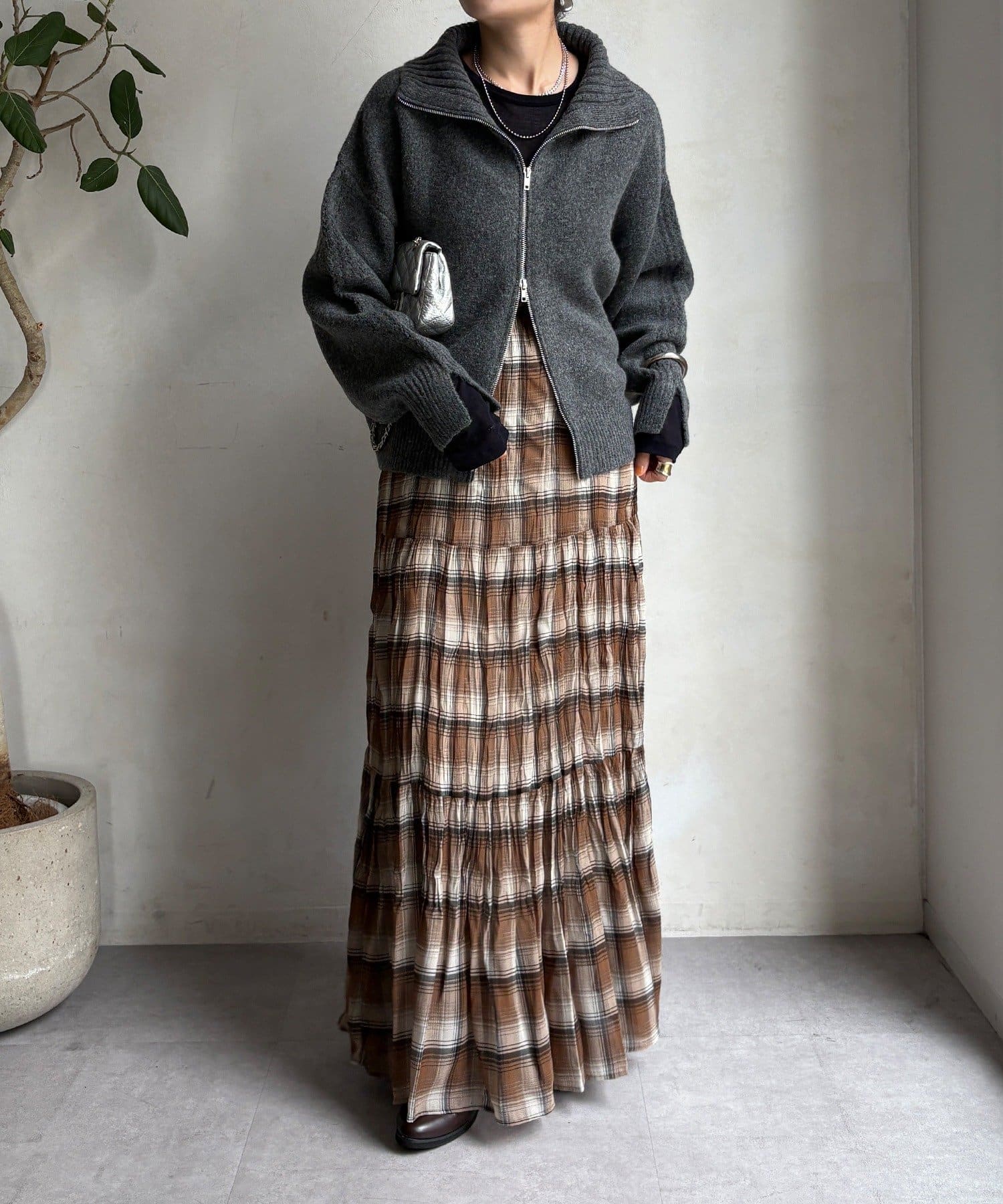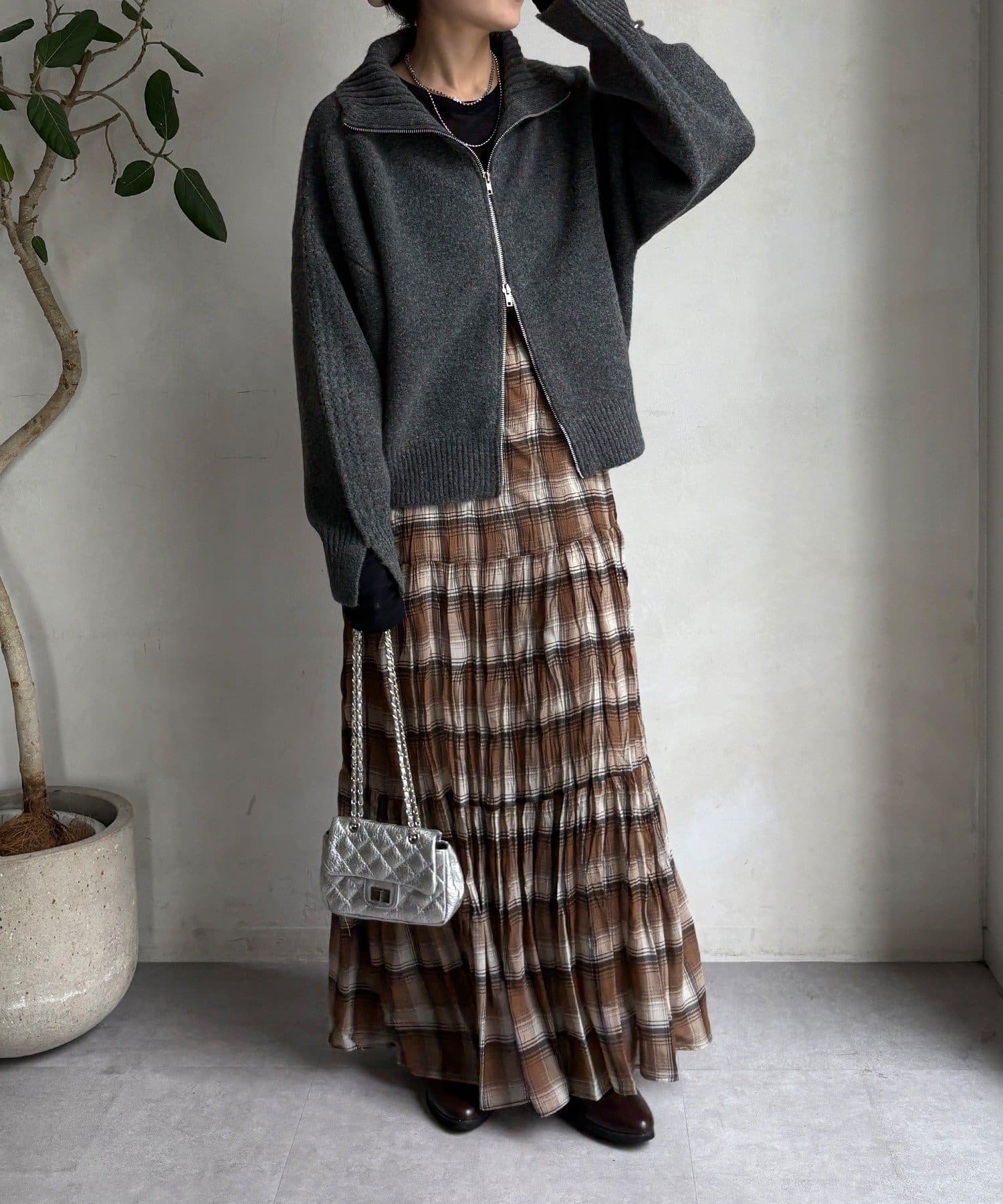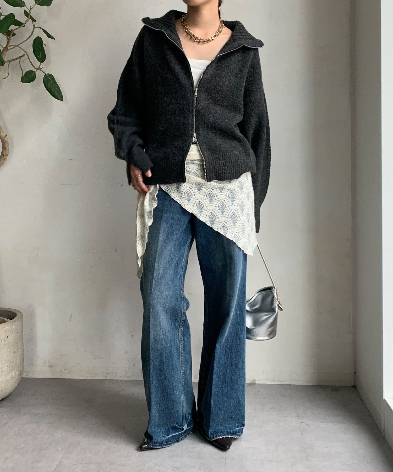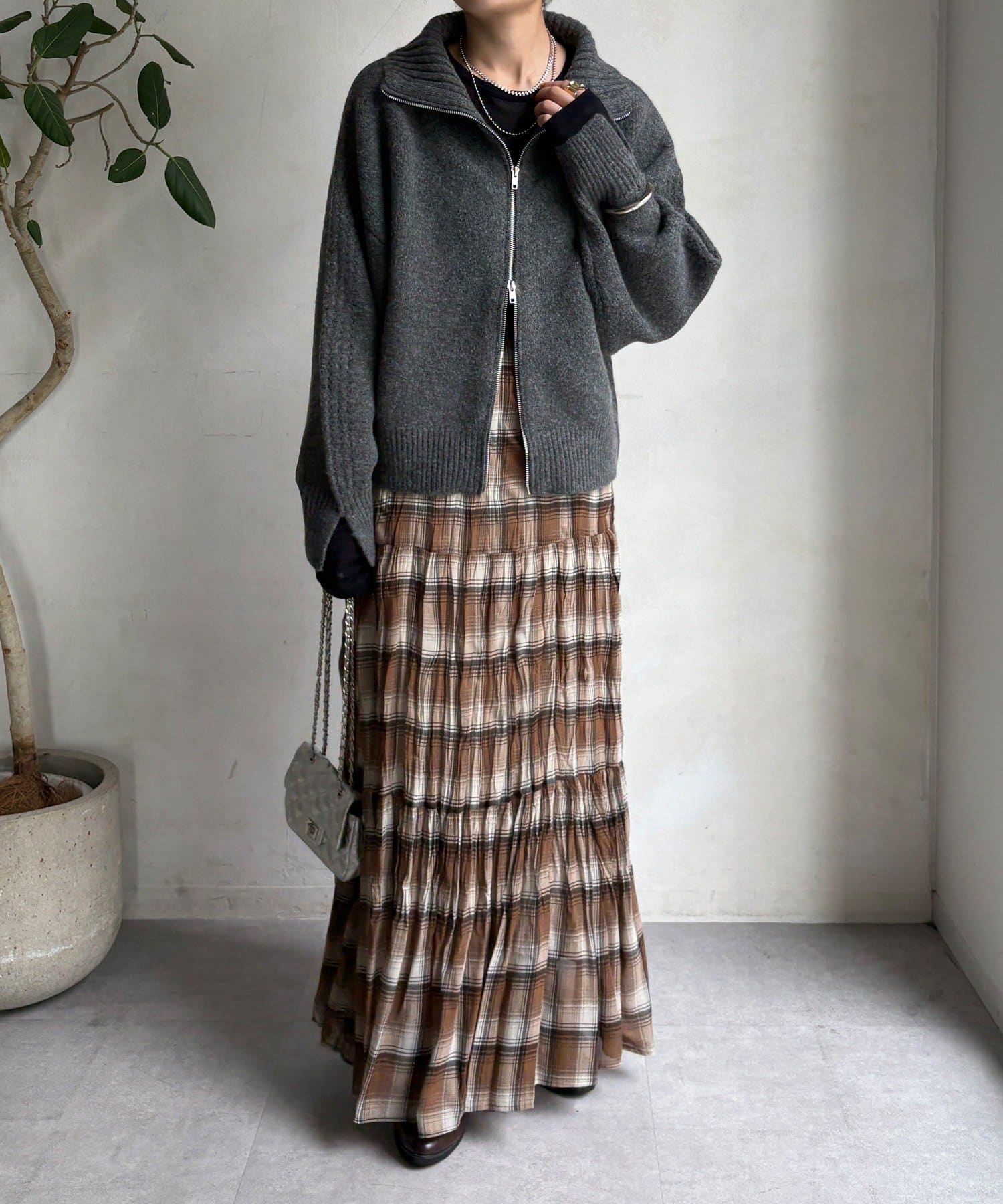 ジップの開き具合で女性らしいヘルシーな着こなしから、シアーなどのレイヤードで様々なスタイリングと相性抜群で、