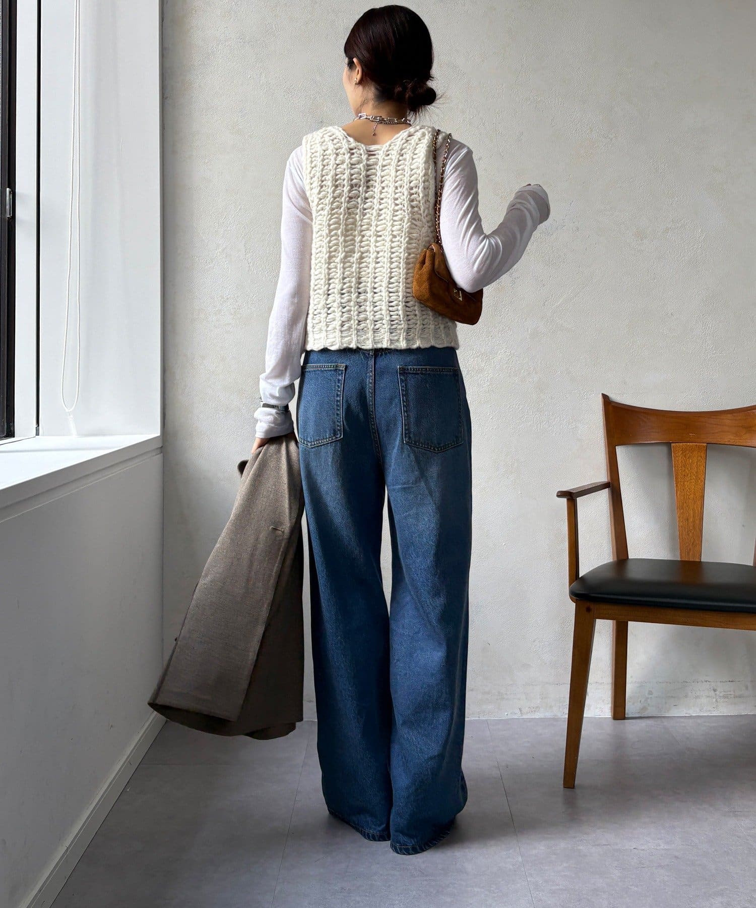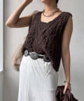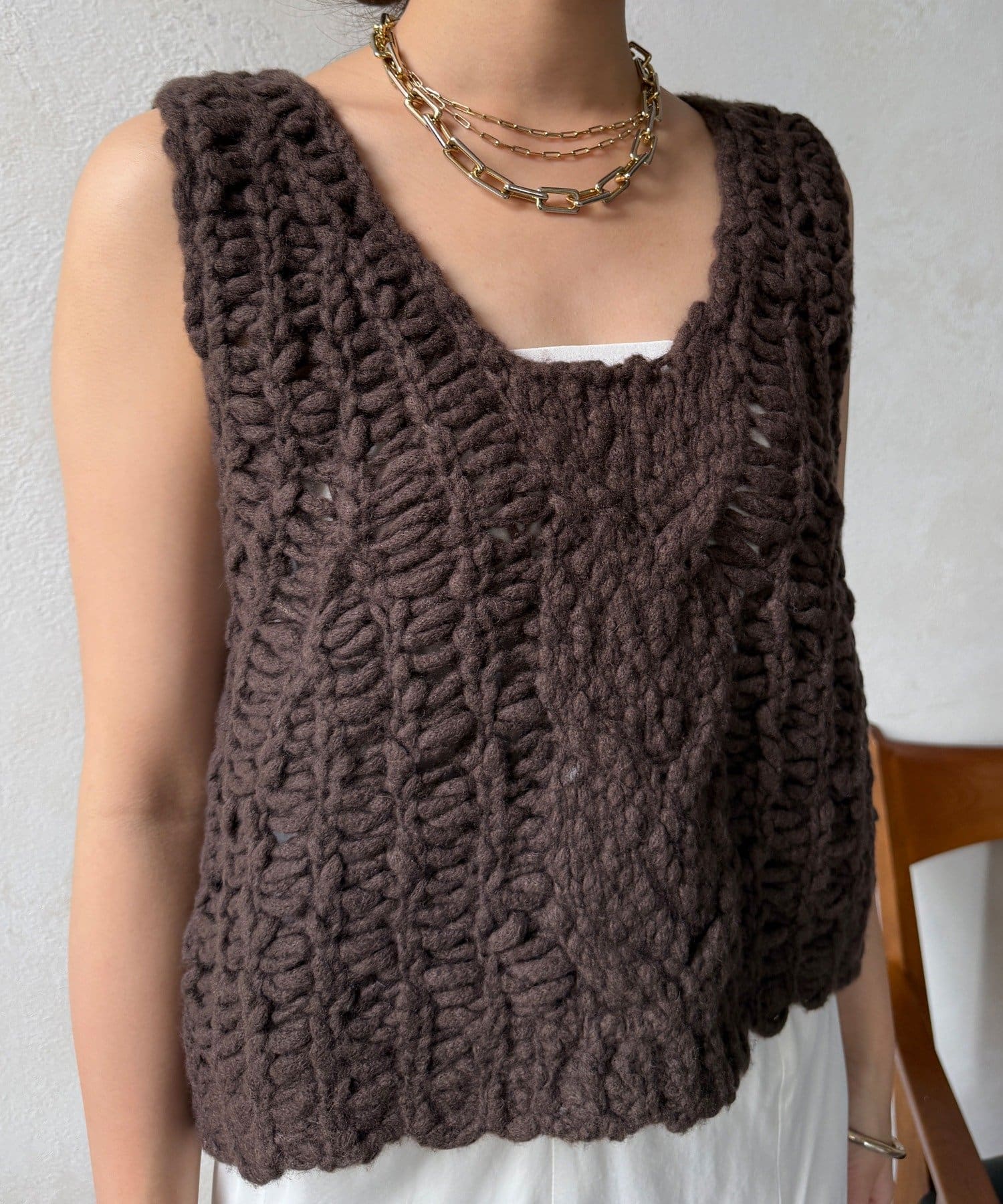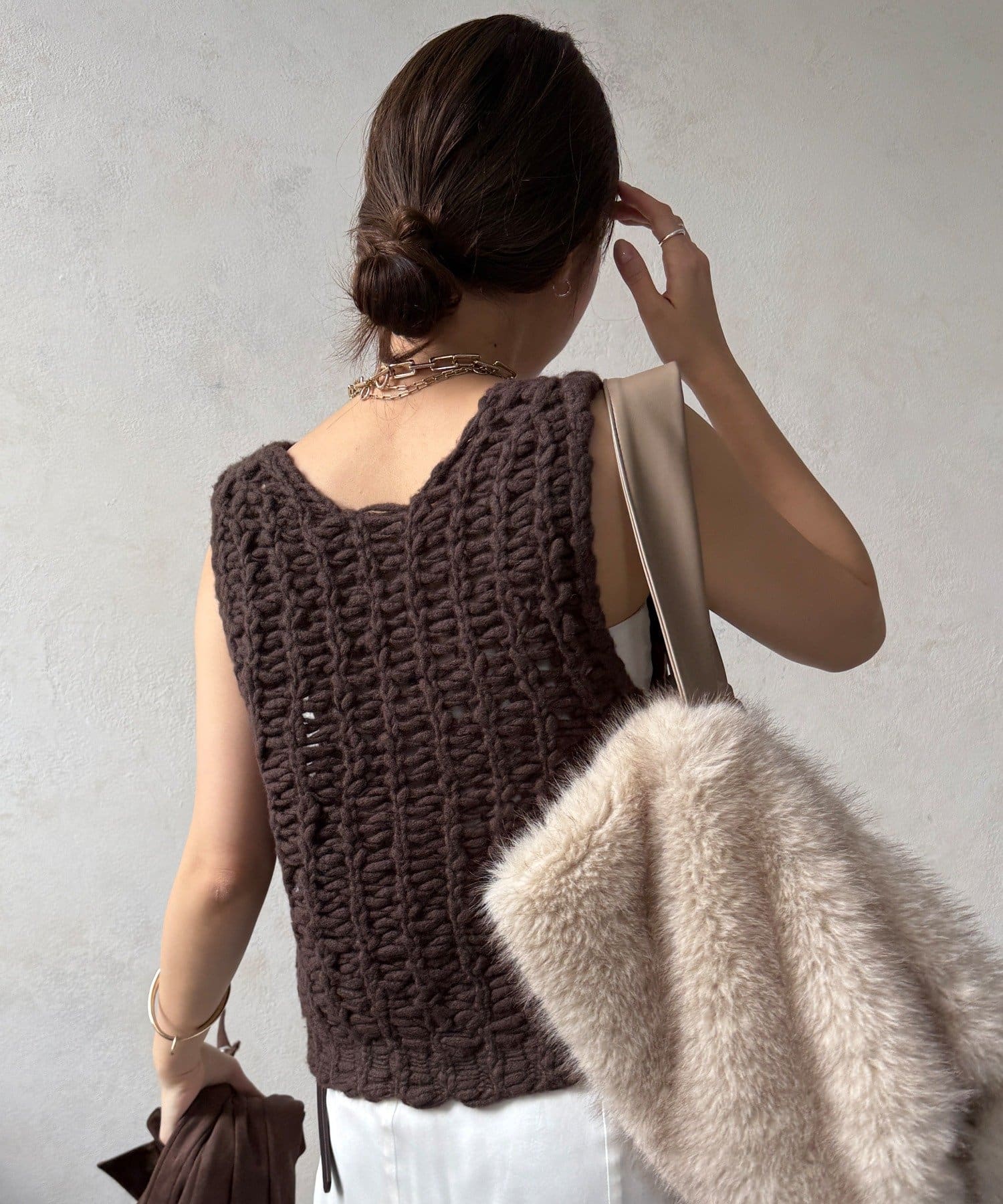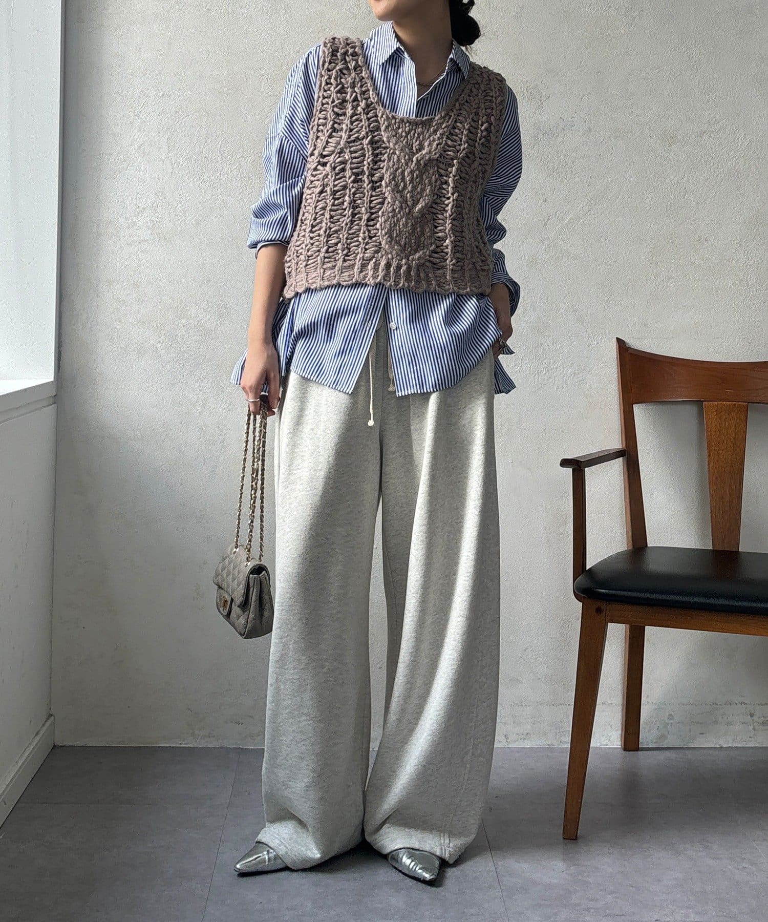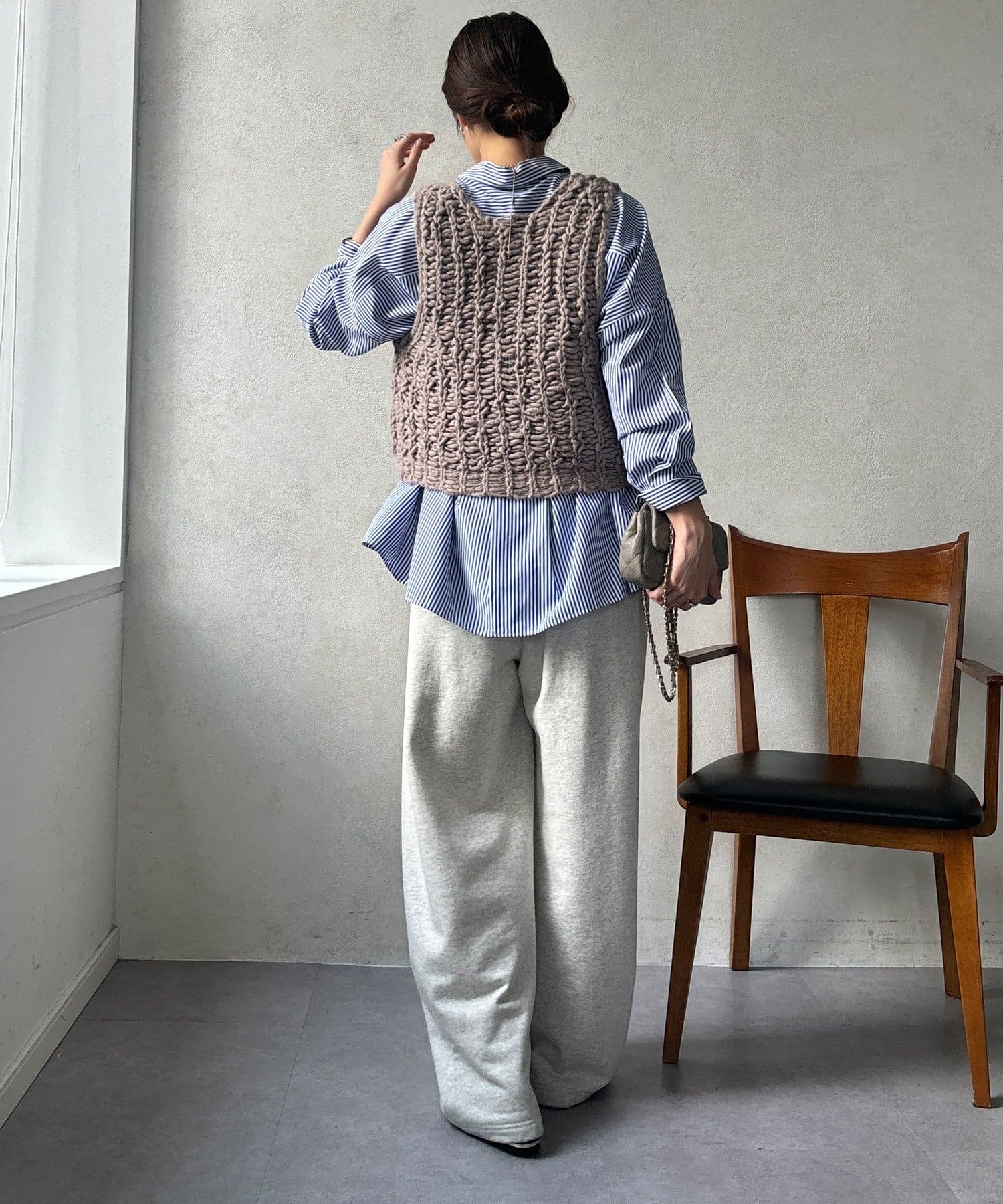 ざっくりとした編み地が季節感たっぷりで、カジュアルながらも女性らしい印象を与えてくれます。