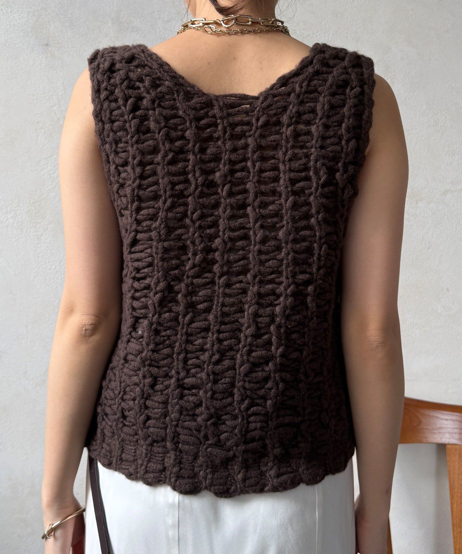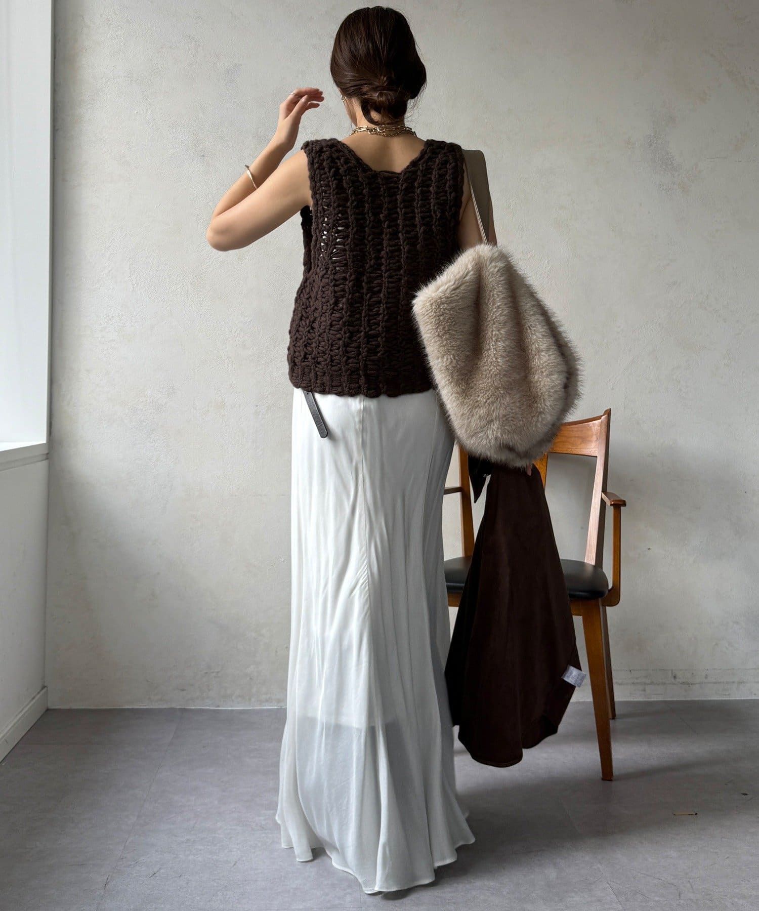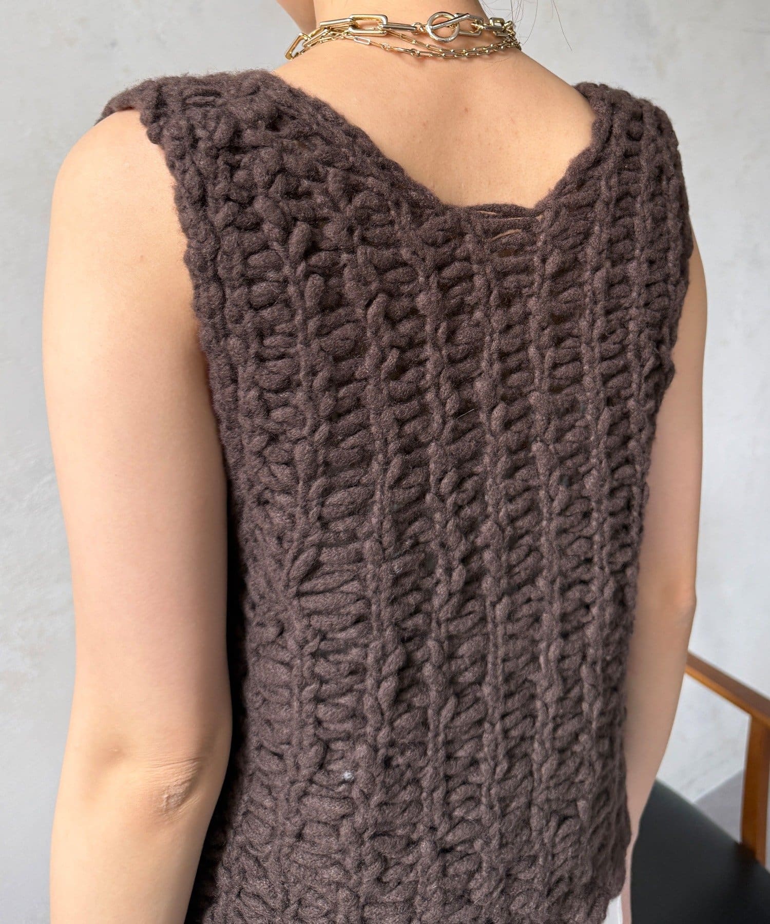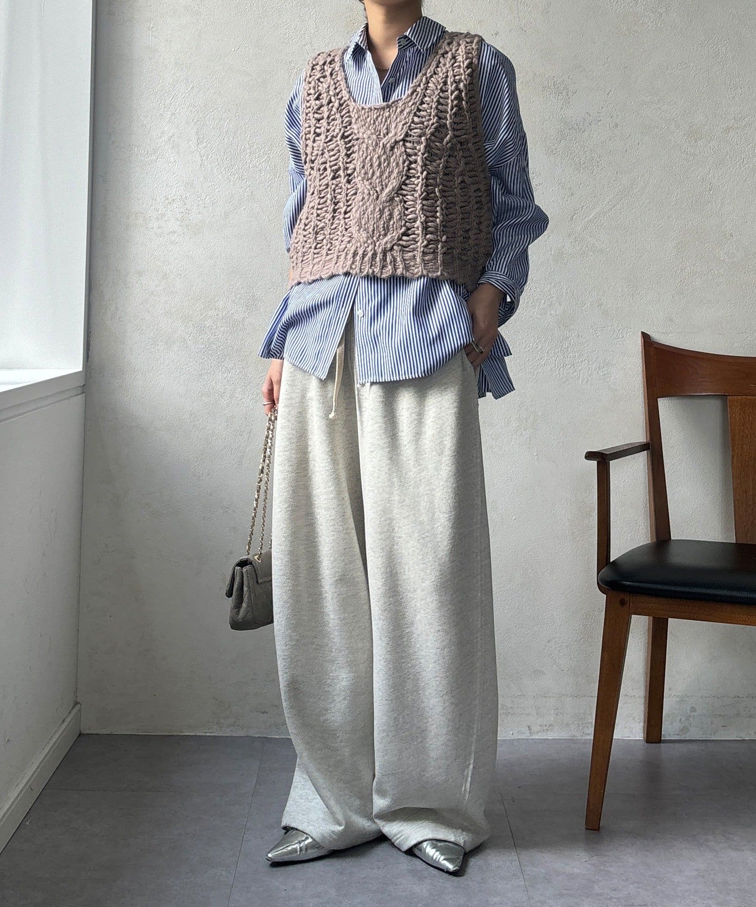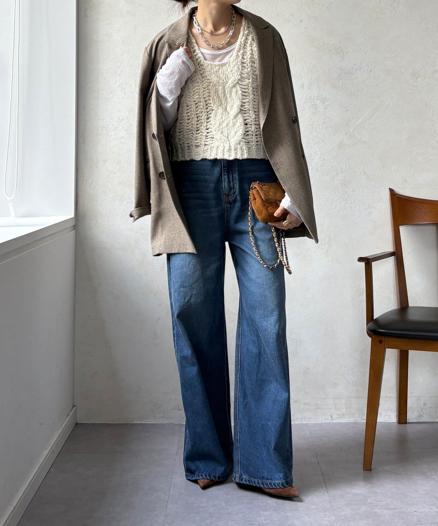 ざっくりとした編み地が季節感たっぷりで、カジュアルながらも女性らしい印象を与えてくれます。
