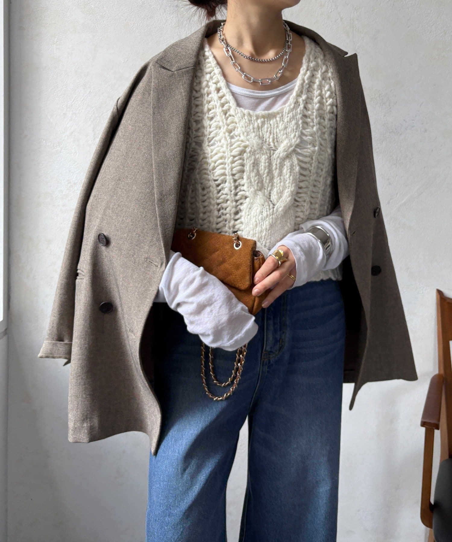 温かみのある素材感と立体的なケーブル模様が、シンプルな着こなしに程よいアクセントをプラスします。