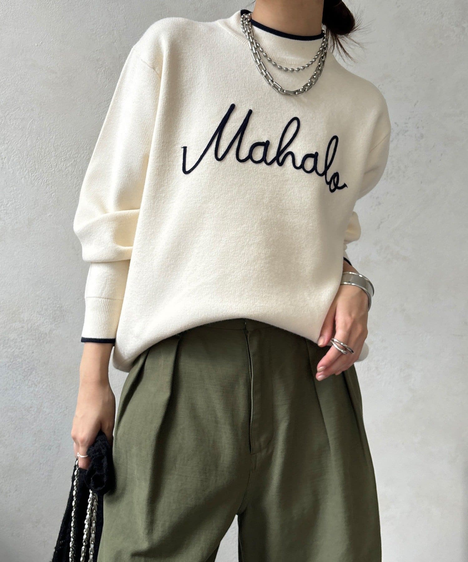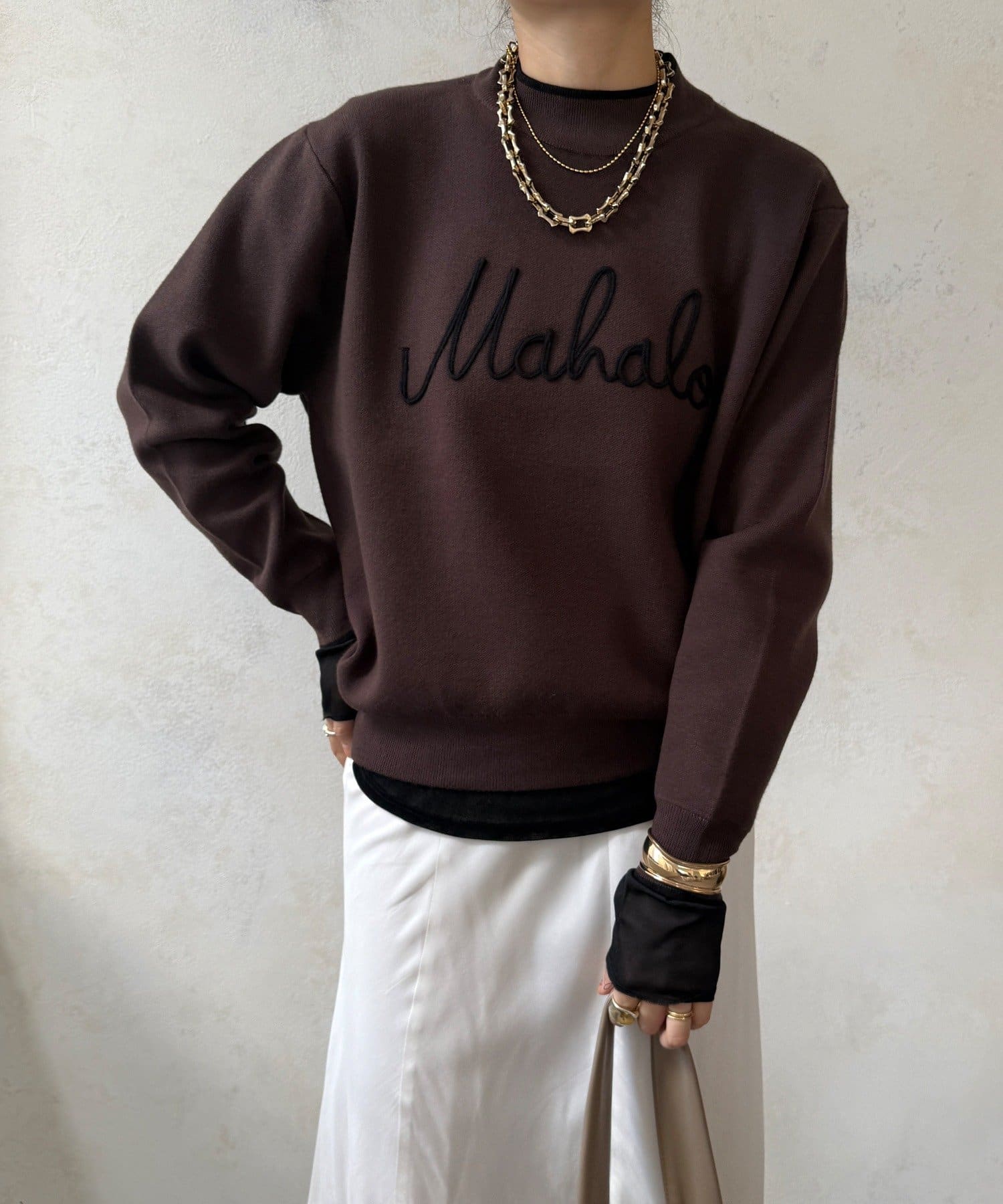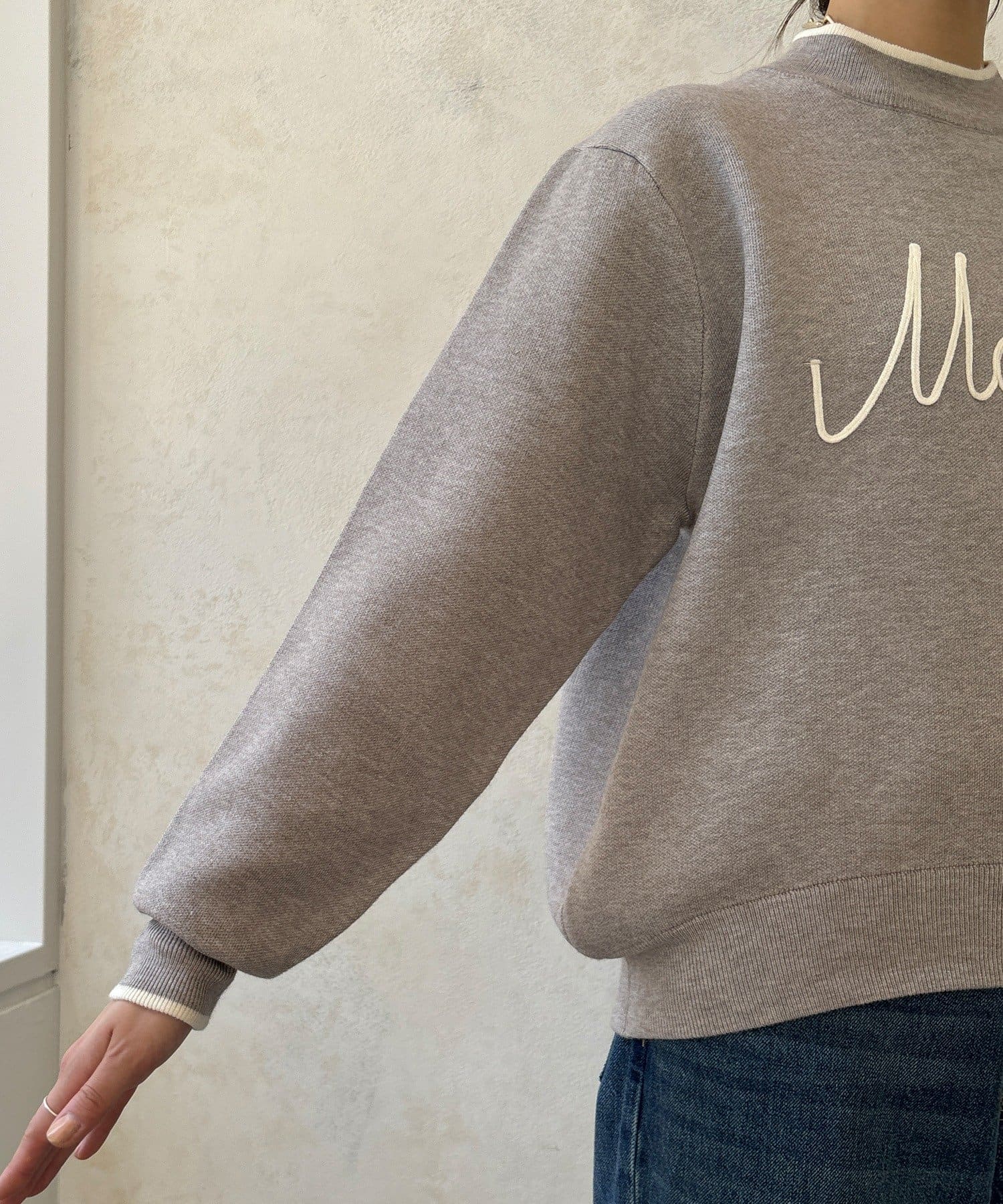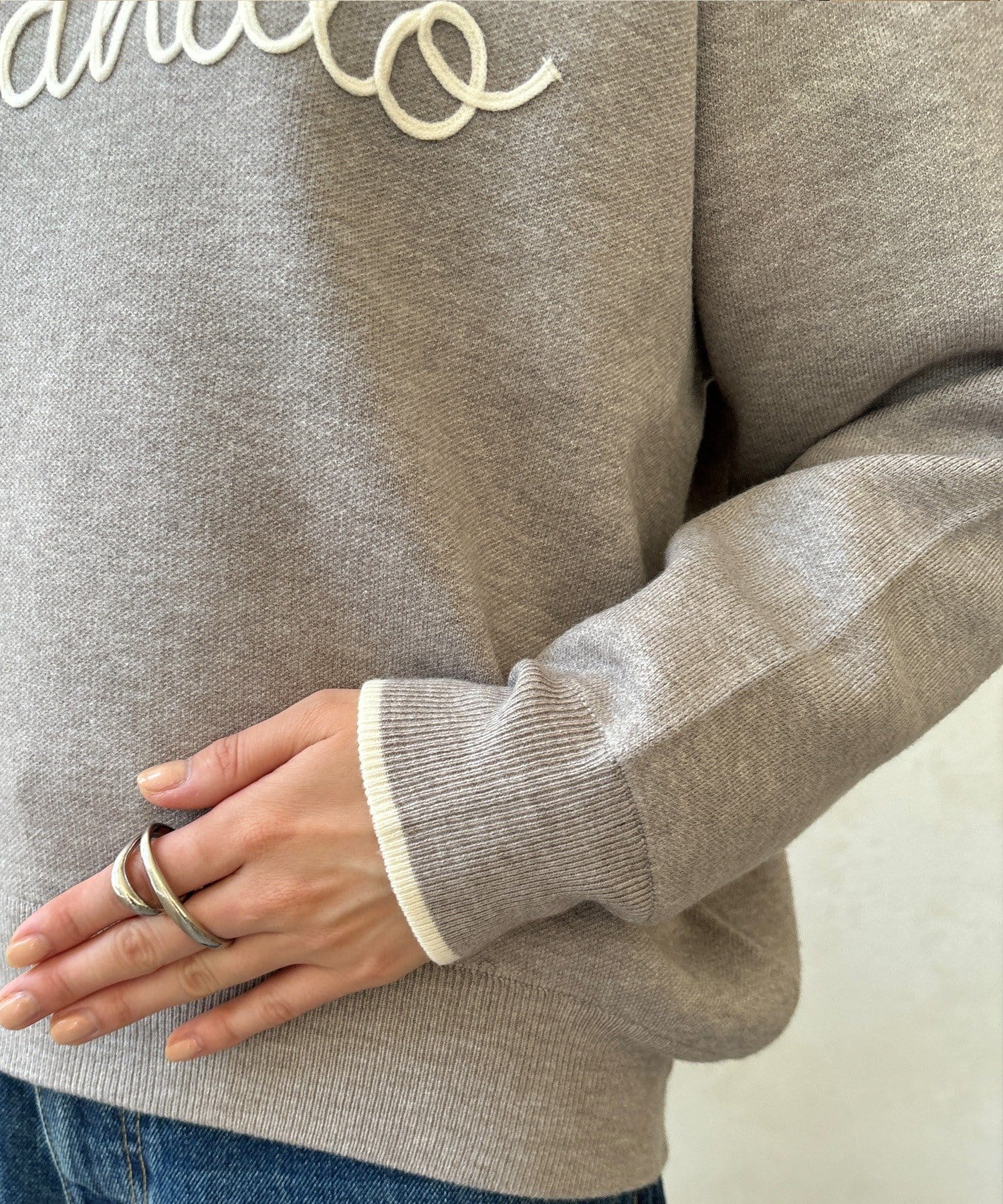 フロントに施したコード刺繍ロゴが目を引く、主役級のニットトップス。