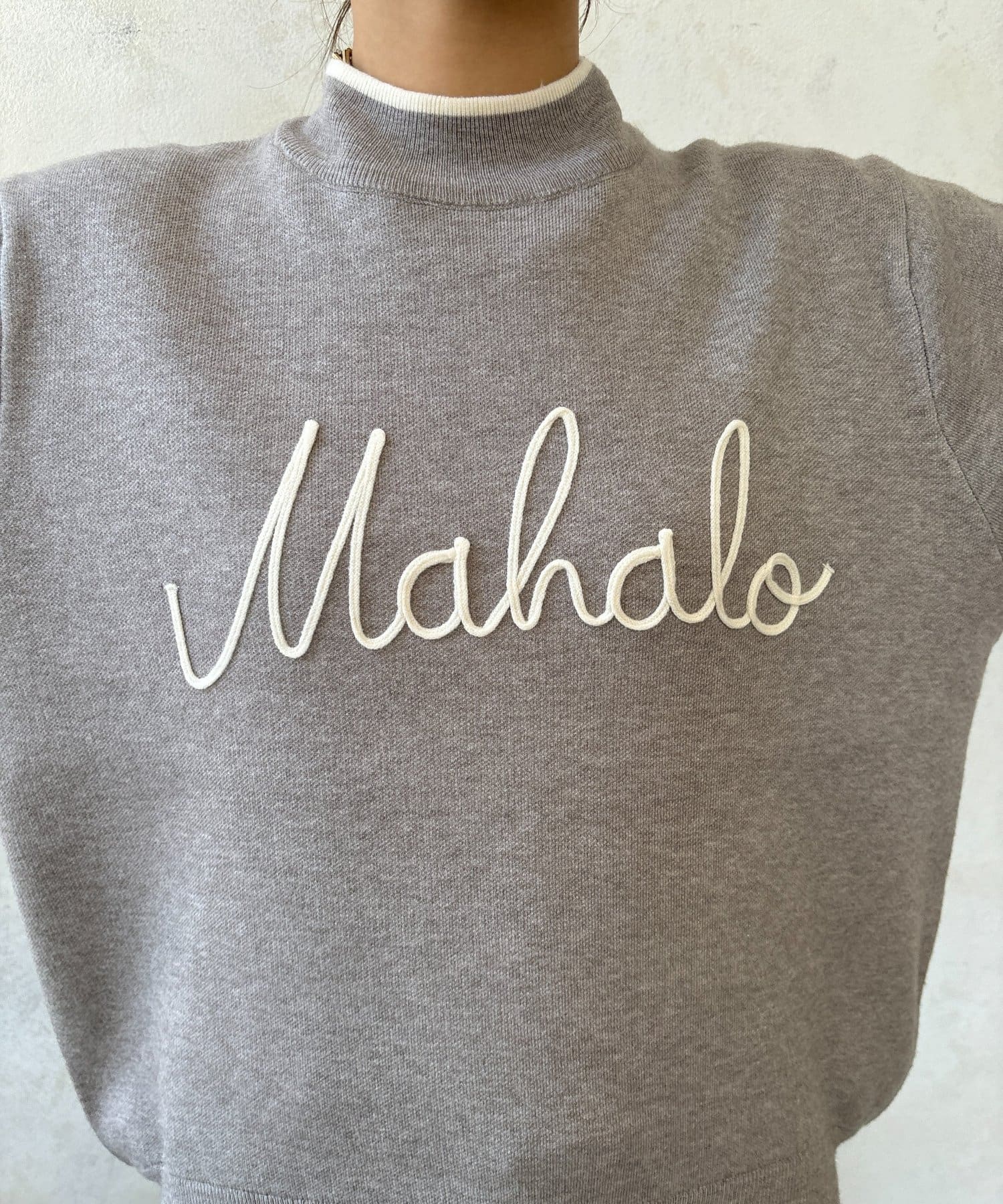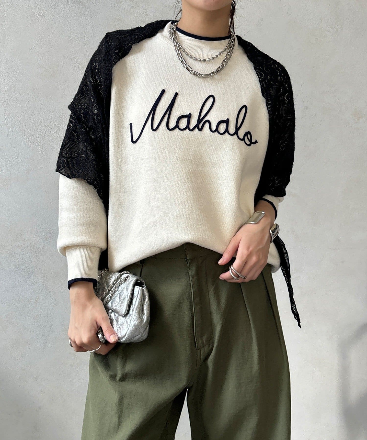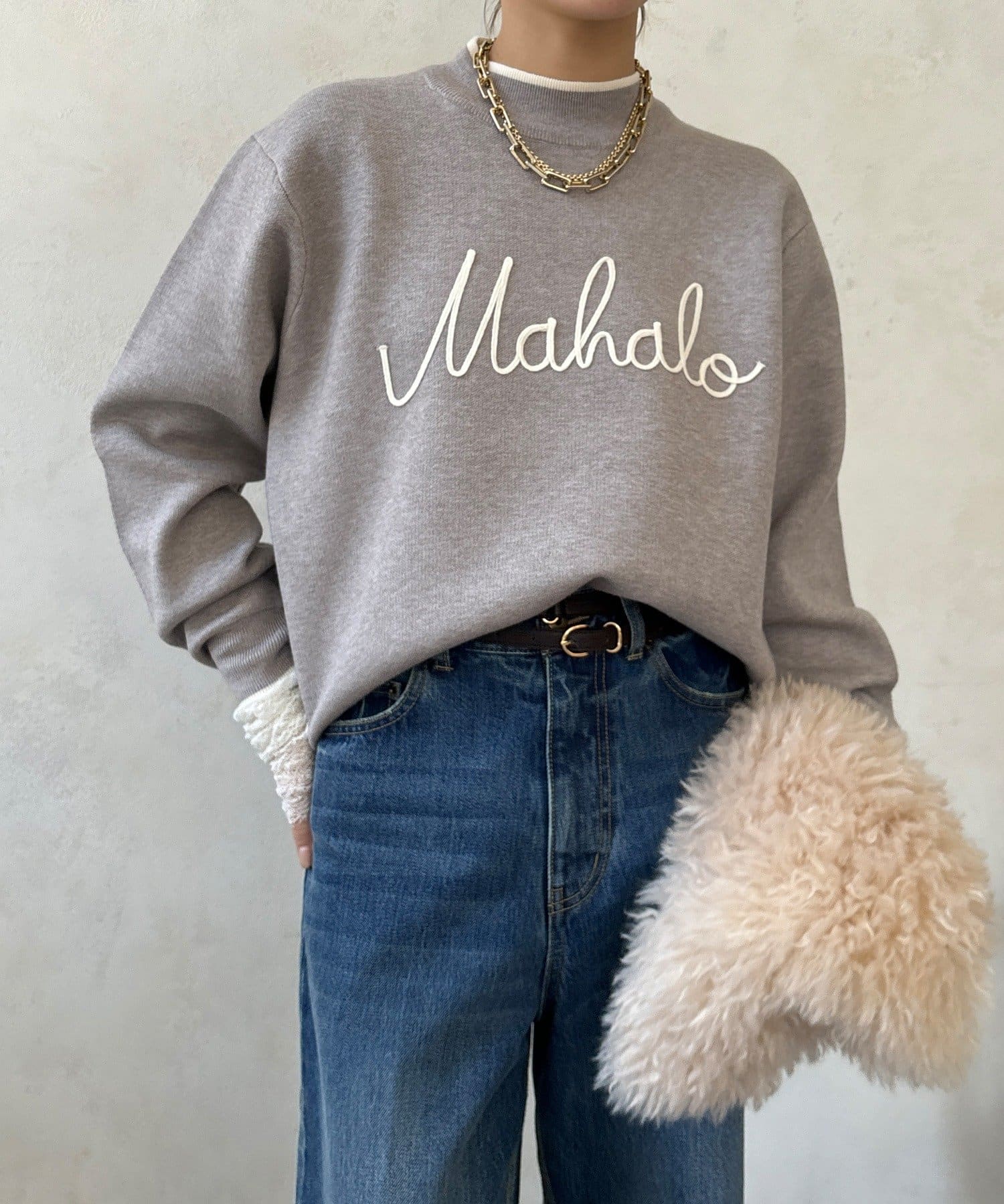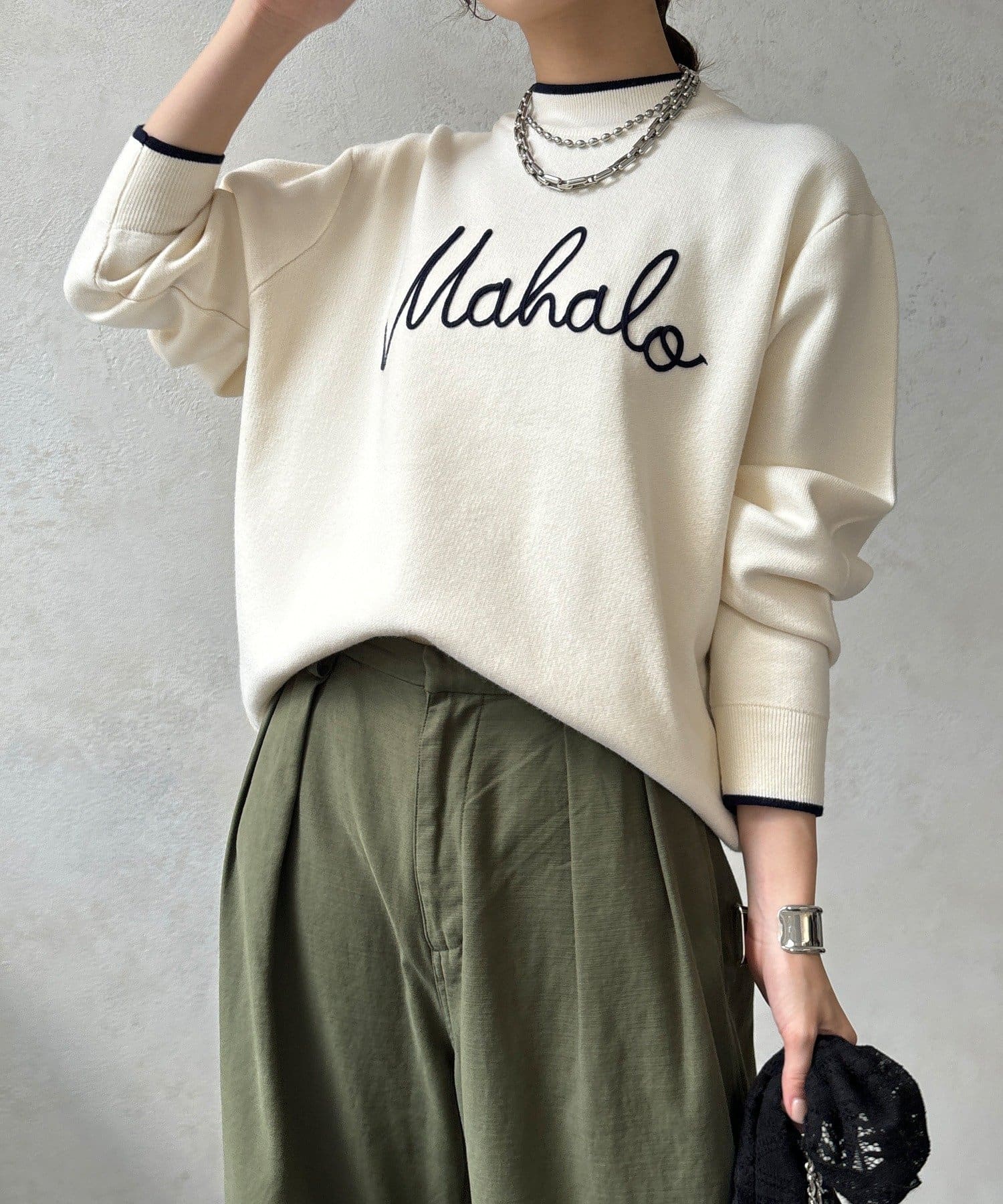 フロントに施したコード刺繍ロゴが目を引く、主役級のニットトップス。