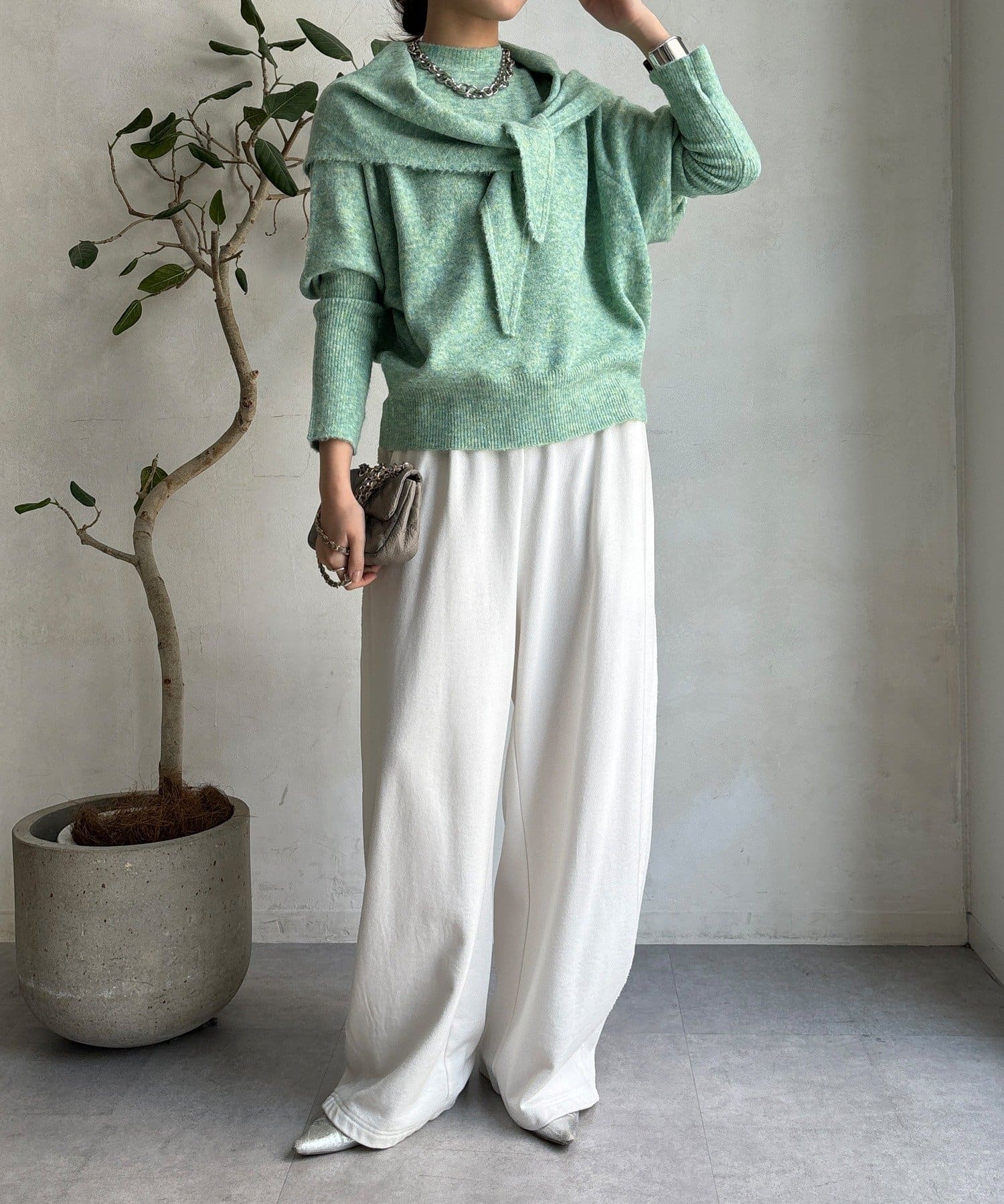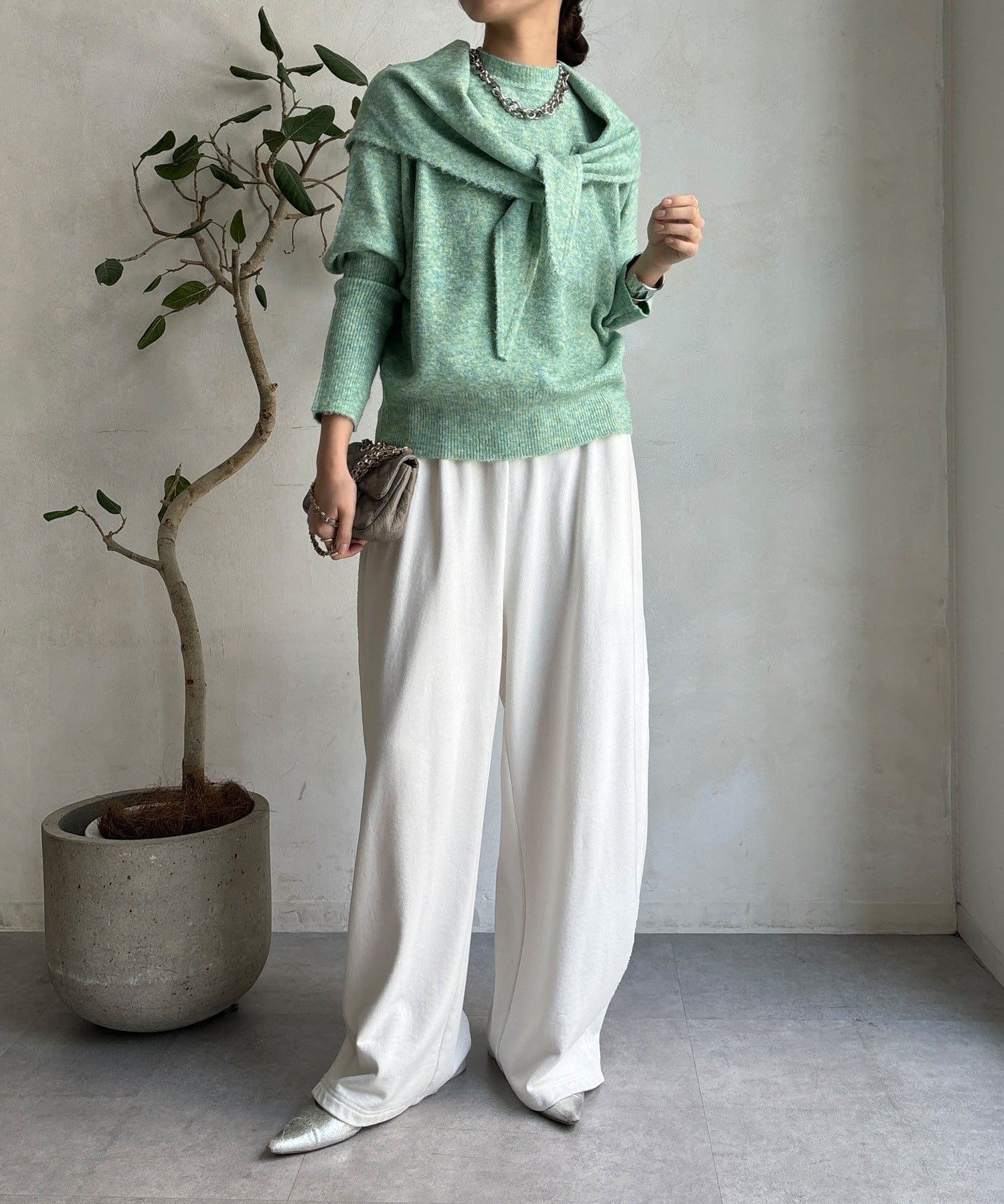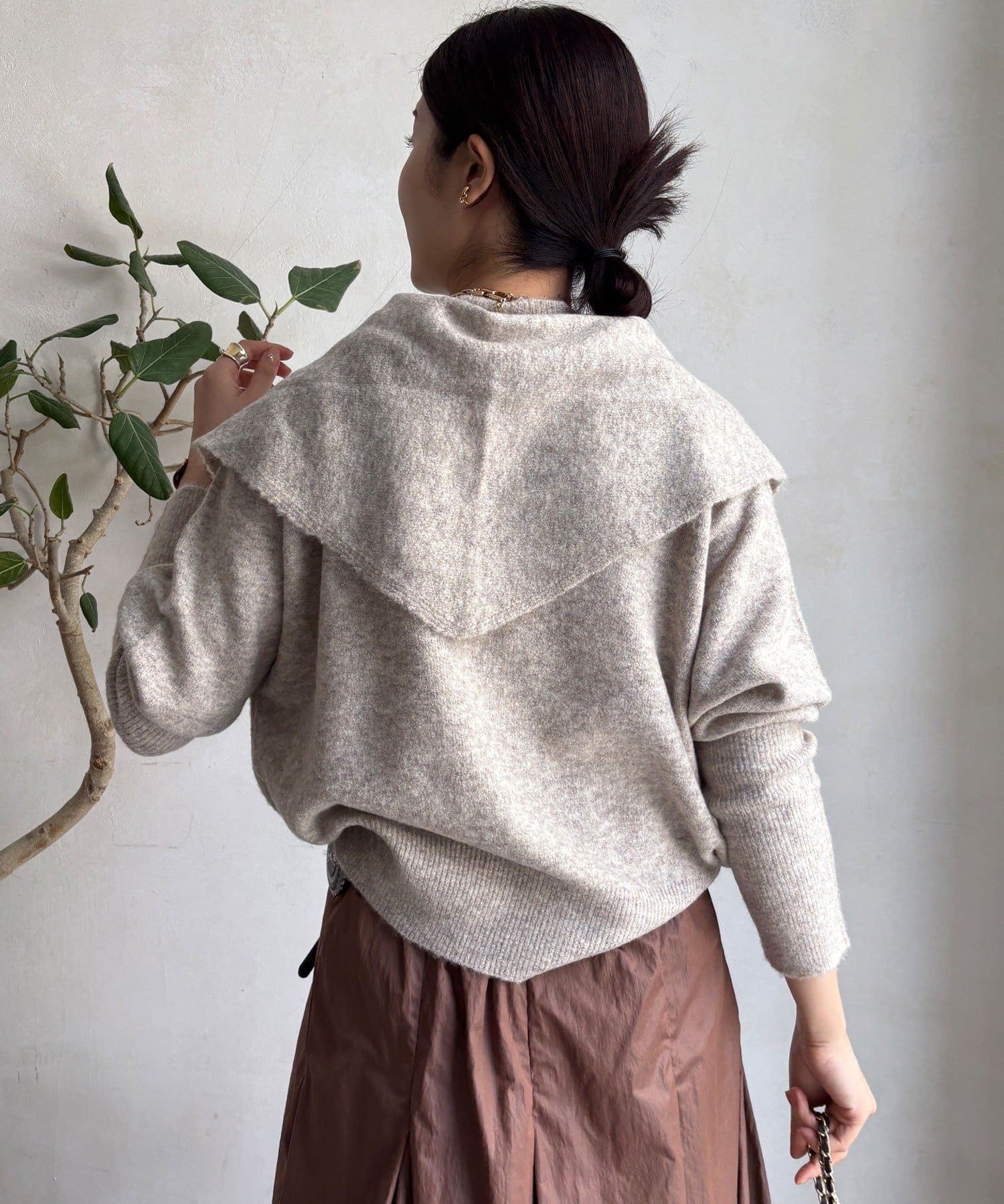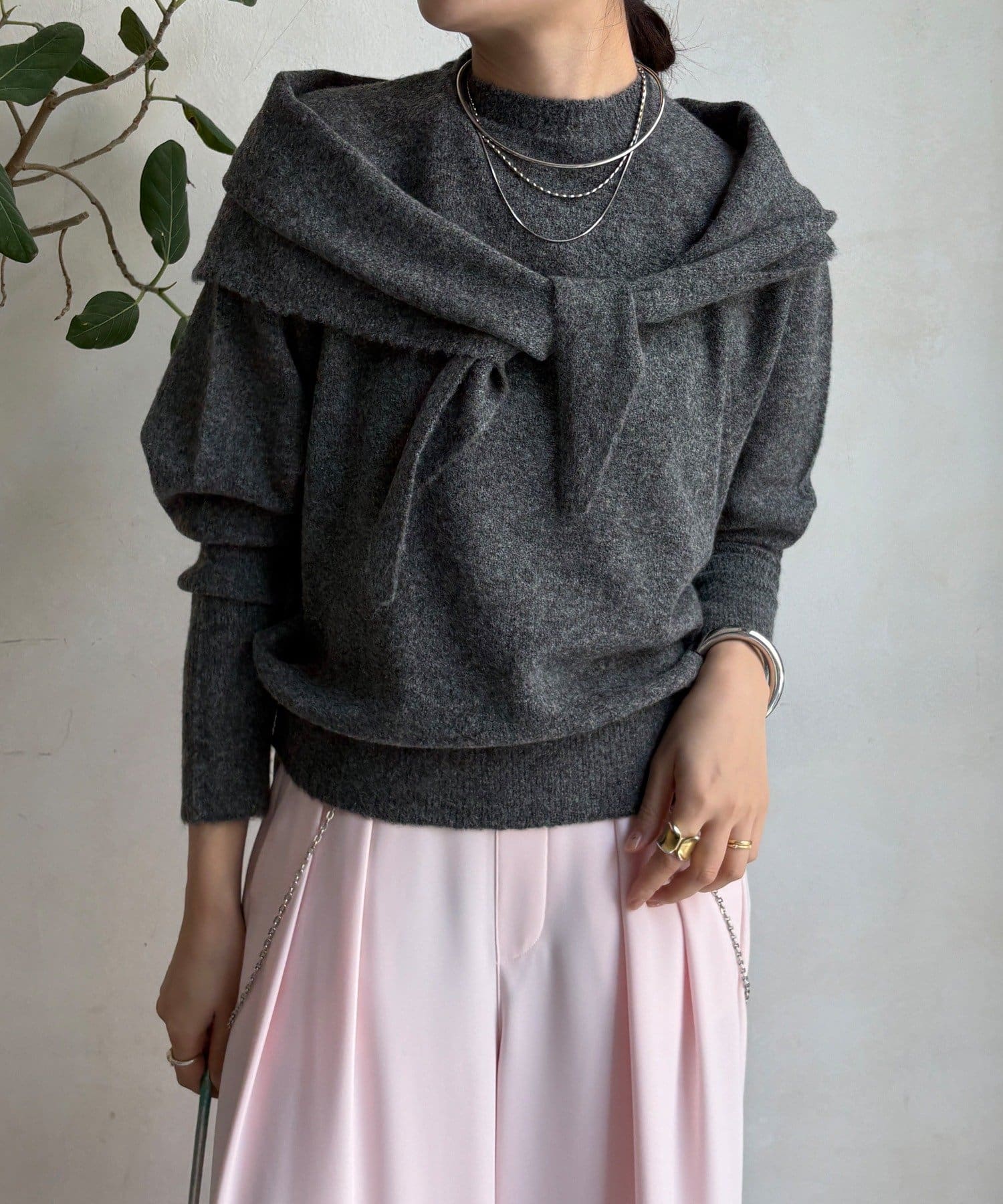 気分でアレンジ。ストール付きニットトップス