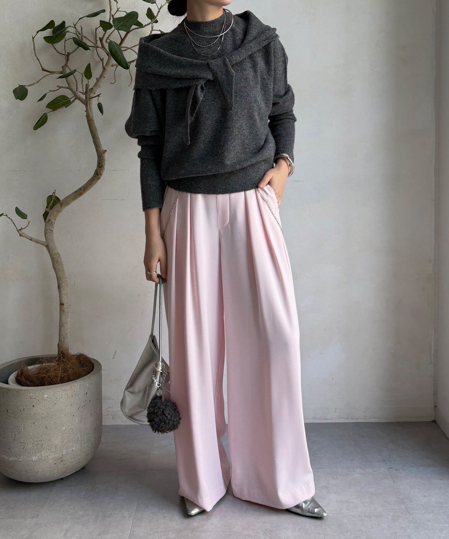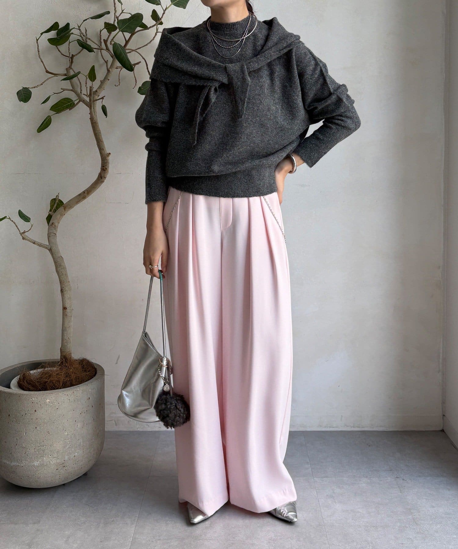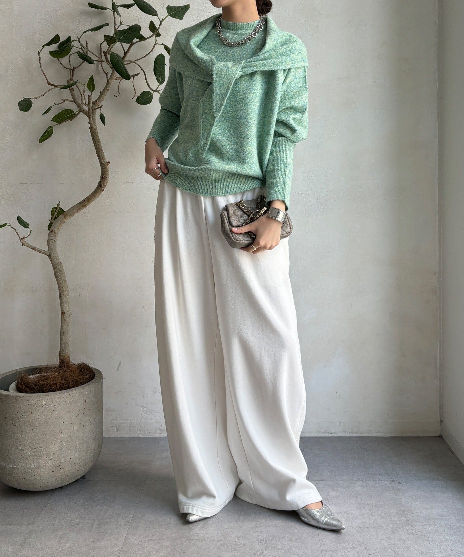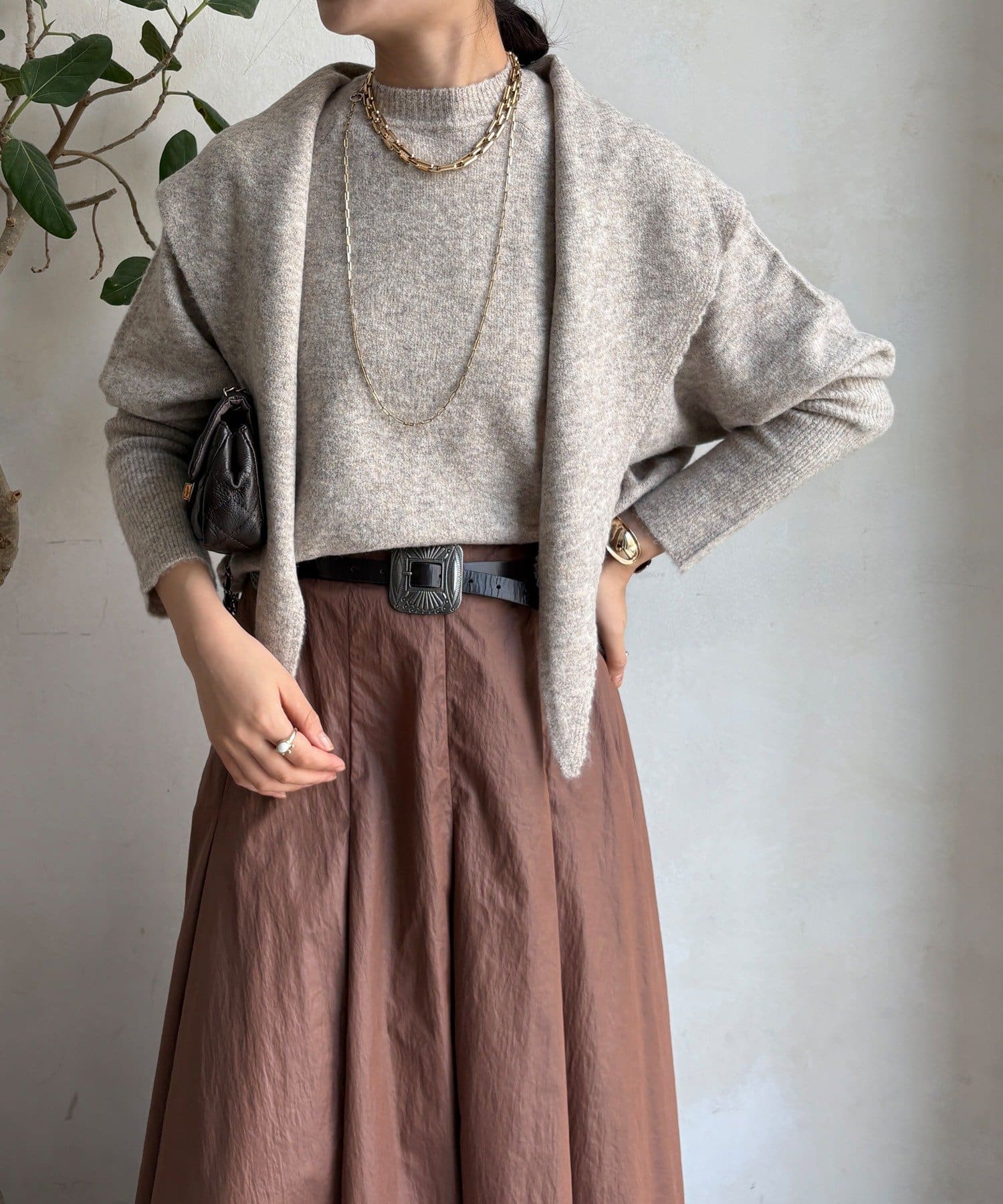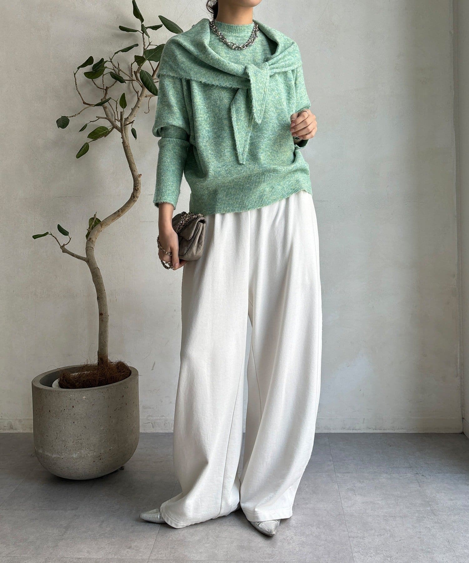気分でアレンジ。ストール付きニットトップス