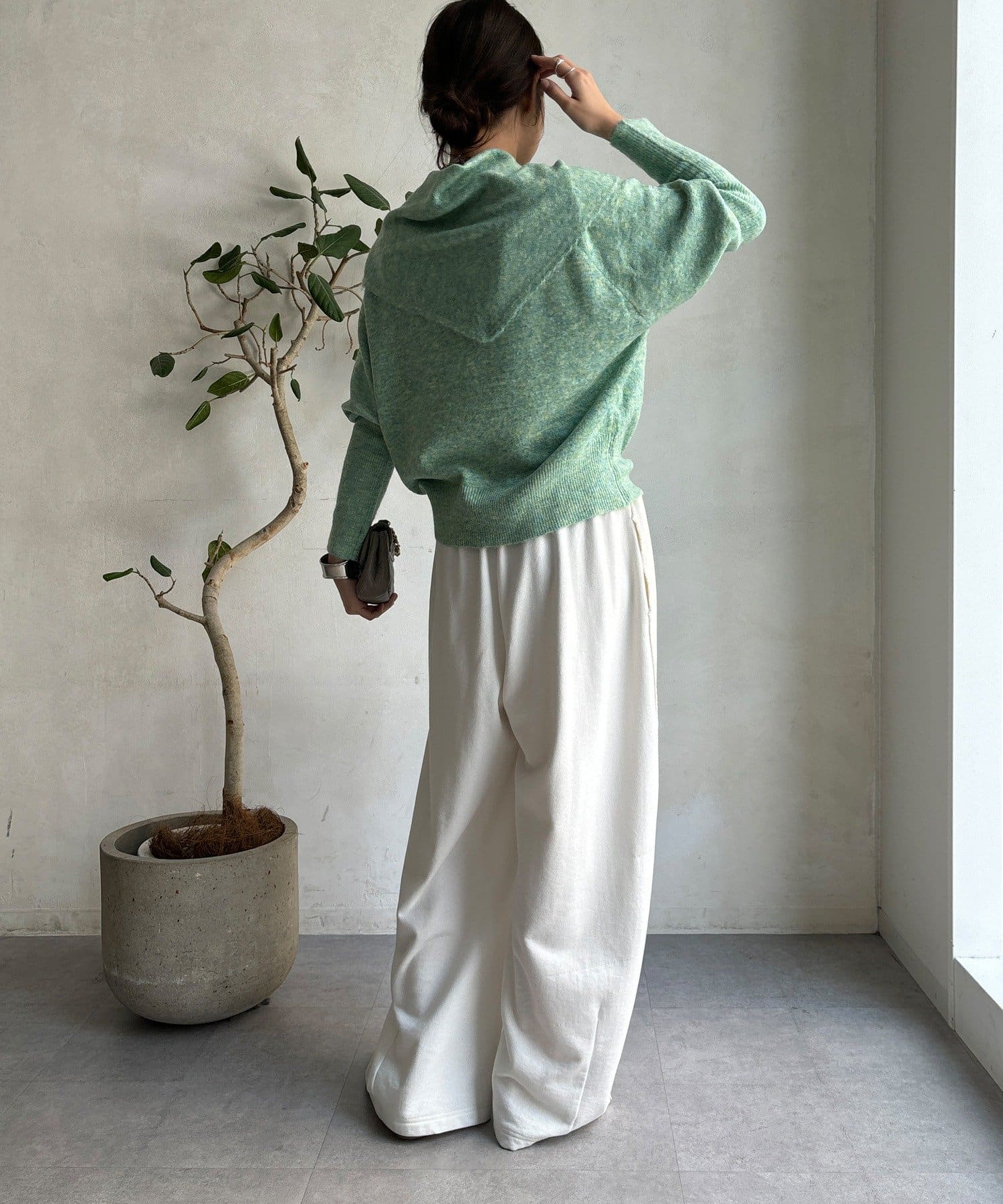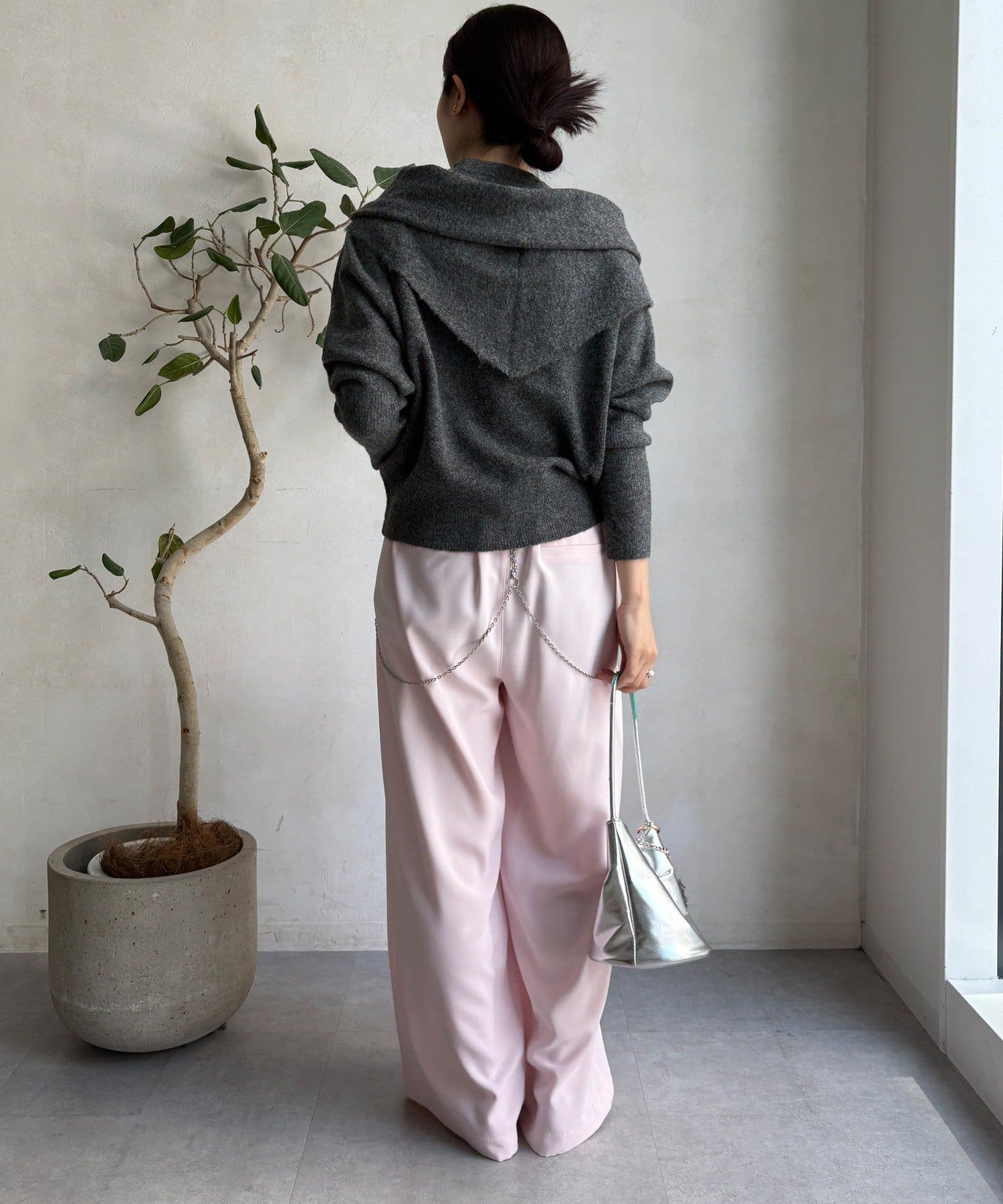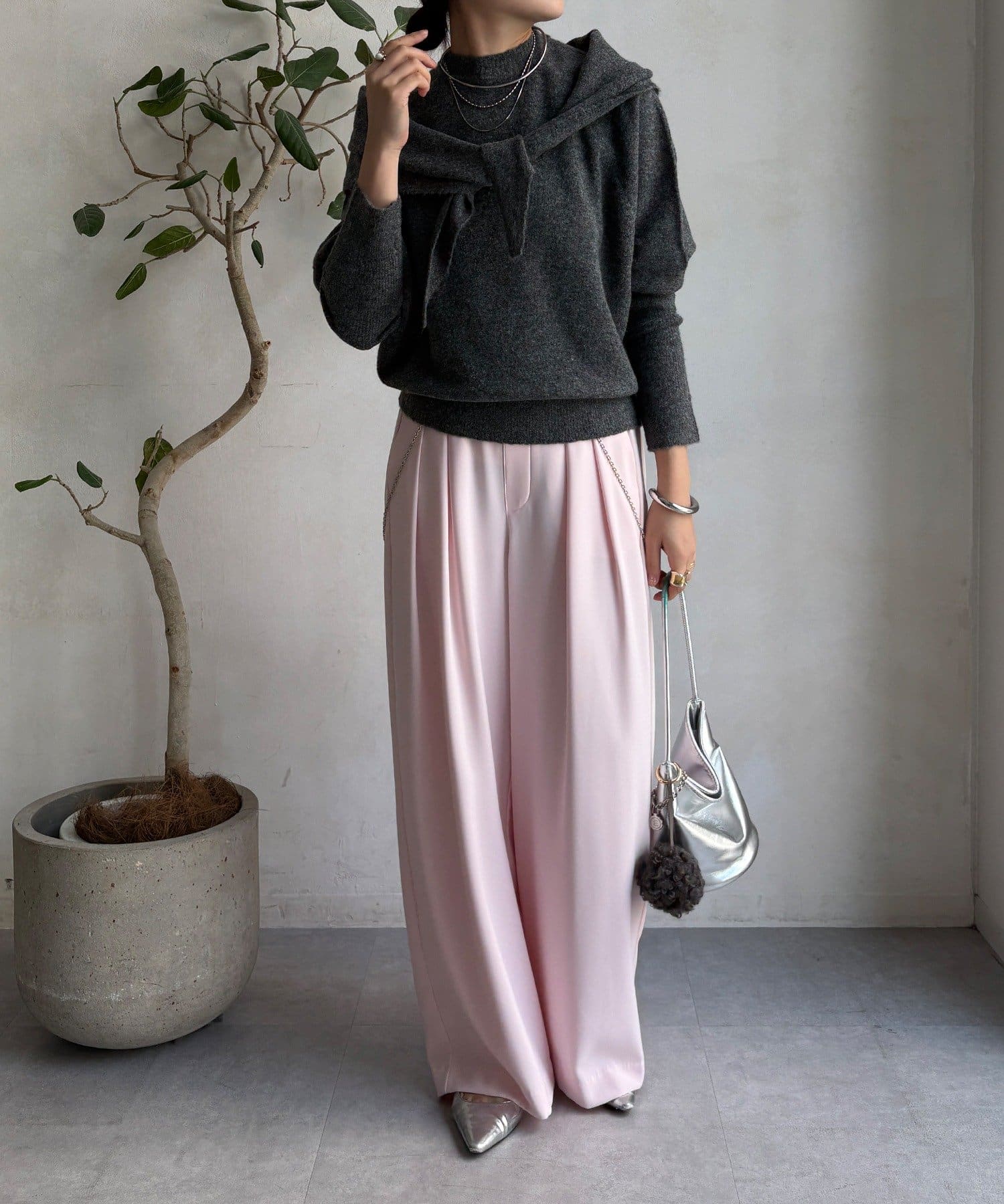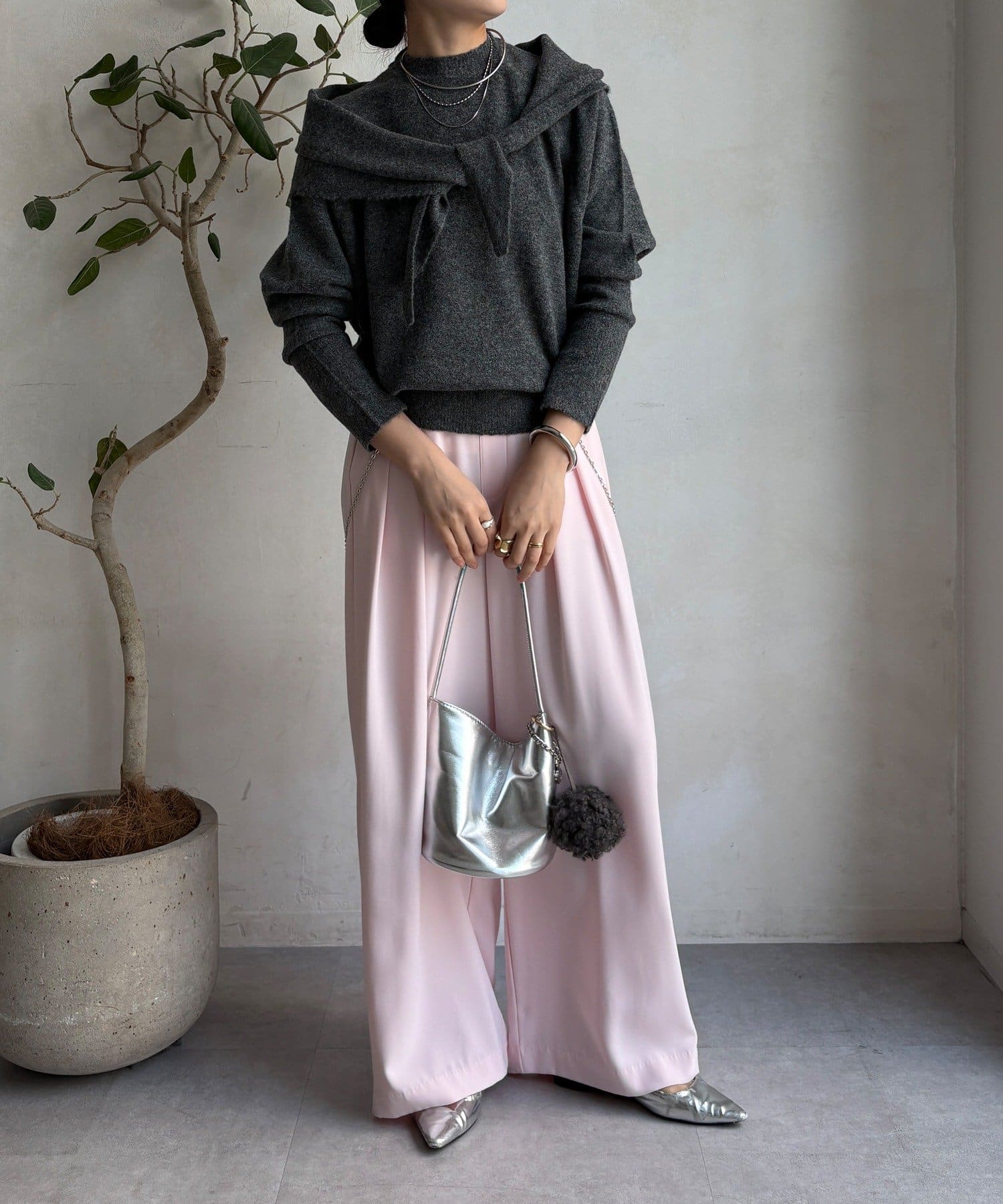 気分でアレンジ。ストール付きニットトップス