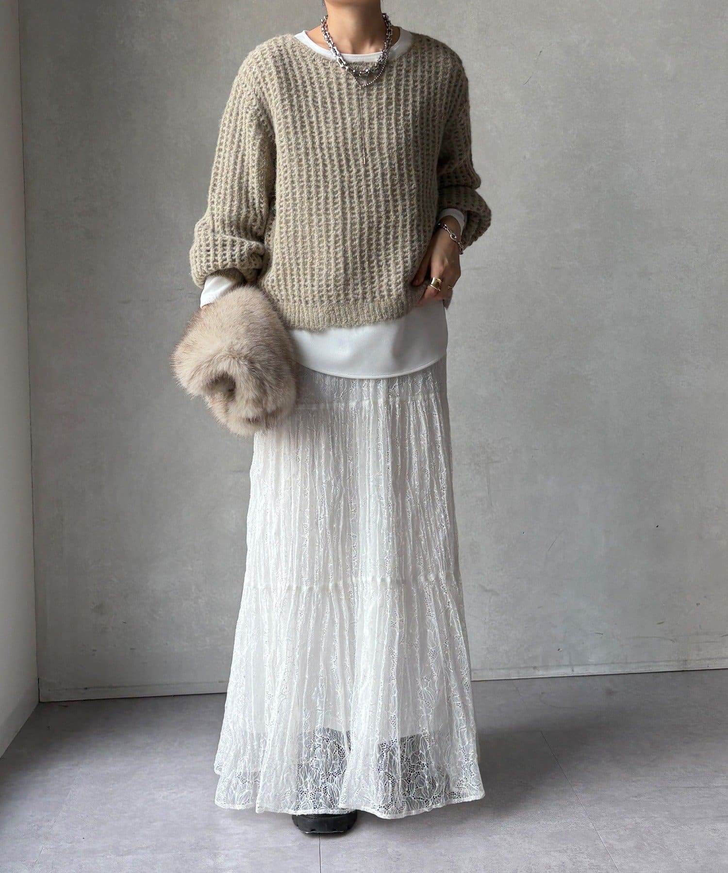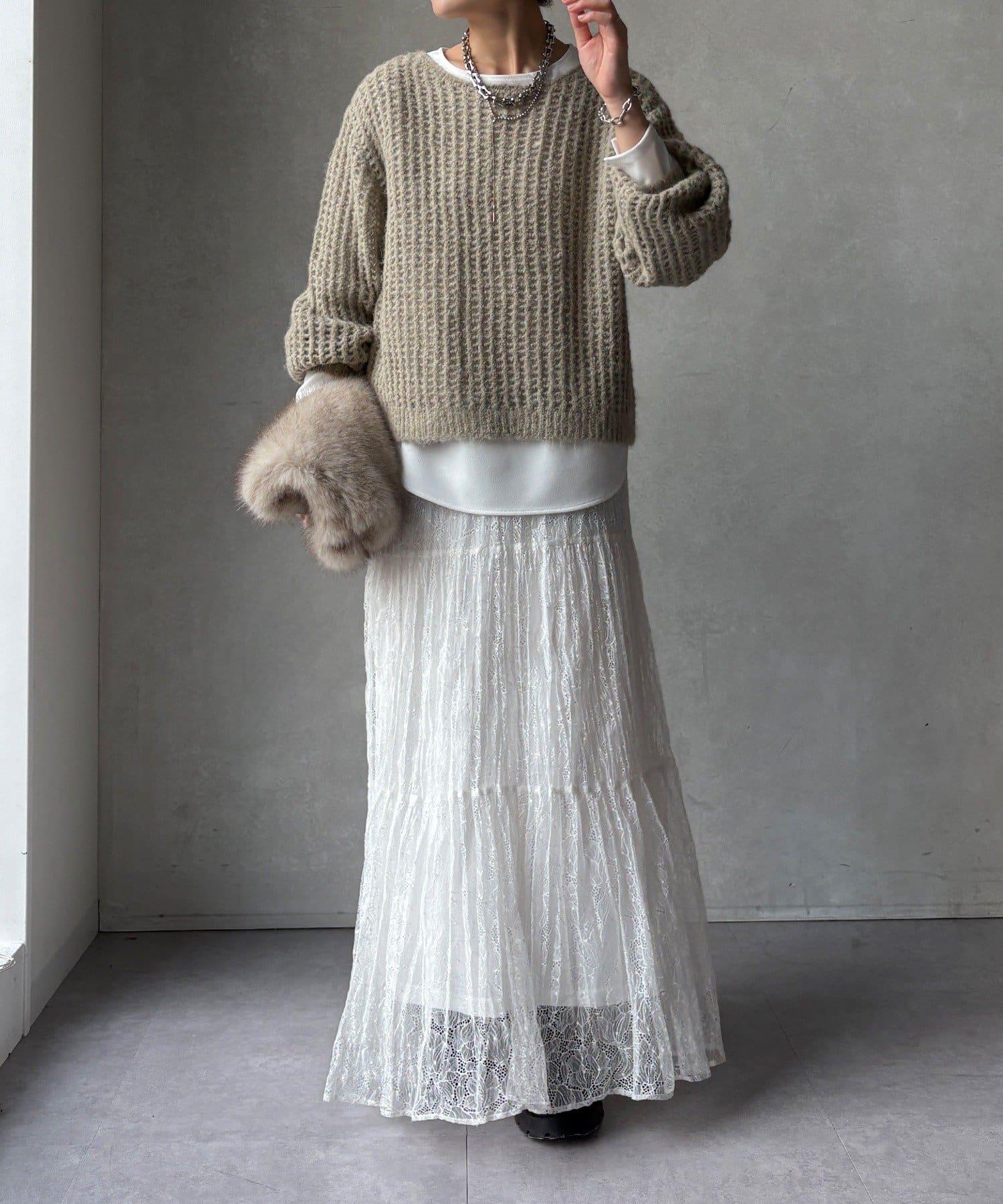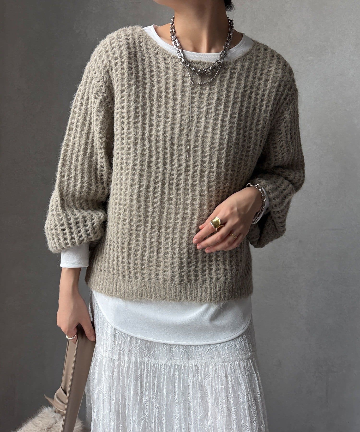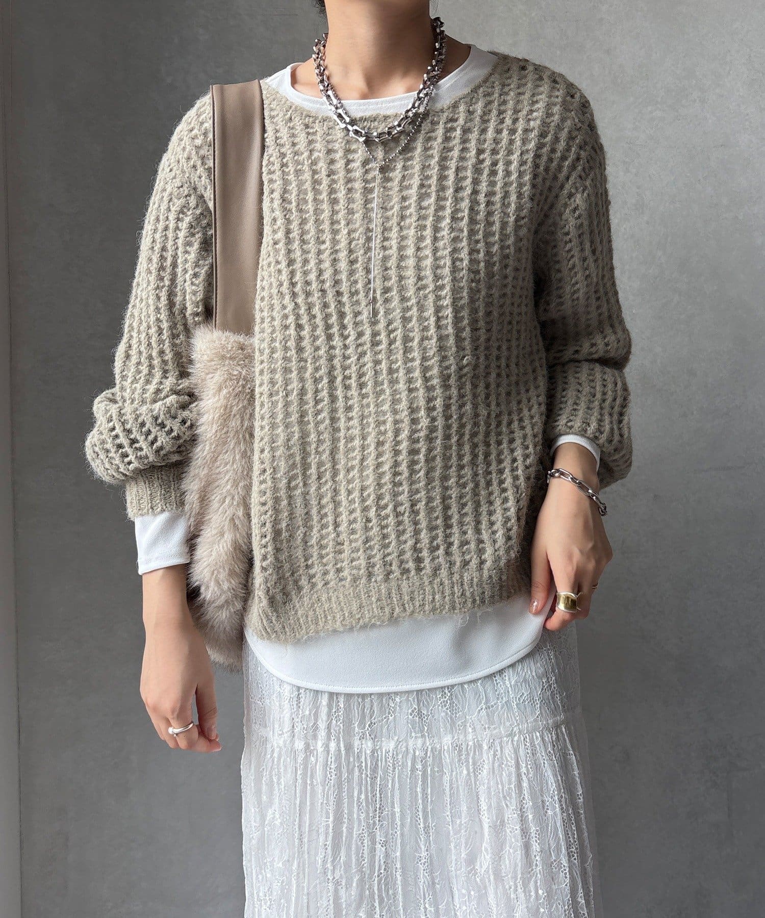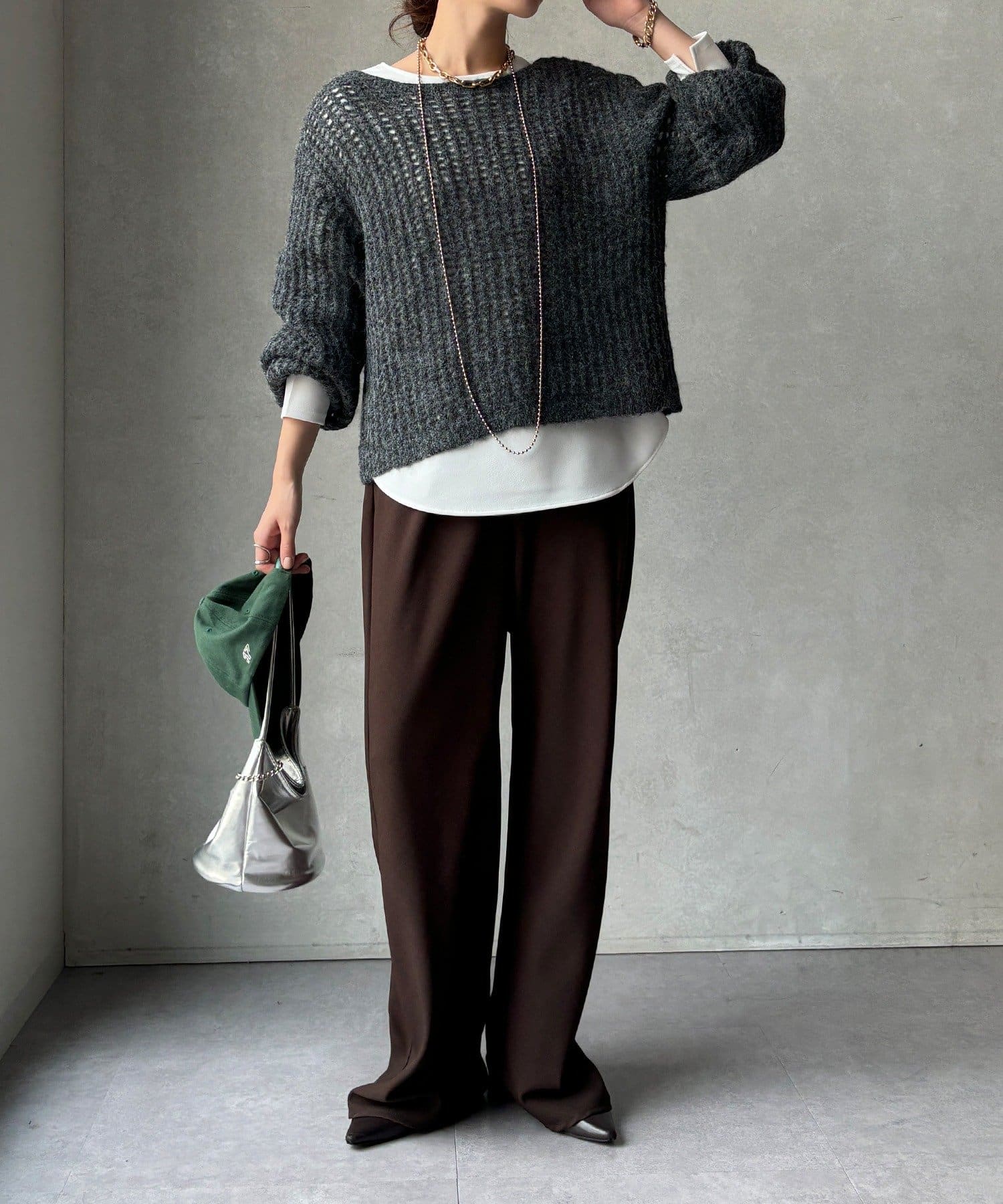 ざっくりとした編み目が、こなれた雰囲気を演出してくれるデザインになっています◎