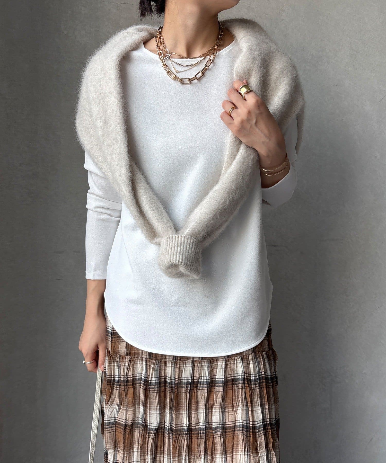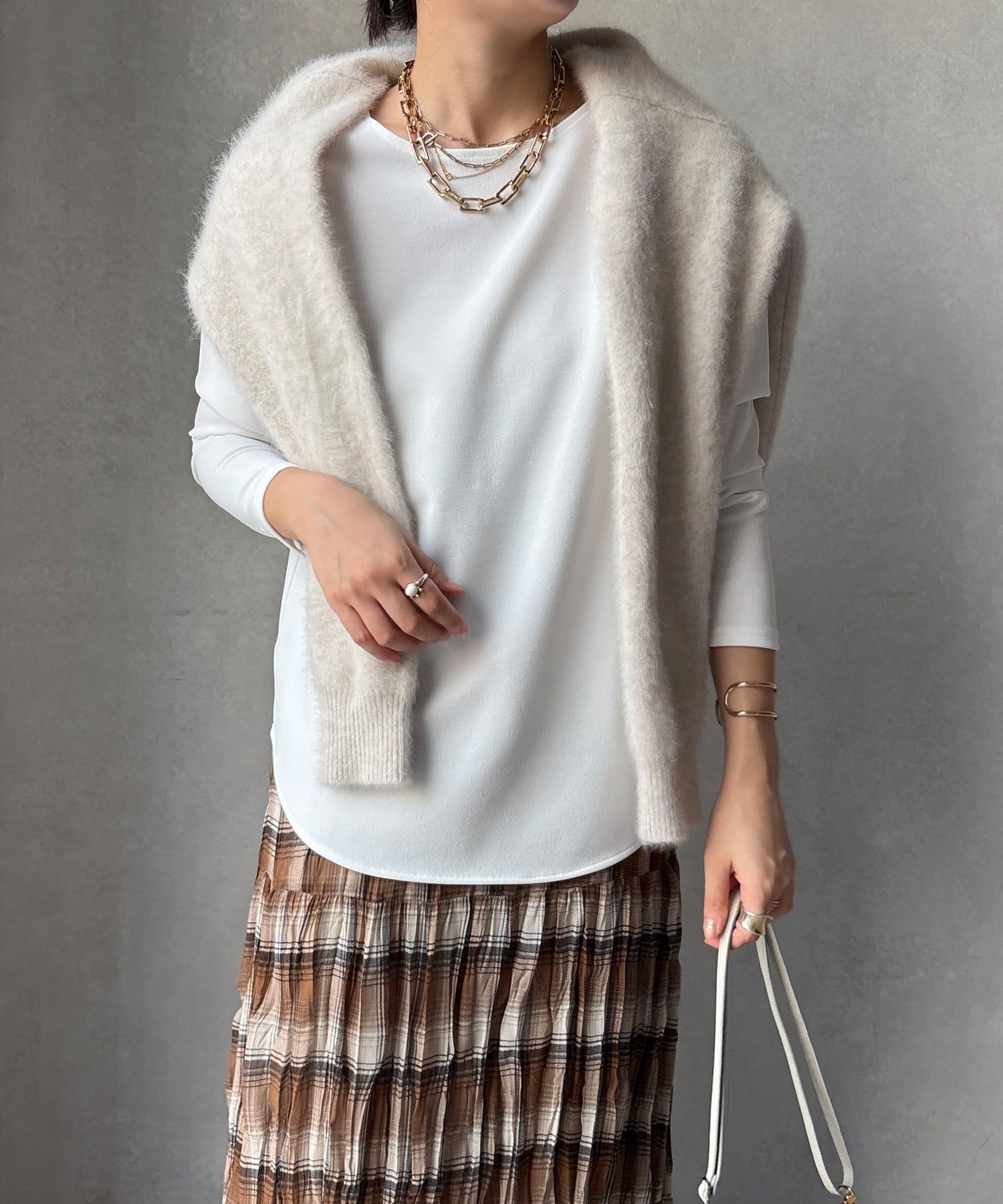 インナーのカットソーがセットになっているので、コーディネートに悩むことなく、すぐに旬のレイヤードスタイルが完成します。