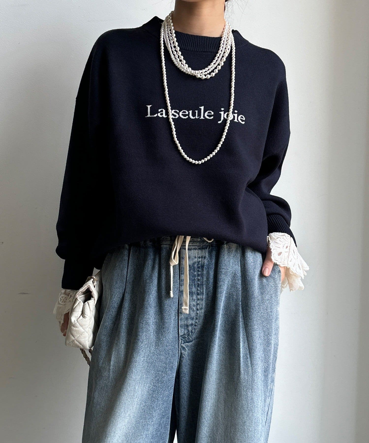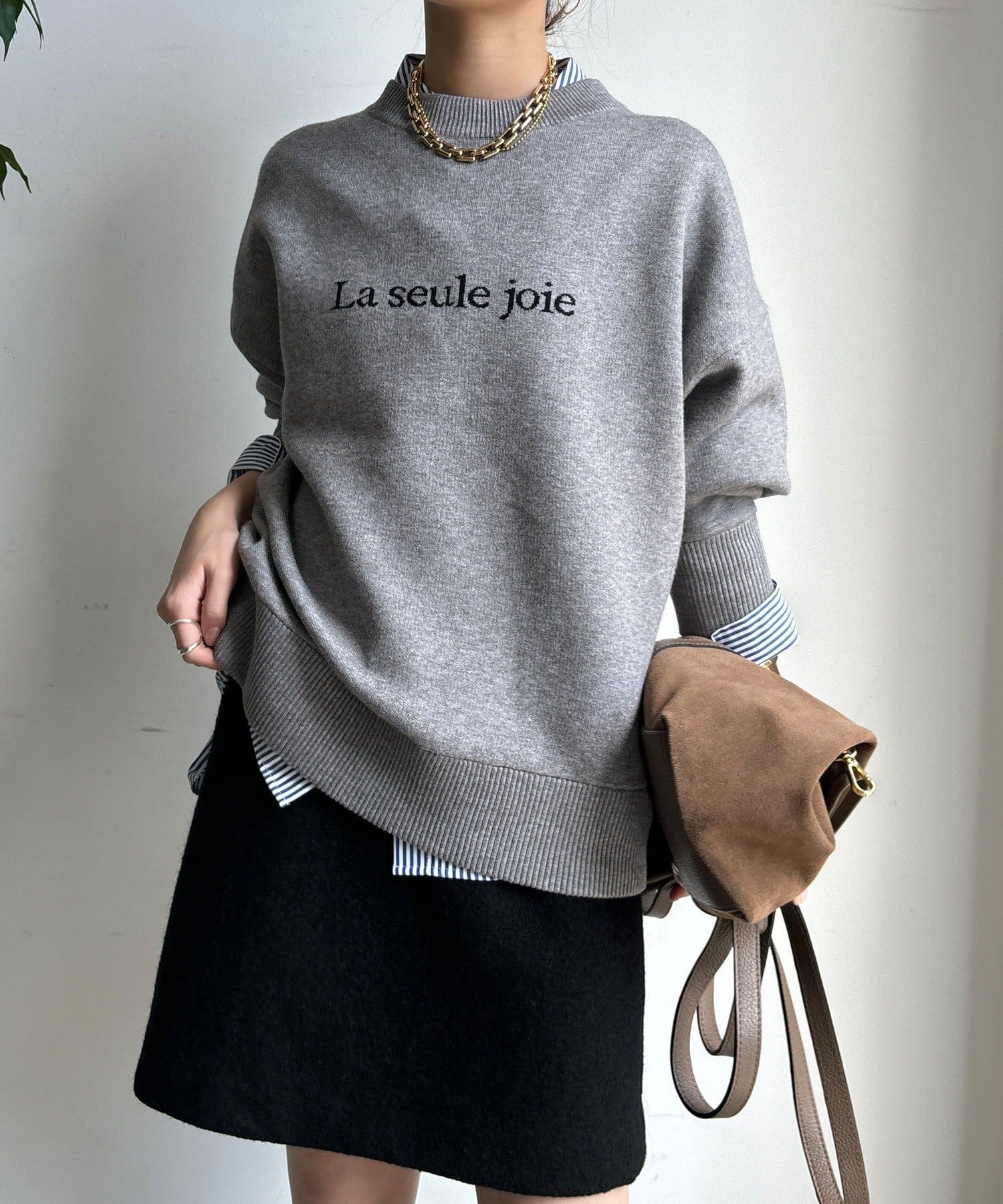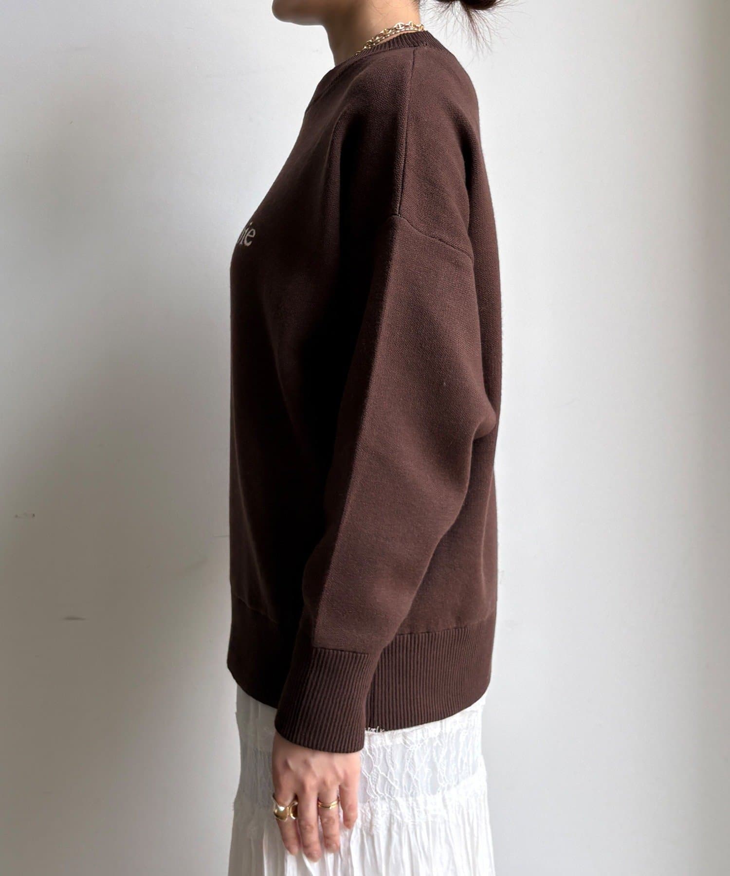 フロントに大胆に施されたロゴデザインが目を引く、トレンドライクなニットトップスが登場。