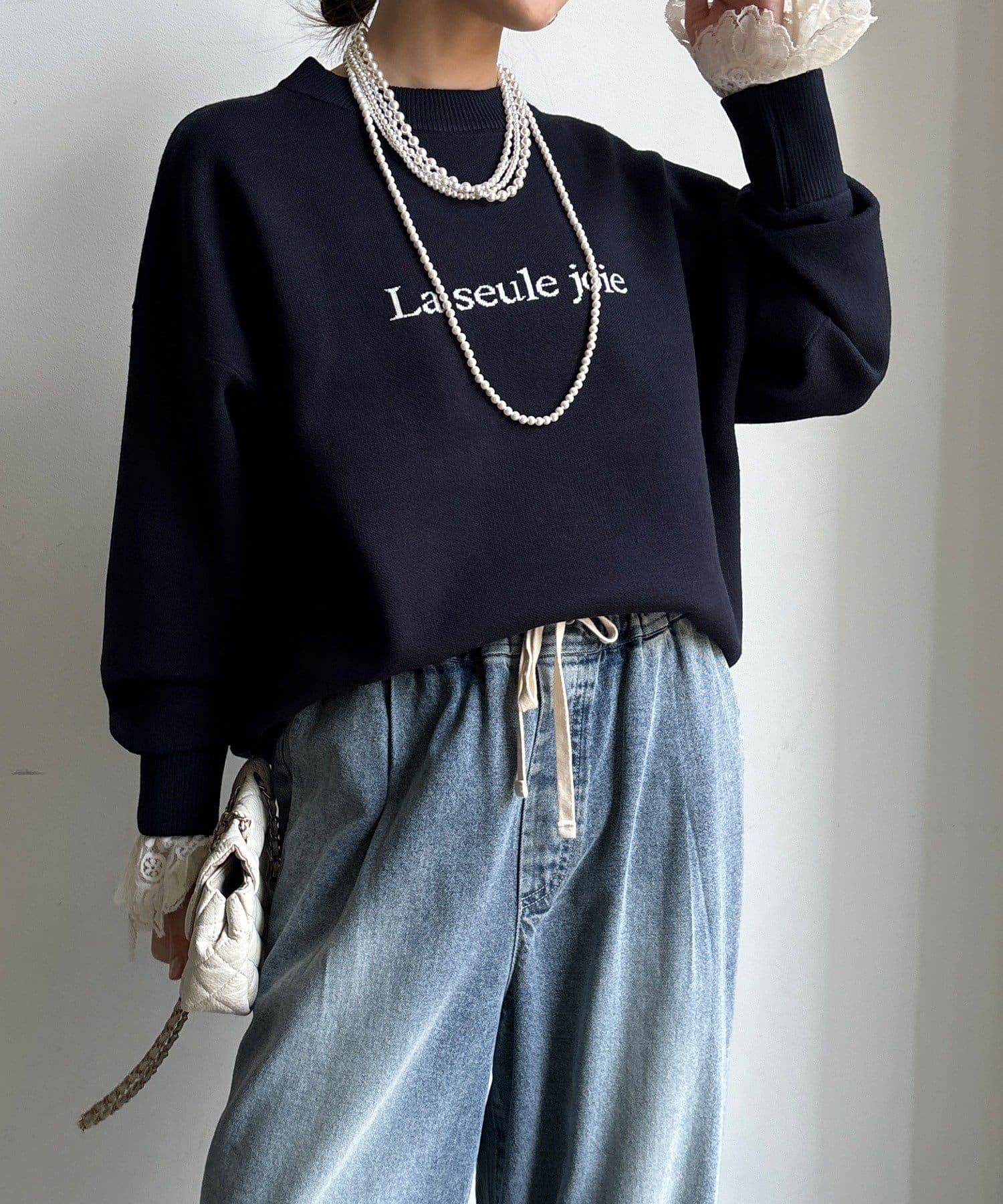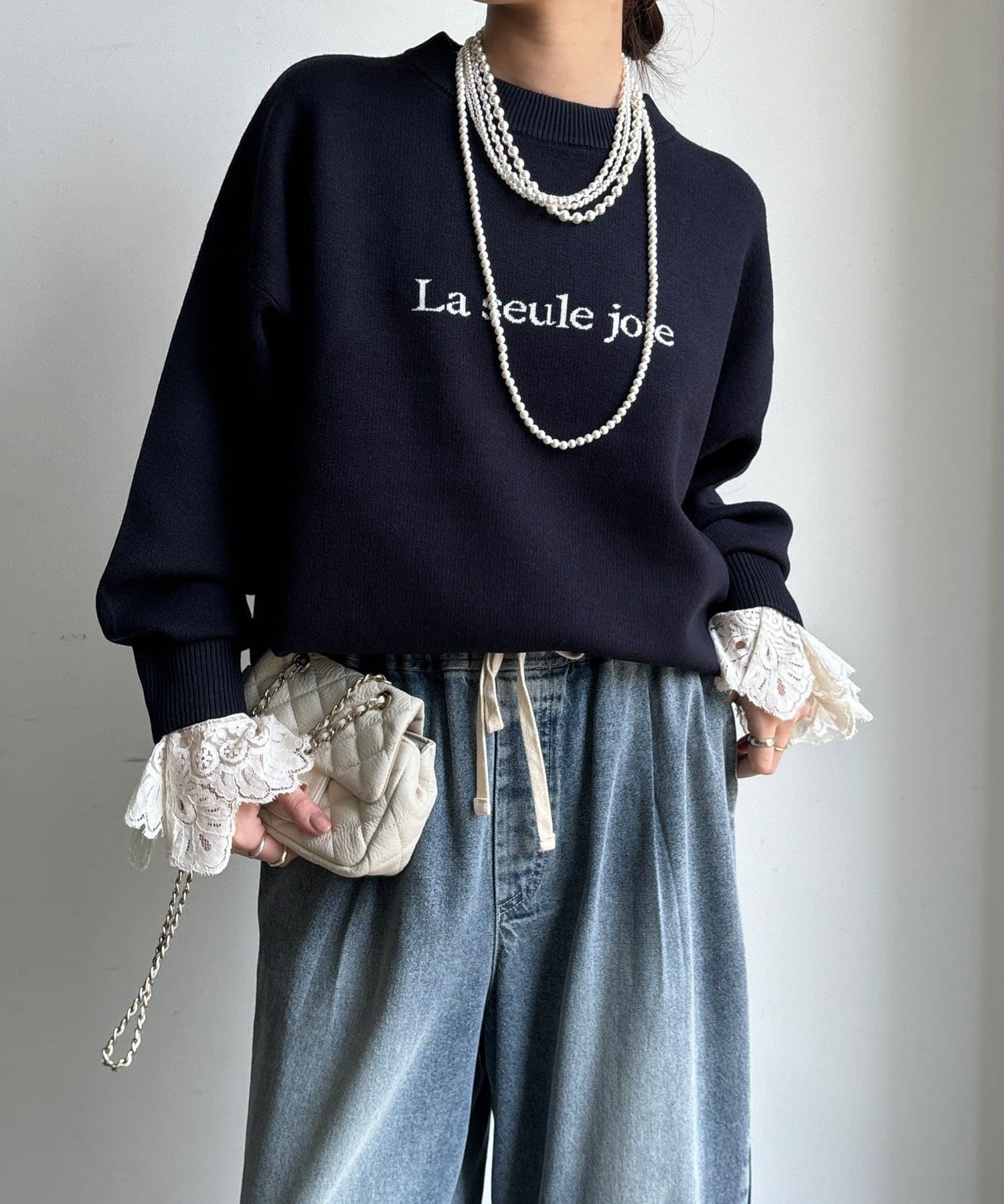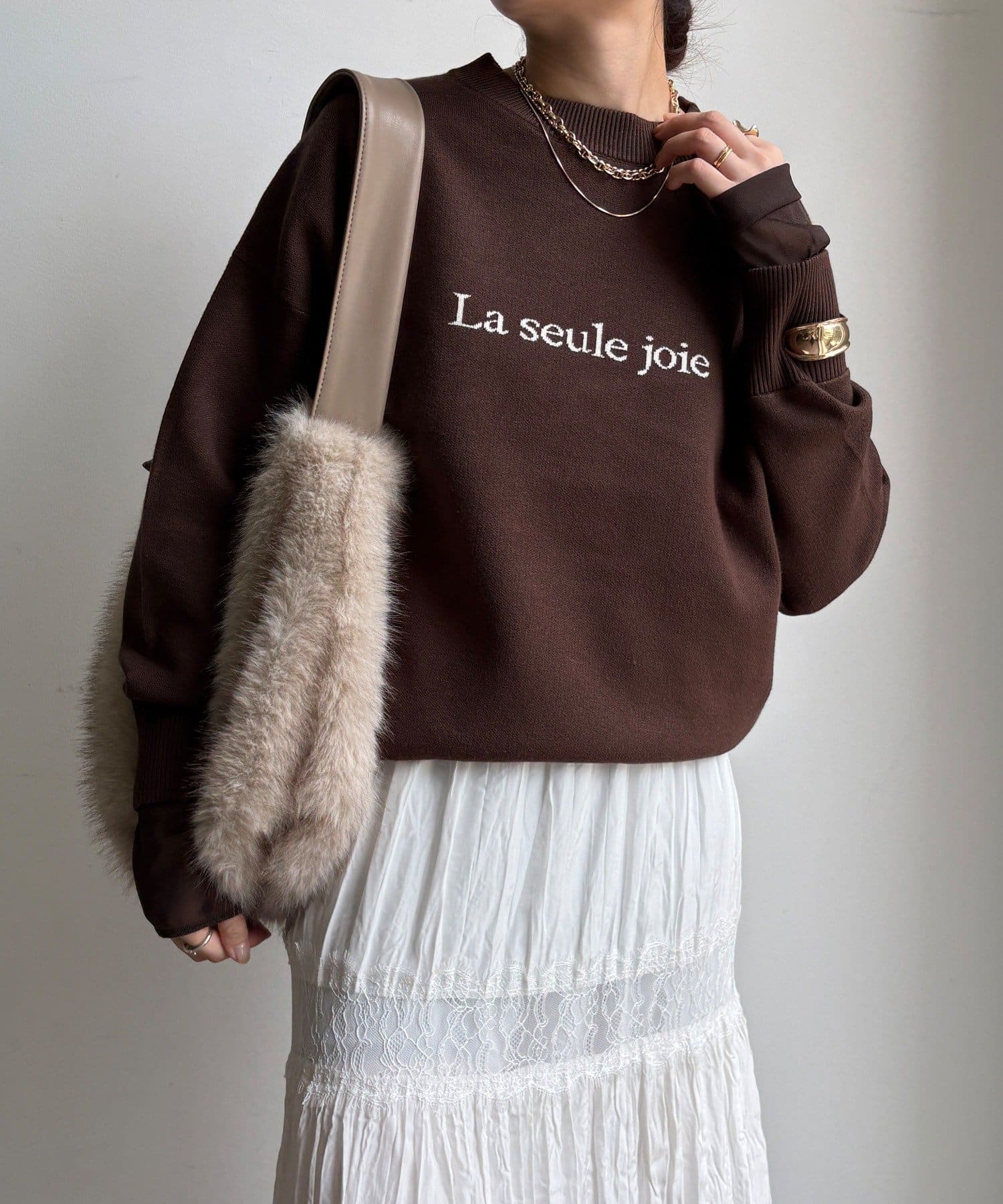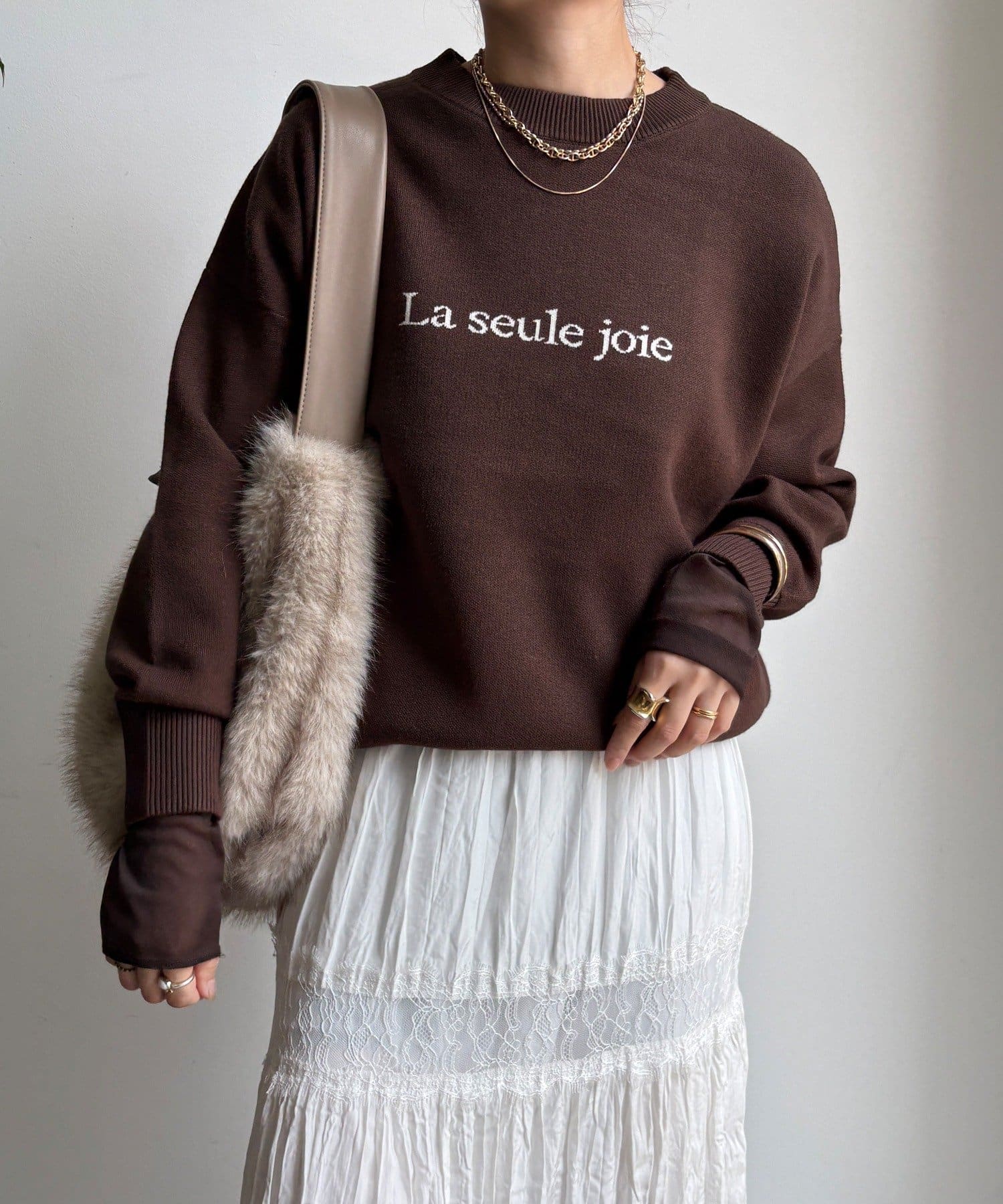 フロントに大胆に施されたロゴデザインが目を引く、トレンドライクなニットトップスが登場。