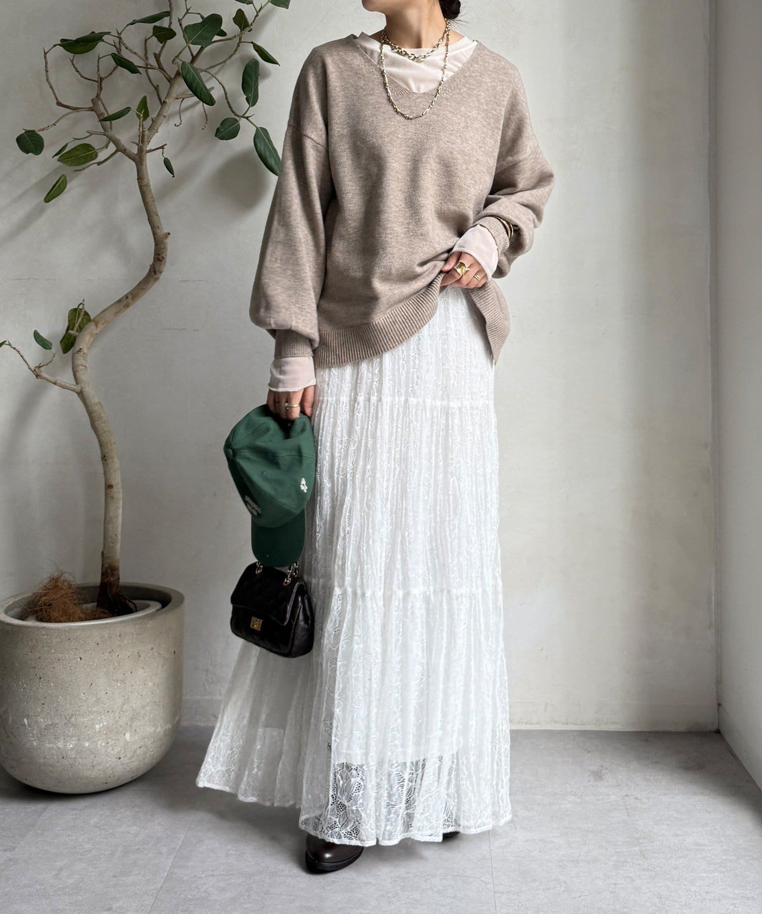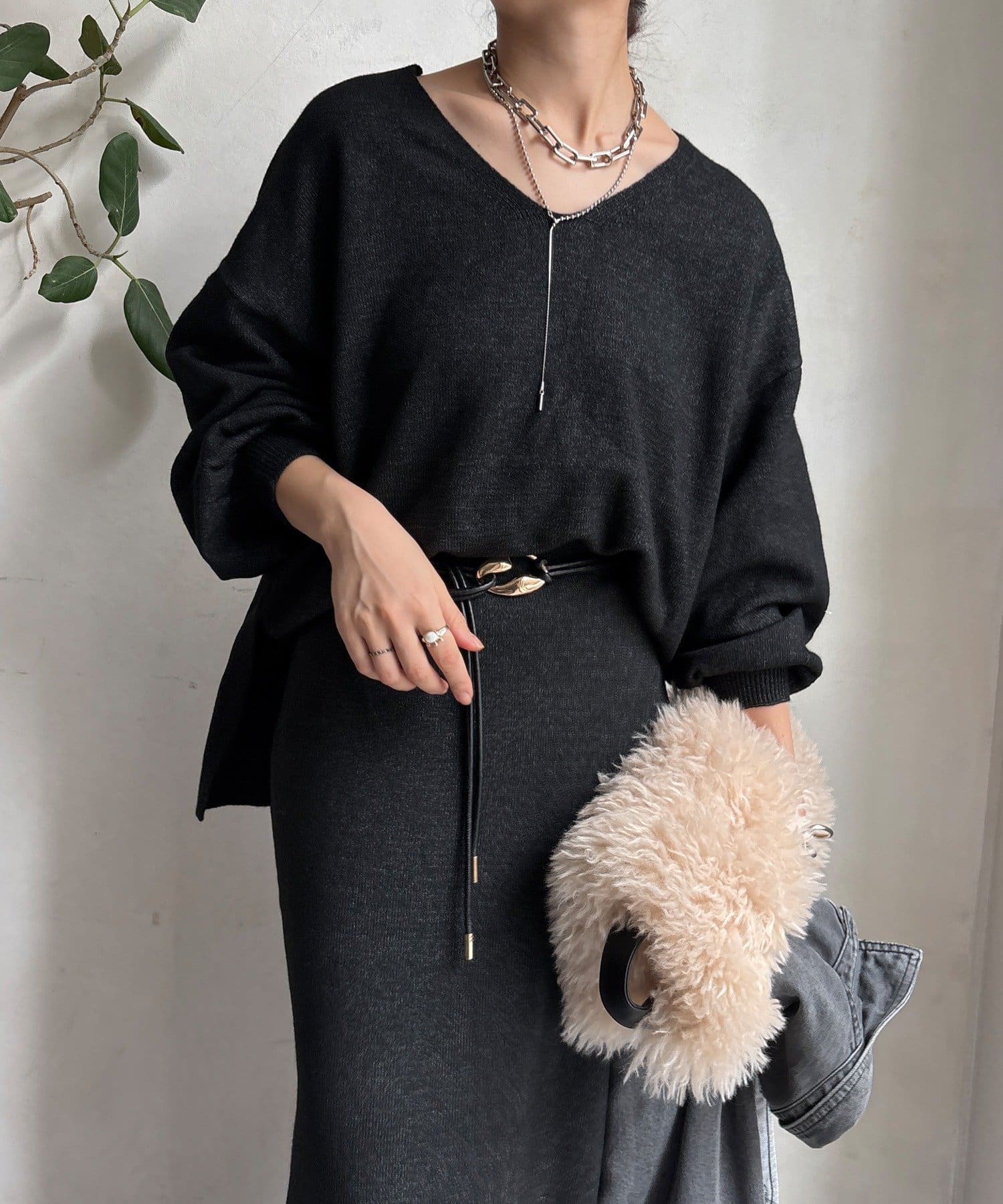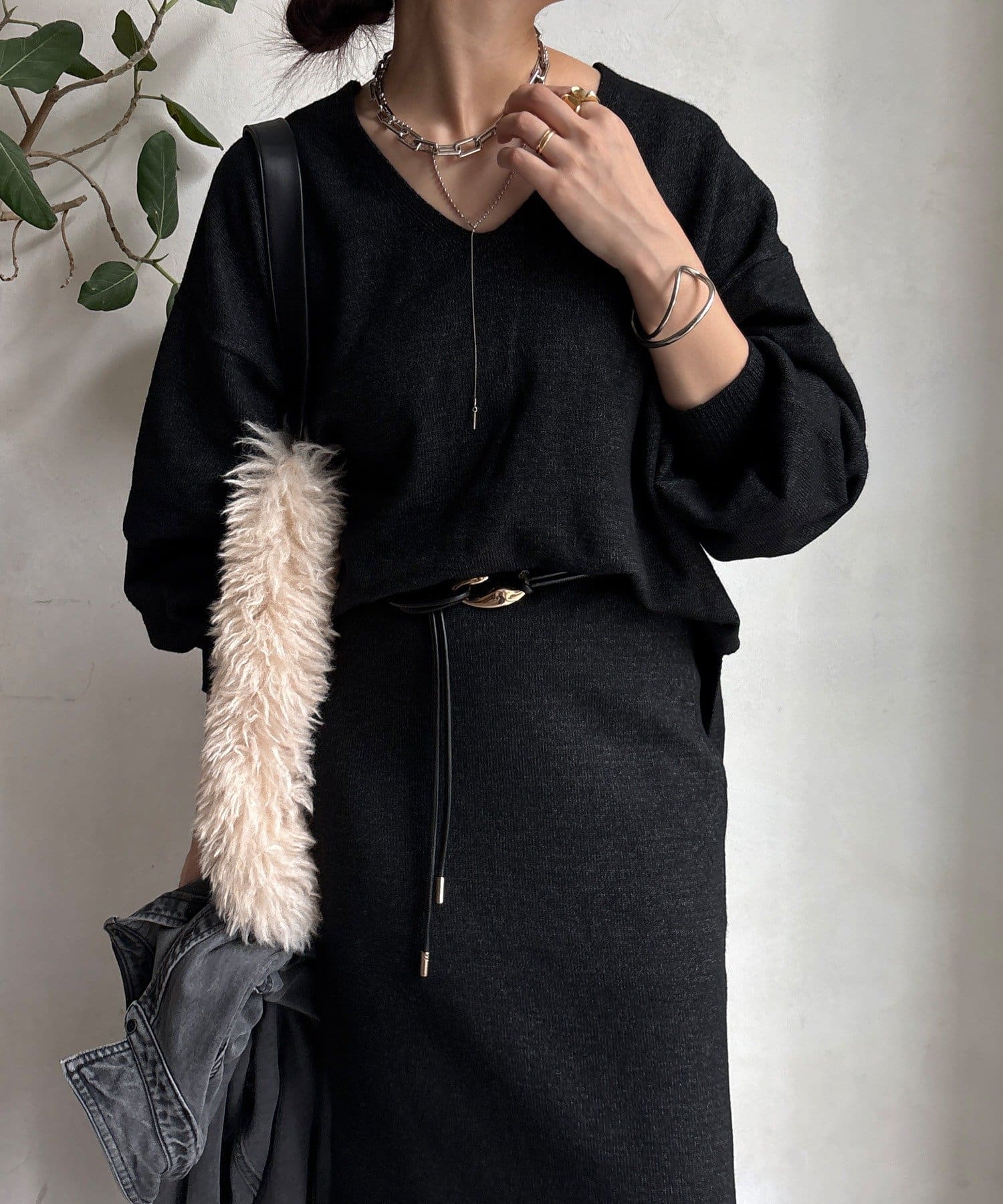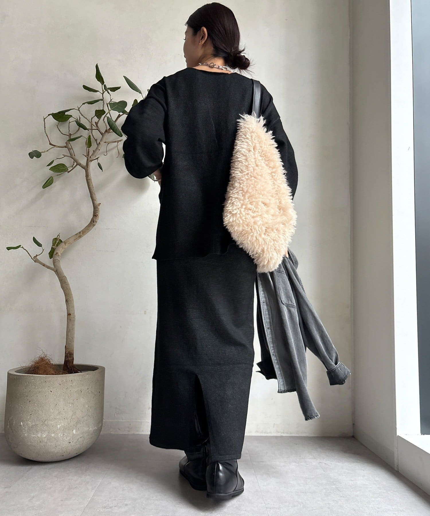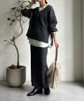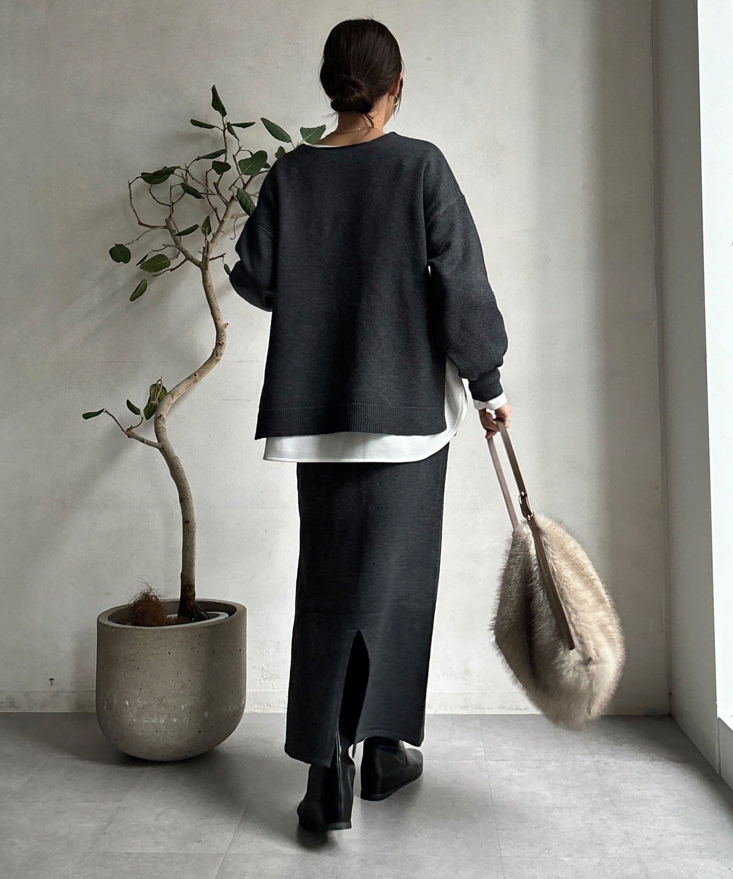 ニットタイトスカートとセットで合わせると、組み合わせに悩むことなく、さっと着るだけでお洒落なコーディネートが完成します。