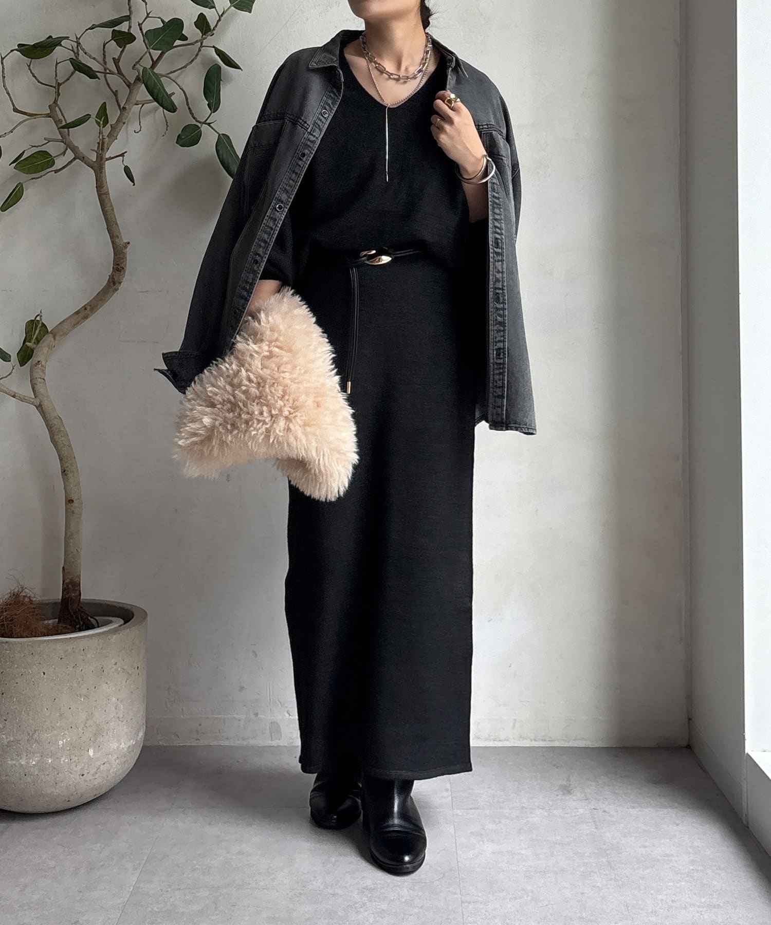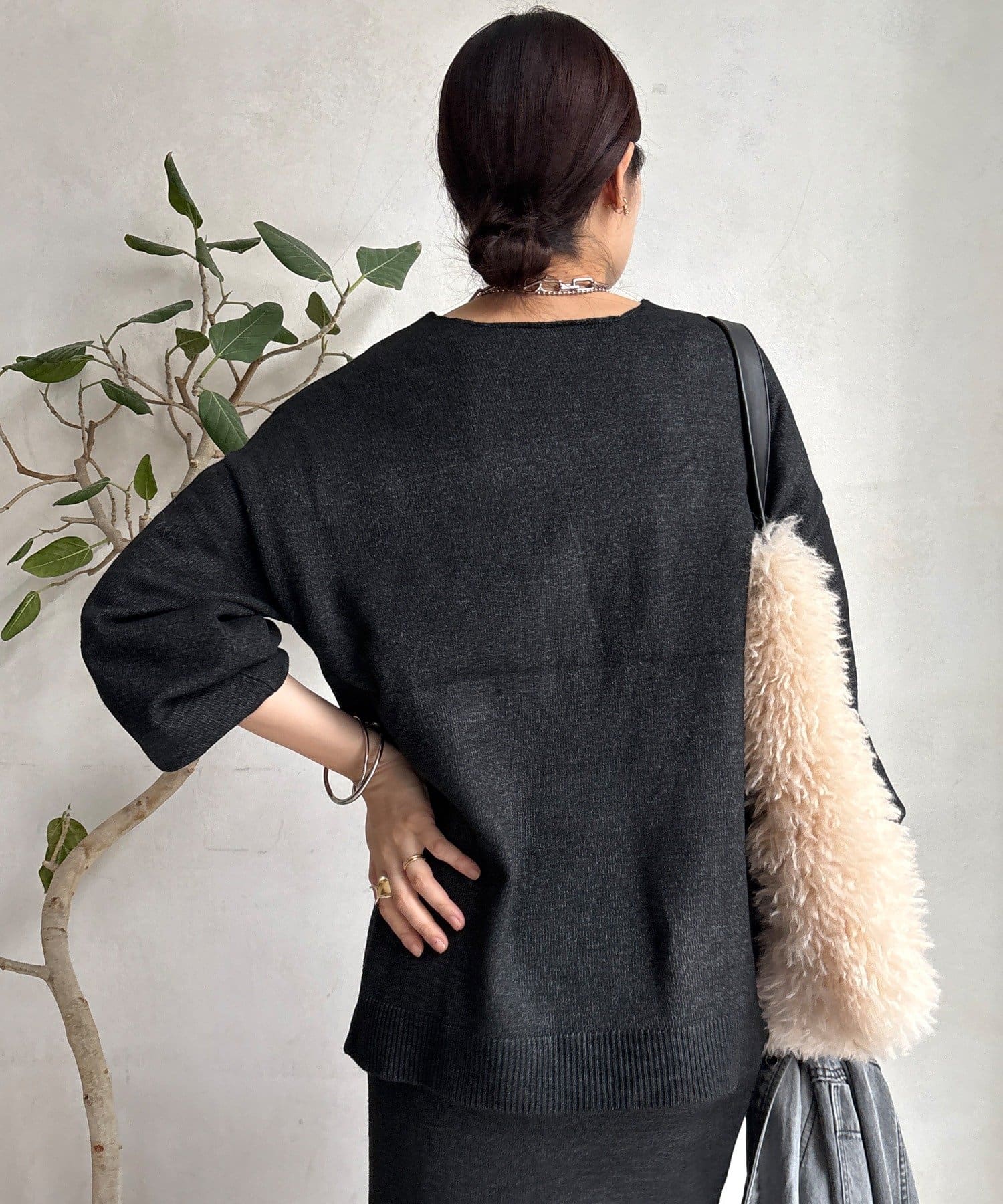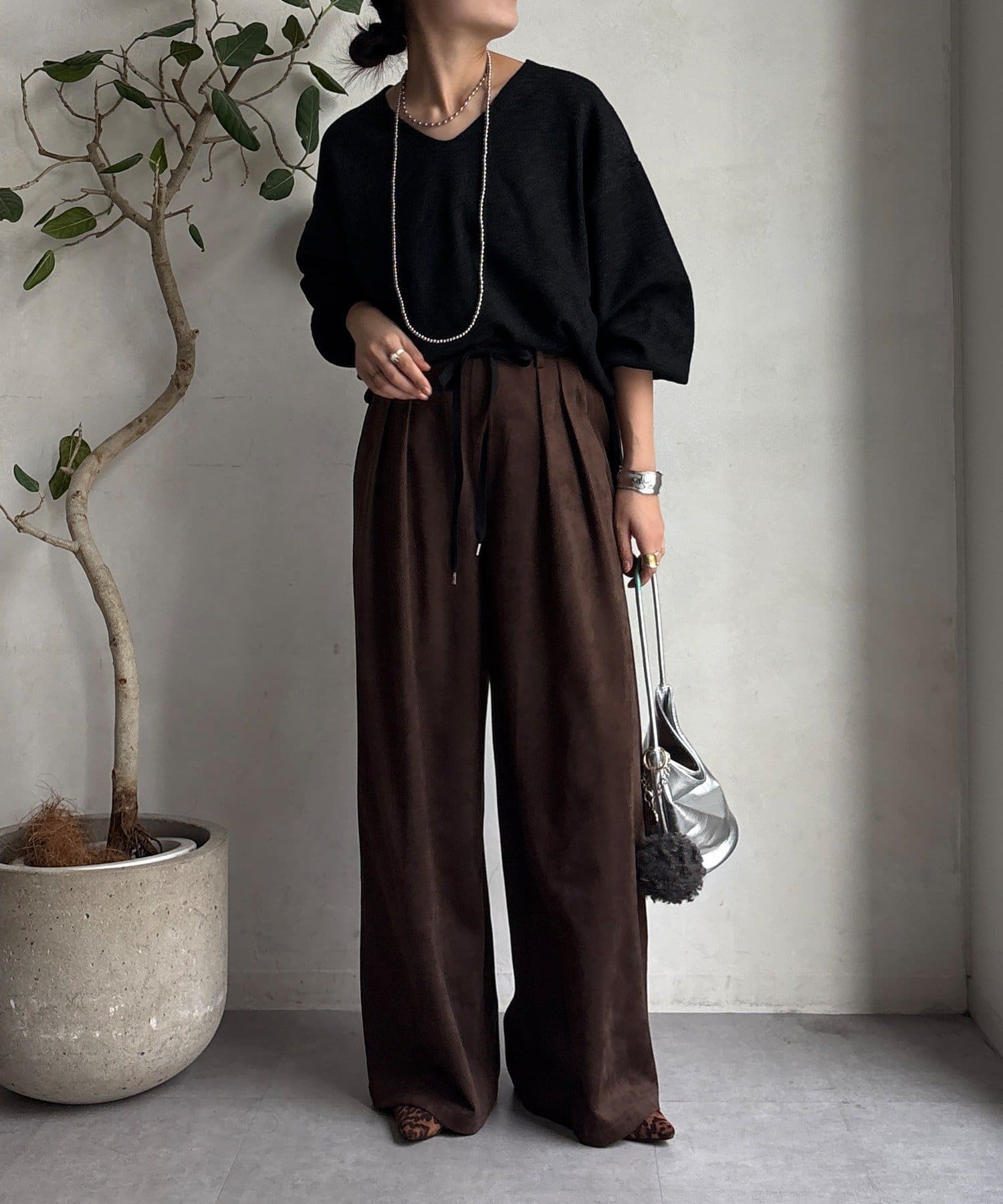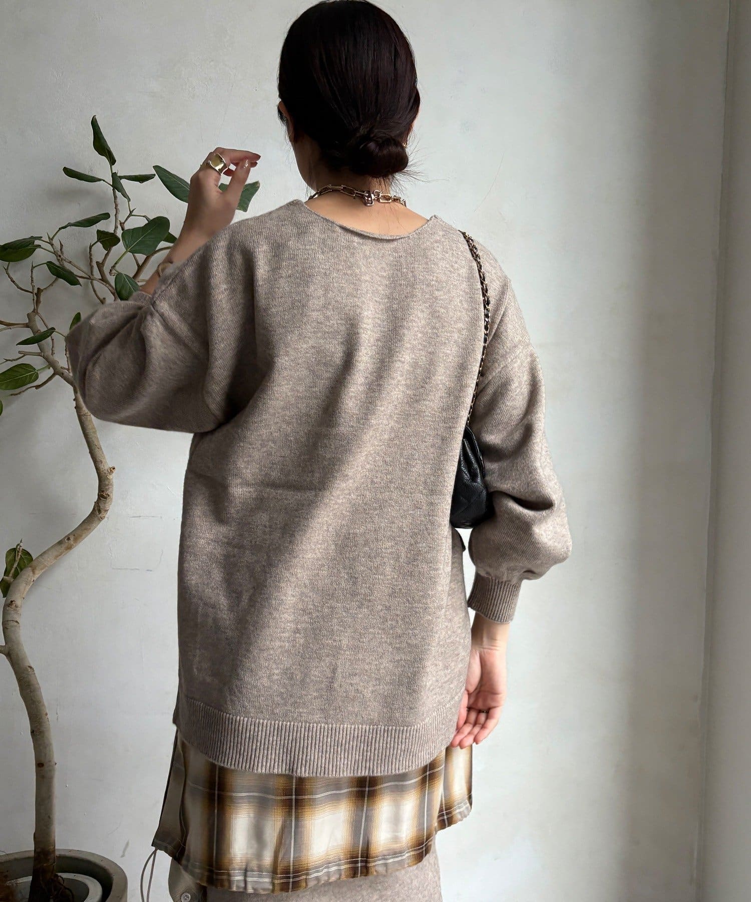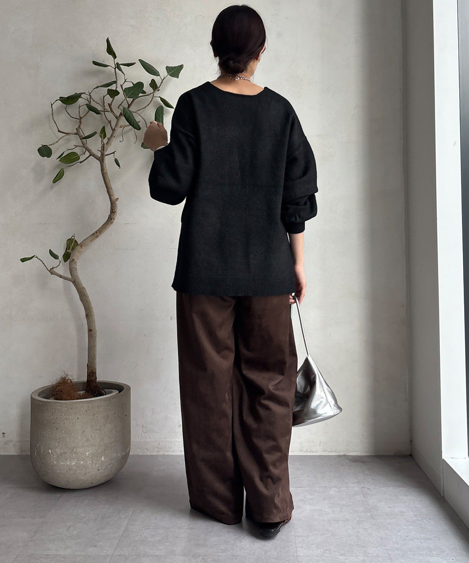 ニットタイトスカートとセットで合わせると、組み合わせに悩むことなく、さっと着るだけでお洒落なコーディネートが完成します。