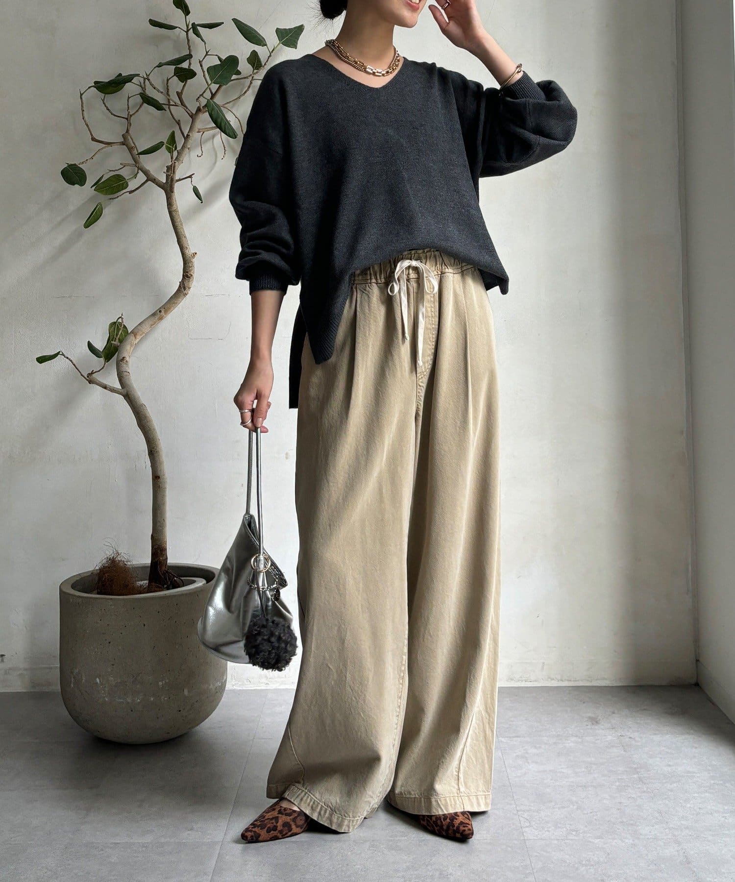 セットアップとしてはもちろん、様々なアイテムと好相性で、コーディネートの幅が広がる万能アイテムですよ。