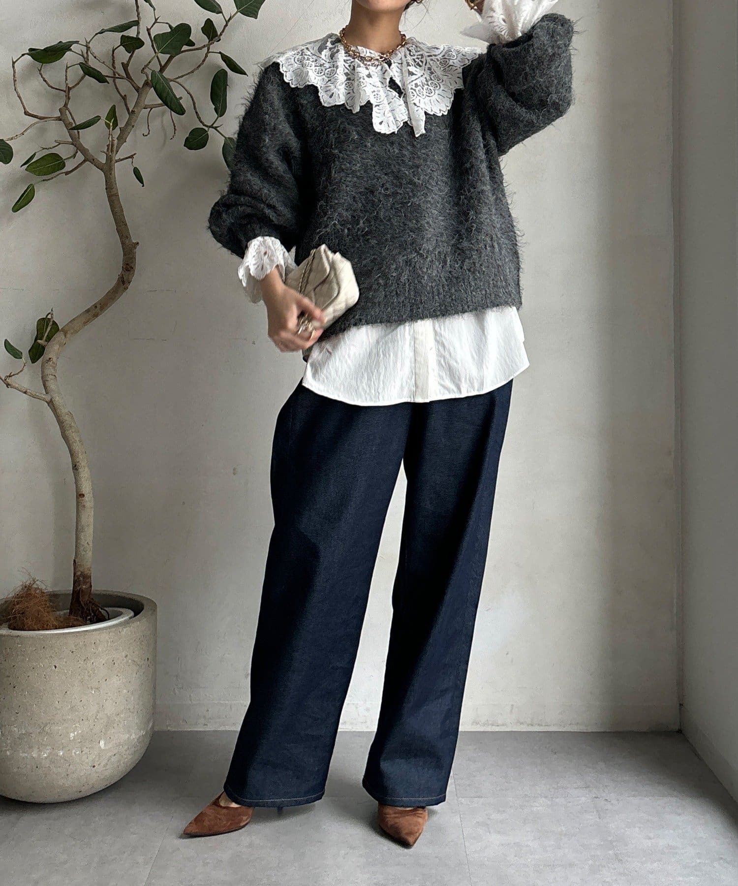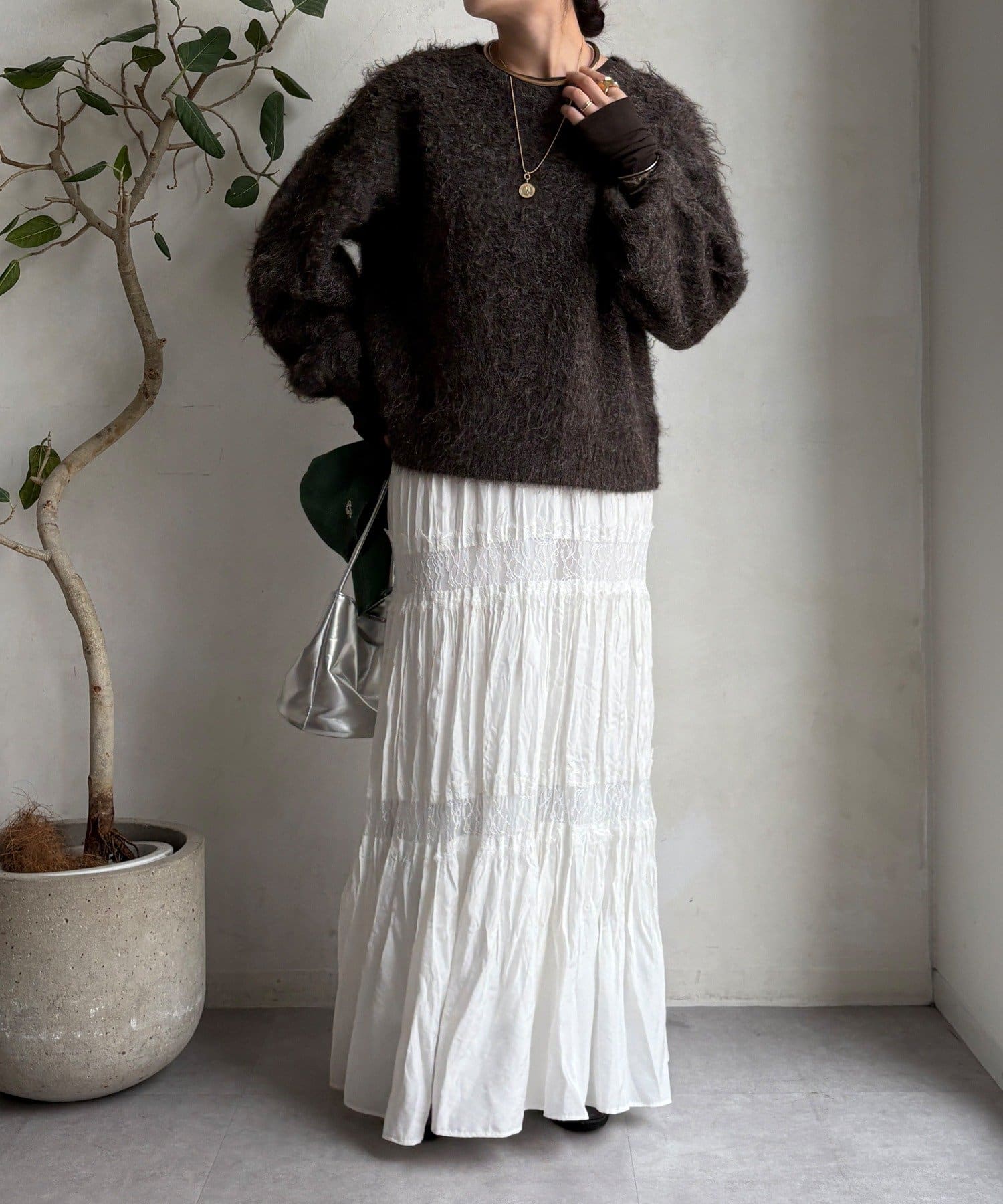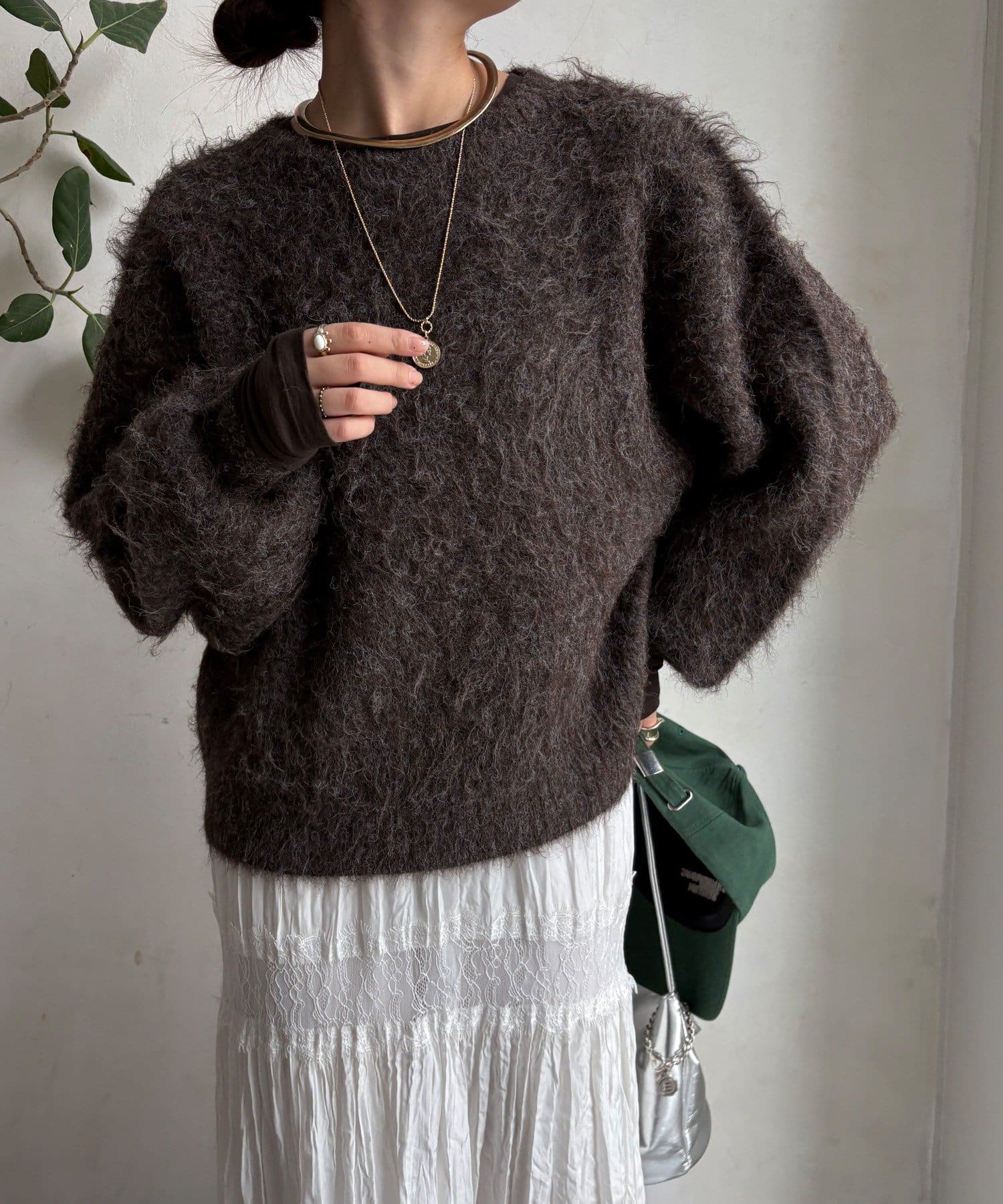 包まれるような着心地。ふんわりシャギーで、季節感とリラックスを。