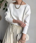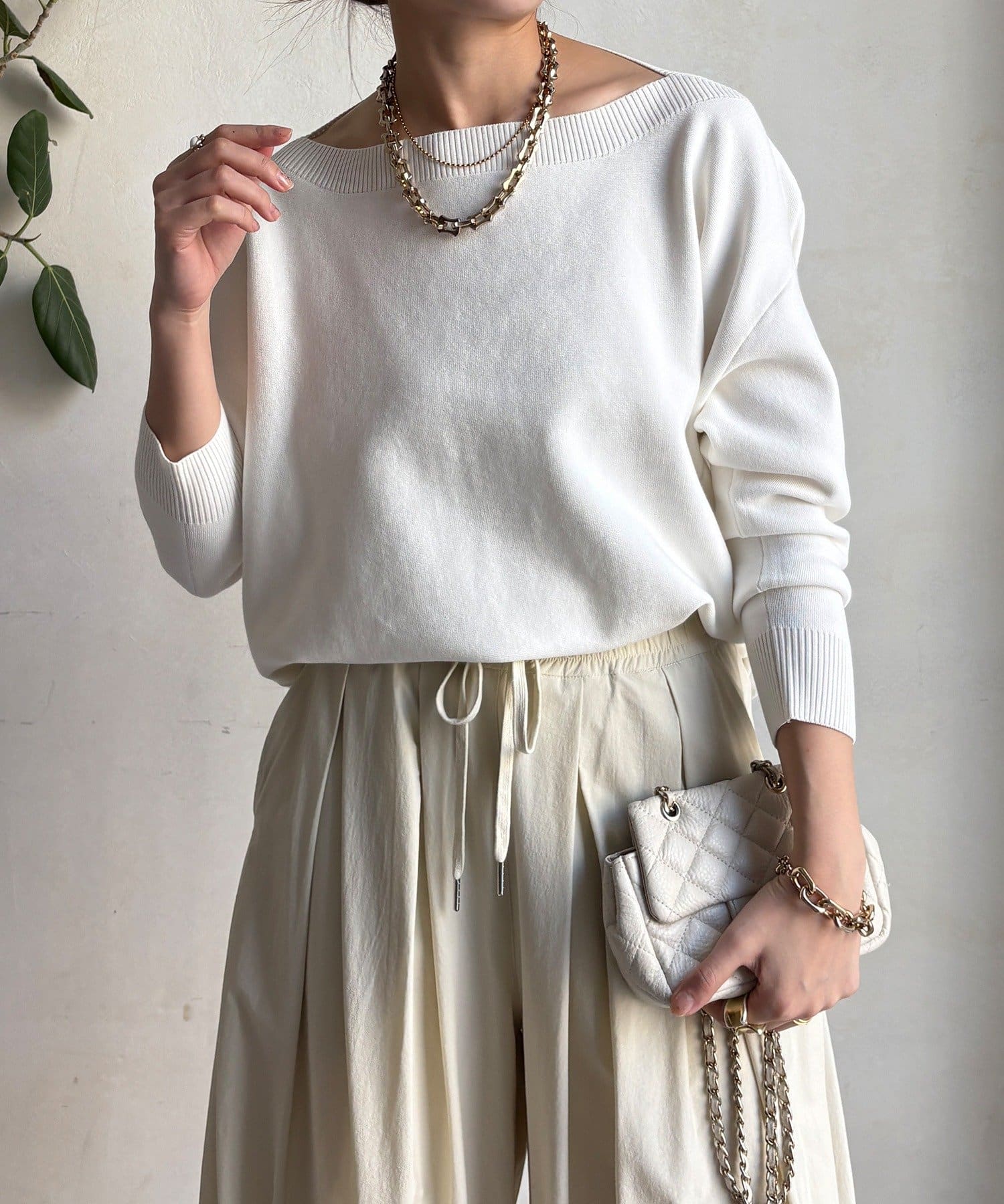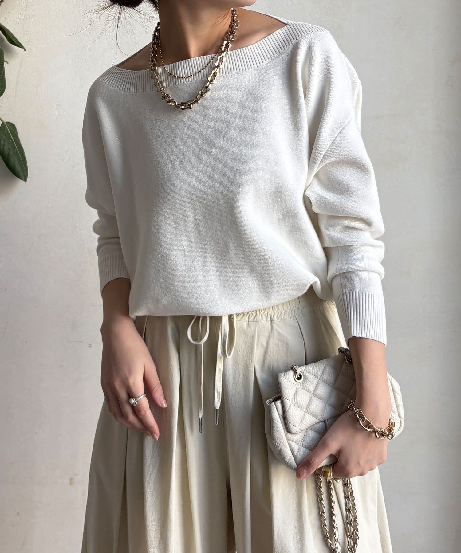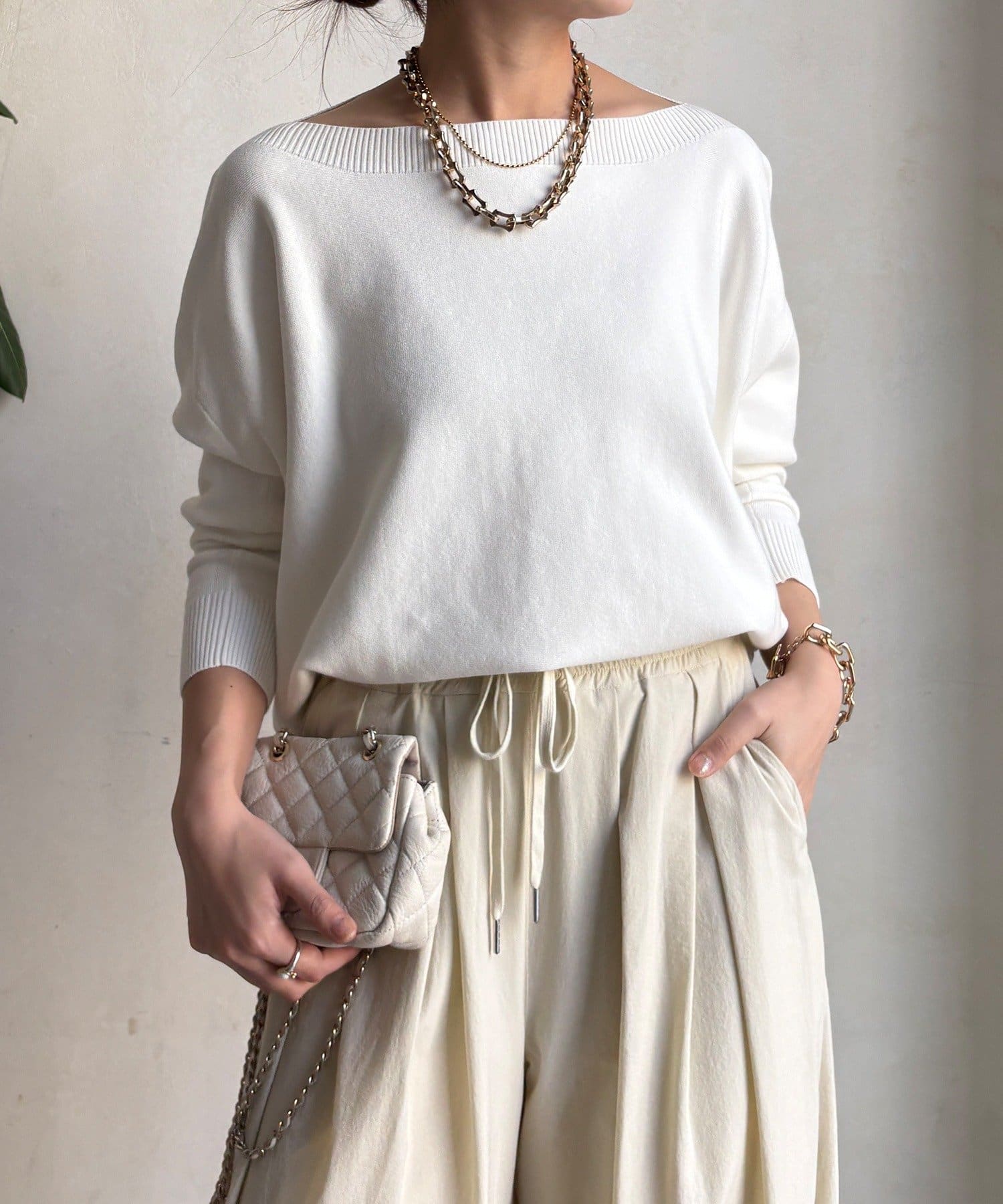 ・ボートネックの絶妙な開きがデコルテラインを美しく!