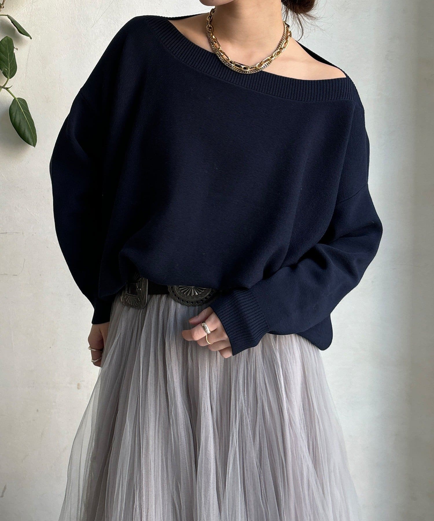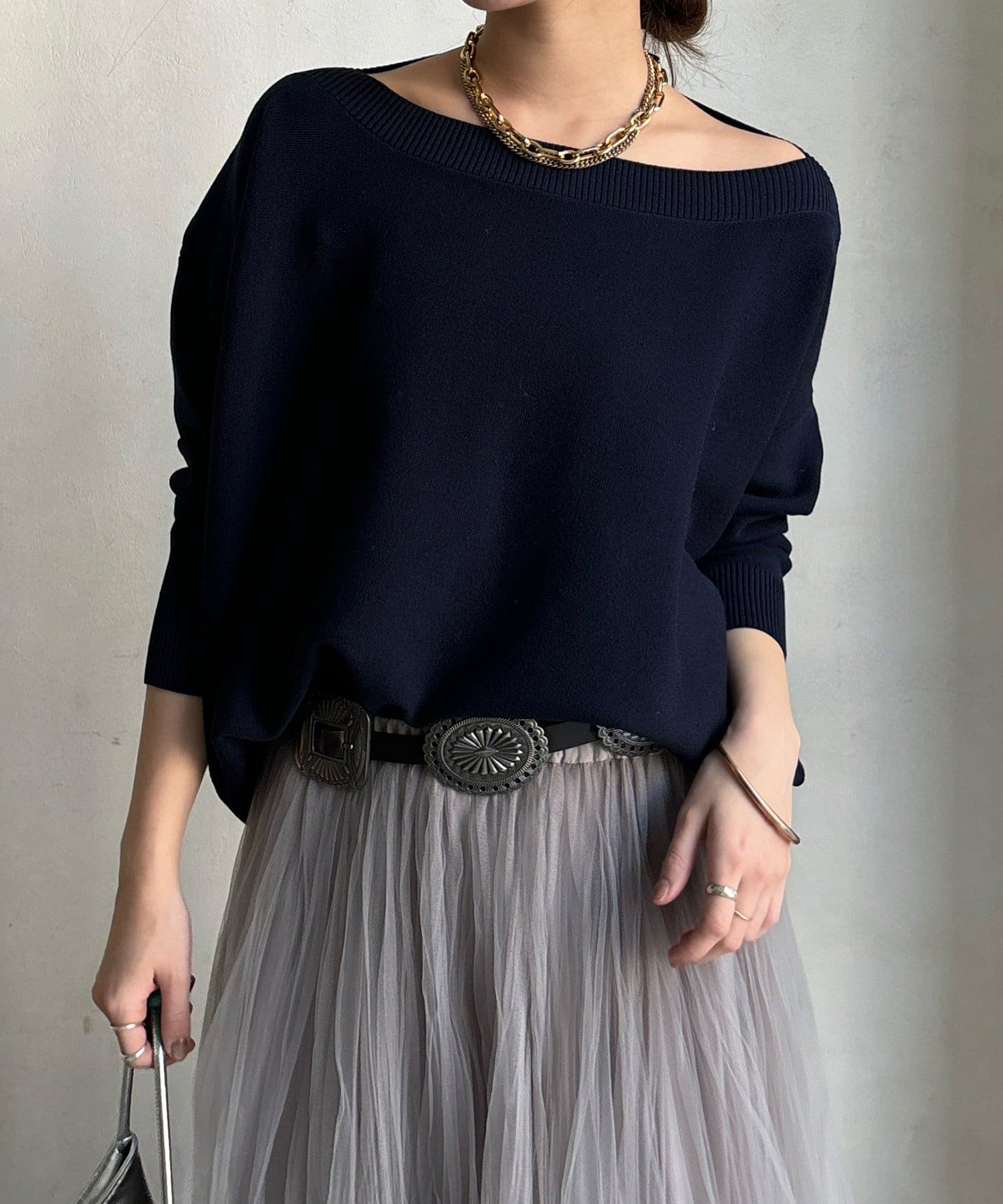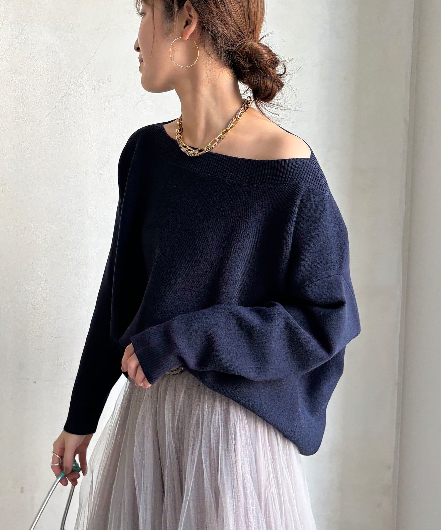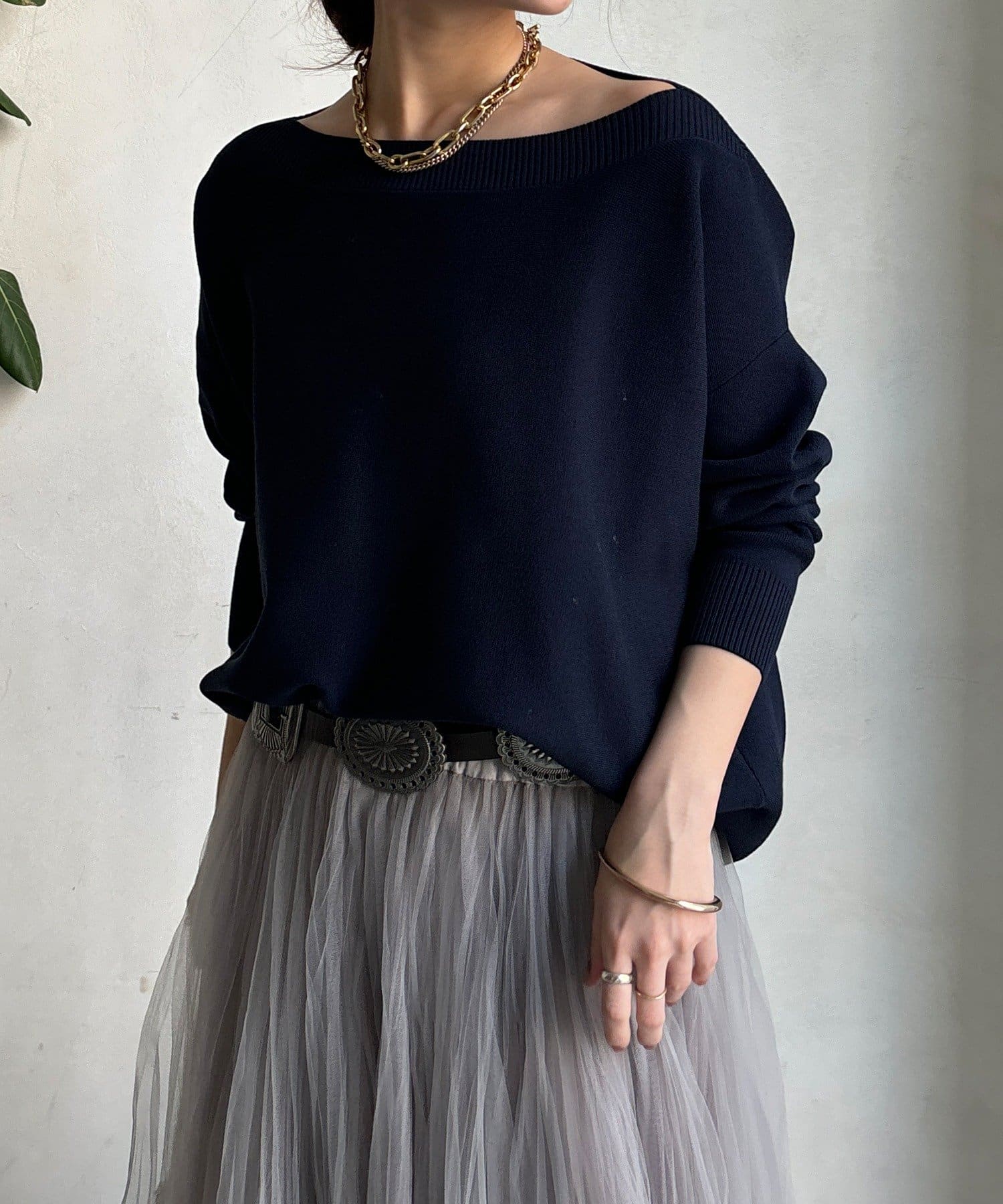 ・ボートネックの絶妙な開きがデコルテラインを美しく!