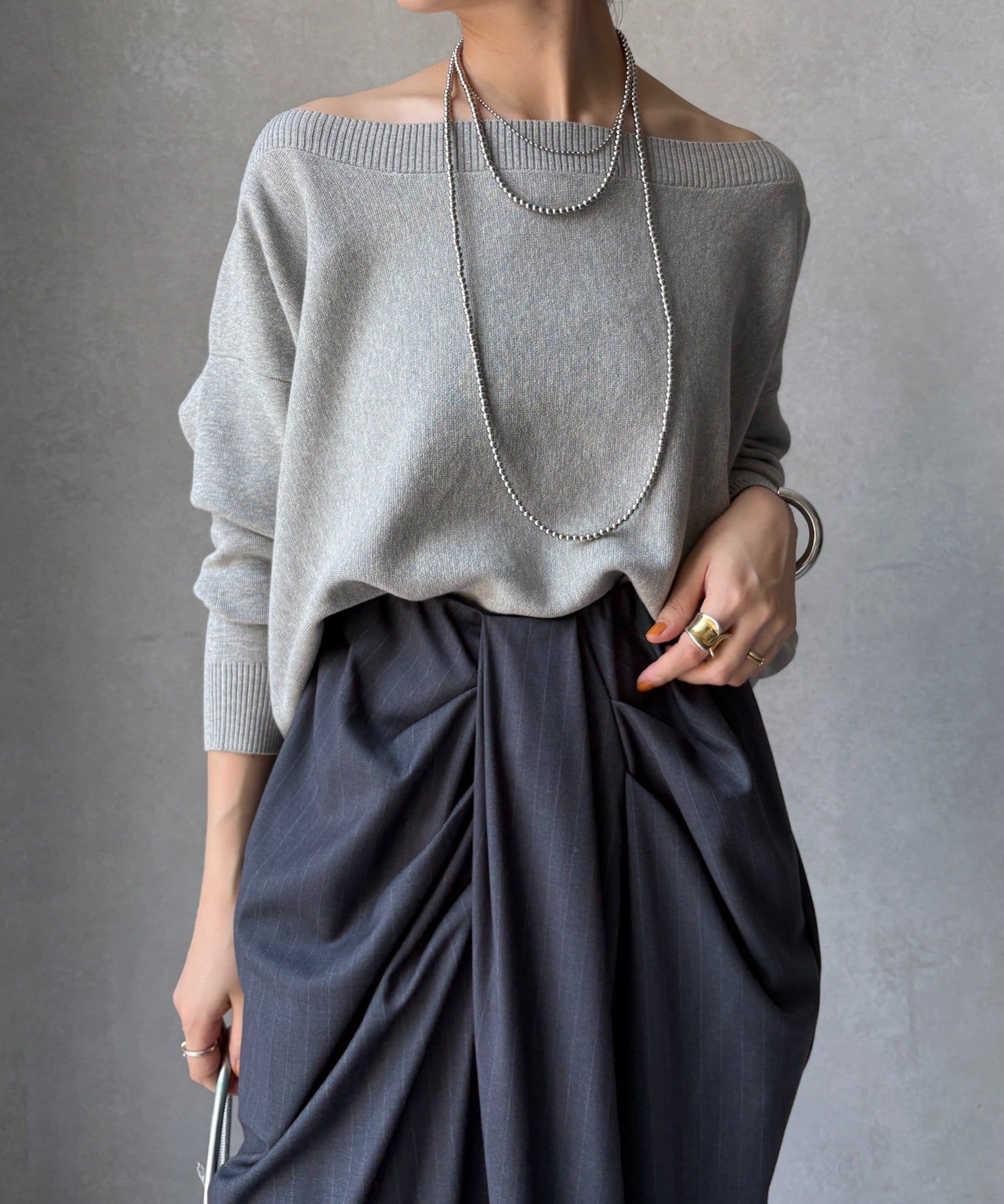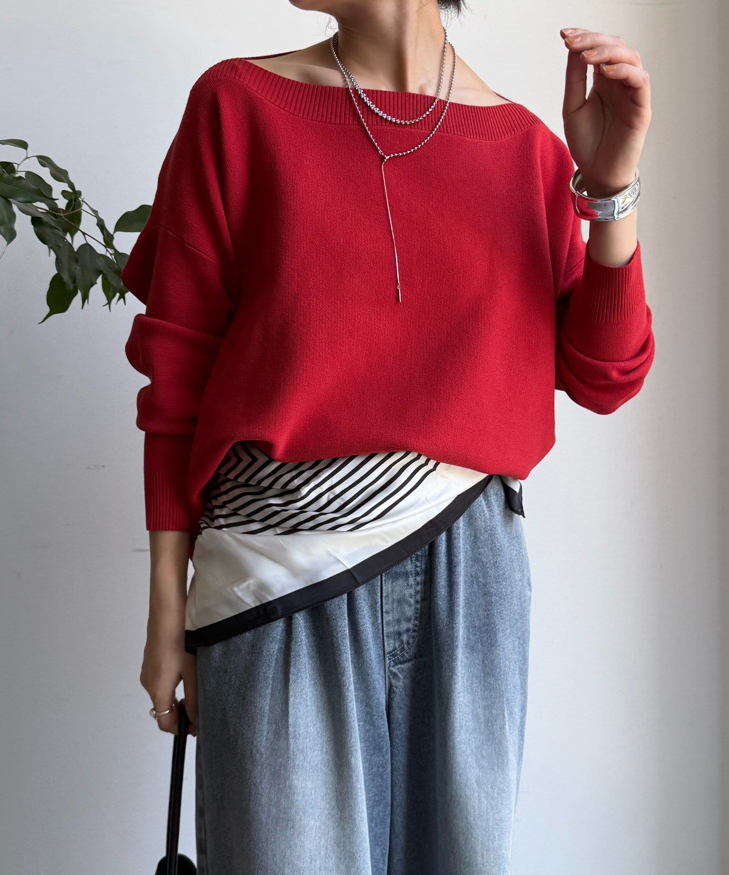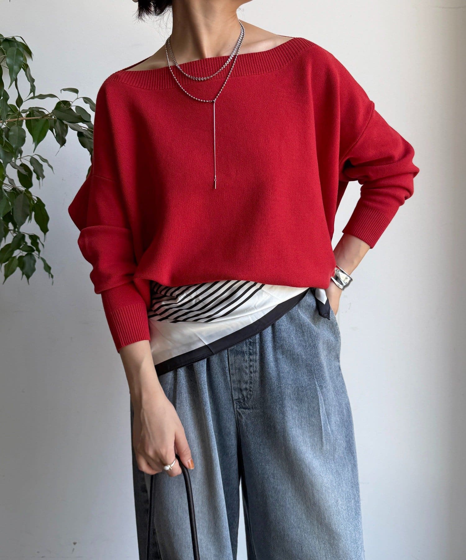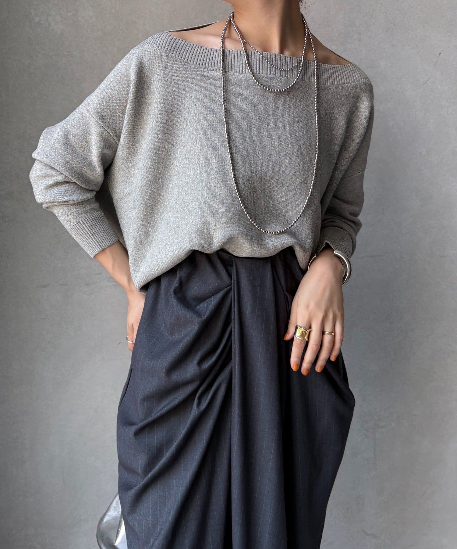 ・ボートネックの絶妙な開きがデコルテラインを美しく!